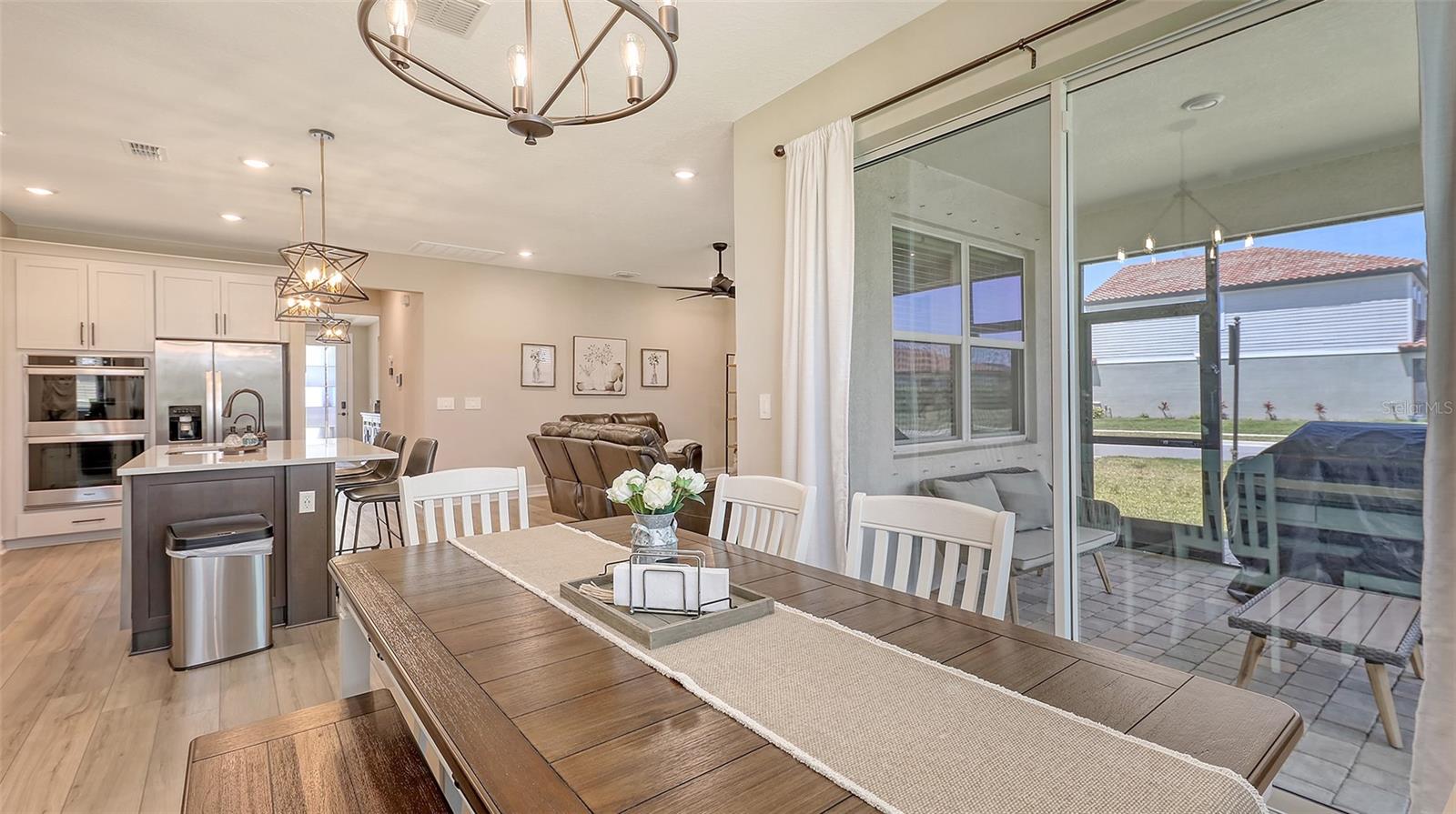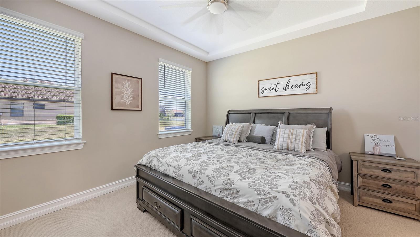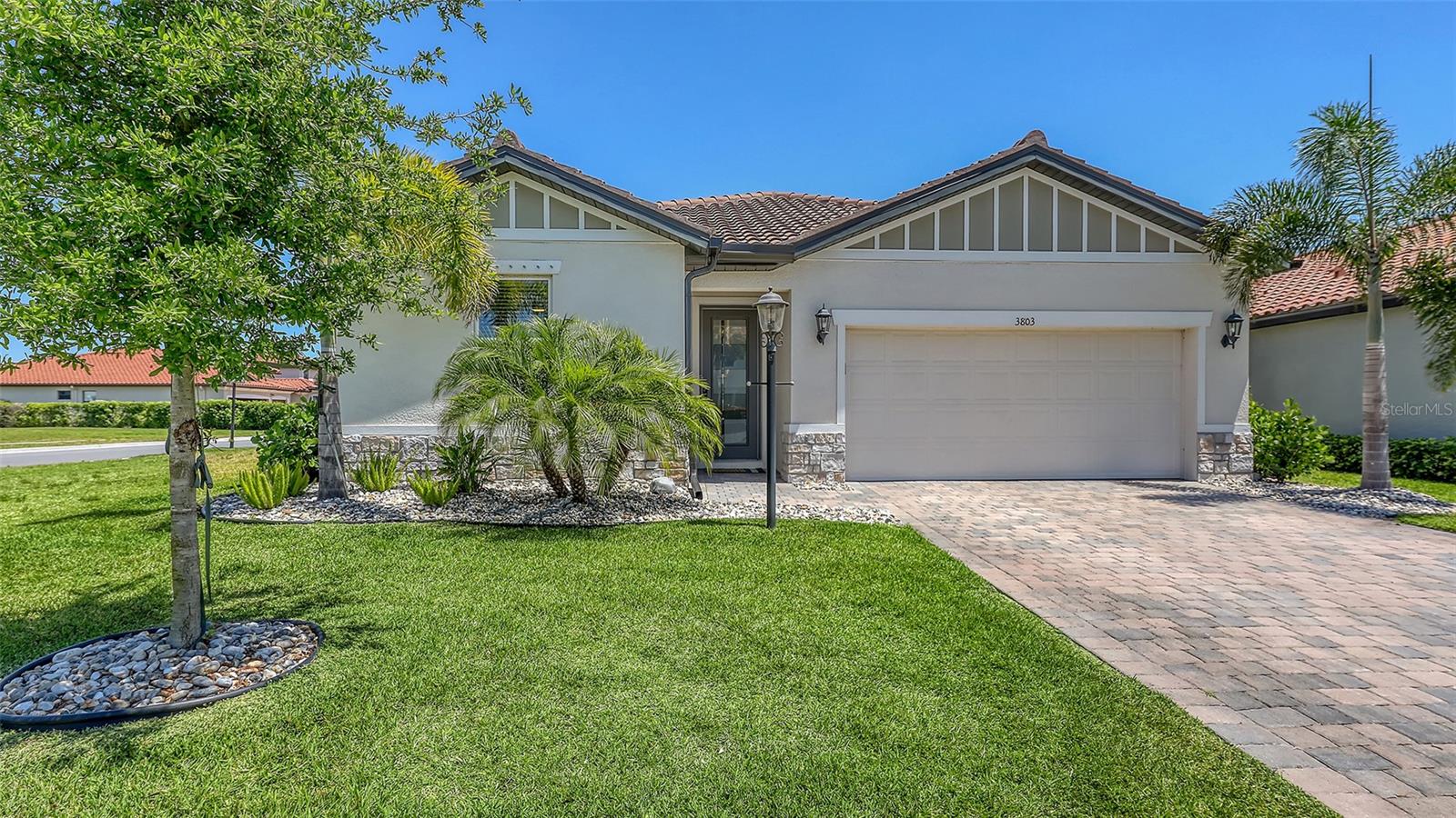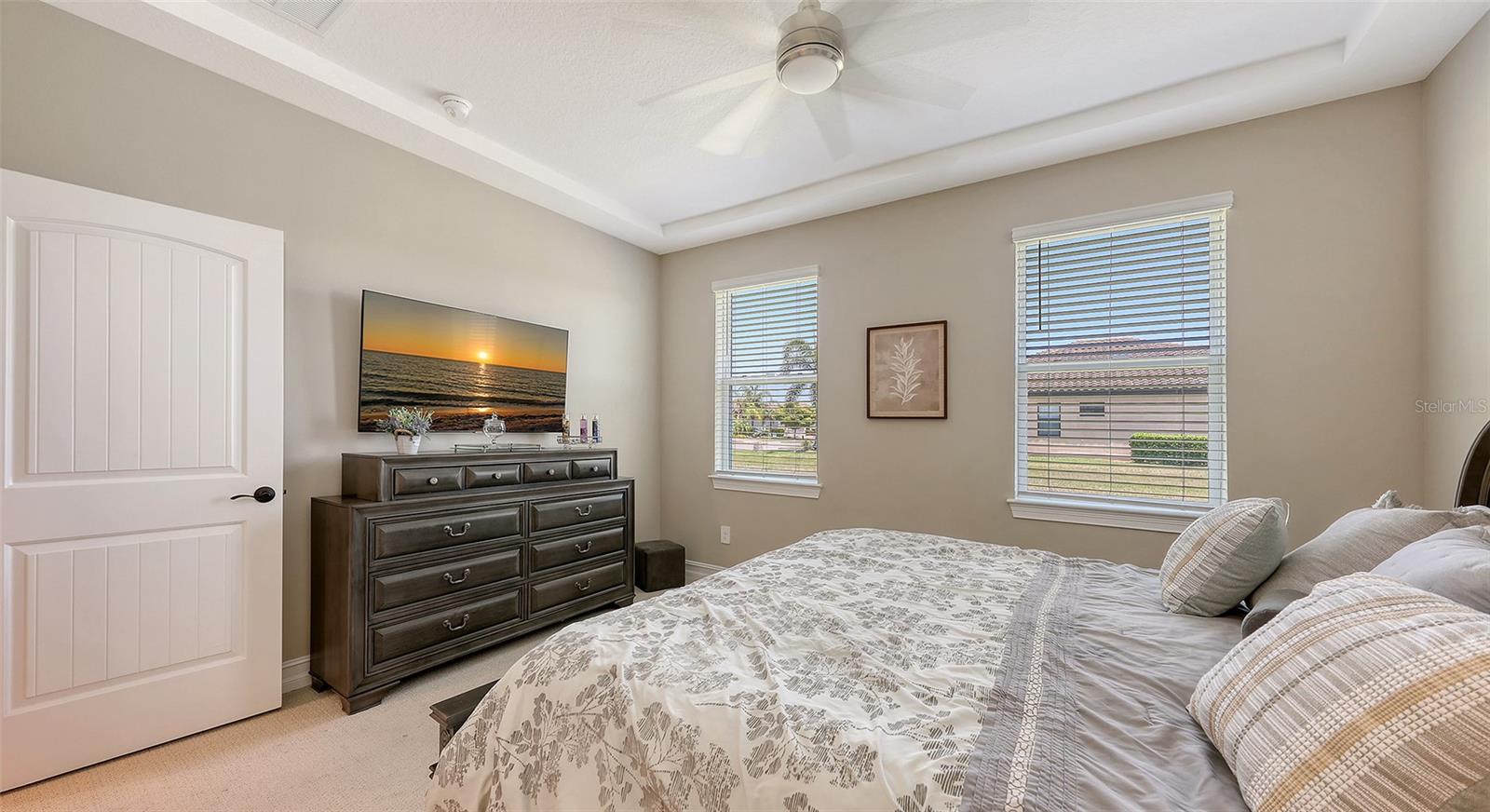 Set behind the private gates of Savanna at Lakewood Ranch, this 3bed|2ba 1674sq foot new construction from 2022 is the ideal location for your future home! With lake views both ways from the backyard and a corner lot location with only one direct neighboring house this is the picture perfect Lakewood Ranch starter home! Featuring 2bed|1ba in the front of the house with beautiful open concept living room/kitchen/dining room leading to the oversized master suite wing of the property. Vaulted ceilings throughout the master and master bath give the opulence fit for a king with expansive master bathroom + walk in closet. Quartz countertops and custom cabinetry. Tile flooring with high end carpet for the rooms. Full built-ins within the pantry and laundry room. Modern light fixtures, shade curtains, speckle garage floor and upgraded appliances abundant in this picturesque Florida home. Large corner lot with ample room to add private pool if desired to accompany the screened in patio with outdoor BBQ. Landscaping has been upgraded with mature foliage and rock lined driveway/walkway to front entrance. Every inch of this property has been upgraded and cultivated into the perfect Florida lifestyle property! Private gated community with lush landscape, sidewalks, basketball courts, playgrounds, clubhouse, community pool, fishing spots galore! HOA covers mowing throughout the community. The Savanna community is dedicated to keeping pristine living conditions for all home owners in the community!