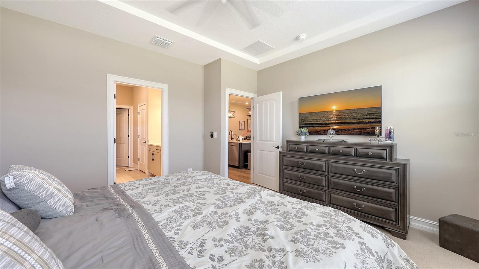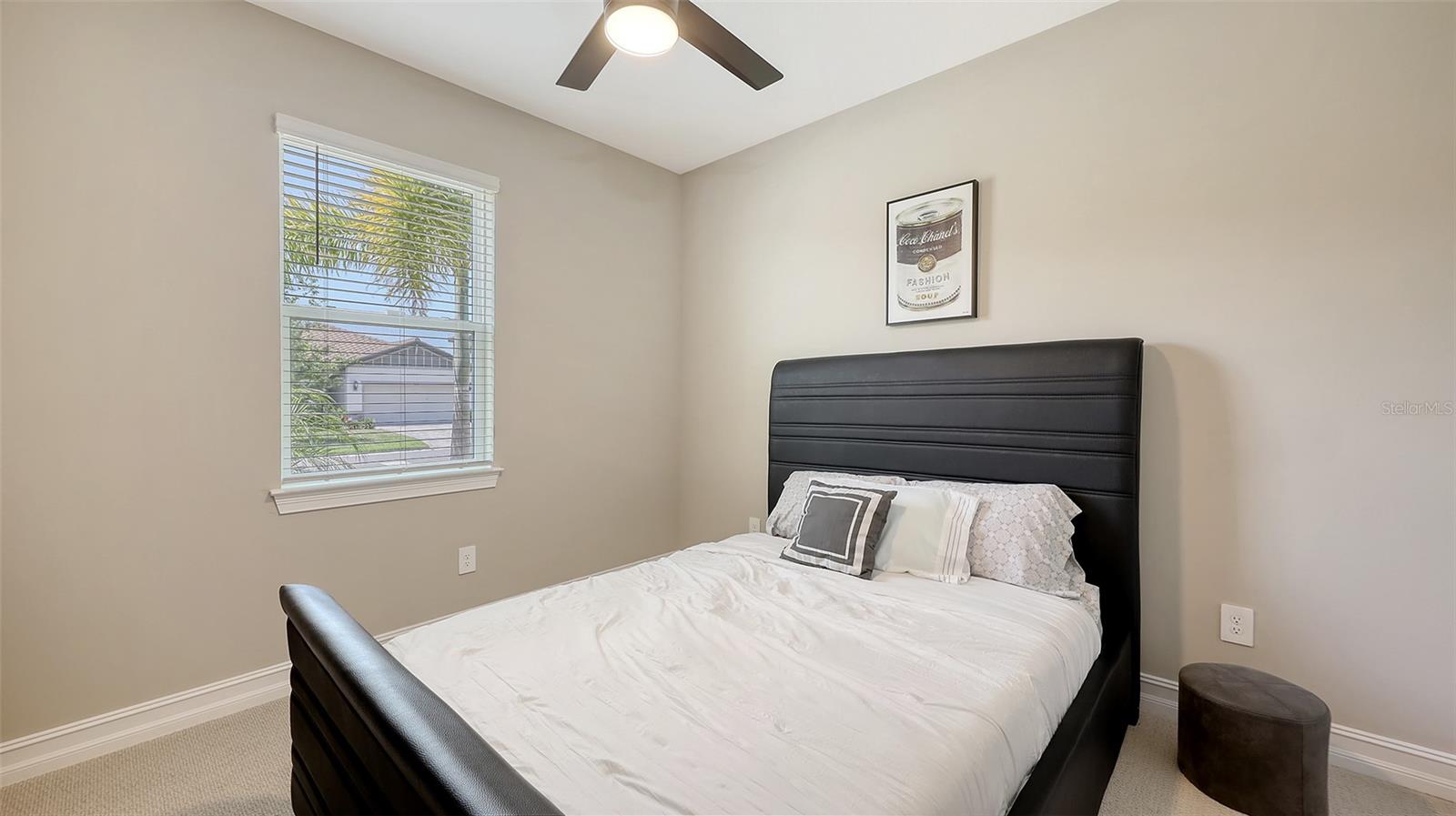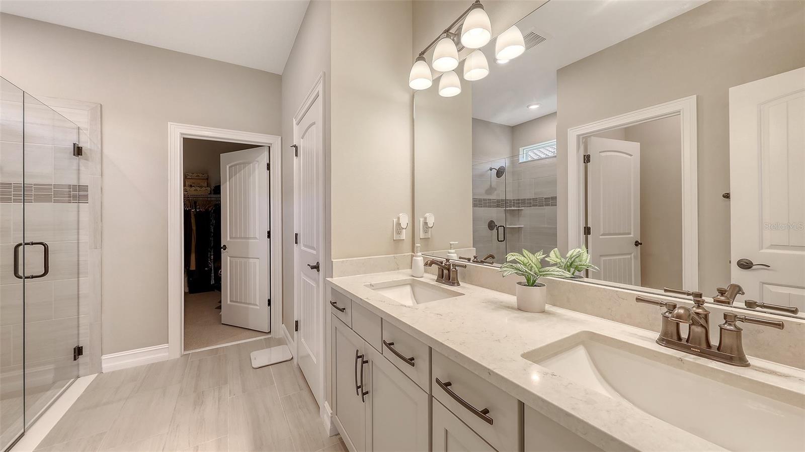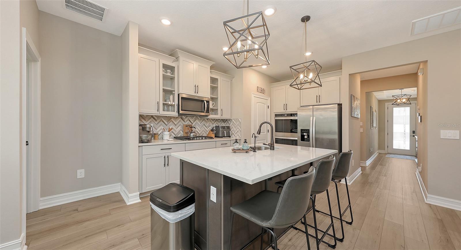 Set behind the private gates of Savanna at Lakewood Ranch, this 3bed|2ba 1674sq foot new construction from 2022 is the ideal location for your future home! With lake views both ways from the backyard and a corner lot location with only one direct neighboring house this is the picture perfect Lakewood Ranch starter home! Featuring 2bed|1ba in the front of the house with beautiful open concept living room/kitchen/dining room leading to the oversized master suite wing of the property. Vaulted ceilings throughout the master and master bath give the opulence fit for a king with expansive master bathroom + walk in closet. Quartz countertops and custom cabinetry. Tile flooring with high end carpet for the rooms. Full built-ins within the pantry and laundry room. Modern light fixtures, shade curtains, speckle garage floor and upgraded appliances abundant in this picturesque Florida home. Large corner lot with ample room to add private pool if desired to accompany the screened in patio with outdoor BBQ. Landscaping has been upgraded with mature foliage and rock lined driveway/walkway to front entrance. Every inch of this property has been upgraded and cultivated into the perfect Florida lifestyle property! Private gated community with lush landscape, sidewalks, basketball courts, playgrounds, clubhouse, community pool, fishing spots galore! HOA covers mowing throughout the community. The Savanna community is dedicated to keeping pristine living conditions for all home owners in the community!