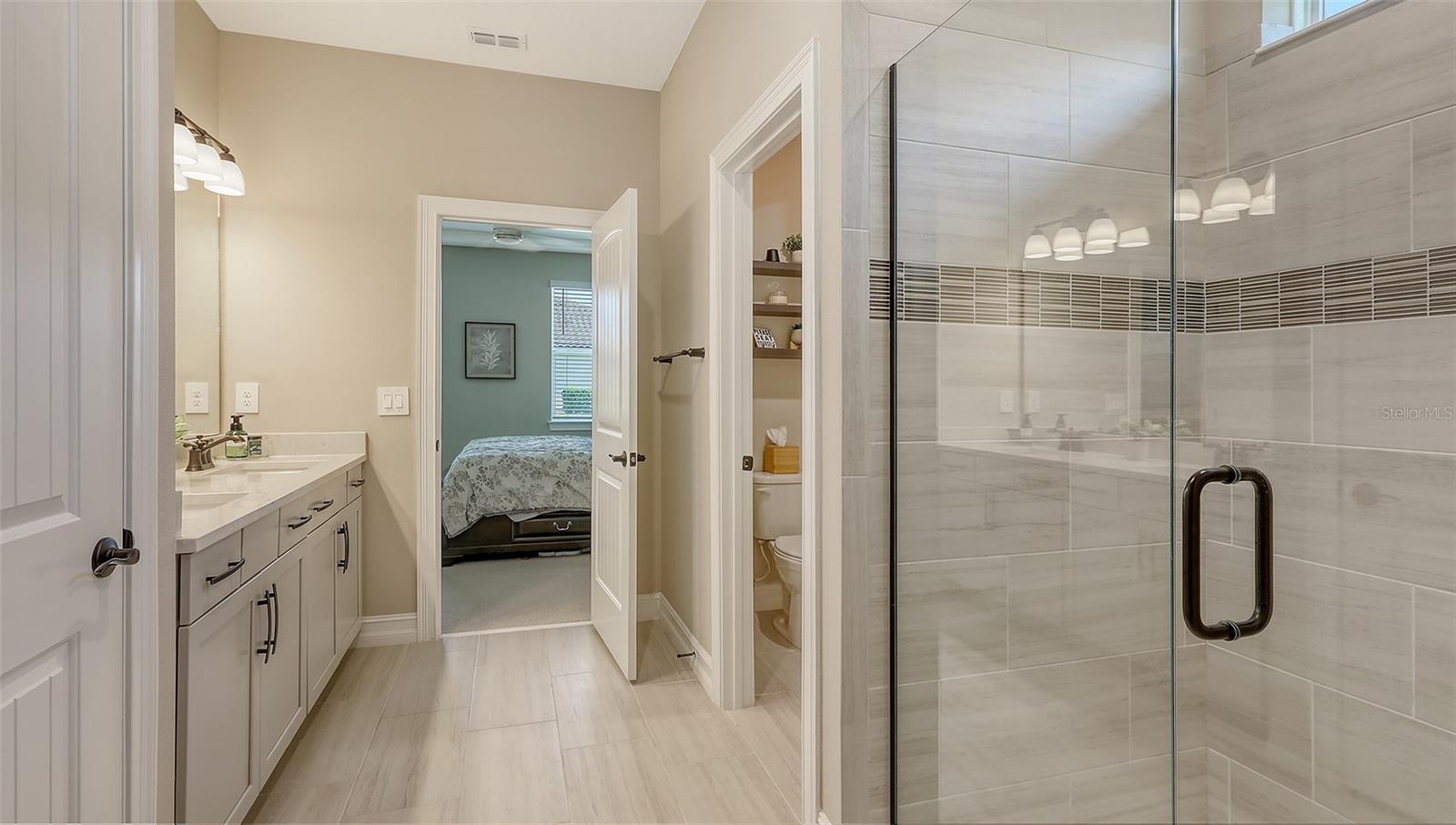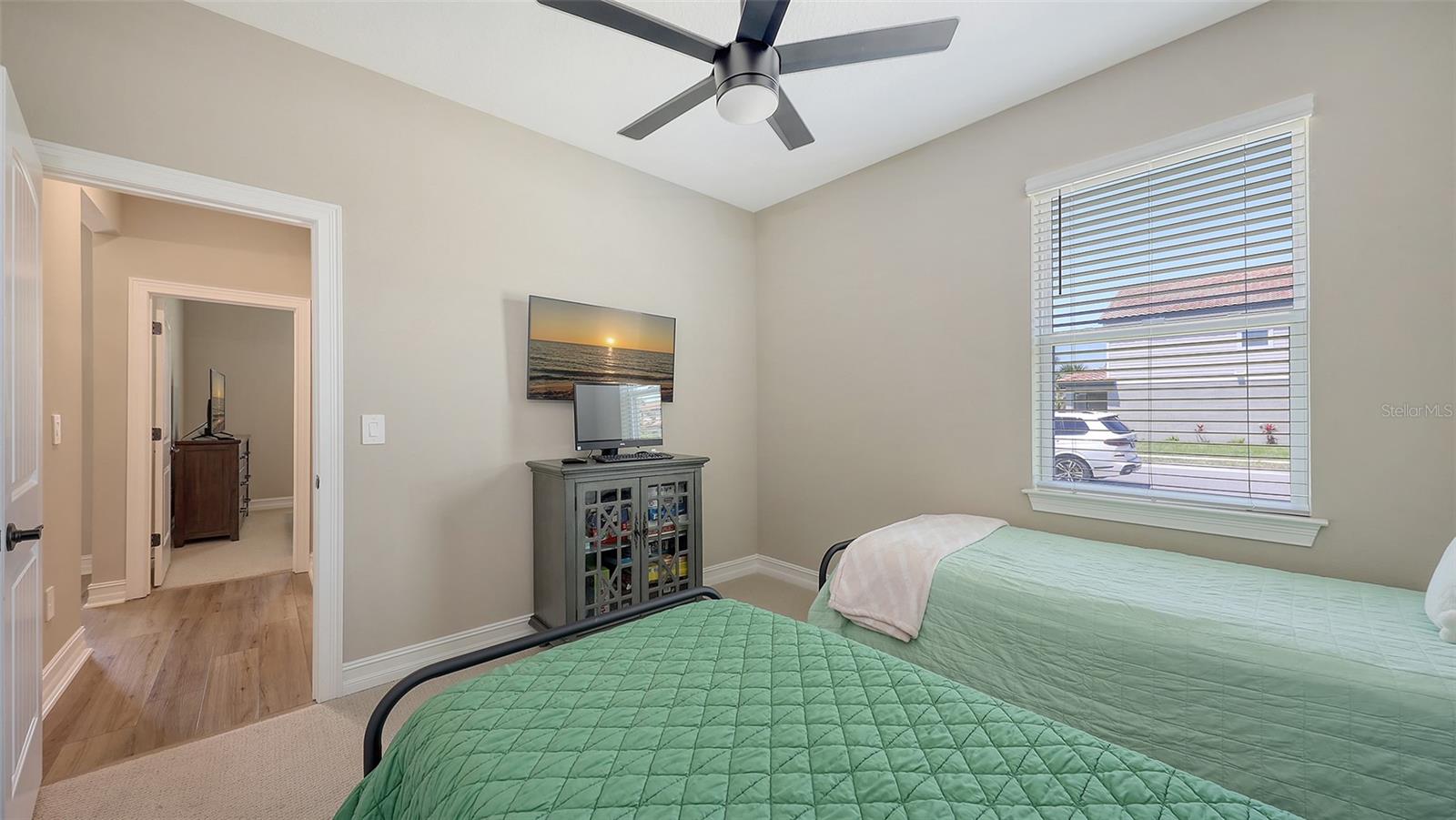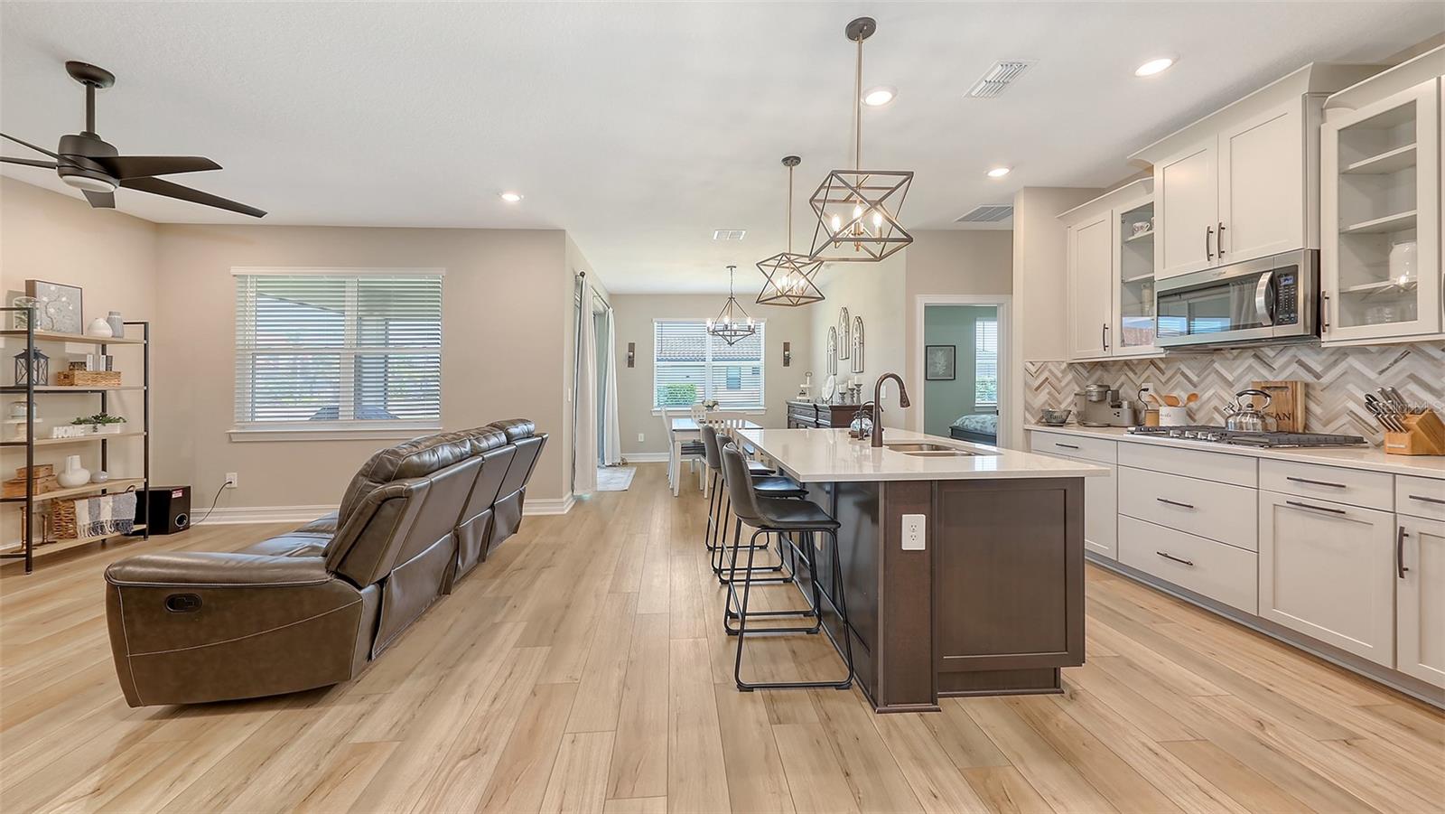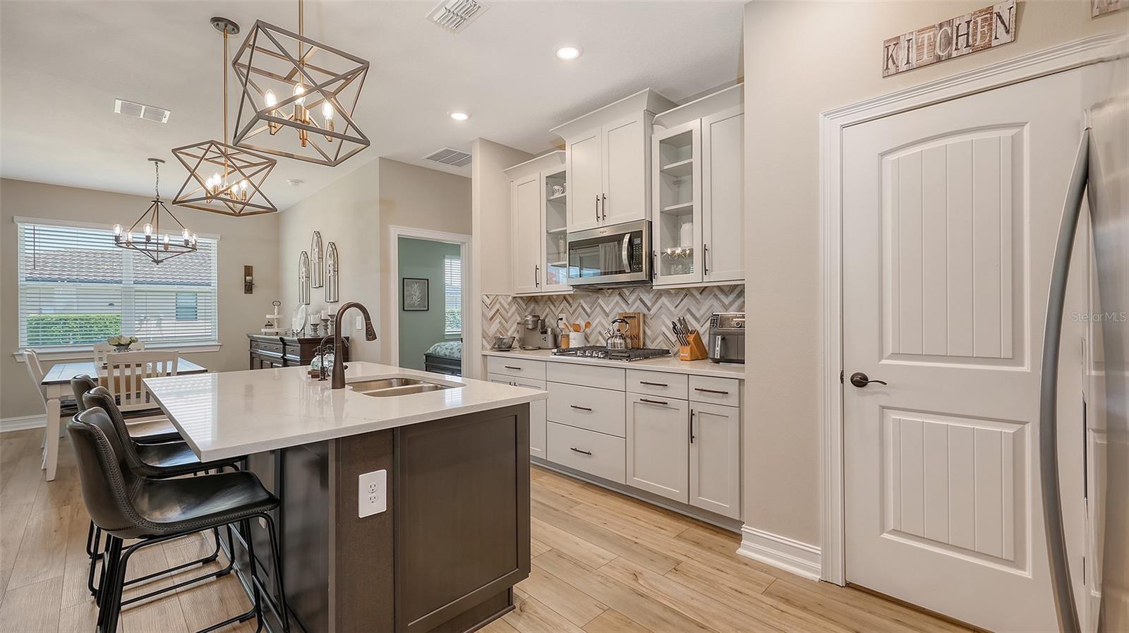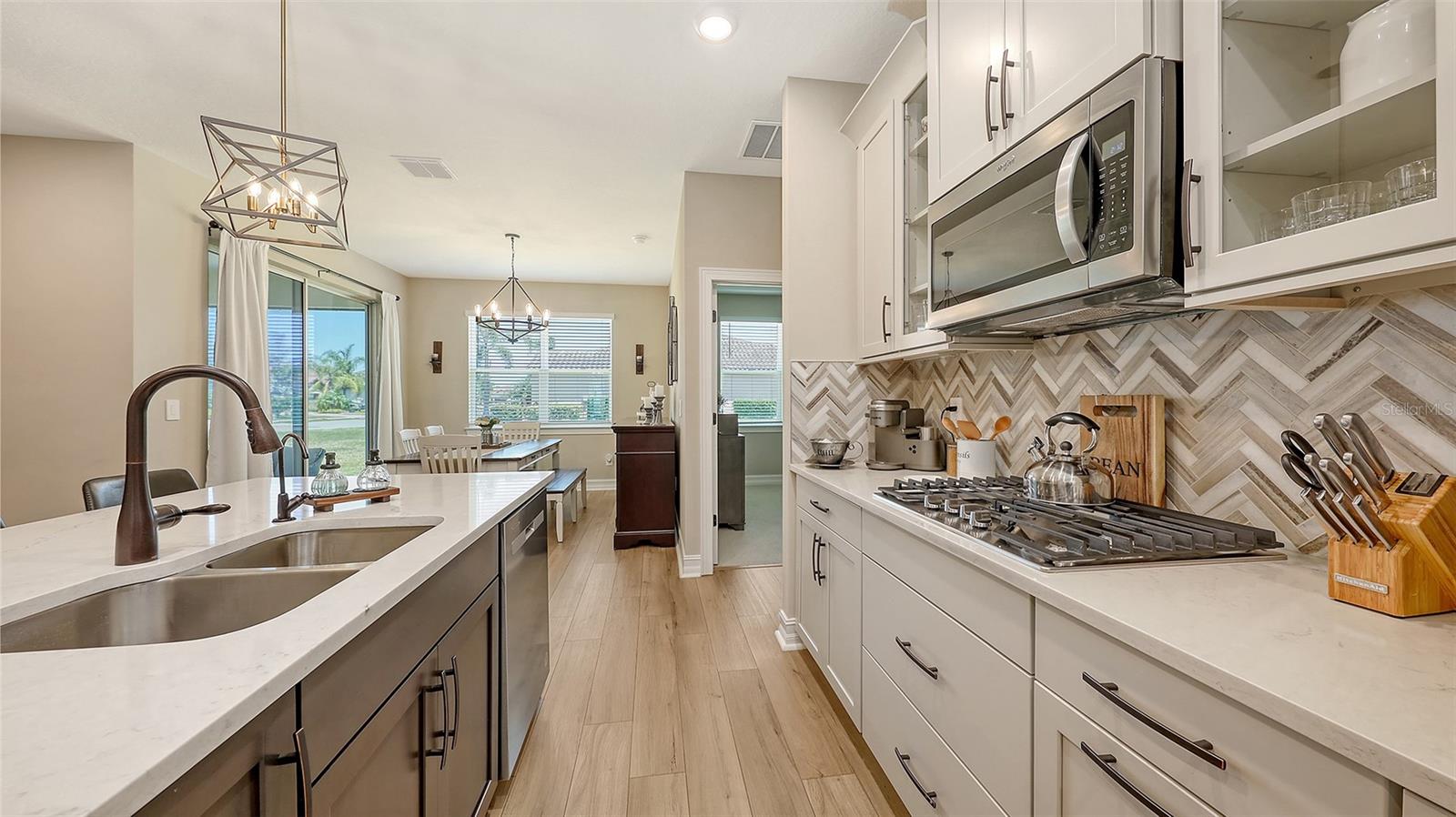 Set behind the private gates of Savanna at Lakewood Ranch, this 3bed|2ba 1674sq foot new construction from 2022 is the ideal location for your future home! With lake views both ways from the backyard and a corner lot location with only one direct neighboring house this is the picture perfect Lakewood Ranch starter home! Featuring 2bed|1ba in the front of the house with beautiful open concept living room/kitchen/dining room leading to the oversized master suite wing of the property. Vaulted ceilings throughout the master and master bath give the opulence fit for a king with expansive master bathroom + walk in closet. Quartz countertops and custom cabinetry. Tile flooring with high end carpet for the rooms. Full built-ins within the pantry and laundry room. Modern light fixtures, shade curtains, speckle garage floor and upgraded appliances abundant in this picturesque Florida home. Large corner lot with ample room to add private pool if desired to accompany the screened in patio with outdoor BBQ. Landscaping has been upgraded with mature foliage and rock lined driveway/walkway to front entrance. Every inch of this property has been upgraded and cultivated into the perfect Florida lifestyle property! Private gated community with lush landscape, sidewalks, basketball courts, playgrounds, clubhouse, community pool, fishing spots galore! HOA covers mowing throughout the community. The Savanna community is dedicated to keeping pristine living conditions for all home owners in the community!