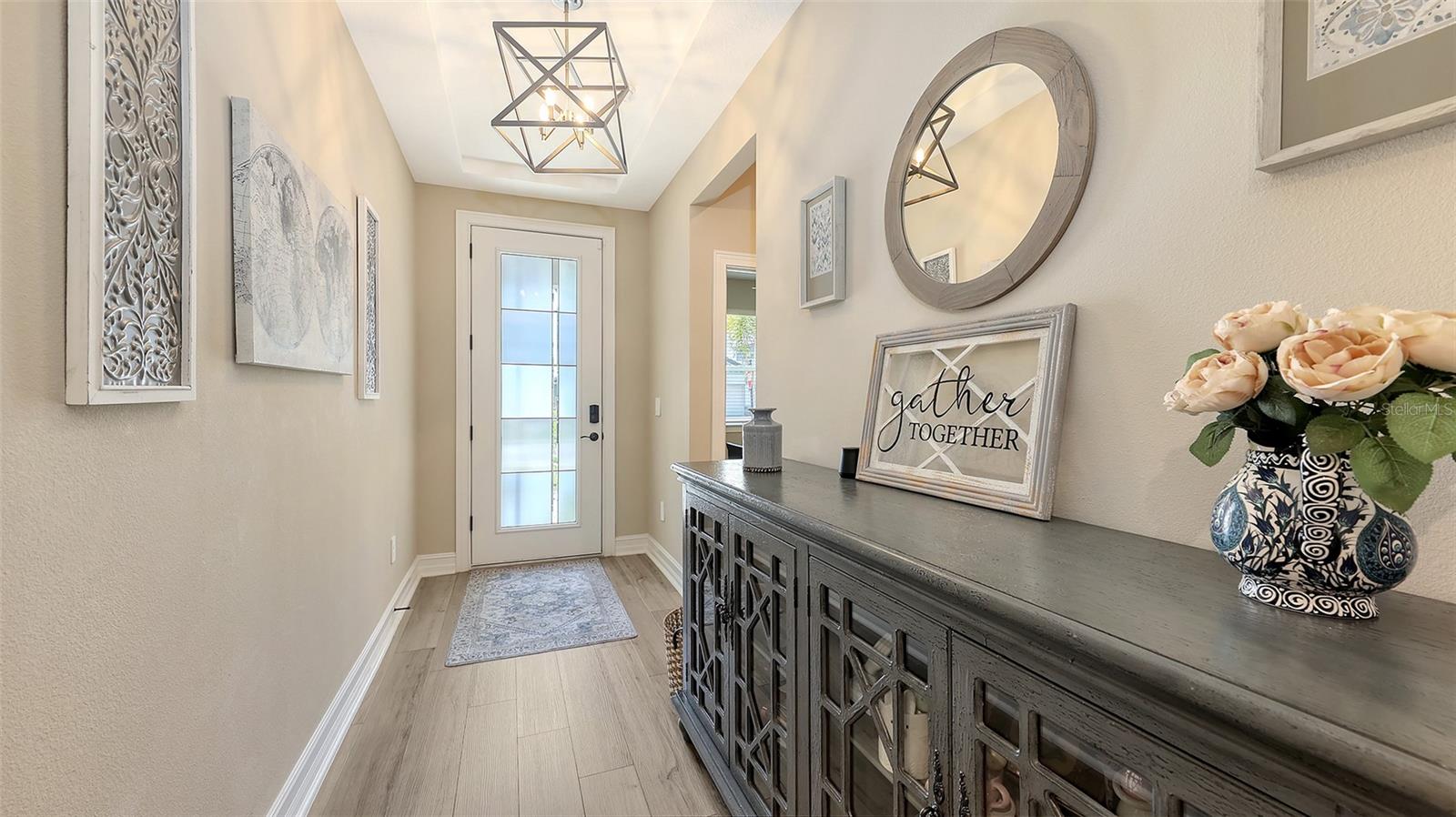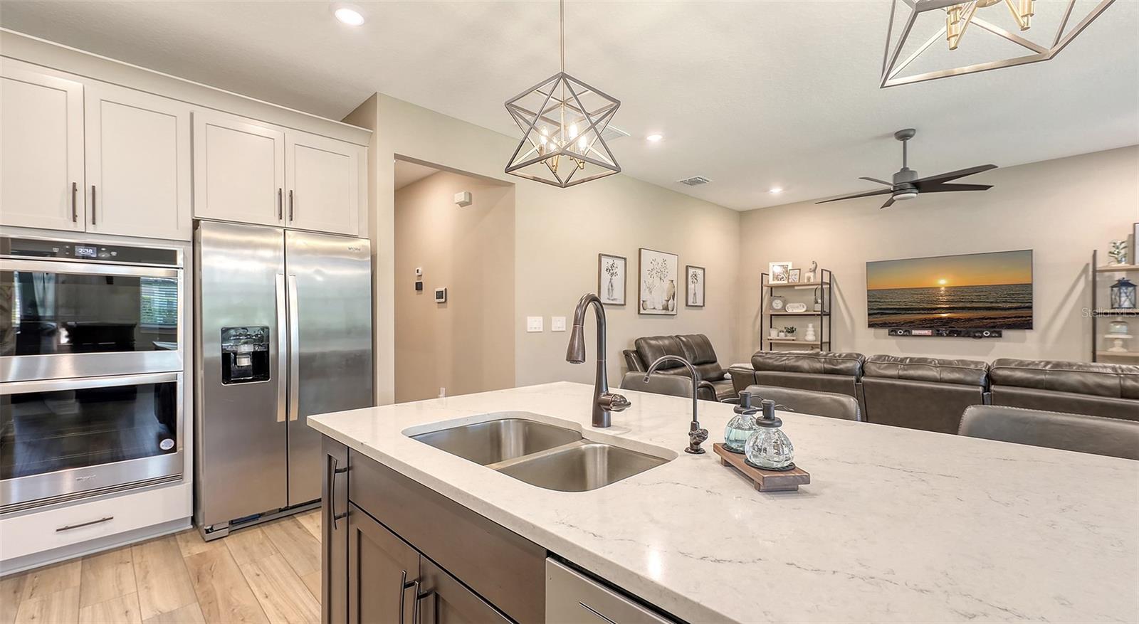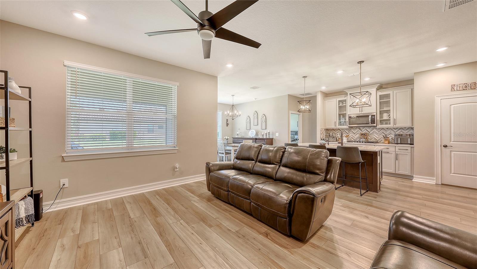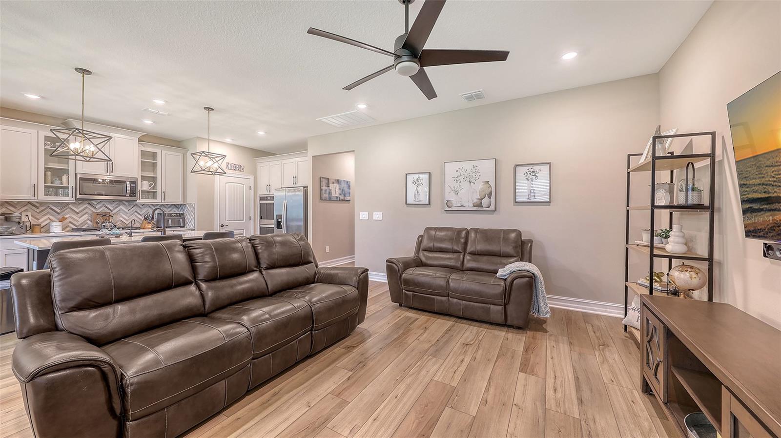 Set behind the private gates of Savanna at Lakewood Ranch, this 3bed|2ba 1674sq foot new construction from 2022 is the ideal location for your future home! With lake views both ways from the backyard and a corner lot location with only one direct neighboring house this is the picture perfect Lakewood Ranch starter home! Featuring 2bed|1ba in the front of the house with beautiful open concept living room/kitchen/dining room leading to the oversized master suite wing of the property. Vaulted ceilings throughout the master and master bath give the opulence fit for a king with expansive master bathroom + walk in closet. Quartz countertops and custom cabinetry. Tile flooring with high end carpet for the rooms. Full built-ins within the pantry and laundry room. Modern light fixtures, shade curtains, speckle garage floor and upgraded appliances abundant in this picturesque Florida home. Large corner lot with ample room to add private pool if desired to accompany the screened in patio with outdoor BBQ. Landscaping has been upgraded with mature foliage and rock lined driveway/walkway to front entrance. Every inch of this property has been upgraded and cultivated into the perfect Florida lifestyle property! Private gated community with lush landscape, sidewalks, basketball courts, playgrounds, clubhouse, community pool, fishing spots galore! HOA covers mowing throughout the community. The Savanna community is dedicated to keeping pristine living conditions for all home owners in the community!