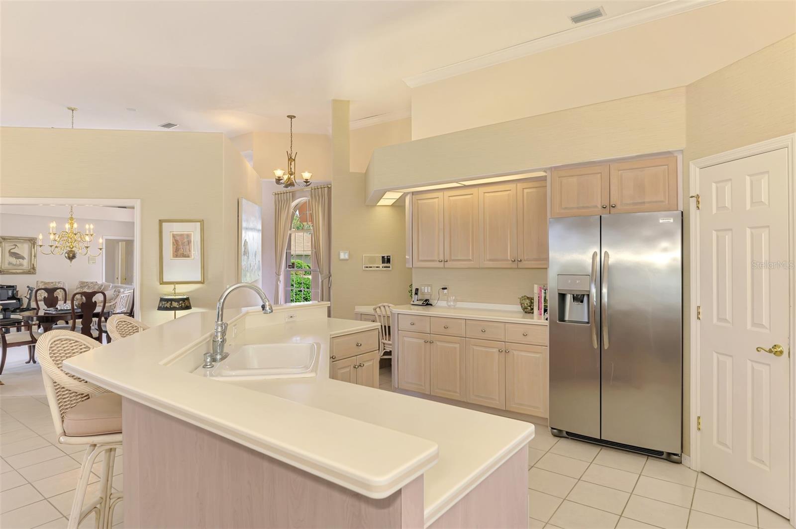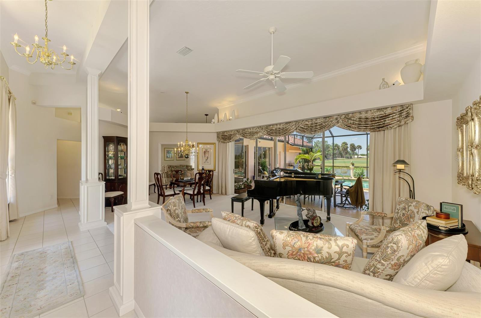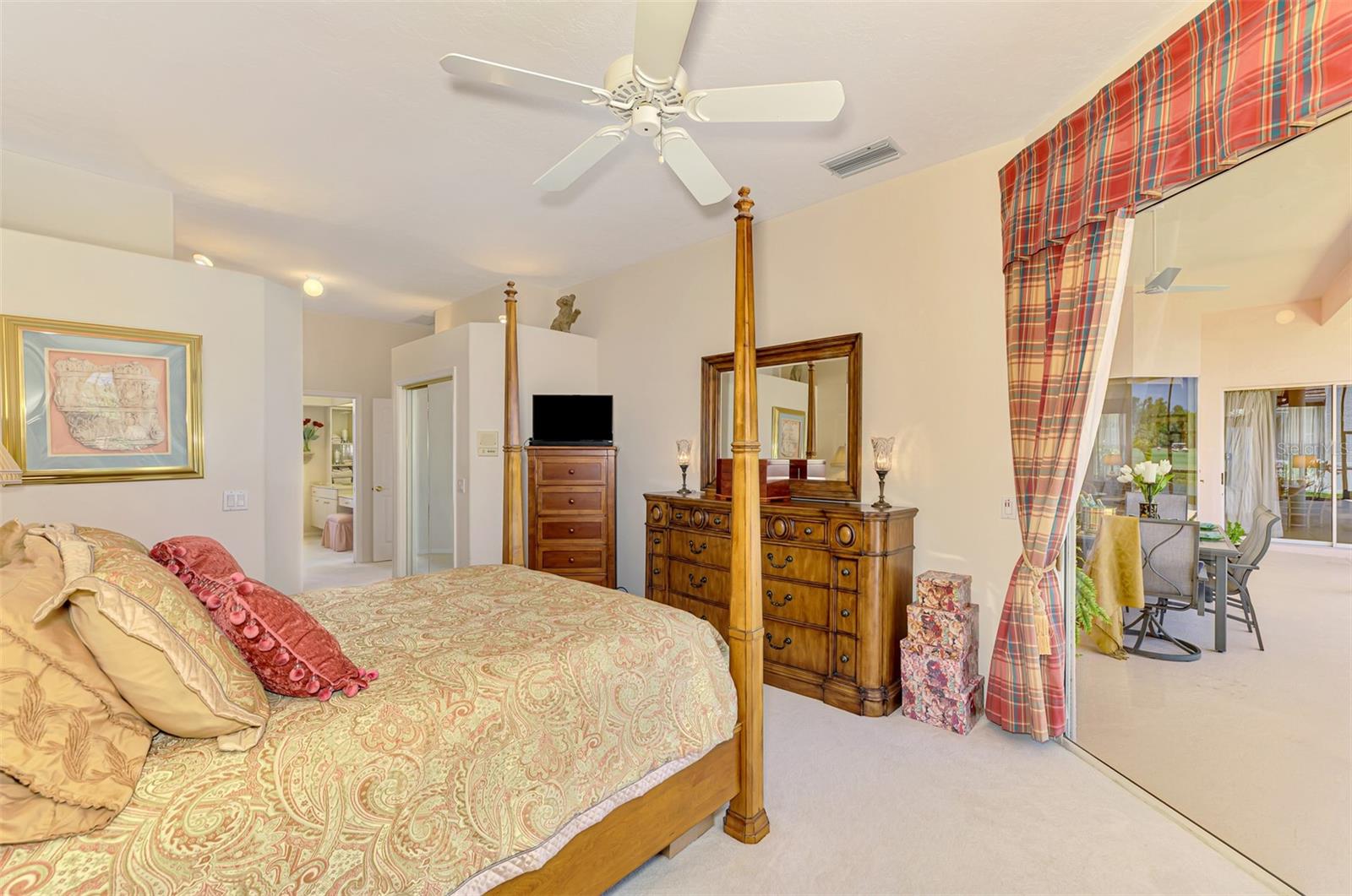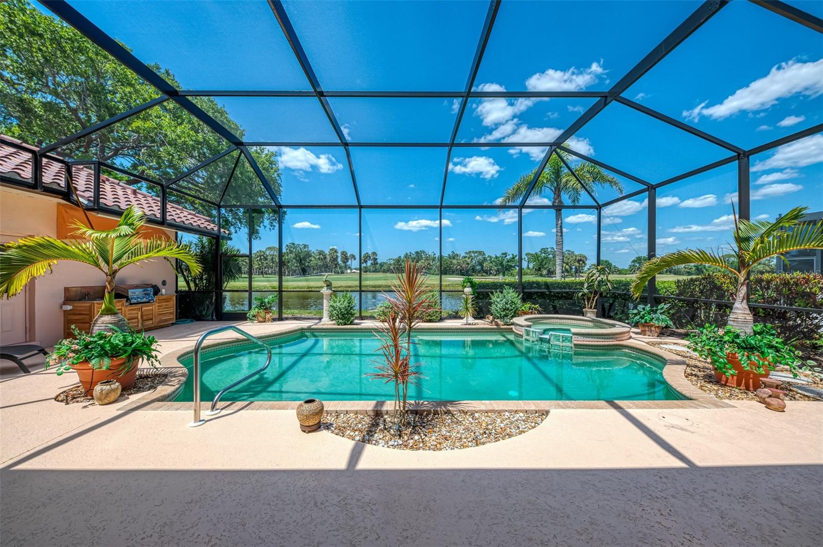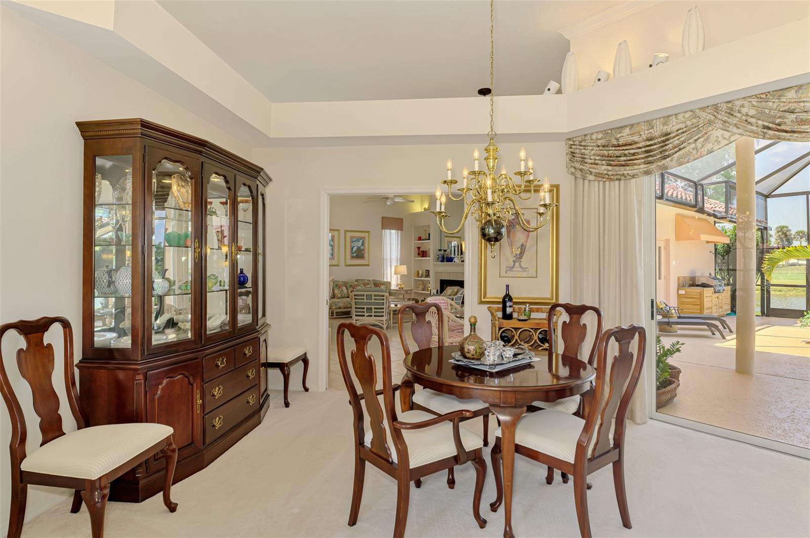 Welcome to 407 Fieldstone Dr; this luxurious home with 12-foot soaring ceilings that will make you feel as if you are in a home bigger than life! The view from the entrance of this property will take your breath away as the disappearing wall opens this home to the outside water and coveted 18th hole golf course view! Spaciously laid out with the primary bedroom and bath to the right, providing two walk-in closets and double sinks with a make-up vanity, spacious water closet with a bidet, walk-in shower, and separate garden tub. The split floor plan offers privacy with two guest bedrooms on the other side of the home. One-bedroom doubles as an office/den and the guest bath is a perfect pool bath as well! Formal living and Dining room brag of natural light and show off the fabulous views of this property and has a WOW factor for entertaining that everyone will envy. The kitchen and family room combo is ideal for relaxing by the fireplace and features a dinette area with aquarium glass for scenic views. Oversized lanai and huge pool will provide countless memories with friends and family to come. The new outside kitchen made with teak wood will be a joy for the cook in the family and the NEW ROOF finished in Dec., 2024 has a 20 yr. transferrable (workmanship) warranty which will provide a sense of security for the new owner for years to come! Home has been painted on outside and the lanai cage replaced. THIS HOME HAS A FULL THREE CAR GARAGE! VGCC is a member-owned PRIVATE COUNTRY CLUB WITH 589 homes. Membership IS MANDATORY. Meet and make new friends for dining or after golf in the renovated clubhouse that offers both casual and formal dining. There is a casual bar for meeting with friends or an exclusive bar for higher-end wines and bourbon. On cooler evenings, gather around the fire pit with friends, enjoying the views across water to the 18th green. Work out in the newly enlarged Wellness Center with state-of-the-art equipment and on-site physical therapist, massage therapist, personal trainers and a wide variety of fitness classes. The club has a unique "U" program that offers cultural and learning events and there is mahjong, bridge, bocce, book club, wine club, in addition to golf, tennis and pickleball leagues. With easy access from I-75 and centrally located between Tampa/Sarasota and Punta Gorda/ Ft. Myers airports, this mature community is only 5 miles from charming downtown Venice and 20 miles from culturally rich Sarasota. Venice Golf and Country Club is an award-winning Certified Audubon Geo Cooperative Sanctuary with 26 lakes/ponds and 13 natural preserves. VGCC is truly a unique community in Southwest Florida, as illustrated by the number of members who have made it their year-round home. Come enjoy the lifestyle of this GREAT community! LIVE IT, LOVE IT, OWN IT!