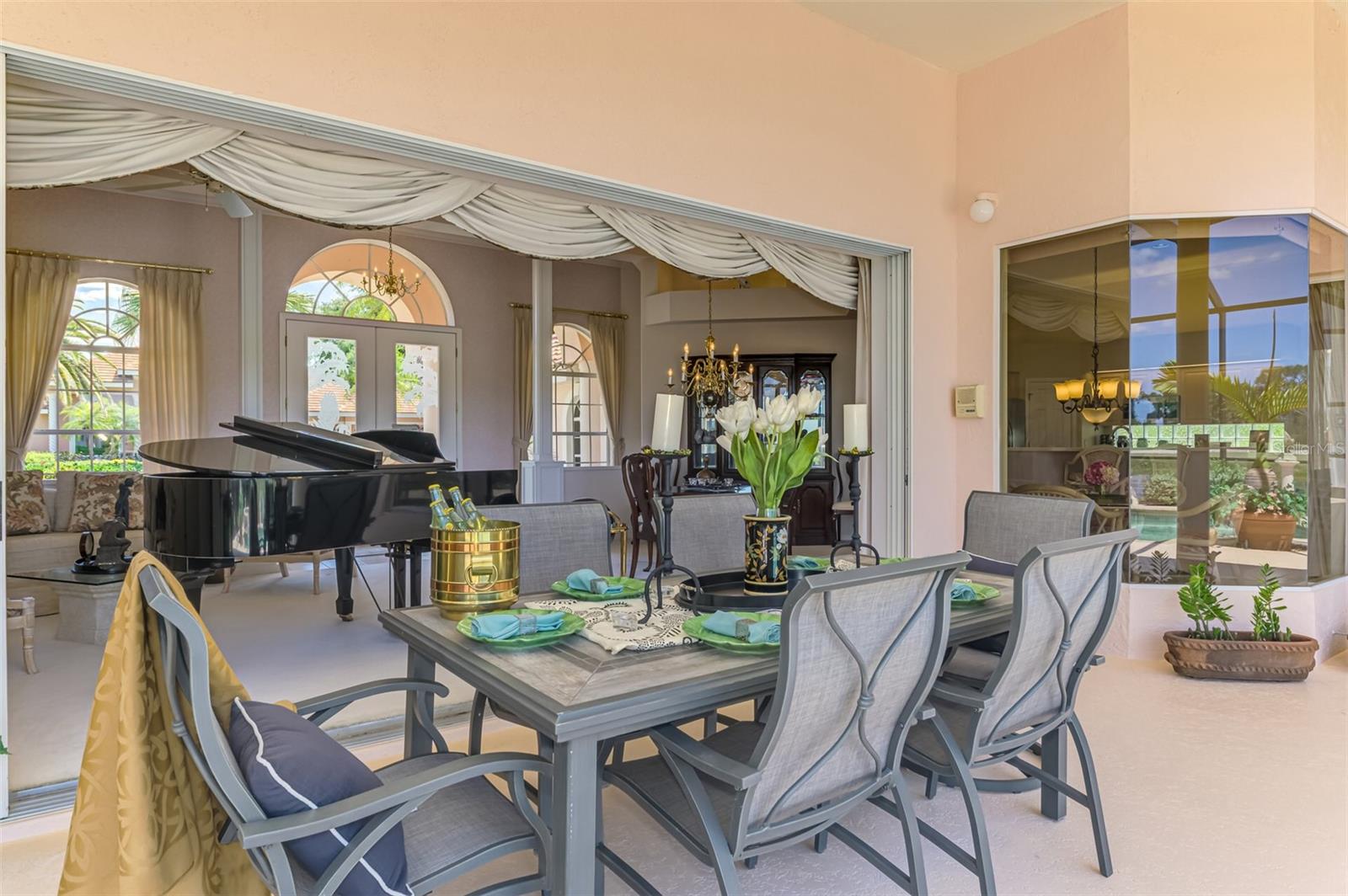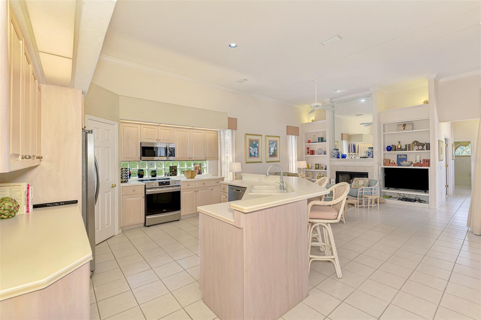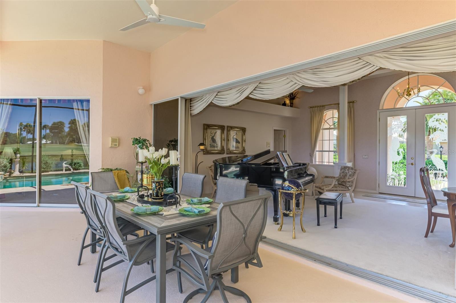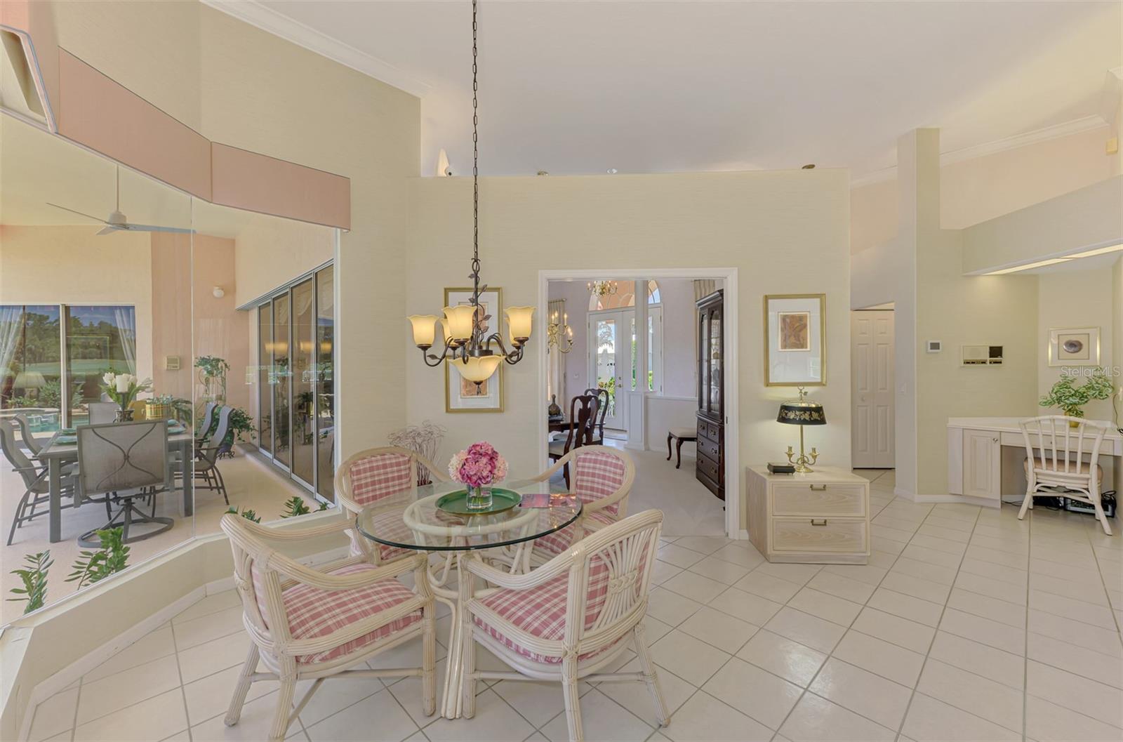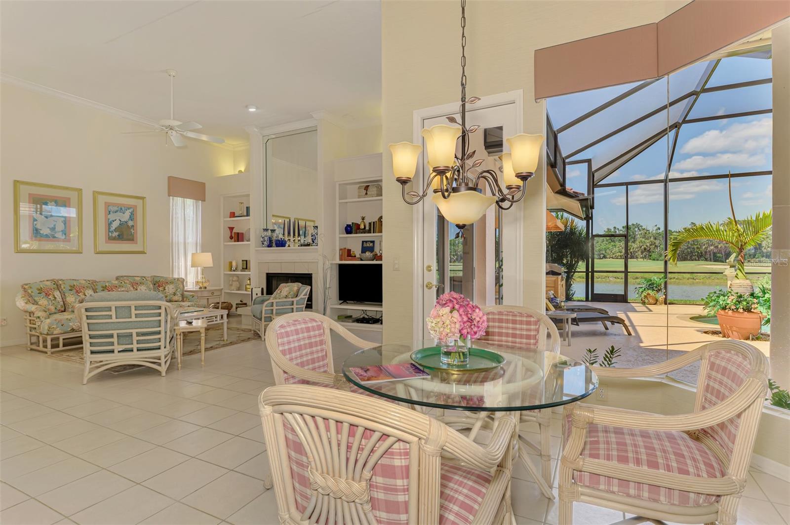 Welcome to 407 Fieldstone Dr; this luxurious home with 12-foot soaring ceilings that will make you feel as if you are in a home bigger than life! The view from the entrance of this property will take your breath away as the disappearing wall opens this home to the outside water and coveted 18th hole golf course view! Spaciously laid out with the primary bedroom and bath to the right, providing two walk-in closets and double sinks with a make-up vanity, spacious water closet with a bidet, walk-in shower, and separate garden tub. The split floor plan offers privacy with two guest bedrooms on the other side of the home. One-bedroom doubles as an office/den and the guest bath is a perfect pool bath as well! Formal living and Dining room brag of natural light and show off the fabulous views of this property and has a WOW factor for entertaining that everyone will envy. The kitchen and family room combo is ideal for relaxing by the fireplace and features a dinette area with aquarium glass for scenic views. Oversized lanai and huge pool will provide countless memories with friends and family to come. The new outside kitchen made with teak wood will be a joy for the cook in the family and the NEW ROOF finished in Dec., 2024 has a 20 yr. transferrable (workmanship) warranty which will provide a sense of security for the new owner for years to come! Home has been painted on outside and the lanai cage replaced. THIS HOME HAS A FULL THREE CAR GARAGE! VGCC is a member-owned PRIVATE COUNTRY CLUB WITH 589 homes. Membership IS MANDATORY. Meet and make new friends for dining or after golf in the renovated clubhouse that offers both casual and formal dining. There is a casual bar for meeting with friends or an exclusive bar for higher-end wines and bourbon. On cooler evenings, gather around the fire pit with friends, enjoying the views across water to the 18th green. Work out in the newly enlarged Wellness Center with state-of-the-art equipment and on-site physical therapist, massage therapist, personal trainers and a wide variety of fitness classes. The club has a unique "U" program that offers cultural and learning events and there is mahjong, bridge, bocce, book club, wine club, in addition to golf, tennis and pickleball leagues. With easy access from I-75 and centrally located between Tampa/Sarasota and Punta Gorda/ Ft. Myers airports, this mature community is only 5 miles from charming downtown Venice and 20 miles from culturally rich Sarasota. Venice Golf and Country Club is an award-winning Certified Audubon Geo Cooperative Sanctuary with 26 lakes/ponds and 13 natural preserves. VGCC is truly a unique community in Southwest Florida, as illustrated by the number of members who have made it their year-round home. Come enjoy the lifestyle of this GREAT community! LIVE IT, LOVE IT, OWN IT!