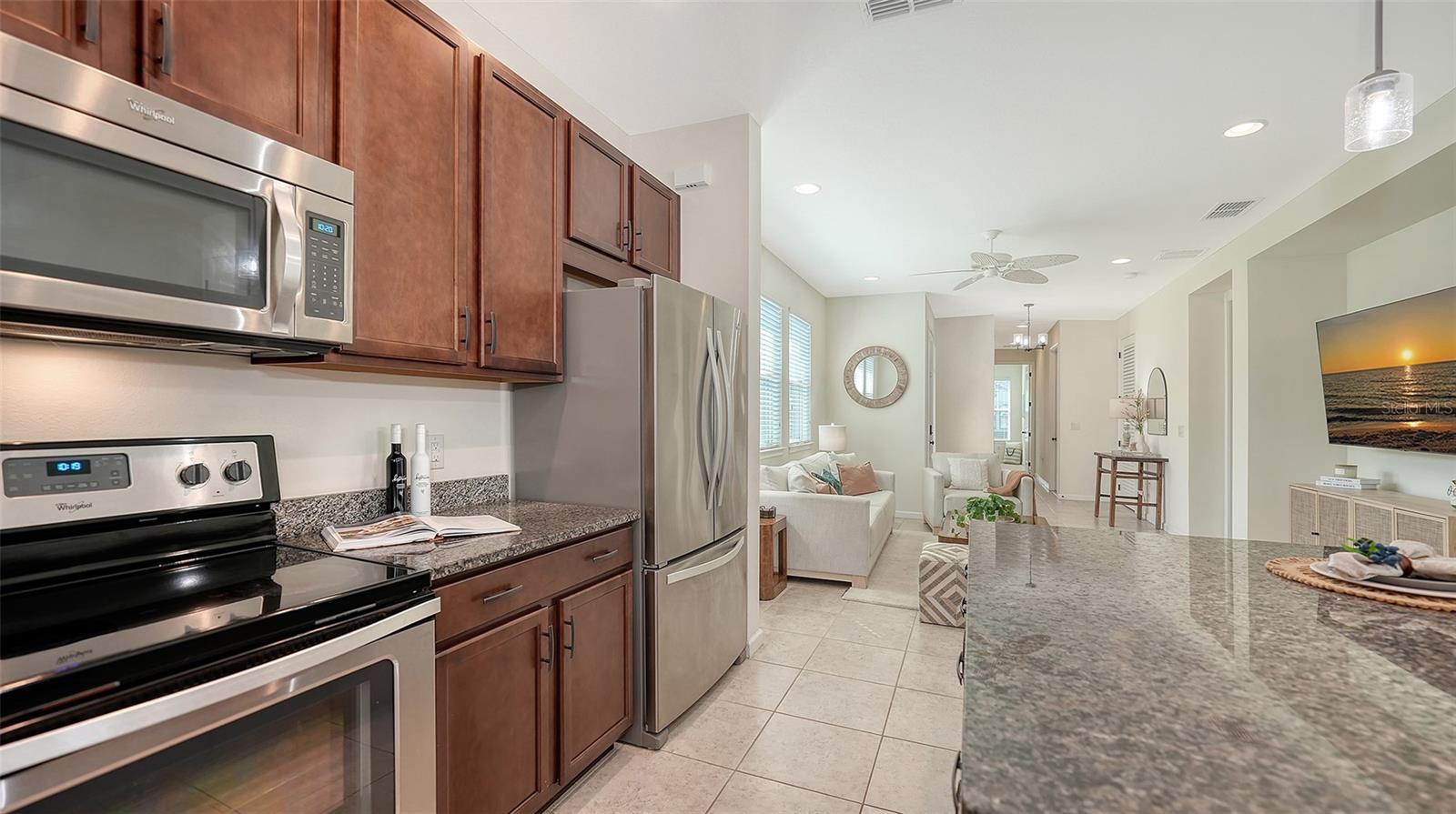 Welcome to 11847 Meadowgate Place - where charm meets convenience in the heart of Lakewood Ranch! This beautifully maintained end-unit villa offers 2 bedrooms, 2 baths, and a 2-car garage across 1,333 square feet of thoughtfully designed living space. Furnishings included. Built in 2016 and nestled in the desirable Harmony at Lakewood Ranch community, this home blends modern style with easy, low-maintenance living. Step inside to an inviting open-concept layout with tile flooring throughout the main living areas, creating a seamless flow from the bright living room to the gourmet kitchen. Perfect for cooking and entertaining, the kitchen features granite countertops, premium cabinetry, and ample storage. The spacious primary suite is your personal retreat, complete with a spa-like en suite bath, dual sinks, Corian countertops, and a large walk-in shower. Guests will appreciate the privacy of a front-facing bedroom with its own full bath, ideal for anyone. Enjoy Florida's year-round sunshine from the newly screened-in lanai--a peaceful spot for your morning coffee or evening unwind. The spacious 2-car garage features sleek epoxy flooring, storage solutions, and a convenient slop sink--perfect for weekend projects or keeping tidy and organized. Living in Harmony means you'll have access to a resort-style community clubhouse, heated pool, fitness center, and event space. Plus, lawn care and irrigation are included, giving you more time to enjoy the beautiful surroundings. Located minutes from top-rated schools, premier shopping, dining, medical care, I-75 access, and local parks and golf courses, this home truly offers the best of Lakewood Ranch living.