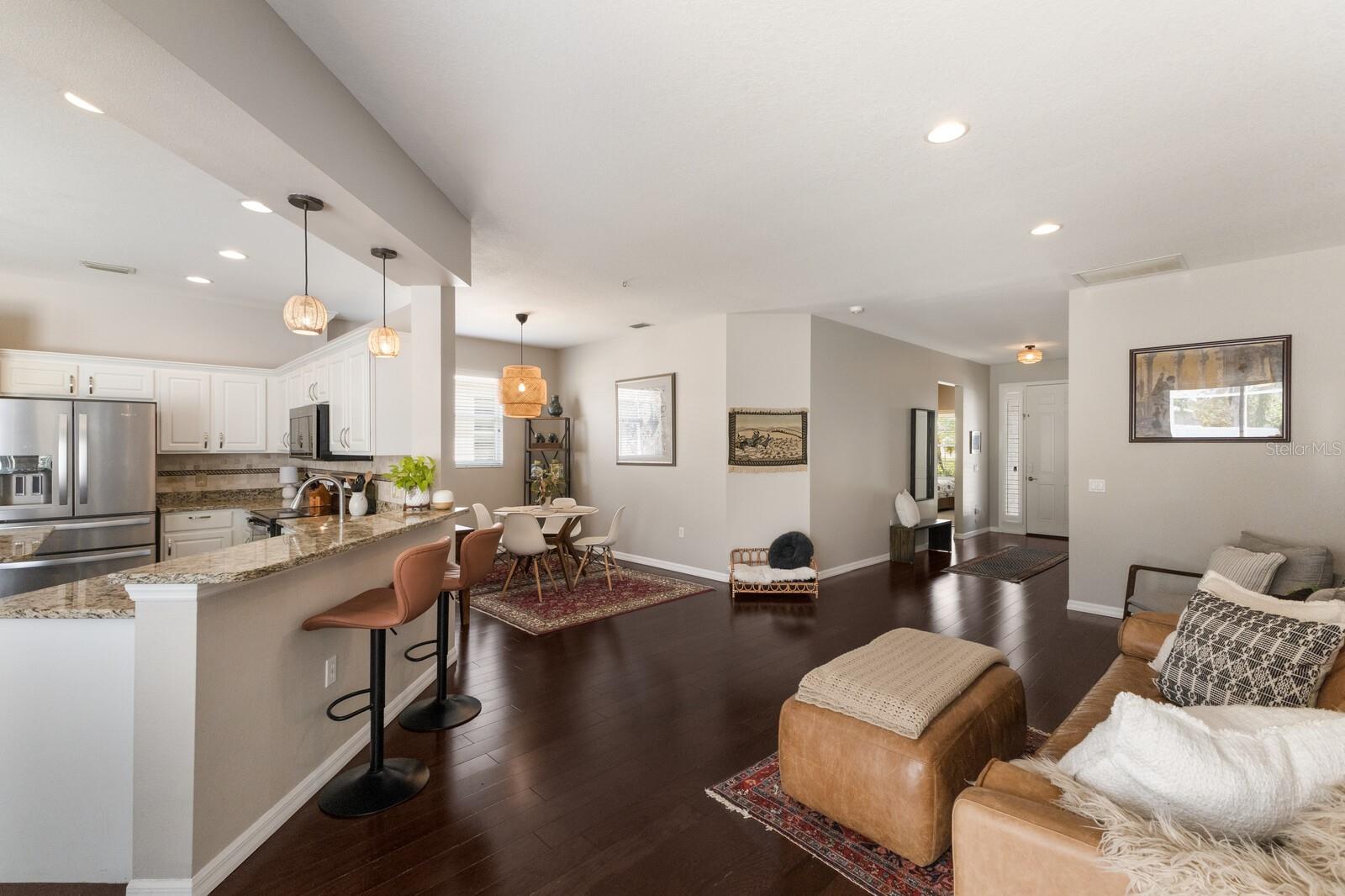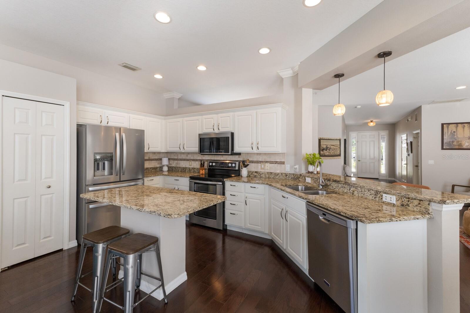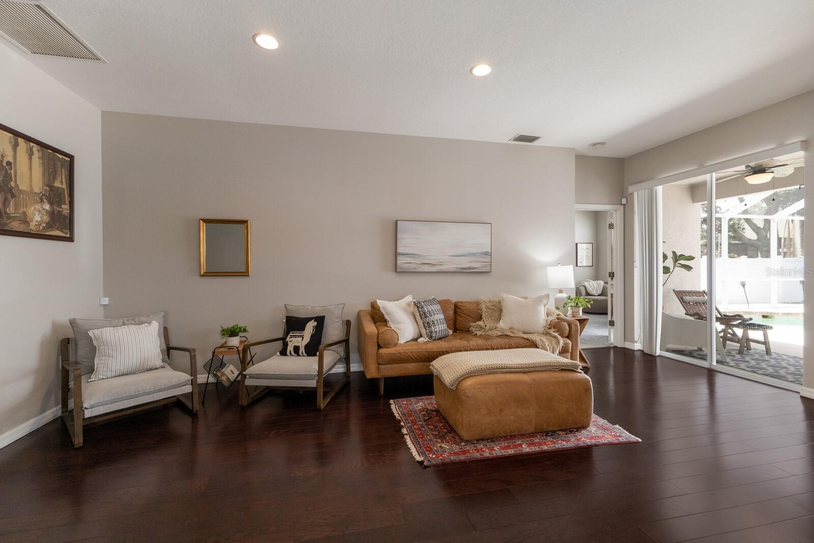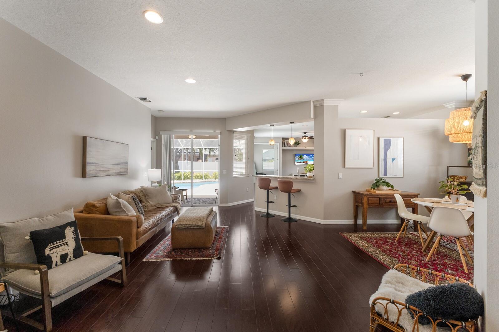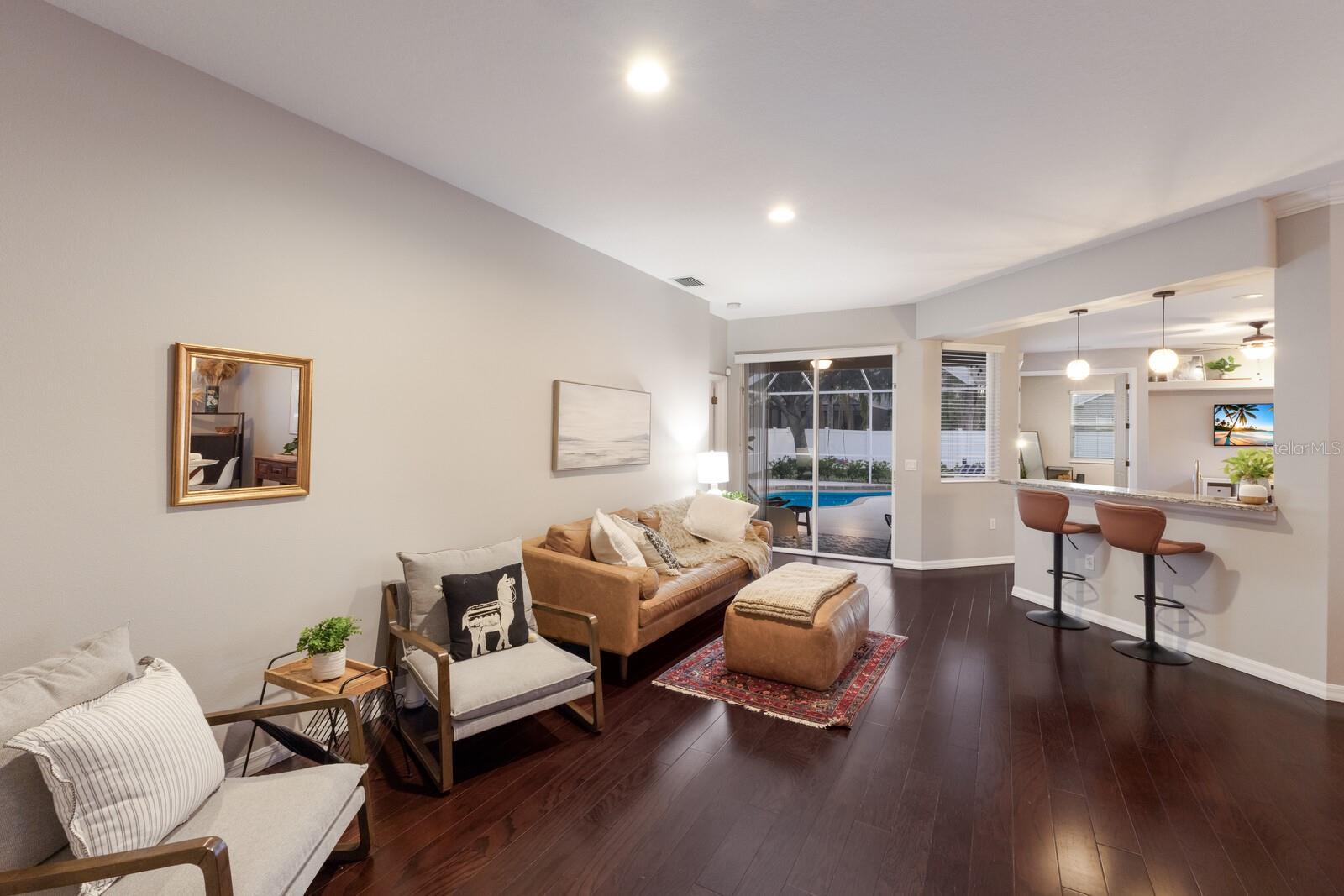Situated in the highly desirable community of Greenbrook Village, this well maintained three-bedroom home built by Bruce Williams is the perfect blend of comfort, style, and functionality. Featuring a newer roof (2022), a spacious home office/den, a private heated, salt-water pool, and a fully fenced backyard, this residence truly has it all. Step inside to discover a thoughtfully designed floor plan that makes the most of every square foot. Engineered hardwood floors and neutral finishes create a light, cohesive feel throughout the home. The open-concept kitchen features white cabinetry, granite countertops, stainless steel appliances, a center island, and breakfast bar. Multiple sliding doors from the living room, family room, and owner's suite open directly to the lanai and pool area--blending indoor comfort with outdoor living, just the way Florida intended. Whether you're relaxing poolside or hosting friends, this home is built for making memories. The owner's suite is a serene retreat with a spacious layout, large walk-in closet, and an en suite bath complete with dual sinks, soaking tub, and walk-in shower. Two additional bedrooms and a full bath are thoughtfully positioned to provide privacy for family or guests. Need a dedicated workspace, playroom or home gym? You'll love the bright bonus room at the back of the home, featuring a large window with views of the backyard. Enjoy the best of Florida living in your heated, saltwater pool and fully fenced backyard, perfect for pets, kids, or simply soaking up the sun. RECENT UPGRADES include: pool heater (2025), pool salt water conversion (2023), lanai deck resurfaced (2024), new carpet in the bedrooms (2024), interior painted (2023), exterior painted (2024), a UV light added to the A/C (2024) and updated landscaping. This home is also equipped with smart features like a Blink doorbell, smart light switches, and a smart garage door opener, for added convenience. Located in Greenbrook, you'll enjoy top-rated schools, community parks, playgrounds, ball fields, sand volleyball courts, dog parks, and more--all just minutes from Lakewood Ranch's vibrant town center, top-rated golf courses, shopping and dining. Zoned for McNeal Elementary, Nolan Middle, and Lakewood Ranch High School, and with an HOA fee of just $115/year, this home is a must-see!