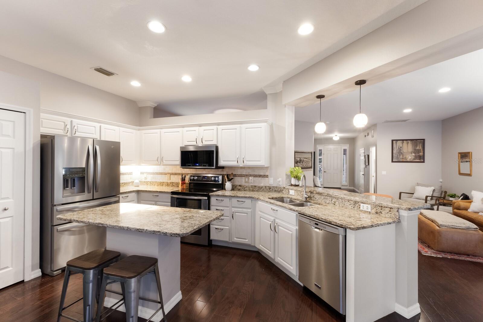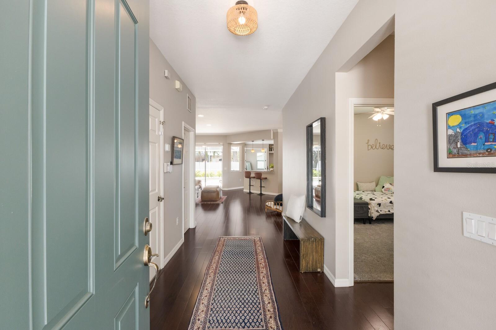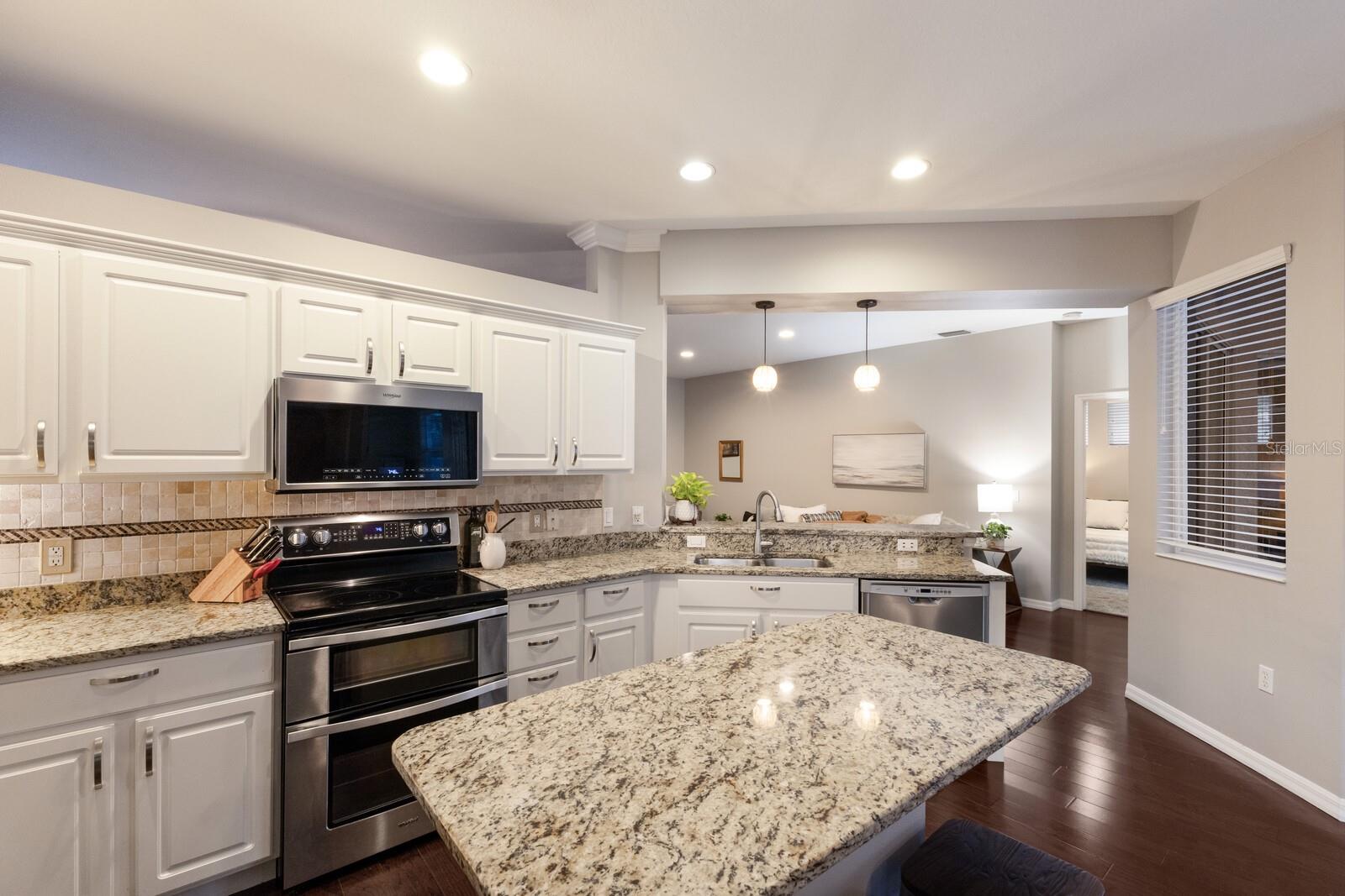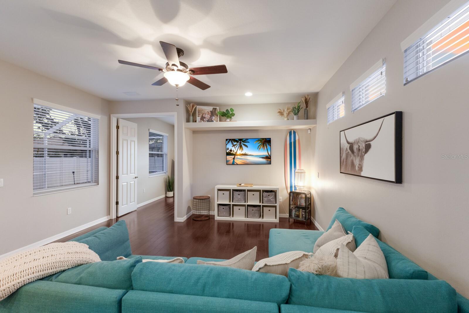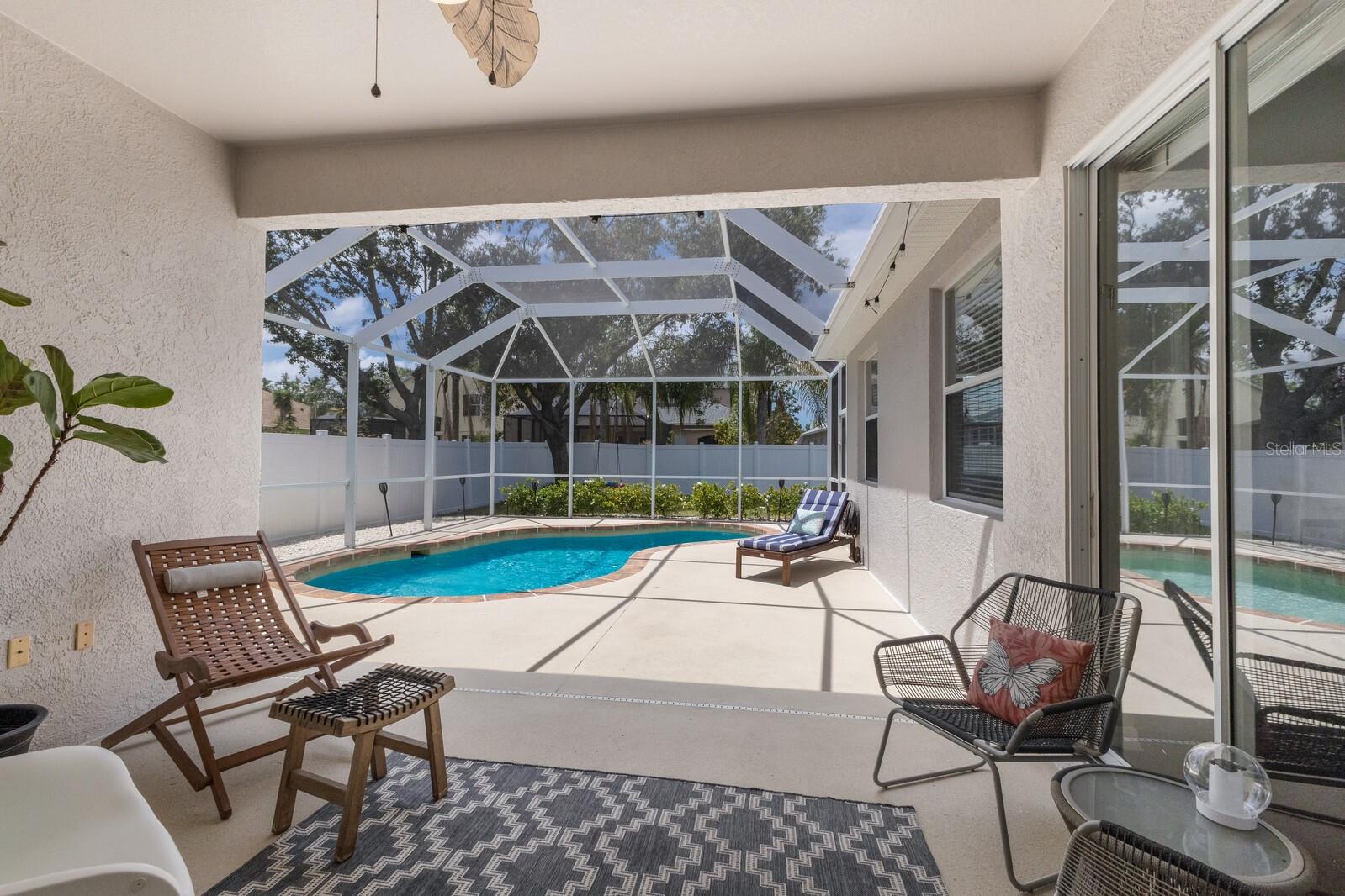 Situated in the highly desirable community of Greenbrook Village, this well maintained three-bedroom home built by Bruce Williams is the perfect blend of comfort, style, and functionality. Featuring a newer roof (2022), a spacious home office/den, a private heated, salt-water pool, and a fully fenced backyard, this residence truly has it all. Step inside to discover a thoughtfully designed floor plan that makes the most of every square foot. Engineered hardwood floors and neutral finishes create a light, cohesive feel throughout the home. The open-concept kitchen features white cabinetry, granite countertops, stainless steel appliances, a center island, and breakfast bar. Multiple sliding doors from the living room, family room, and owner's suite open directly to the lanai and pool area--blending indoor comfort with outdoor living, just the way Florida intended. Whether you're relaxing poolside or hosting friends, this home is built for making memories. The owner's suite is a serene retreat with a spacious layout, large walk-in closet, and an en suite bath complete with dual sinks, soaking tub, and walk-in shower. Two additional bedrooms and a full bath are thoughtfully positioned to provide privacy for family or guests. Need a dedicated workspace, playroom or home gym? You'll love the bright bonus room at the back of the home, featuring a large window with views of the backyard. Enjoy the best of Florida living in your heated, saltwater pool and fully fenced backyard, perfect for pets, kids, or simply soaking up the sun. RECENT UPGRADES include: pool heater (2025), pool salt water conversion (2023), lanai deck resurfaced (2024), new carpet in the bedrooms (2024), interior painted (2023), exterior painted (2024), a UV light added to the A/C (2024) and updated landscaping. This home is also equipped with smart features like a Blink doorbell, smart light switches, and a smart garage door opener, for added convenience. Located in Greenbrook, you'll enjoy top-rated schools, community parks, playgrounds, ball fields, sand volleyball courts, dog parks, and more--all just minutes from Lakewood Ranch's vibrant town center, top-rated golf courses, shopping and dining. Zoned for McNeal Elementary, Nolan Middle, and Lakewood Ranch High School, and with an HOA fee of just $115/year, this home is a must-see!