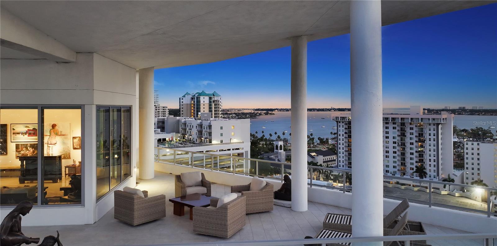 Sky-High Sophistication in Downtown Sarasota...Discover the pinnacle of luxury living in this rare penthouse condo with 2,803 square feet of modern elegance with panoramic bay views in the heart of Downtown Sarasota. This 3-bedroom, 3.5-bath residence stuns with floor-to-ceiling windows, a dynamic open layout, and designer finishes throughout. The main living area is built for both luxury and comfort, with sweeping views and natural light that transform every sunset into a private spectacle. The chef's kitchen features sleek European cabinetry, premium appliances, and an oversized island--ideal for entertaining or quiet evenings in. The primary suite is a true retreat, complete with a spa-caliber en-suite and unobstructed water views. Two additional bedrooms with privacy and style for guests or family. Step outside to a impressive 1,450-square-foot wraparound terrace--your private perch for al fresco dining, lounging, and stargazing. Just floors below, access the exclusive amenities for the building. Downtown Sarasota offers a vibrant mix of dining, shopping, and culture--steps from your sky-high sanctuary. This is more than a residence--it's a lifestyle where city energy meets water view calm, and every evening ends with a front-row sunset.