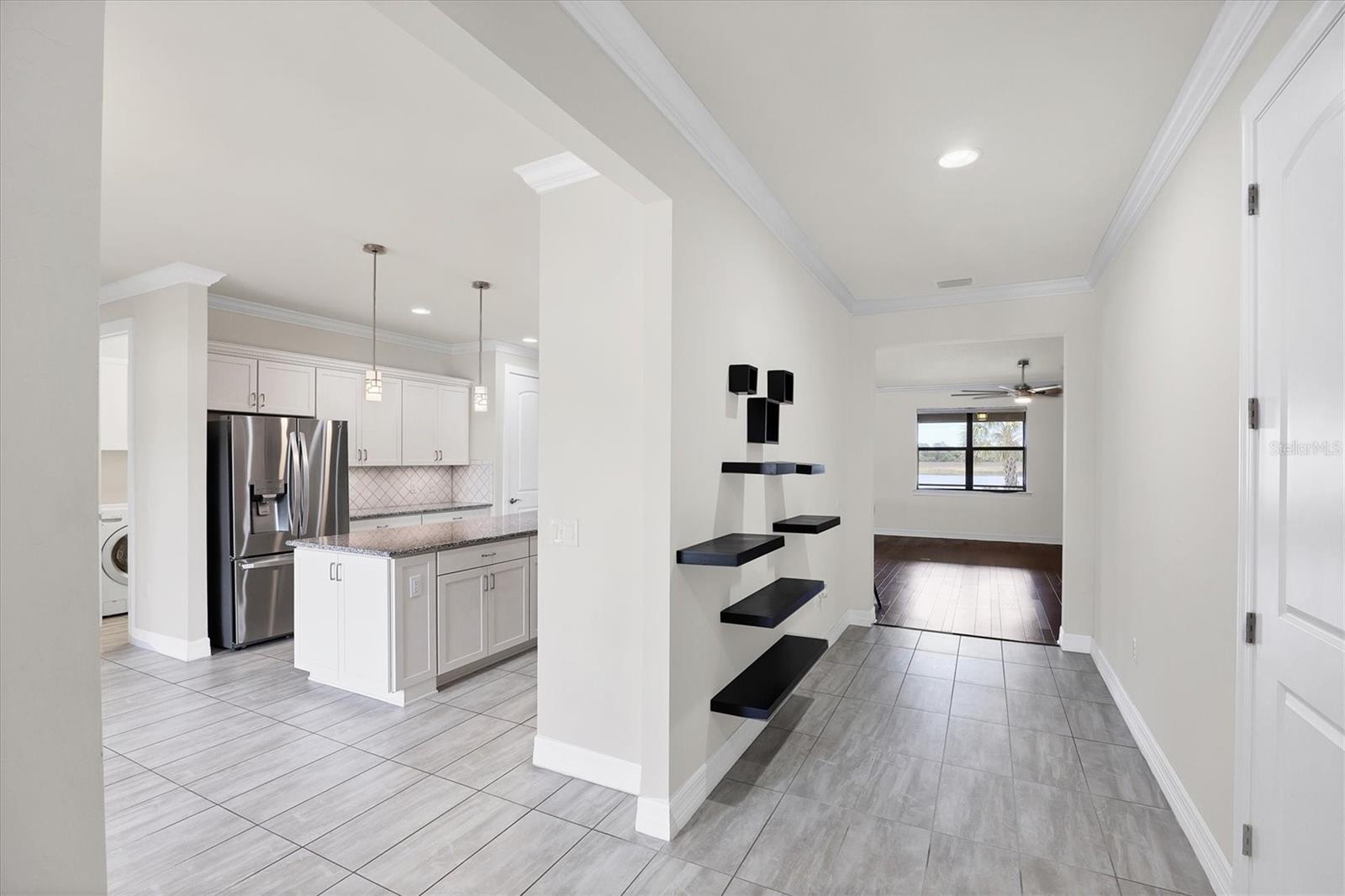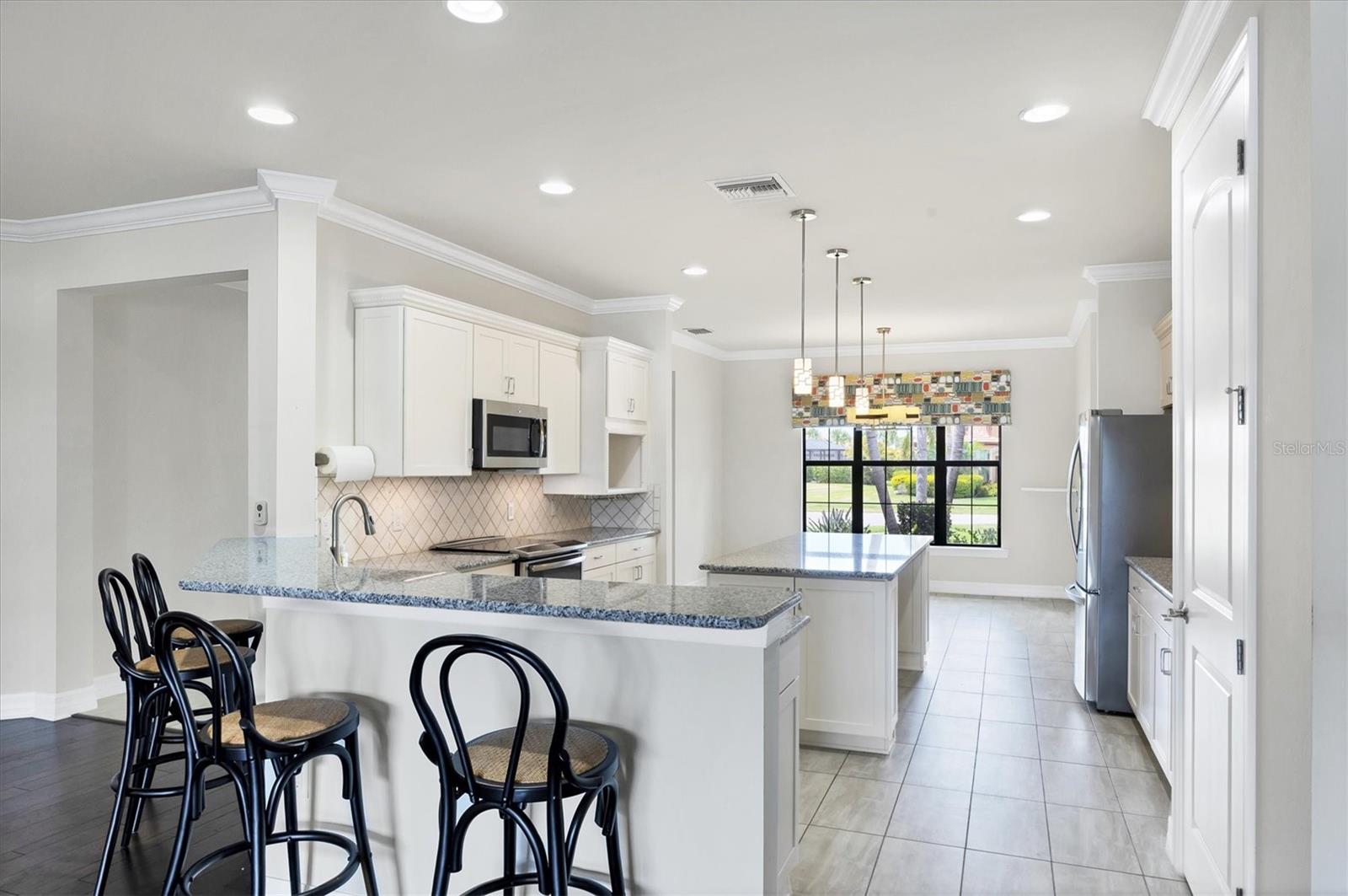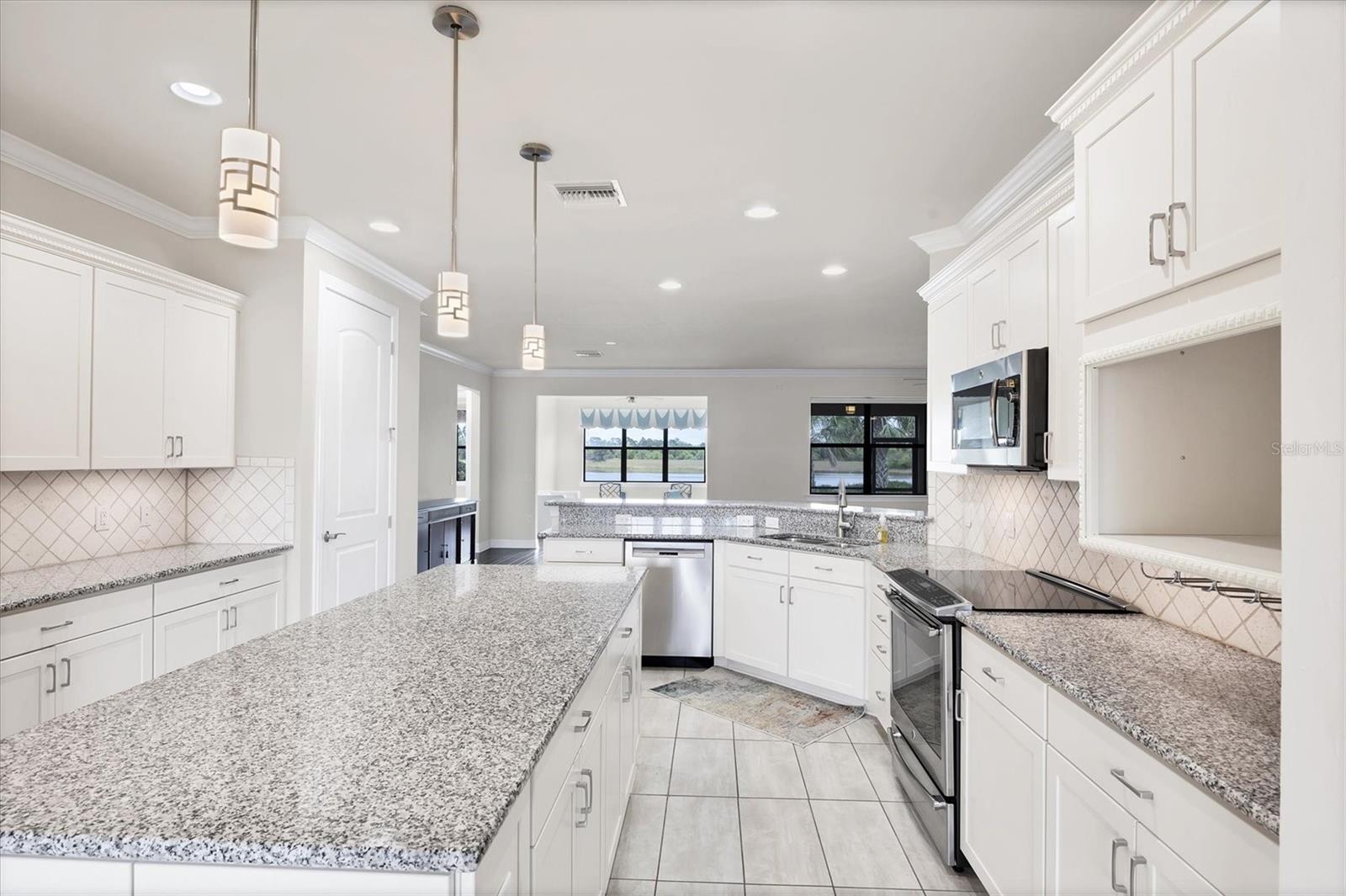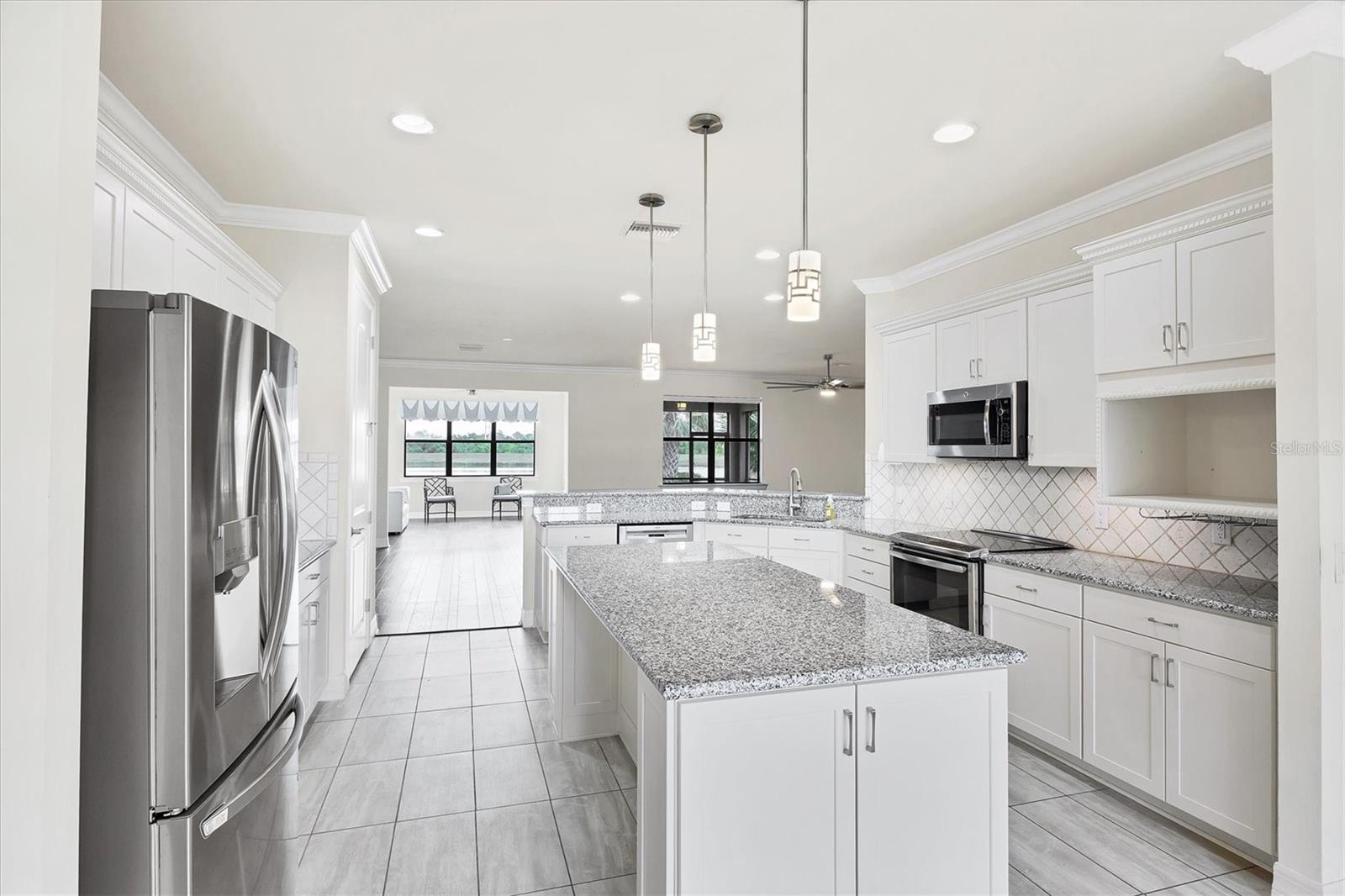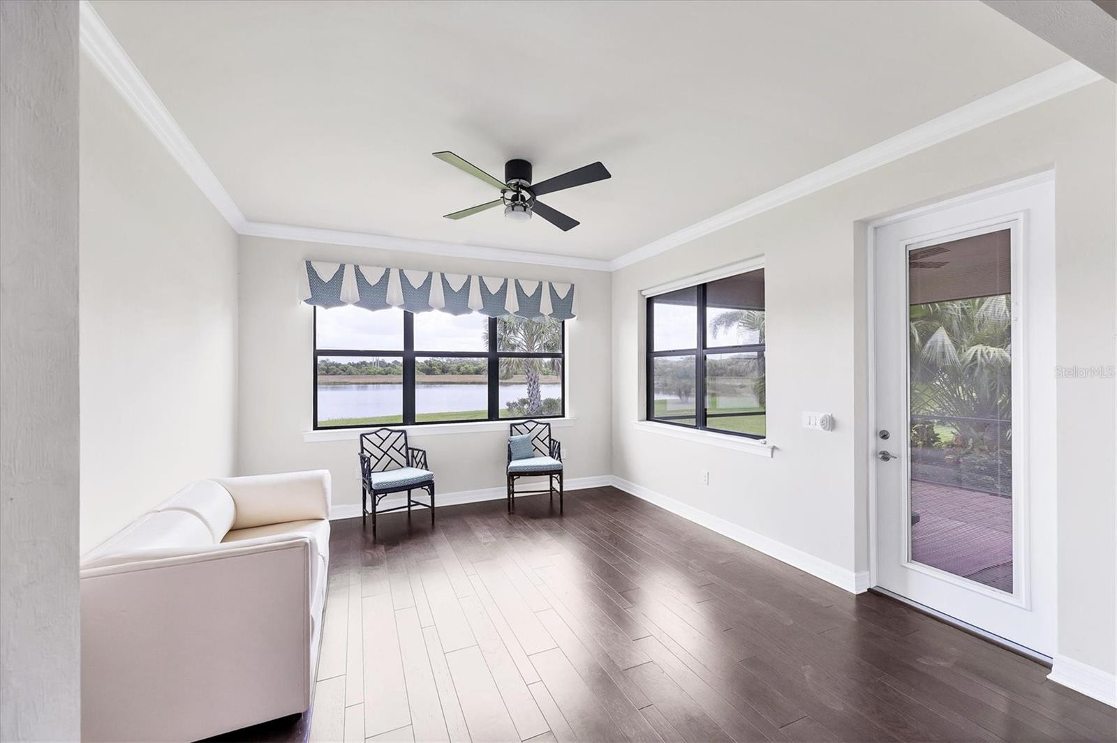 GREAT BUY ALERT!! 3 CAR GARAGE, FRESHLY PAINTED EXTERIOR, No Stairs to walk up, Lots of Upgrades and situated on a PRIME WATERFRONT LOT. Seller will pay for buyers HOA fees for a year. Welcome home to 5923 Snowy Egret Dr, located in the highly sought-after gated community of Sandhill Preserve on Palmer Ranch. This stunning maintenance-free home sits on one of the premier lakefront lots in the neighborhood, offering expansive water views and desirable Northeast exposure. With nearly 2,800 sq. ft. of well-designed living space, this split floor plan offers both privacy and functionality. Inside, you'll find an abundance of upgrades including elegant crown molding, neutral tile, and hardwood flooring throughout. The chef's kitchen is a showstopper, featuring custom shaker cabinetry, granite countertops, stainless steel appliances, and ample storage space.The spacious great room and dining area flow seamlessly for easy entertaining, while the screened and pavered lanai provides a peaceful retreat to enjoy the serene lake views. The three-car garage comes finished with durable epoxy flooring, perfect for additional storage or hobbies. Sandhill Preserve is known for its exceptional resort-style amenities. Residents enjoy a beautiful clubhouse, state-of-the-art fitness center, resort-style pool, tennis and pickleball courts, fire pit lounge, and a lively calendar of social events. The community is also guard-gated for added peace of mind and safety. This home is ideally situated just minutes from a brand-new Publix and Costco, the world-famous beaches of Siesta Key, and vibrant downtown Sarasota, this home truly offers the best of Florida living. The remaining furnishings in the home are included if the buyer wants them.