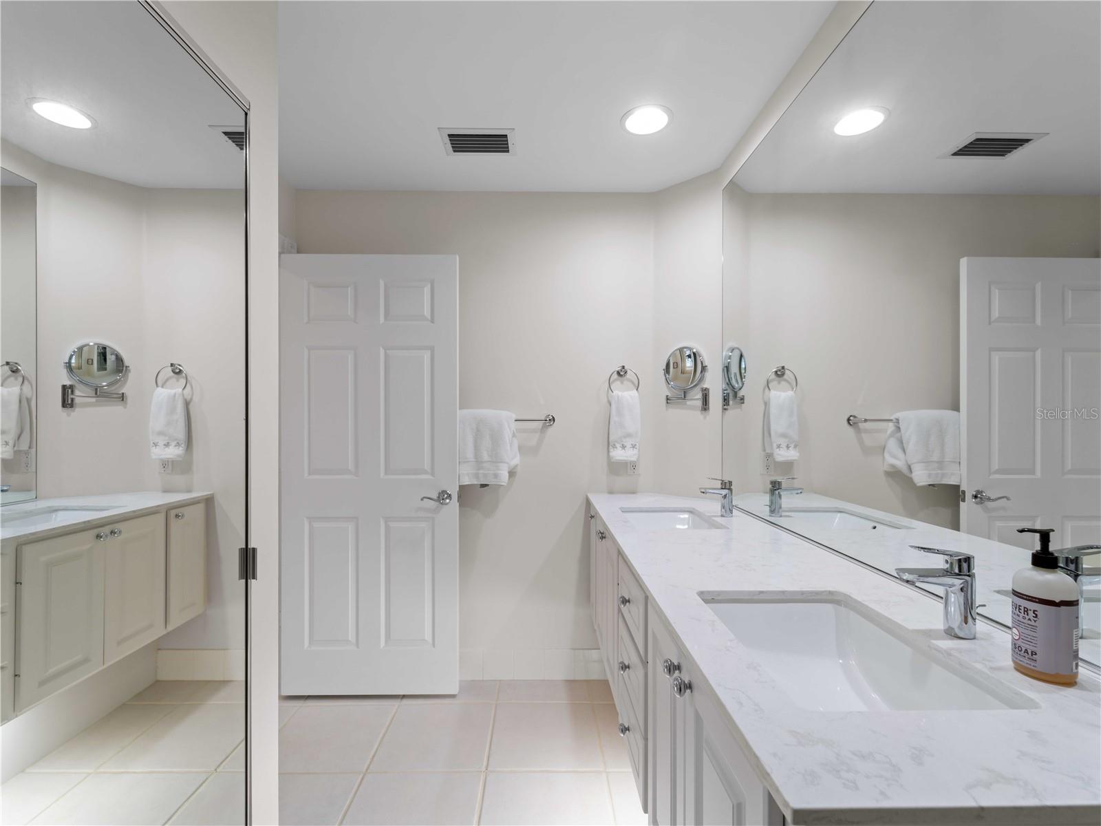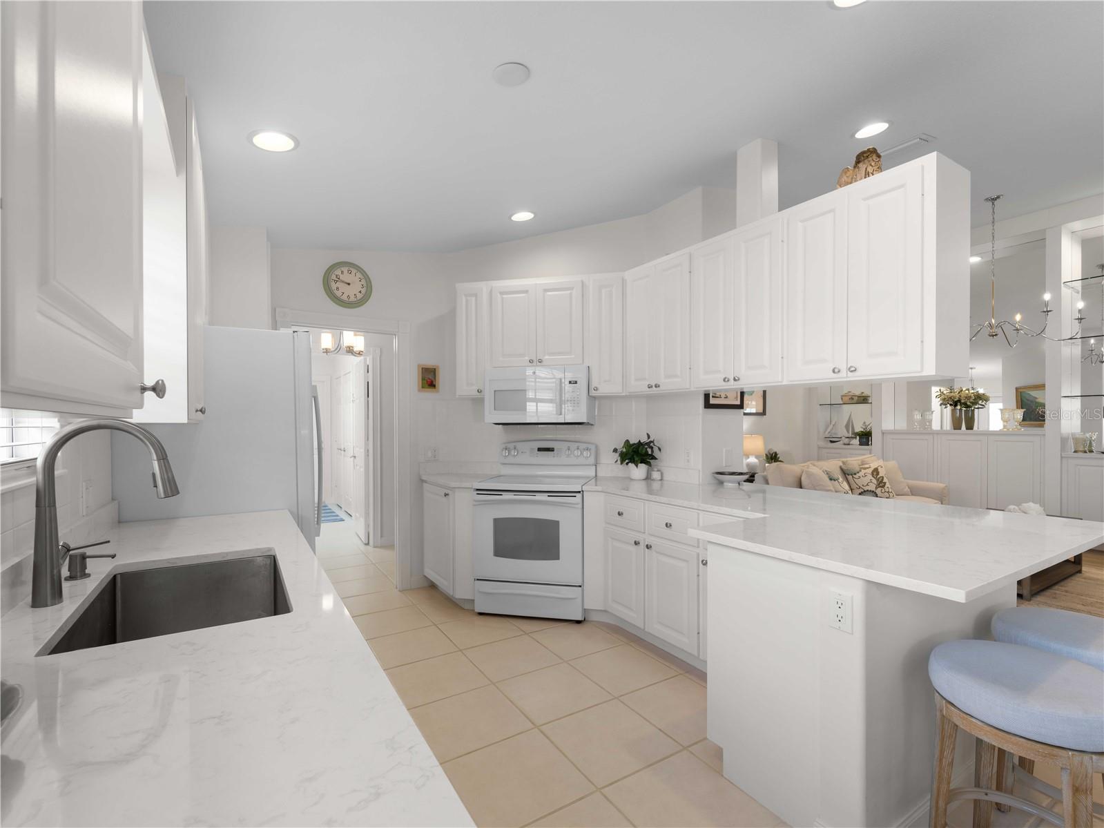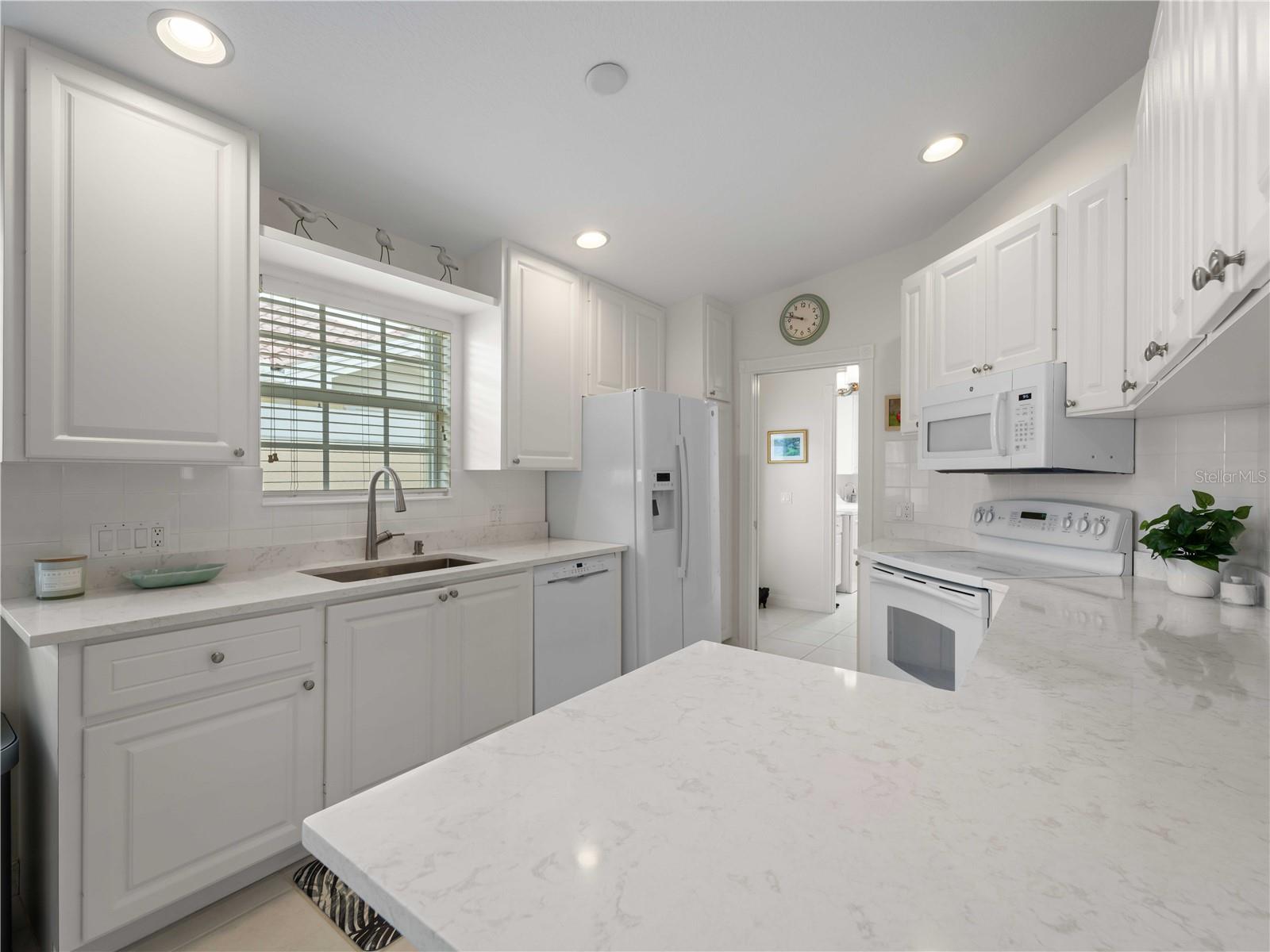 Move right into this stunning, spacious, clean, open and bright maintenance-free, 2 bedroom 2 bathroom extended Capri III model. This absolutely gorgeous home has many updates and so much to offer!!! To begin, the kitchen and bathrooms feature updated gorgeous Cambria quartz countertops. There is tile flooring throughout the entire home. The kitchen is perfectly positioned for entertaining overlooking the great room, dining room, extended family room with sliding glass doors that lead to your very private screened lanai and a beautifully landscaped backyard perfect for family cookouts. The split bedroom arrangement offers two master suites, walk-in closets, updated bathroom countertops, and under-counter lighting. Just when you think this beauty cannot be more perfect, you will find hurricane shutters, a central vacuum, and a freshly painted interior!! Village Walk is one of Sarasota's premier resort-style communities offering a 24-hour guarded gate, 2 geo-thermal heated and cooled pools (lagoon and lap), 6 Har-Tru tennis courts, clubhouse, state-of-the-art fitness center, 2 pickleball courts, and miles of walking/biking trails. In The Town Center you will find a cafe, card room, library, ballroom, arts and crafts studio, gas station, hair salon/barber shop, post office, and a gift shop/boutique! Village Walk is one of the best-managed communities in Palmer Ranch, and also has among the lowest HOA fees! Such a wonderful location, just minutes to shopping, restaurants, the Legacy Bike Trail, A-rated schools, fantastic golf courses, and Sarasota's famous Siesta Key Beach as well as quiet Nokomis Beach on South Casey Key! What a fun, healthy, affordable neighborhood, so conveniently located, that has all this to offer!!