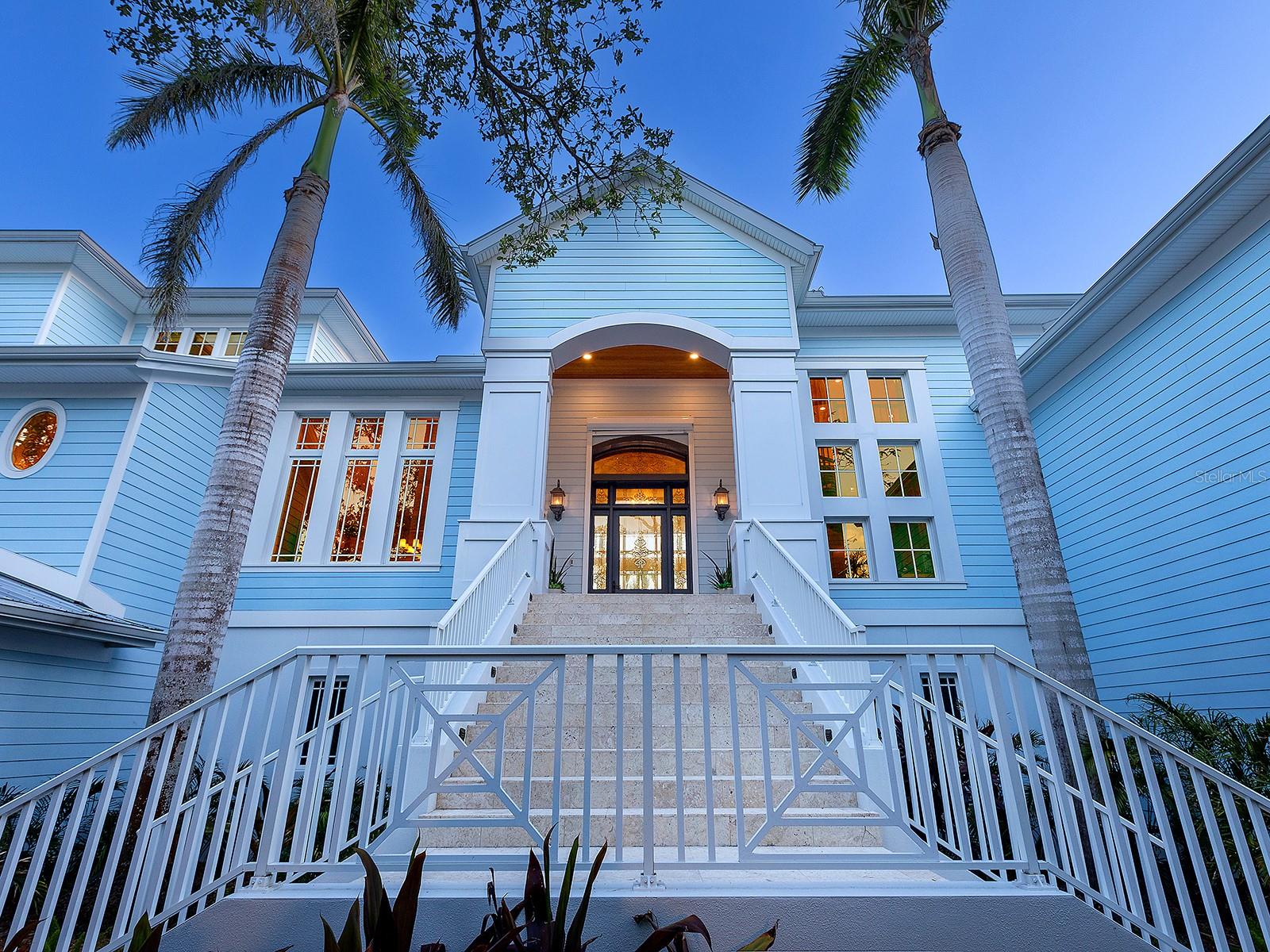 Positioned along a deepwater canal in the private, tree-lined enclave of Hidden Harbor on Siesta Key, this remarkable estate captures the essence of timeless coastal architecture and elevated Florida living. With a design that transcends trends and nearly 7,000 square feet of thoughtfully curated interiors, the home embodies a sense of enduring sophistication, where natural materials, warm textures and elegant proportions create an atmosphere that is refined and welcoming. Just over a mile from the world-renowned sands of Siesta Key Beach, this is a home that celebrates the best of Sarasota's lifestyle, a water connection, a celebration of indoor-outdoor living and architectural details that convey quiet luxury. Set on more than half an acre with 135 feet of water frontage, the residence opens with a stunning walnut-domed foyer, where soaring ceilings and floor-to-ceiling windows flood the space with light. Rich finishes--including Birdseye maple, tongue-and-groove cypress tray ceilings, and handcrafted millwork--are woven throughout the home, delivering a consistent sense of quality and character. The kitchen is a dream for chefs and entertainers alike, appointed with quartz countertops, a large center island, professional-grade appliances, a built-in espresso machine, and a walk-in butler's pantry that seamlessly connects to formal and casual living areas. The owner's suite is a private retreat, complete with a sitting room, dual walk-in closets, a spa-style bath with steam shower and a peaceful balcony overlooking the water. Each of the four guest suites offers its own en-suite bathroom and generous closet space, with three featuring walk-in closets and one boasting a built-in wall closet, ensuring privacy and comfort. Whether you need a quiet office, a vibrant game room or a cozy retreat, the bonus room, game room and loft offer the flexibility to suit your lifestyle. True to its coastal character, the home opens fully to expansive covered terraces designed for year-round enjoyment. Retractable screens, a wood-paneled ceiling, integrated fans, and ambient lighting create an outdoor living room atmosphere, complete with a fireplace and a full summer kitchen with built-in grill and bar seating. Beyond, the resort-style pool and raised spa are surrounded by tropical landscaping and natural stone decking, with multiple lounge areas designed for sun and shade. A custom fire pit anchors the space, offering a cozy, elegant setting for evening gatherings with water views. Water enthusiasts will appreciate the boat dock, built to accommodate a large vessel, complete with a boat lift. With quick access to the Intracoastal Waterway, the location is as functional as it is beautiful. Below, the expansive under-building garage offers room for more than 10 vehicles across five bays, plus a workshop, EV charging station and golf cart storage. A brand new whole-house generator was installed in June of 2025, creating peace of mind. Set on a quiet cul-de-sac just minutes from Sarasota's best beaches, shopping, dining and cultural destinations, this rare offering is a seamless blend of timeless design, superior craftsmanship and the relaxed elegance of coastal Florida living.