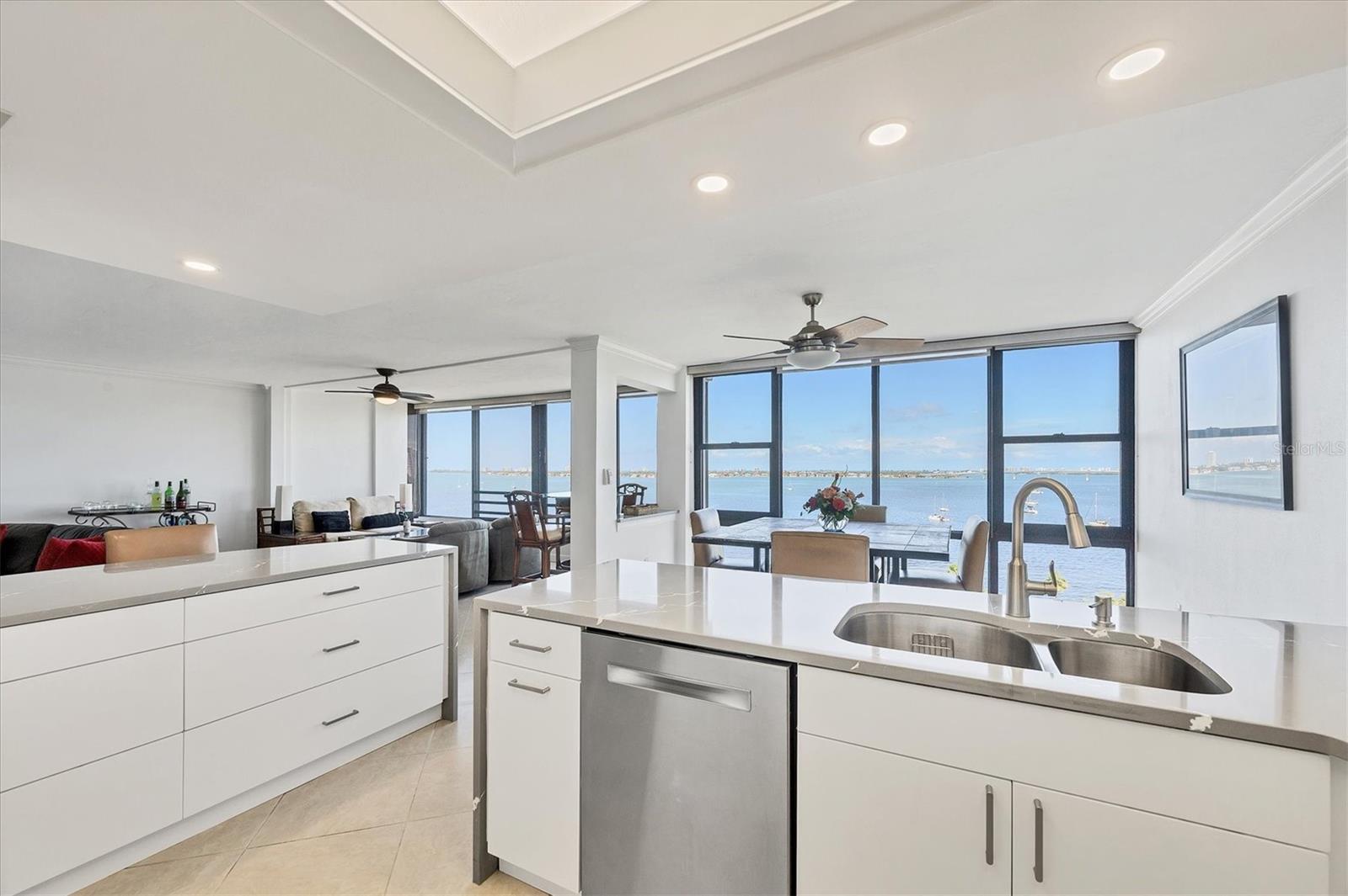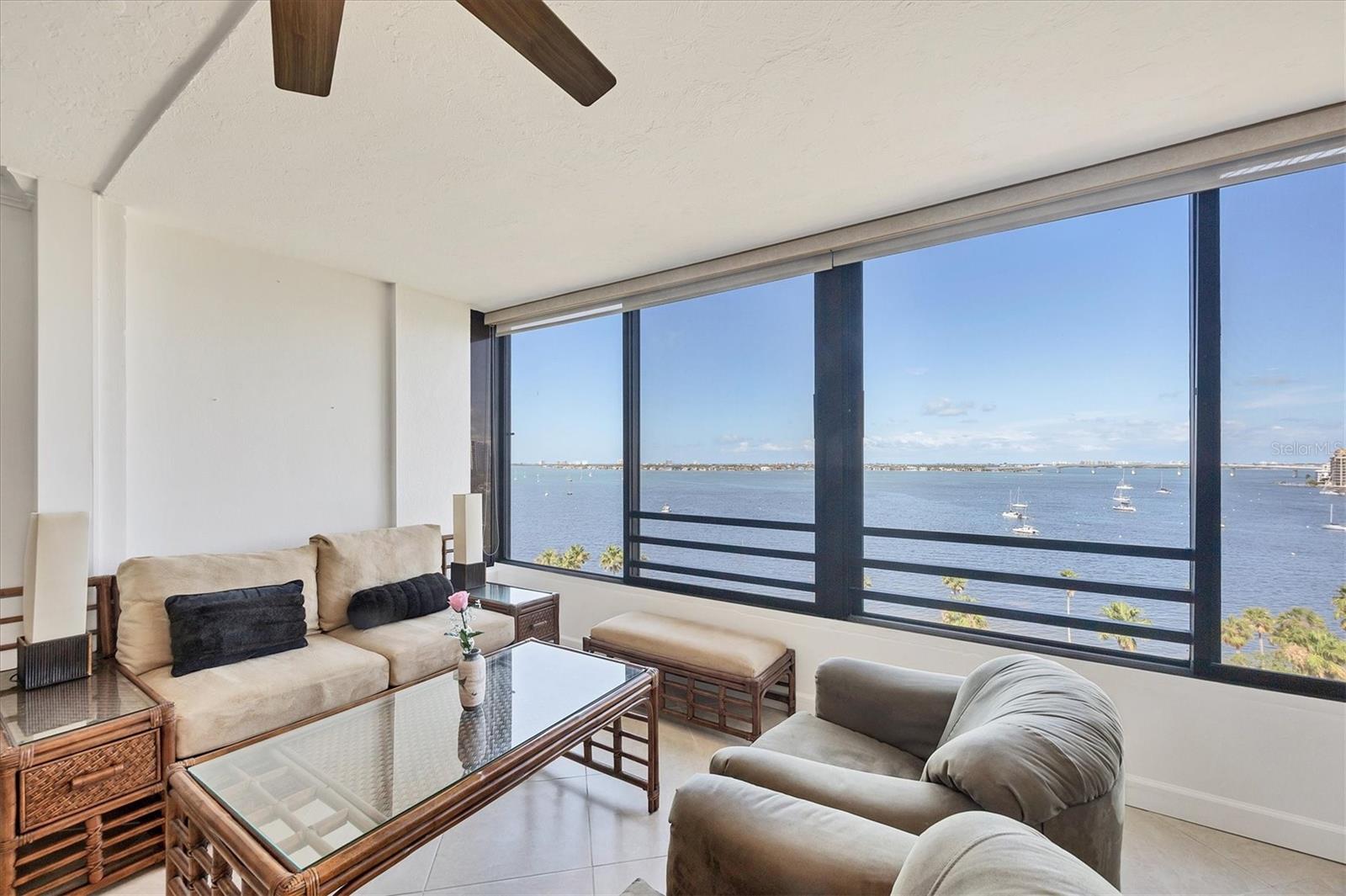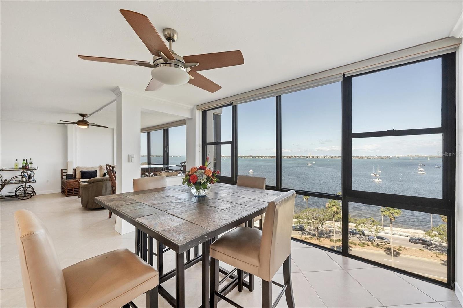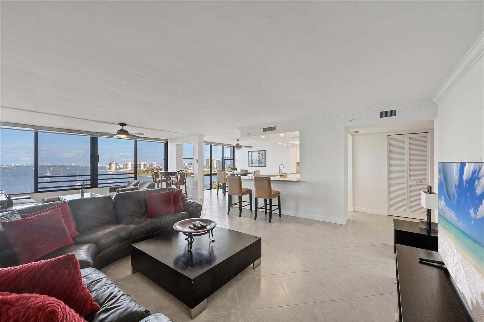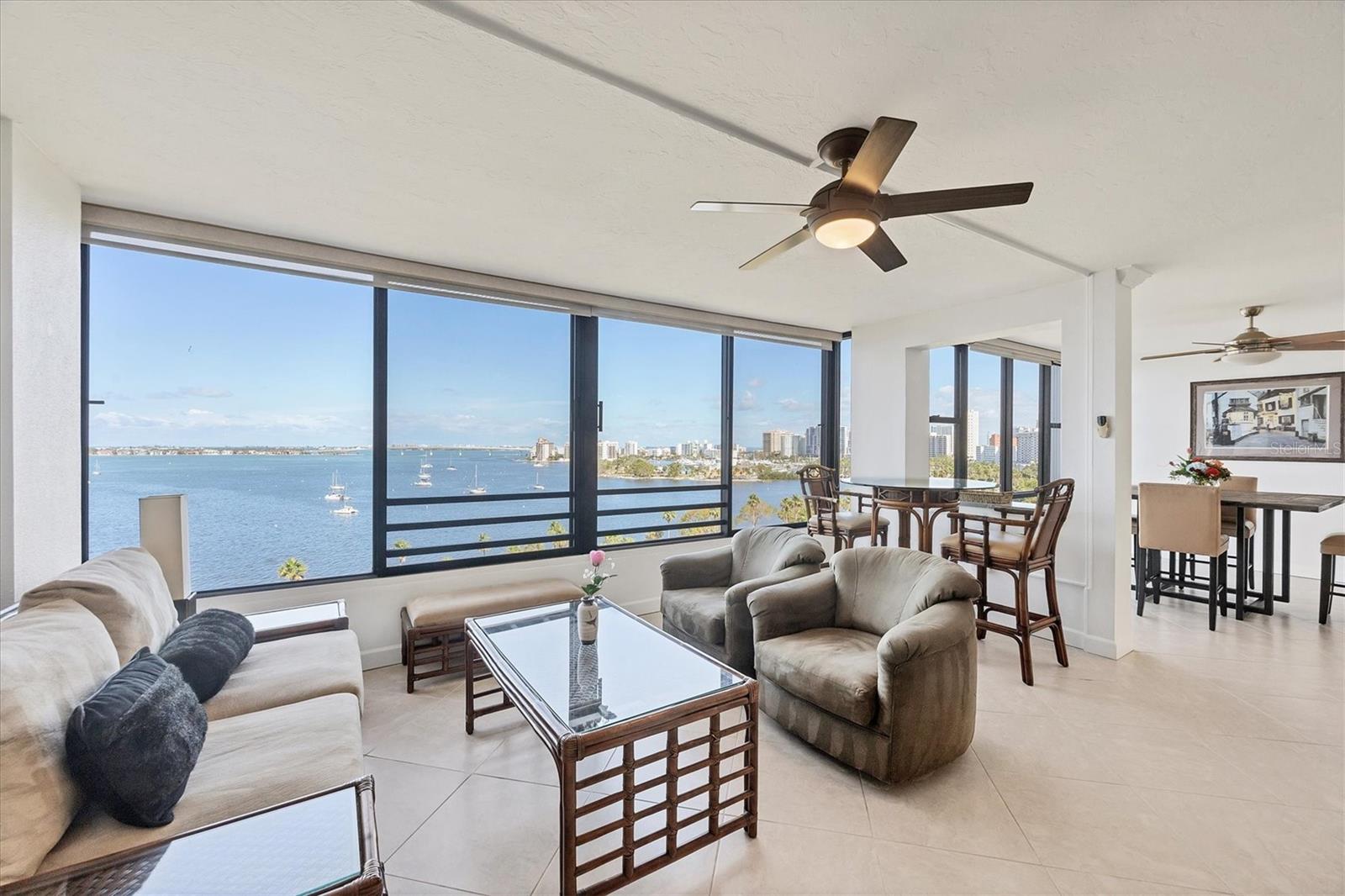 One or more photo(s) has been virtually staged. Open house is cancelled.... Sale pending!!!!Priced below recent sales!!!Stunning 9th floor residence with Million Dollar views. An Iconic building offering an exceptional downtown lifestyle. It's located on Marina Row with the best view of every coveted sight in Sarasota: the open bay, moored sailboats along Bayfront Park, the John Ringling Bridge, Golden Gate Point, Bird Key, Lido Key, Siesta Key, the Gulf of Mexico and Selby Gardens. All units have a semi-private elevator foyer. This renovated and furnished condo will offer an instant feeling of peace as you enter and immediately see the breathtaking and unobstructed views. The main living areas live more like an open concept home than a condo, and with the 30-foot wall of west-facing windows, the views are enjoyed from the living room, sitting area, dining room, and kitchen. Updates include cabinetry, waterfall quartz counters, Bosch appliances, tile floors, appliances and more. The sun truly rises and sets here. Embassy House is a secure, well maintained modern architecture masterpiece. The lobby and amenities have been renovated with luxury mid-century modern finishes, custom furnishings, and artwork specifically curated for the building. Fitness center with views of the bay, conference room with kitchenette, refurbished heated pool, guest parking, electric car charging station, car wash area, grill and outdoor tables are a perfect set of amenities. Everyday can be as relaxed or active as you desire, whether you choose to lounge with coffee or entertain with cocktails while taking in the mesmerizing views or venture out and walk to coffee, restaurants, boutiques, art galleries, along the bayfront, to Marie Selby Botanical Gardens or to the Saturday Farmer's Market. Your best life starts here.