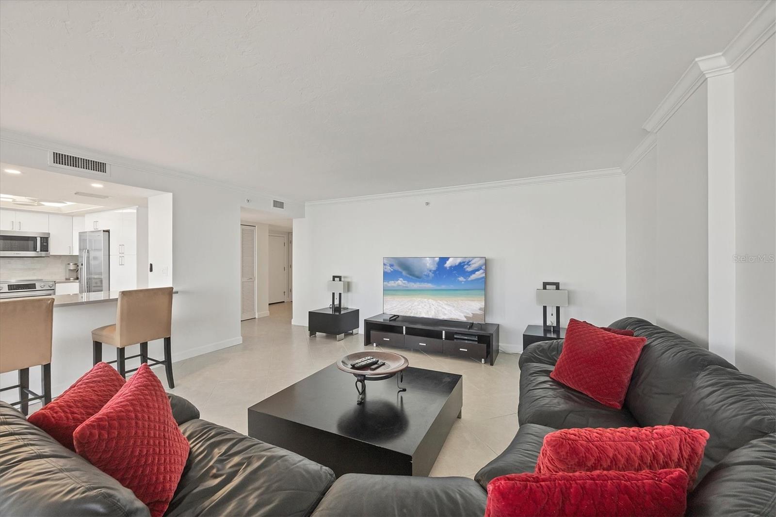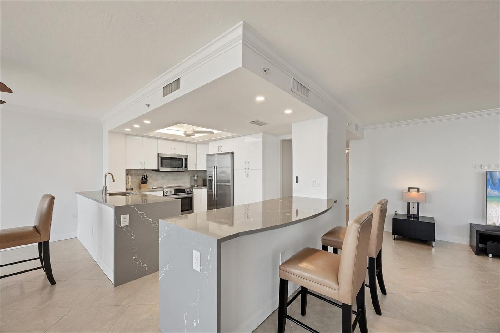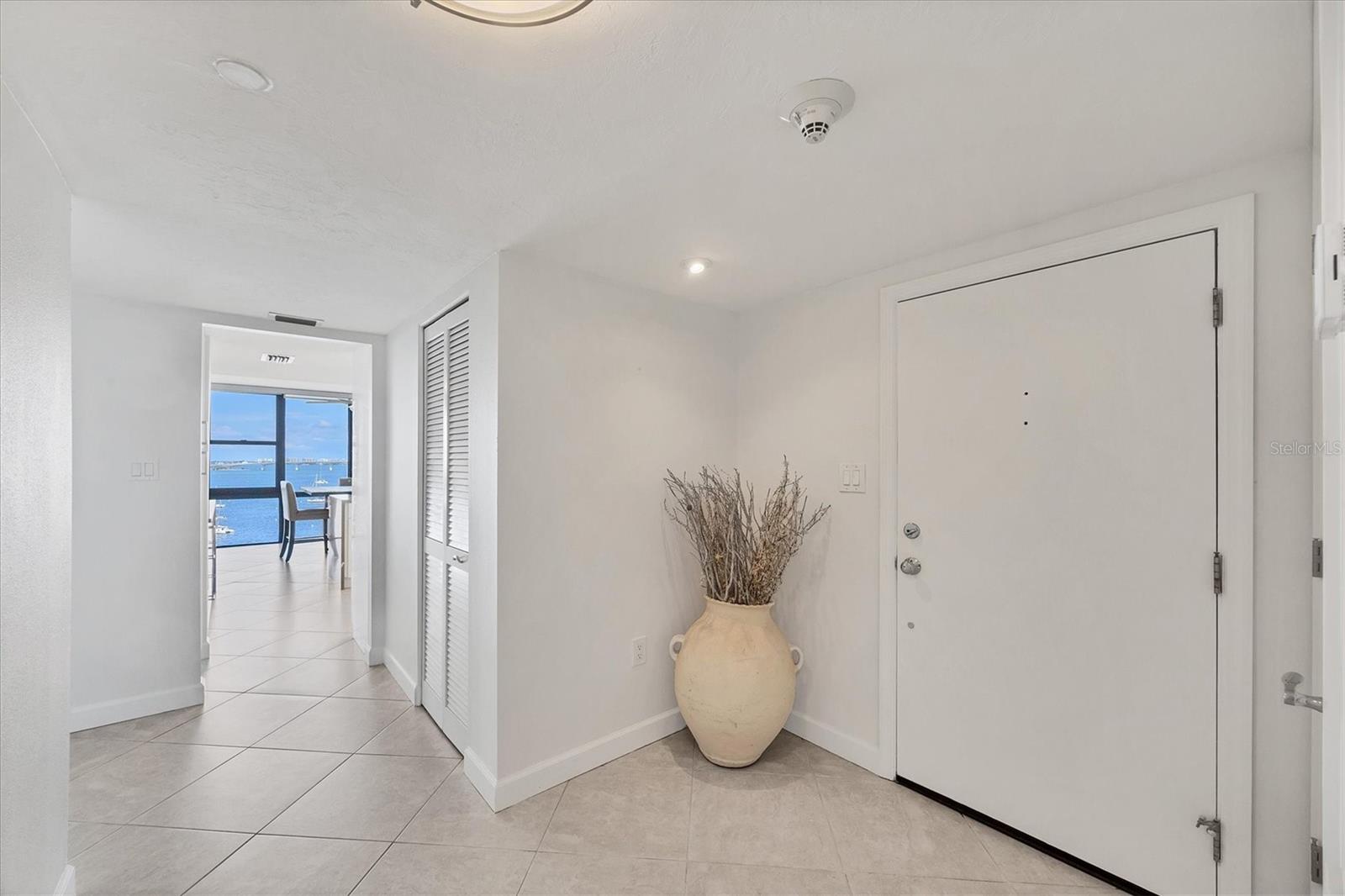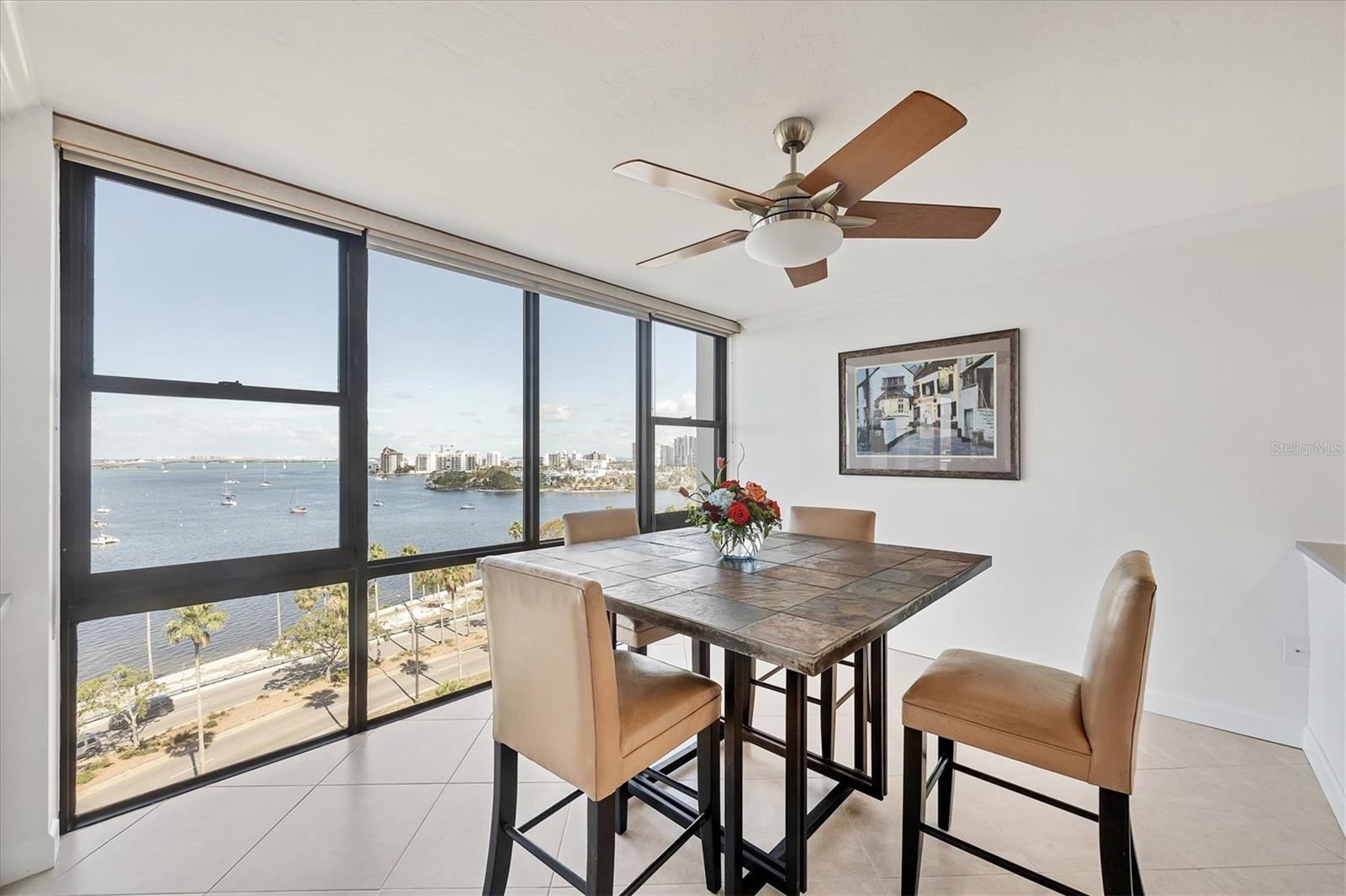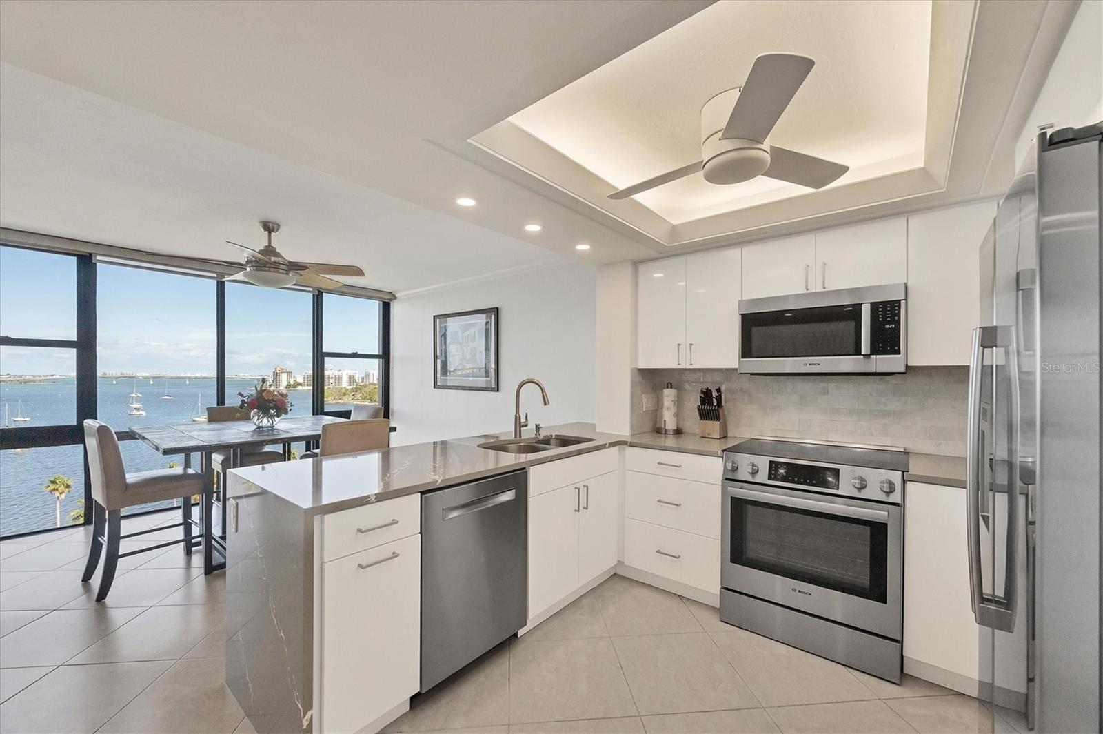 One or more photo(s) has been virtually staged. Open house is cancelled.... Sale pending!!!!Priced below recent sales!!!Stunning 9th floor residence with Million Dollar views. An Iconic building offering an exceptional downtown lifestyle. It's located on Marina Row with the best view of every coveted sight in Sarasota: the open bay, moored sailboats along Bayfront Park, the John Ringling Bridge, Golden Gate Point, Bird Key, Lido Key, Siesta Key, the Gulf of Mexico and Selby Gardens. All units have a semi-private elevator foyer. This renovated and furnished condo will offer an instant feeling of peace as you enter and immediately see the breathtaking and unobstructed views. The main living areas live more like an open concept home than a condo, and with the 30-foot wall of west-facing windows, the views are enjoyed from the living room, sitting area, dining room, and kitchen. Updates include cabinetry, waterfall quartz counters, Bosch appliances, tile floors, appliances and more. The sun truly rises and sets here. Embassy House is a secure, well maintained modern architecture masterpiece. The lobby and amenities have been renovated with luxury mid-century modern finishes, custom furnishings, and artwork specifically curated for the building. Fitness center with views of the bay, conference room with kitchenette, refurbished heated pool, guest parking, electric car charging station, car wash area, grill and outdoor tables are a perfect set of amenities. Everyday can be as relaxed or active as you desire, whether you choose to lounge with coffee or entertain with cocktails while taking in the mesmerizing views or venture out and walk to coffee, restaurants, boutiques, art galleries, along the bayfront, to Marie Selby Botanical Gardens or to the Saturday Farmer's Market. Your best life starts here.