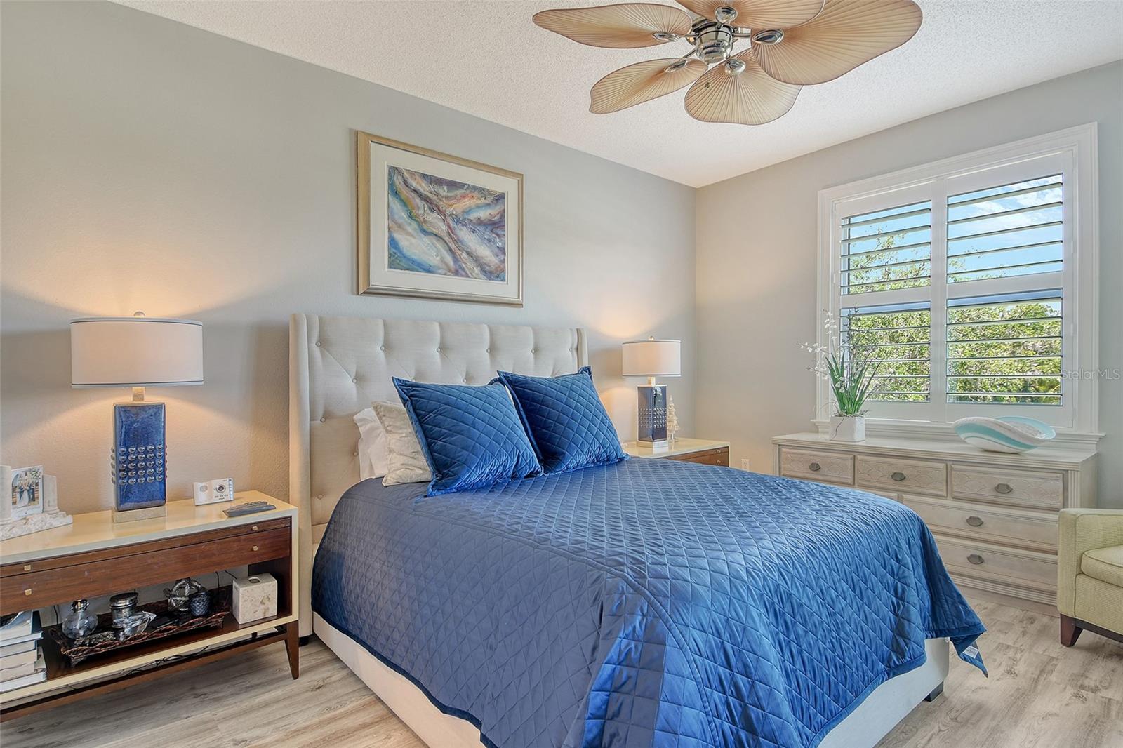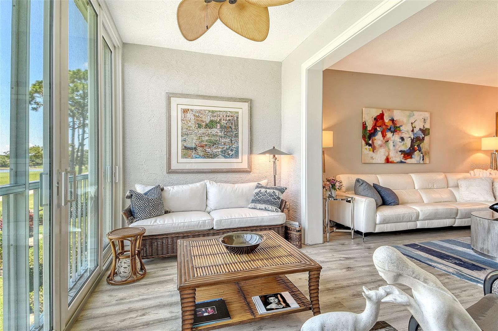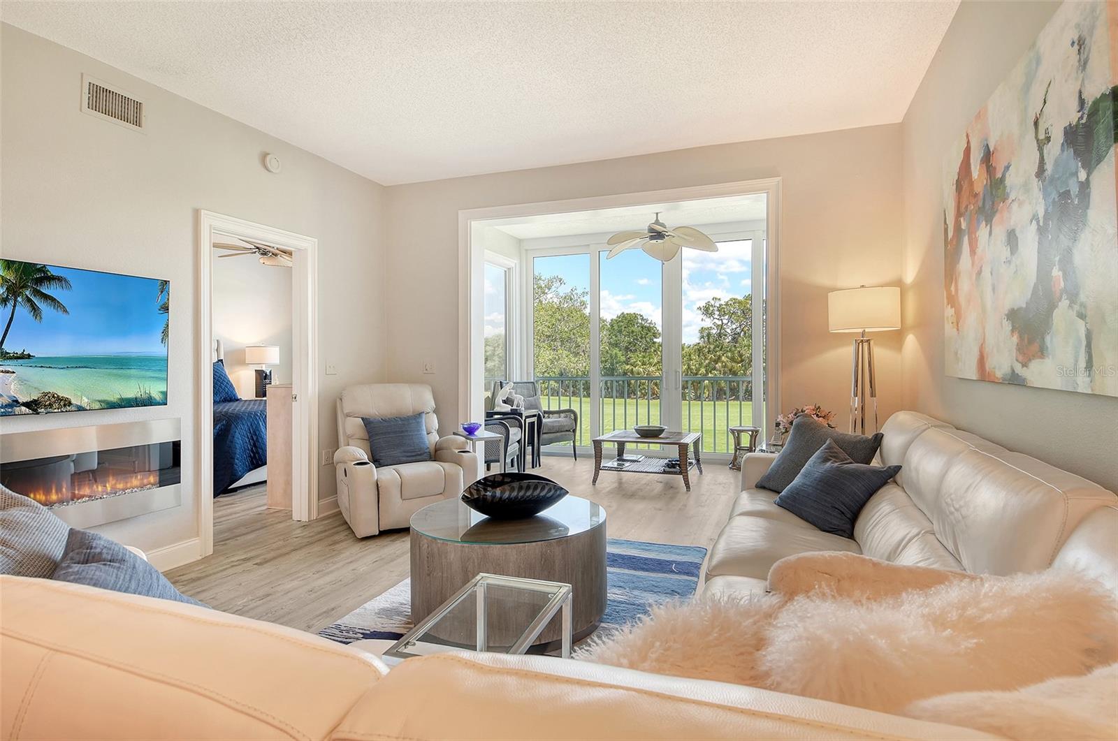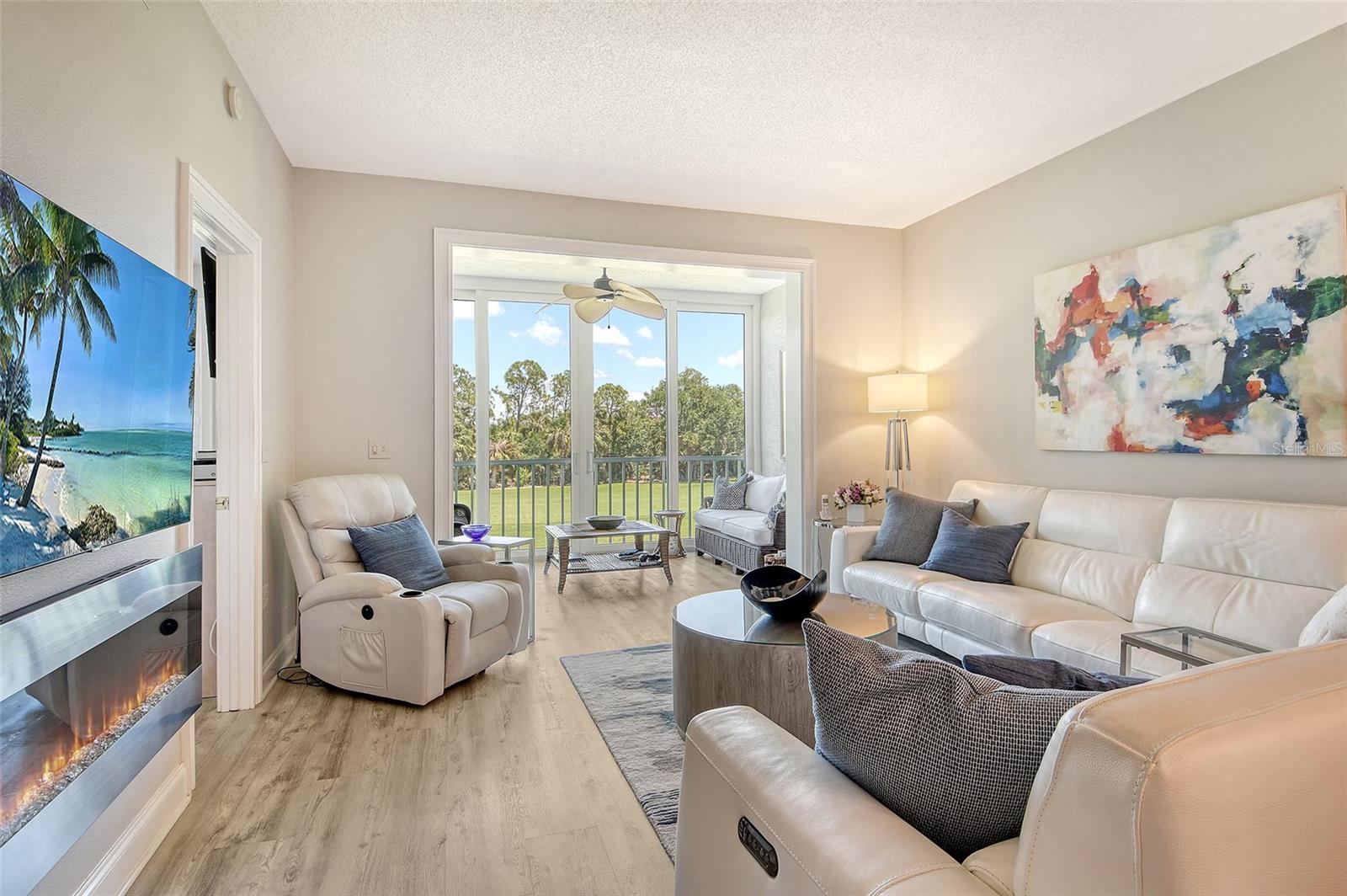 Wow!! Totally updated, modern design Condo Home with large Glassed-in Lanai featuring views of the 8th fairway and preserves. Completely updated Kitchen with Island design, granite counters, stainless steel appliances, glass tiled backsplash and built in desk area. Modern Luxury Vinyl floors through out! Plantation Shutters! Beautiful fixtures throughout the home. Primary Bedroom has its own slider to the lanai area, updated Primary Bathroom with twin sinks, additional cabinetry storage, updated shower. Guest quarters bath updated. The Terraces is a very active community with nightly gatherings, grills for owners use, carport and additional storage shed, community pool and pickleball/tennis court for the unit's owners. A premier member-owned country club, Stoneybrook of Sarasota, is only a short distance from Siesta Key and offers easy access to shopping and borders the Legacy Trail. Ownership in Stoneybrook Golf and Country Club includes an updated clubhouse and restaurant, Har-Tru tennis facility, well-equipped fitness center and additional club pool and spa. Nestled between Downtown Sarasota and Downtown Venice. In 2024, the Golf Course went through a complete redesign and is now complete and open to the members! Schedule your tour of this amazing unit before its too late.