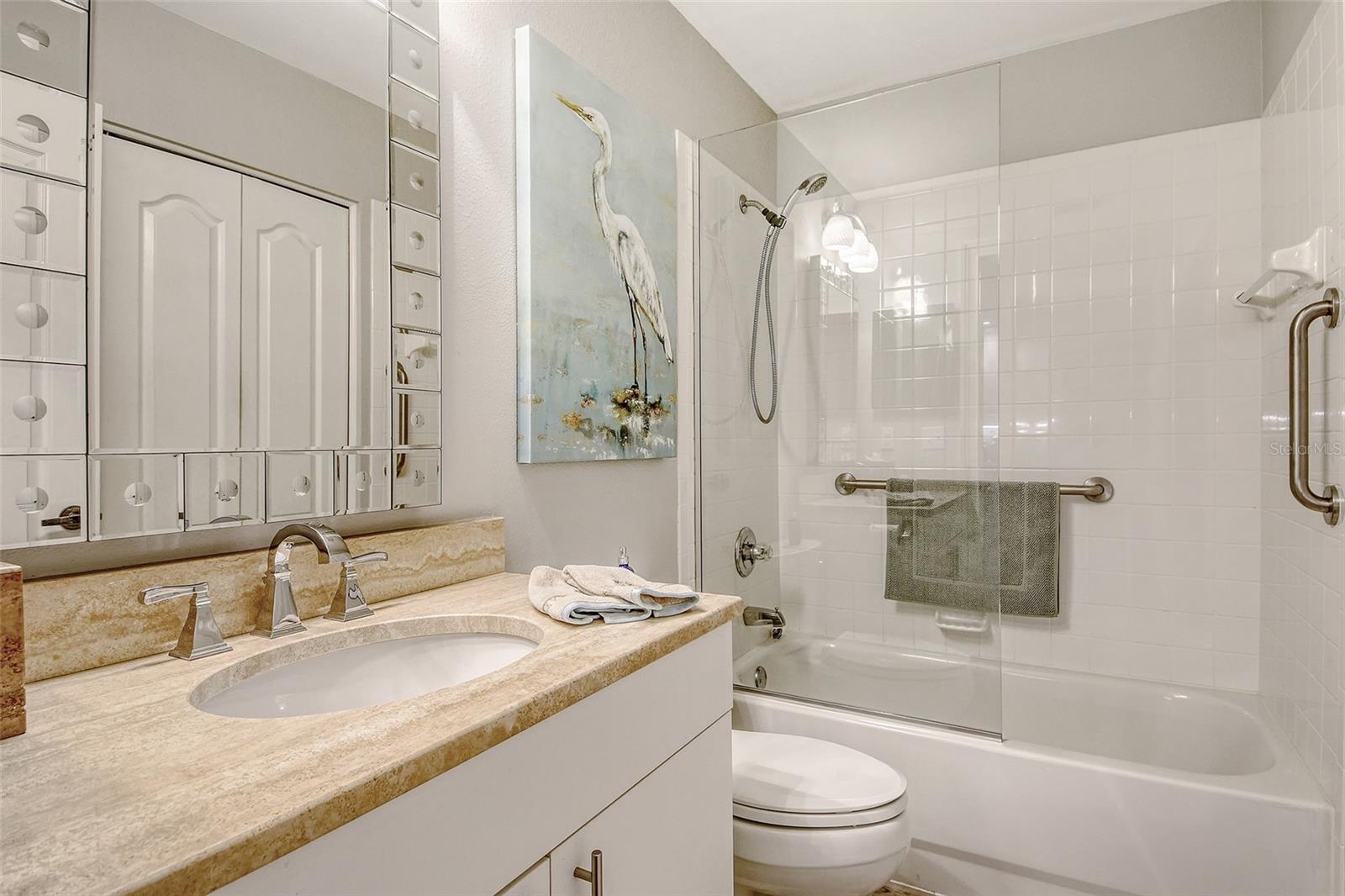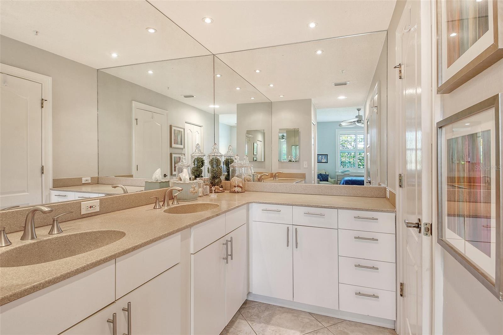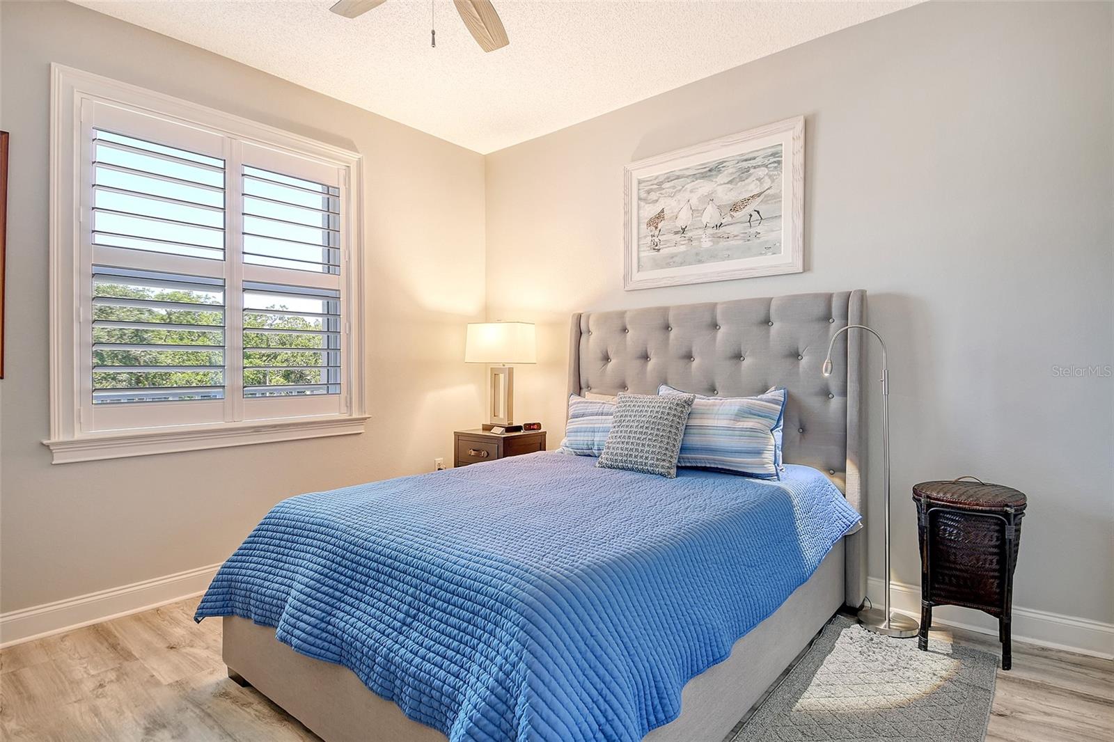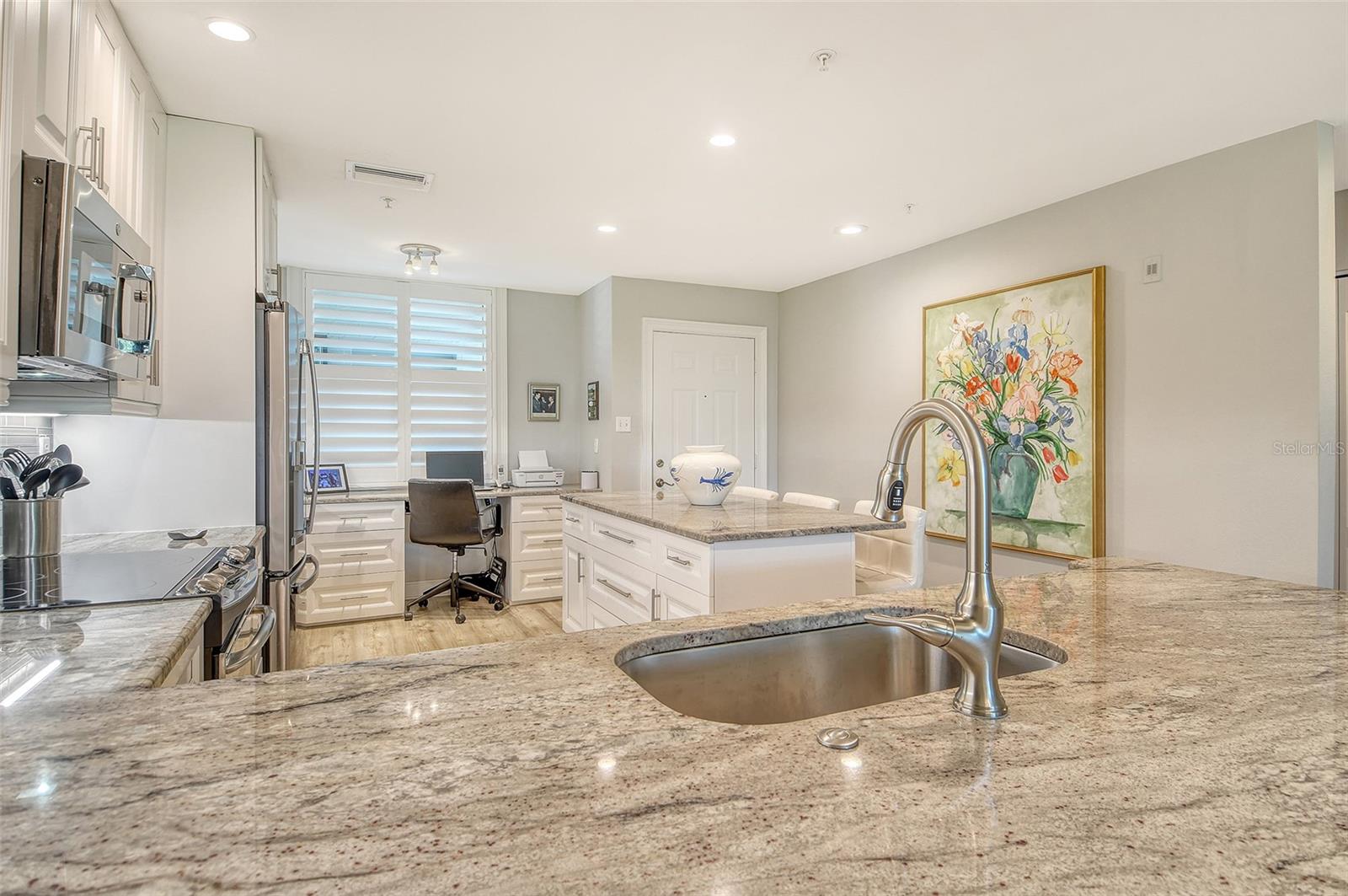 Wow!! Totally updated, modern design Condo Home with large Glassed-in Lanai featuring views of the 8th fairway and preserves. Completely updated Kitchen with Island design, granite counters, stainless steel appliances, glass tiled backsplash and built in desk area. Modern Luxury Vinyl floors through out! Plantation Shutters! Beautiful fixtures throughout the home. Primary Bedroom has its own slider to the lanai area, updated Primary Bathroom with twin sinks, additional cabinetry storage, updated shower. Guest quarters bath updated. The Terraces is a very active community with nightly gatherings, grills for owners use, carport and additional storage shed, community pool and pickleball/tennis court for the unit's owners. A premier member-owned country club, Stoneybrook of Sarasota, is only a short distance from Siesta Key and offers easy access to shopping and borders the Legacy Trail. Ownership in Stoneybrook Golf and Country Club includes an updated clubhouse and restaurant, Har-Tru tennis facility, well-equipped fitness center and additional club pool and spa. Nestled between Downtown Sarasota and Downtown Venice. In 2024, the Golf Course went through a complete redesign and is now complete and open to the members! Schedule your tour of this amazing unit before its too late.