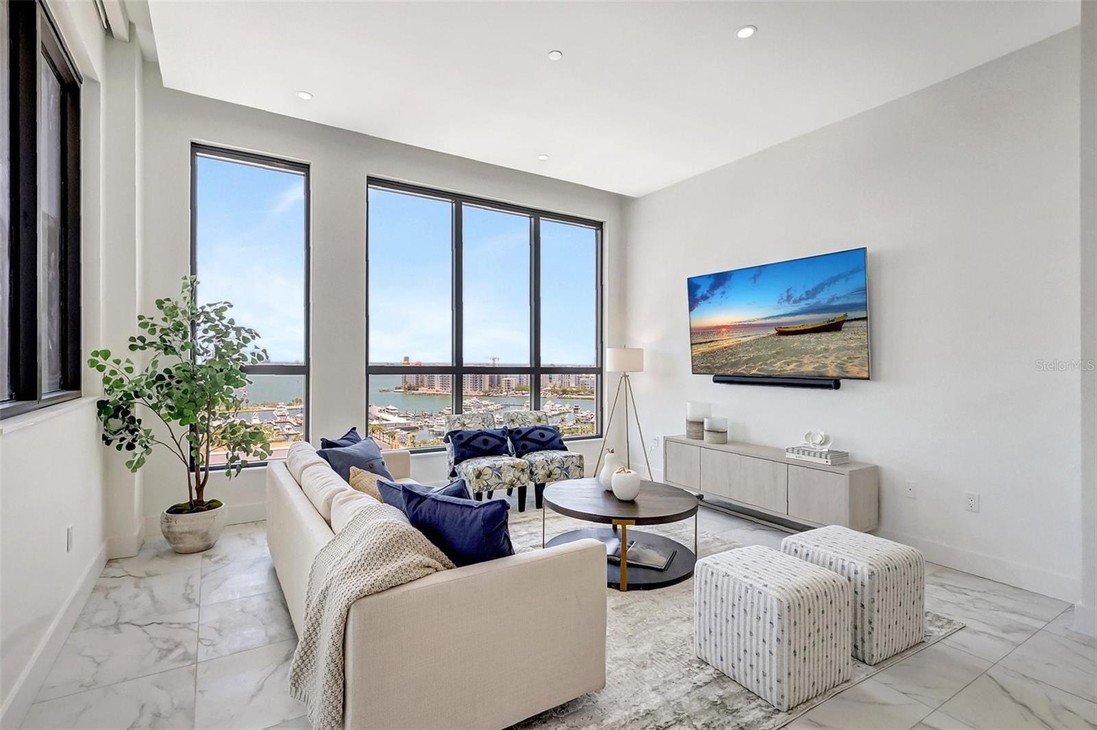 Experience elevated luxury at The DeMarcay in this brand-new, never-lived-in custom residence -- a 3-bedroom, 3.5-bath sky home with a thoughtfully designed living space and breathtaking, unobstructed views of Sarasota Bay, the Gulf of Mexico, the Ringling Bridge, and Marina Jack's. From glowing sunrises to dazzling fireworks displays, your front-row seat to Sarasota's skyline awaits.The chef's kitchen is a dream come true, featuring a 6-burner gas cooktop, top-of-the-line appliances, custom cabinetry, wine cooler, and a generous walk-in pantry. The expansive primary suite welcomes the morning light with serene water views and includes a spa-like bath with double vanities, a freestanding soaking tub, glass-enclosed shower, and large walk-in closet. Both secondary bedrooms offer luxurious en suite bathrooms for comfort and privacy.No detail has been left untouched -- this residence is fully outfitted with upgraded designer lighting, integrated audio, smart thermostat controls, and Lutron blackout curtains in every room. It truly lives like a single-family home in the sky.Amenities are located on the 18th floor and feature a resort-style pool, grilling area, catering/hosting lounge, and a fully equipped fitness center -- all with panoramic views. Additional conveniences include 24-hour resident services, two assigned garage parking spaces, and a private storage unit.Set in the vibrant heart of downtown Sarasota, you'll be just steps away from fine dining, boutique shopping, art galleries, theaters, and cultural attractions -- all within easy walking distance.This is luxury redefined. Come home to comfort, sophistication, and Sarasota's most spectacular views.