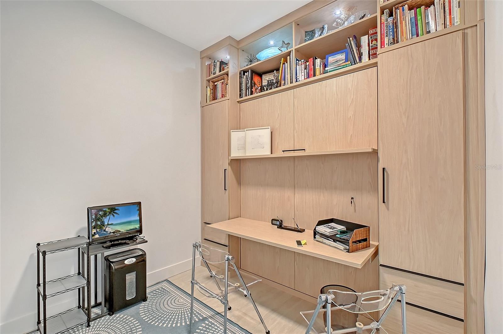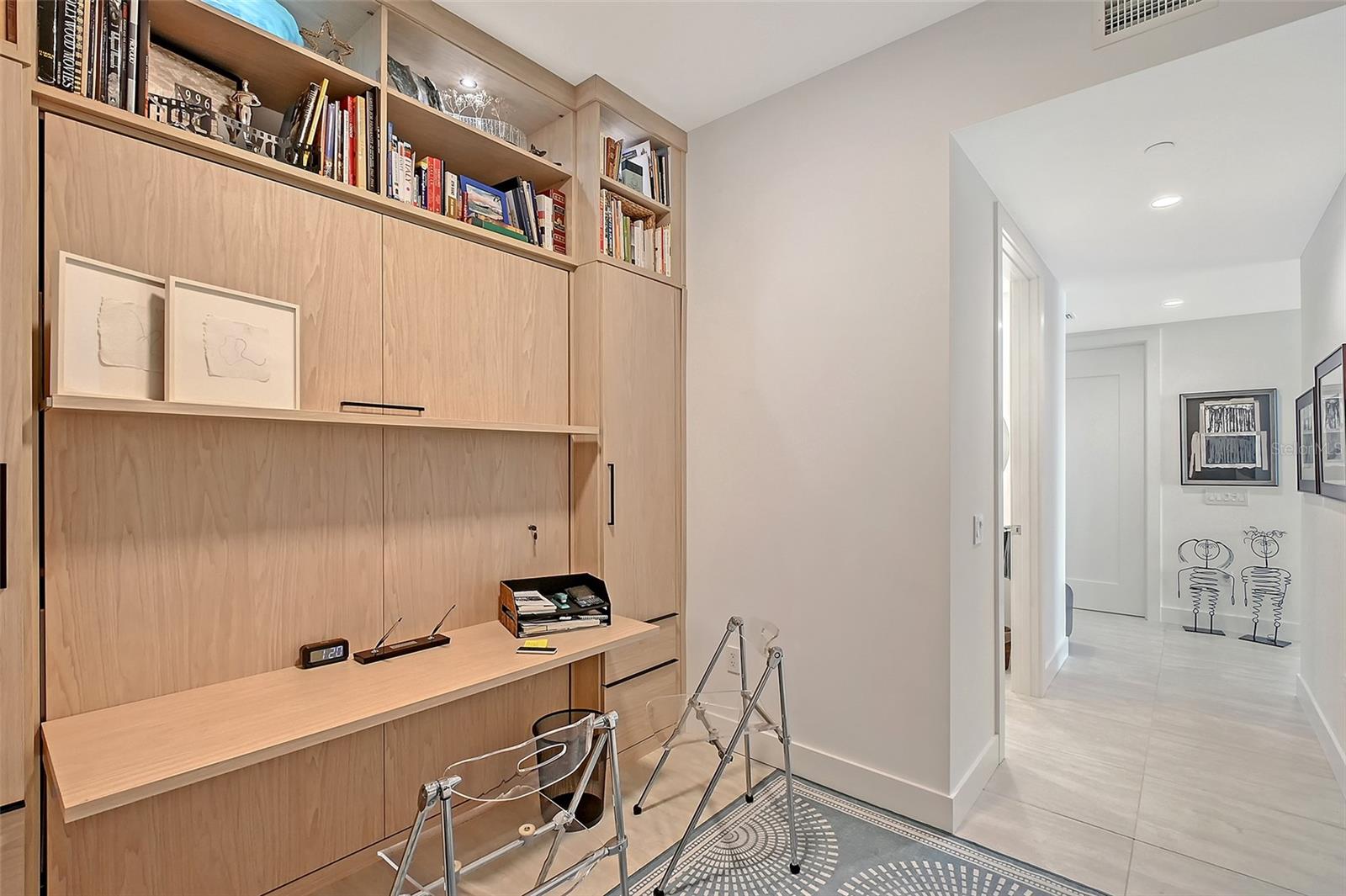 Prepare to be captivated by this absolutely stunning,12th-floor residence at Bayso, Sarasota's most sought-after luxury tower at The Quay. With postcard worthy southern views of Sarasota Bay and the sparkling downtown skyline from every room, this extraordinary 2-bedroom plus den, 2.5-bath home offers nearly 1,600 square feet of refined sophistication and comfort. The moment you step inside, you're greeted by a flood of natural light pouring through floor-to-ceiling glass, immediately drawing your eye to panoramic views that stretch endlessly across the bay and city. The elevated 20+ foot above sea level lobby sets the tone for the elegance that awaits above. Soaring 10-foot ceilings, porcelain tile flooring, and tastefully upgraded designer light fixtures throughout the home create a sleek and luxurious atmosphere. The spacious great room and dining area are the heart of the home; perfectly suited for entertaining, relaxing, or simply soaking in the view with your morning coffee or evening glass of wine. This is where everyday living transforms into something exceptional. Step outside to your oversized private terrace with glass railings and indulge in the beauty of Sarasota's ever-changing skyline. The kitchen is a true showpiece, featuring European-inspired Italkraft cabinetry, glistening quartz countertops, a large center island with rollout drawers, premium Jenn-Air stainless steel appliances including an induction cooktop and double oven; making it ideal for both the everyday chef and the culinary enthusiast. The owner's suite is a tranquil retreat, offering a spacious walk-in closet with custom built-ins and a spa-like bath complete with Grohe fixtures, double vanity with Robern recessed medicine cabinets, a separate water closet, and a glass-enclosed walk-in shower. The guest suite enjoys its own spectacular views, generous closet space, and a beautifully designed en-suite bath. A versatile den is outfitted with a custom wall unit with a queen-size Murphy bed, offering flexibility as a third bedroom, office, or private media space. A stylish powder room and an oversized utility room with full-size washer and dryer and abundant storage complete this perfectly designed residence. Bayso offers an unmatched array of resort-style amenities. Residents enjoy a 24/7 attended lobby, on-site management, and access-controlled security. The fifth floor is your personal oasis; featuring an elevated pool and spa deck over 60 feet above sea level, outdoor entertainment lounges, kitchen and grilling areas, the serene Splash Lounge, a state-of-the-art fitness center, movement studio, and a private dog park. There's even a formal club room with catering kitchen, co-working spaces, a boardroom for business meetings, secured Wi-Fi throughout all amenity spaces, and a mail room with package storage. The residence includes a premium assigned parking space in the private garage, climate-controlled storage, and there is also separate bicycle storage for the residents. All of this just steps from Sarasota's thriving arts scene, award-winning dining, boutique shopping, and cultural venues; with the white sands of Lido Key, Longboat Key, and Siesta Key just minutes away. Whether you're seeking an elegant year-round home, a chic pied--terre, or a lock-and-leave retreat in one of Florida's most desirable cities, this residence is your invitation to live the dream. Schedule your private tour today and experience the very best of luxury living at Bayso.