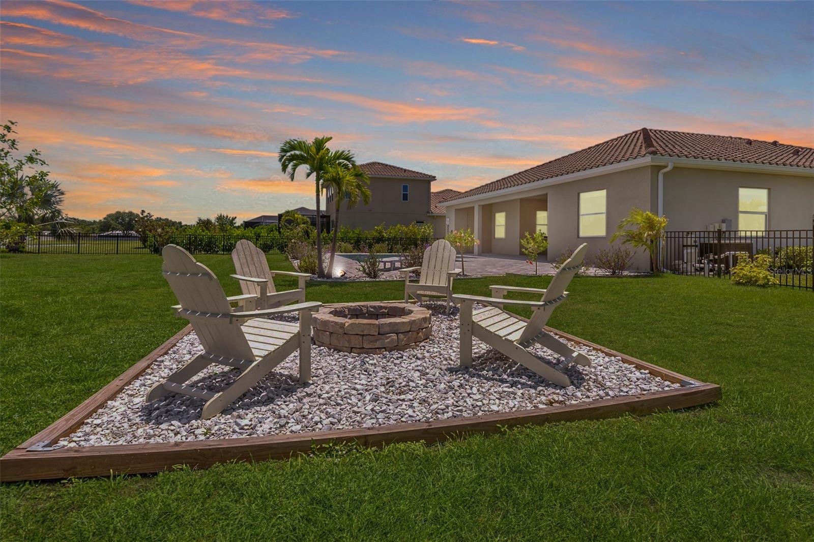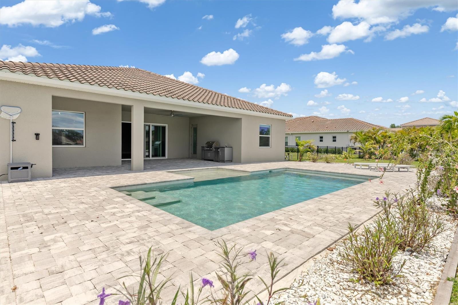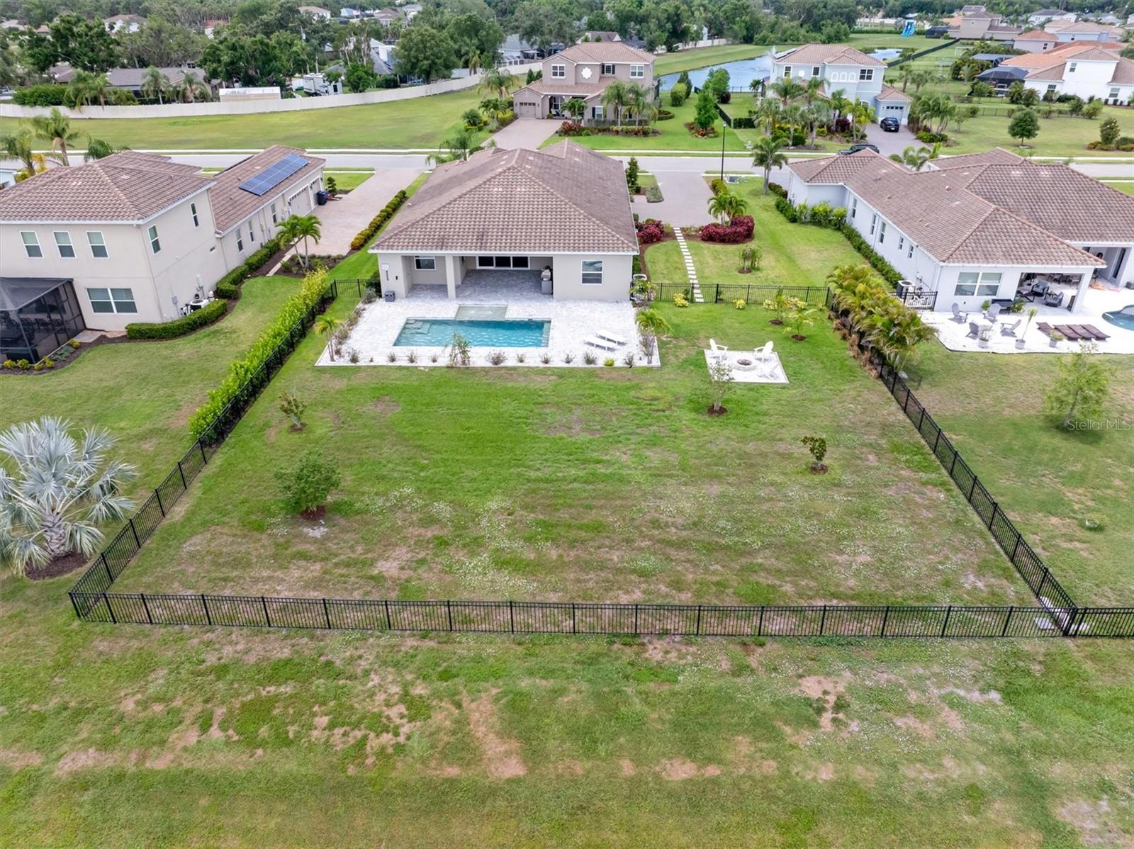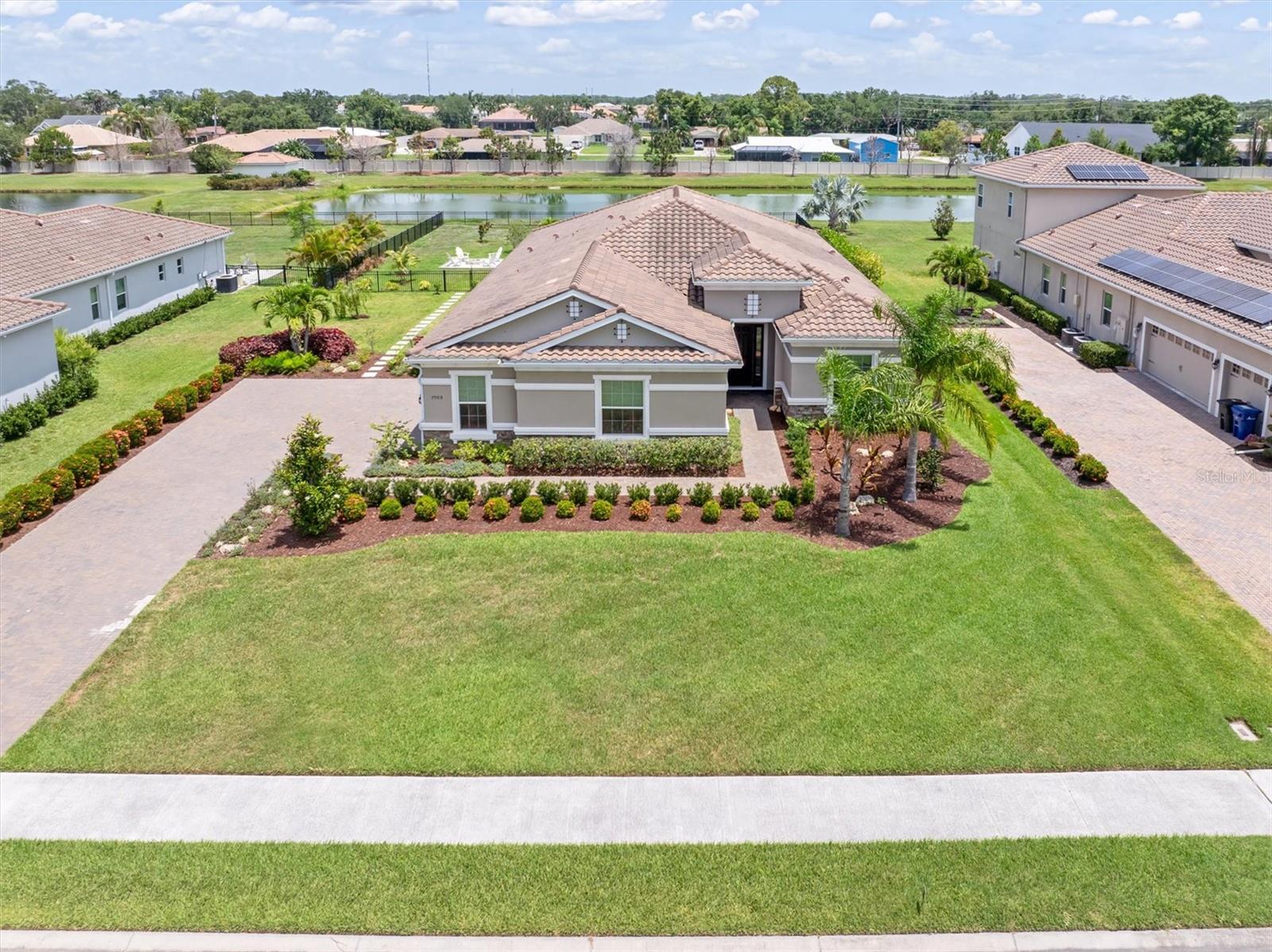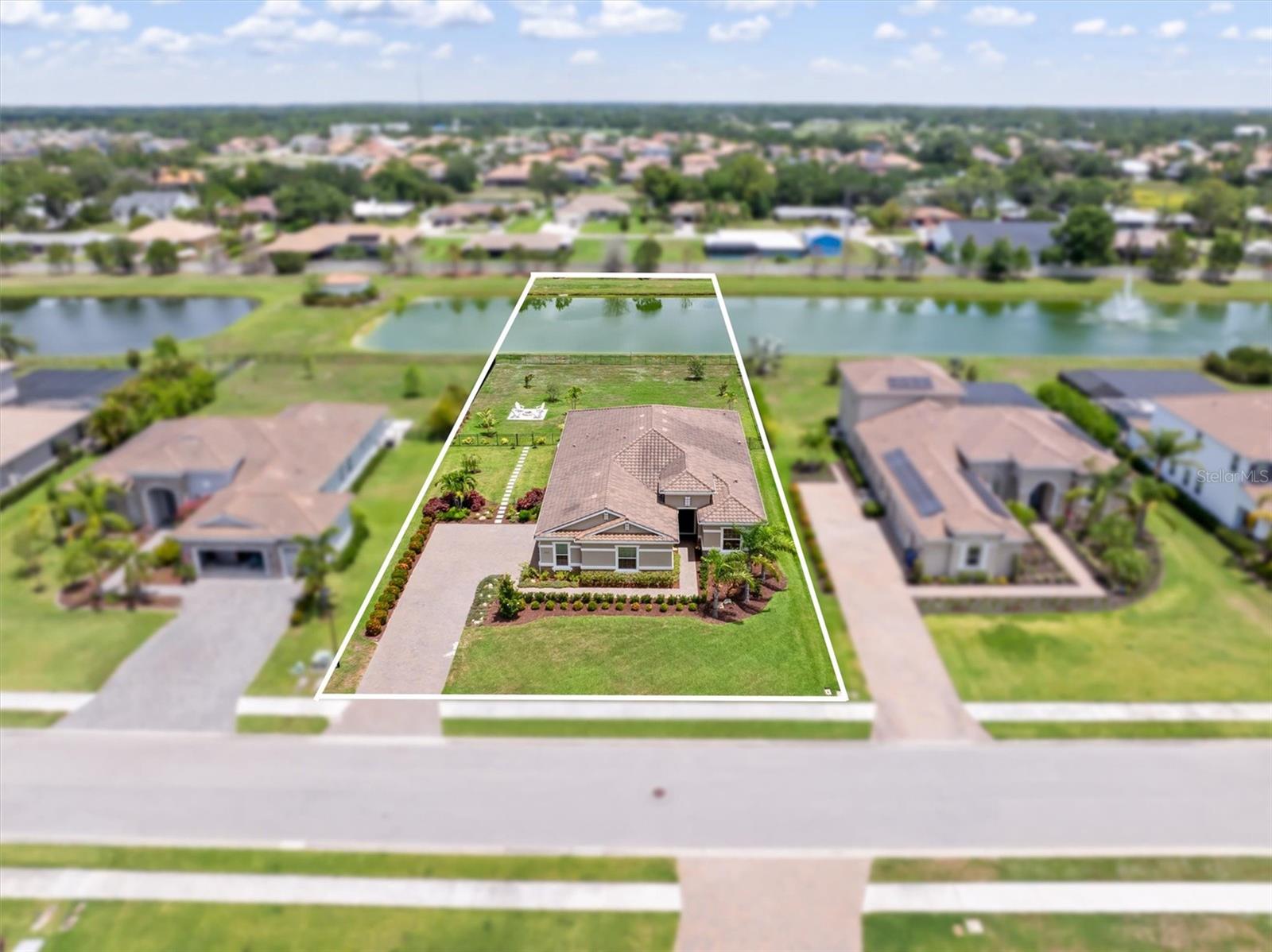 One or more photo(s) has been virtually staged. Welcome to Vilano, a true hidden gem of a Sarasota gated community, where all homes are set on a minimum one acre lot! This amazing home features a large fenced-in backyard, open air heated pool, huge side-loading 3 car garage and much more! With four bedrooms, three full bathrooms and an outdoor pool half bathroom, this open concept floorplan home has it all. Upon entering through the front door, you overlook the open great room, kitchen and dining nook with views of the pool, yard, and lake behind. You'll notice details like tray ceilings, beautiful tile in the main living area, new bedroom carpets, detailed wood accent walls, and more. The primary bedroom has great views, bath with dual vanities, walk-in shower, and soaking tub. The kitchen has beautiful stone countertops, white shaker-style cabinetry, stainless steel appliances and island with breakfast bar. The additional bedrooms are spacious and one of them has an en-suite bathroom. The outdoor living area has a lovely pool, covered patio area for outdoor dining and summer kitchen, and a fire pit area for cool evenings. This home has been lovingly upgraded and cared for by the original owner, and Vilano is conveniently located to schools, UTC shopping, dining, and even Celery Fields Park. All the other amenities Sarasota has to offer are only a short drive away. You'll want to schedule your private showing of this fine home today!