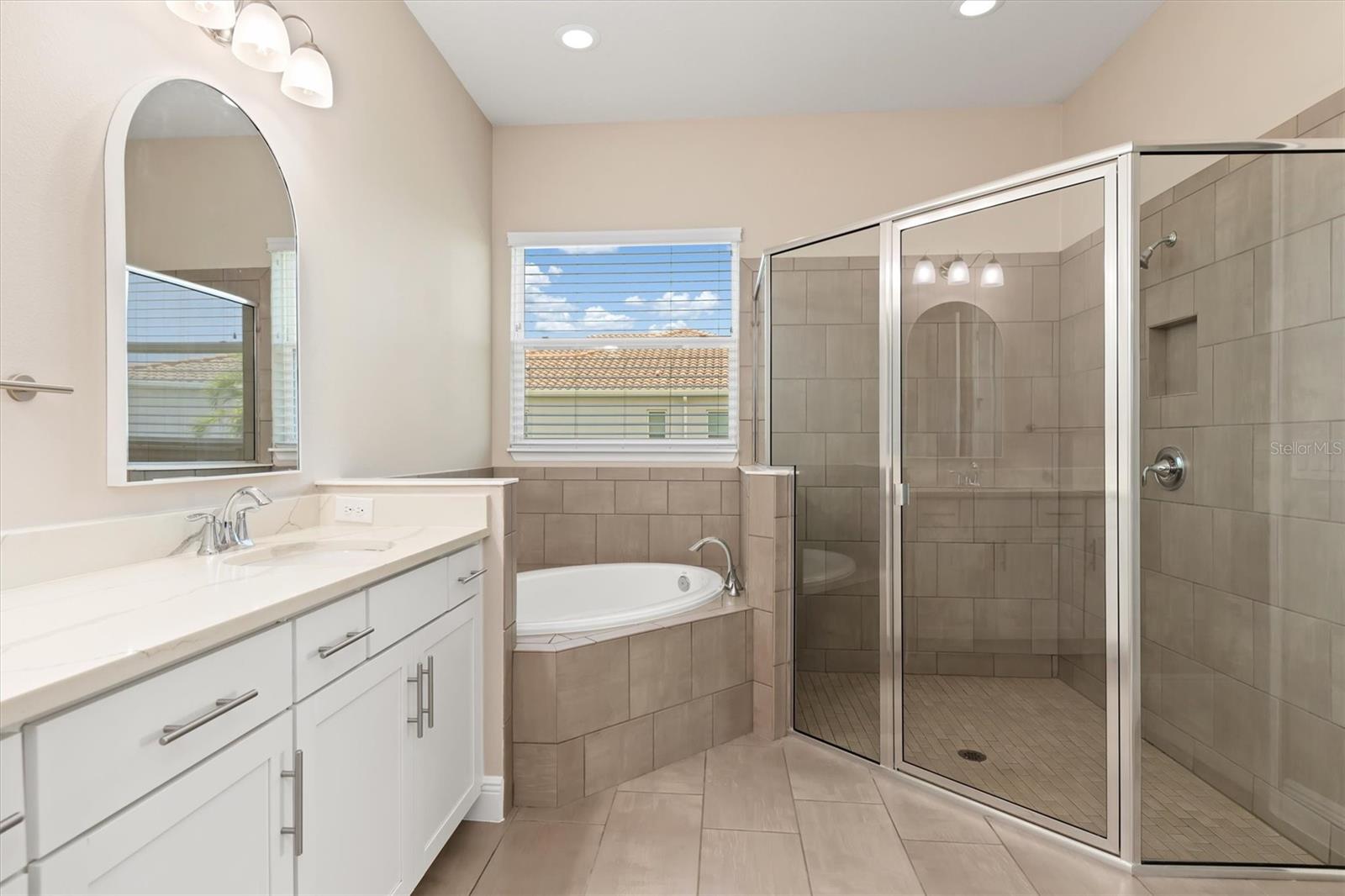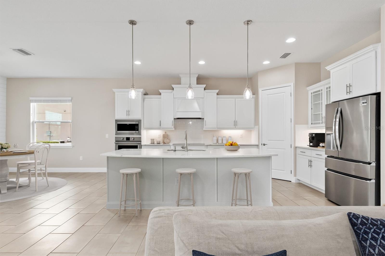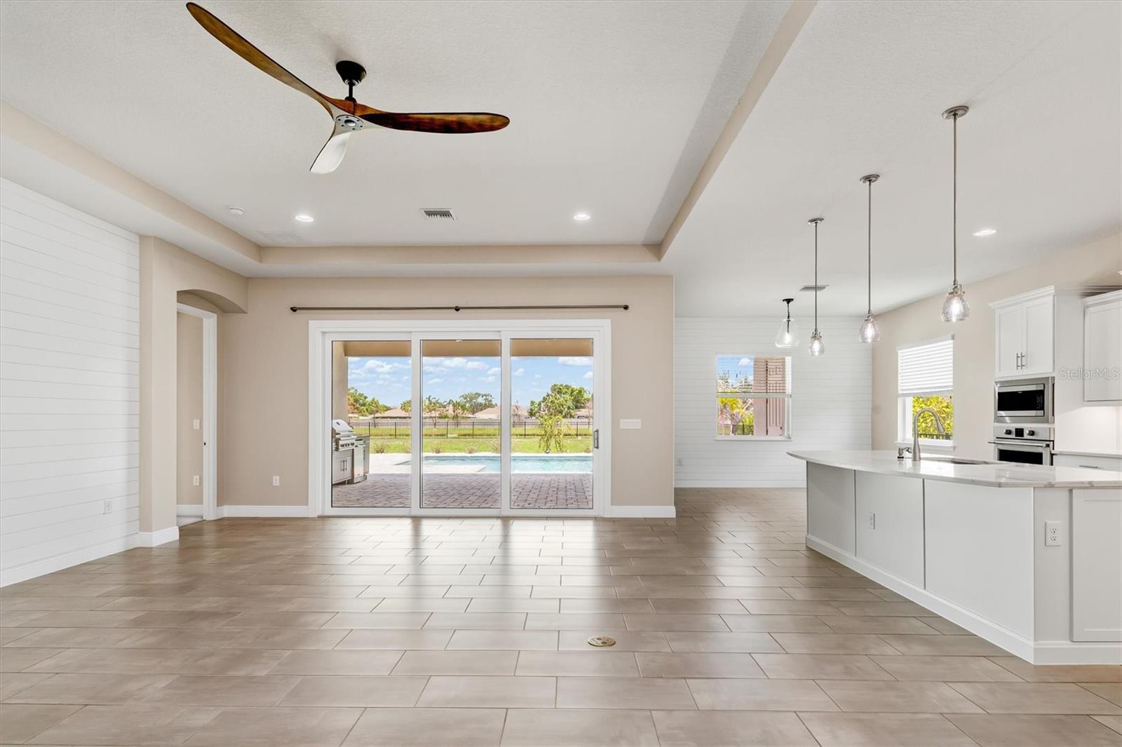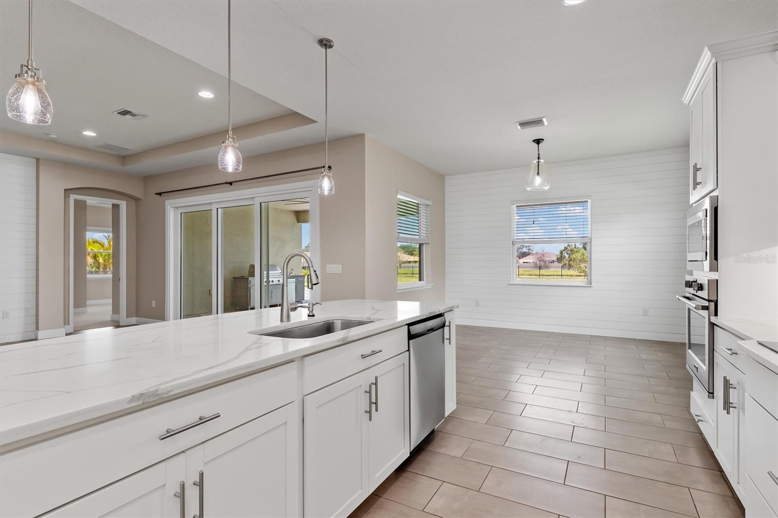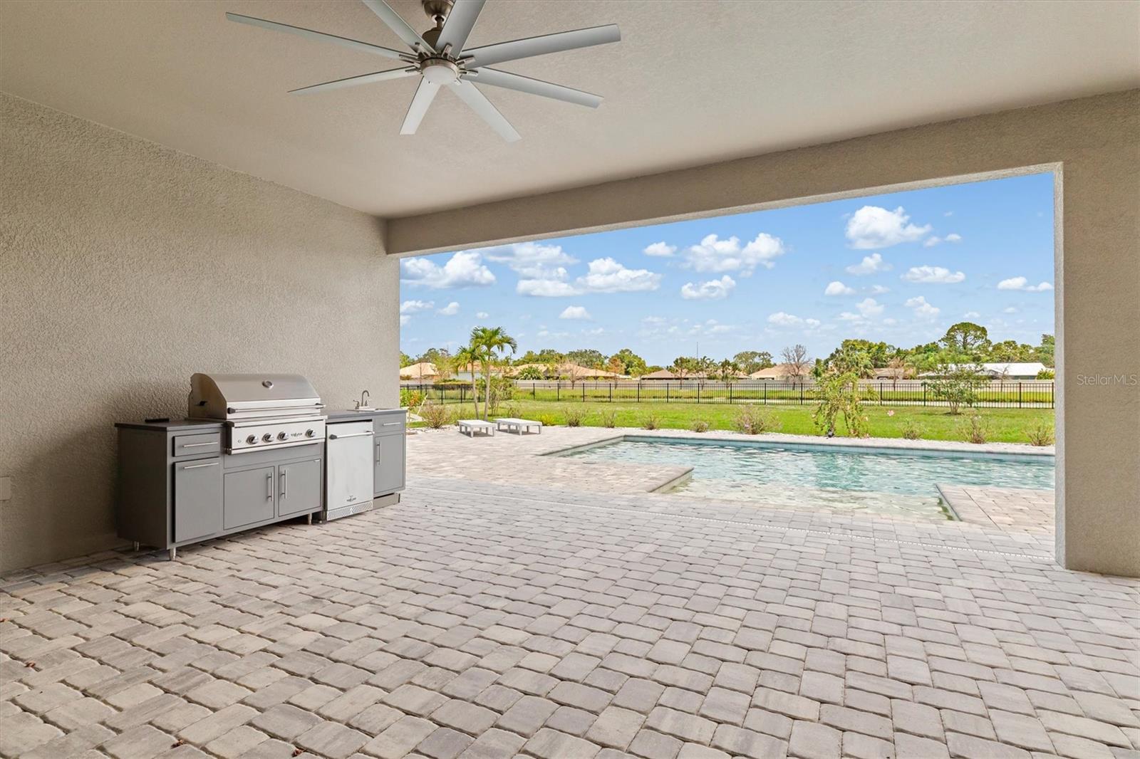 One or more photo(s) has been virtually staged. Welcome to Vilano, a true hidden gem of a Sarasota gated community, where all homes are set on a minimum one acre lot! This amazing home features a large fenced-in backyard, open air heated pool, huge side-loading 3 car garage and much more! With four bedrooms, three full bathrooms and an outdoor pool half bathroom, this open concept floorplan home has it all. Upon entering through the front door, you overlook the open great room, kitchen and dining nook with views of the pool, yard, and lake behind. You'll notice details like tray ceilings, beautiful tile in the main living area, new bedroom carpets, detailed wood accent walls, and more. The primary bedroom has great views, bath with dual vanities, walk-in shower, and soaking tub. The kitchen has beautiful stone countertops, white shaker-style cabinetry, stainless steel appliances and island with breakfast bar. The additional bedrooms are spacious and one of them has an en-suite bathroom. The outdoor living area has a lovely pool, covered patio area for outdoor dining and summer kitchen, and a fire pit area for cool evenings. This home has been lovingly upgraded and cared for by the original owner, and Vilano is conveniently located to schools, UTC shopping, dining, and even Celery Fields Park. All the other amenities Sarasota has to offer are only a short drive away. You'll want to schedule your private showing of this fine home today!