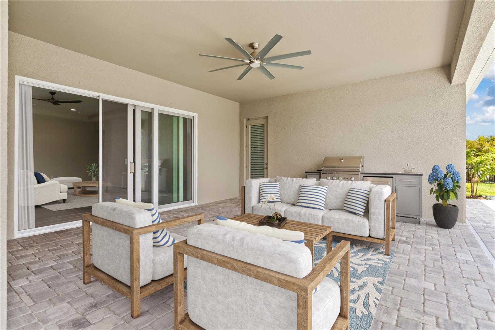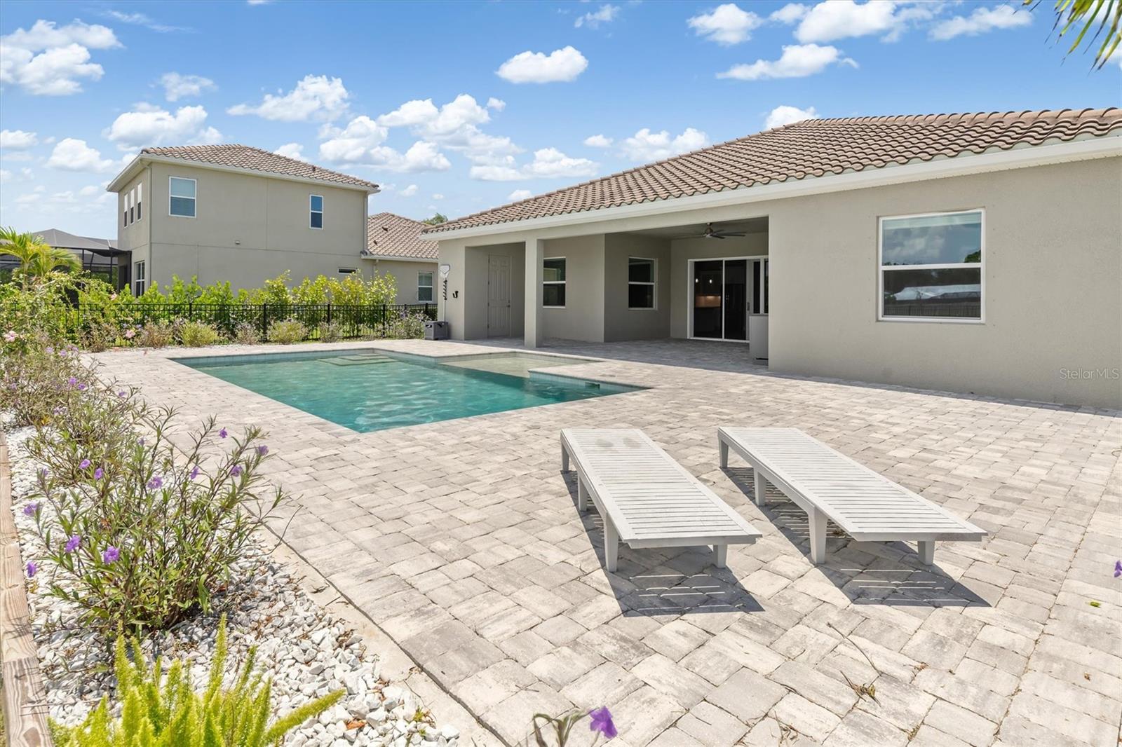 - Exterior: Hurricane Shutters, Rain Gutters, Sidewalk, Sliding Doors
