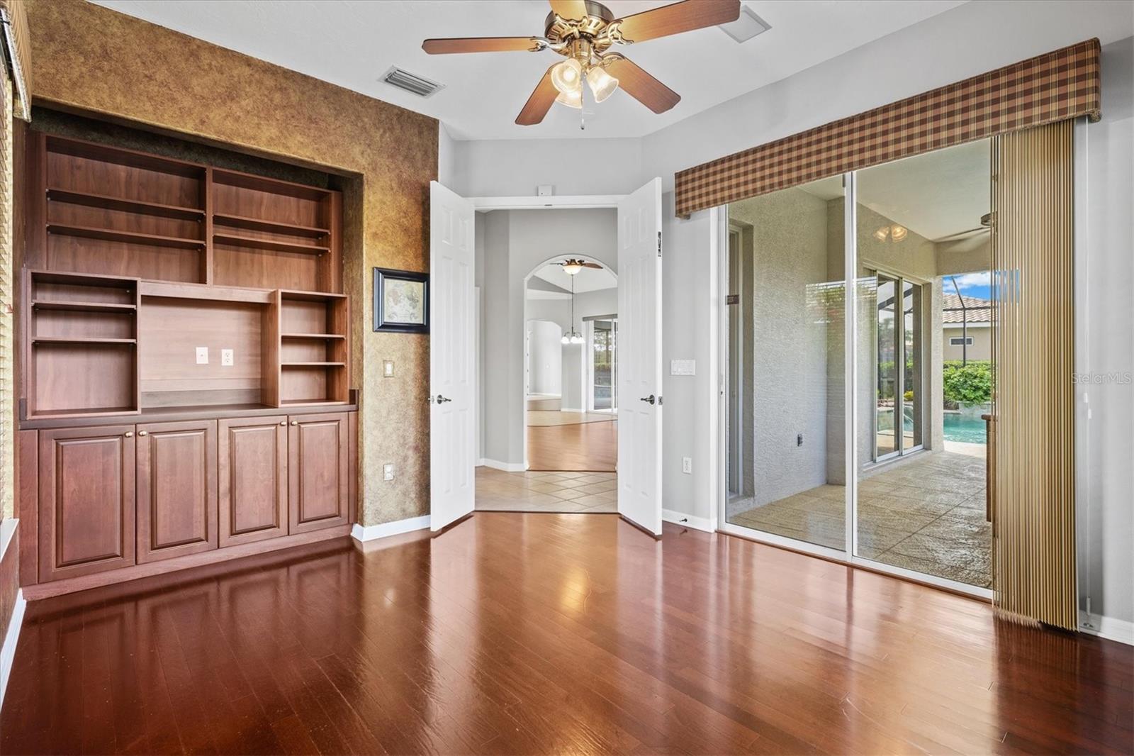 One or more photo(s) has been virtually staged. Welcome to Silver Oak Estates, an exclusive, gated enclave nestled within Palmer Ranch. This custom-built John Cannon residence offers refined luxury, timeless design, and serene natural beauty, all situated on one of the community's most coveted lakefront lots. Boasting 4 spacious bedrooms, a private office and a versatile bonus/game room, this thoughtfully designed home provides exceptional living space for both everyday comfort and entertaining. As you enter the grand foyer, you'll be greeted by tall ceilings, intricate crown moldings and custom millwork, a hallmark of the quality craftsmanship that defines John Cannon Homes. The living room features sliding glass doors that seamlessly open to a screened salt water pool and expansive lanai offering unobstructed views of the shimmering lake and lush preserve. A formal dining room sits opposite the well appointed kitchen designed for the culinary enthusiast with granite countertops, stainless steel gas range, refrigerator and an oversized breakfast bar. A custom walk in wine room with built-in bottle storage is ideal for wine collectors. Beyond the kitchen is the family room surrounded by sliding glass doors illuminating the room with natural light. The primary suite offers tranquil lake and preserve views, direct access to the lanai and pool. Work from home in a richly appointed office with hardwood floors, custom built-ins, and captivating lake views. Head upstairs to enjoy the bonus room fully equipped with a wet bar, mini-fridge, pool table, full bathroom and an oversized balcony overlooking the lake and preserve! Located just minutes from the gorgeous beaches on Siesta Key and Casey Key, downtown Venice, top-ranked schools including the highly acclaimed Pine View School, world-class golf, Costco, Potter Park YMCA, The Legacy Trail plus convenient I-75 access, this residence offers an unparalleled lifestyle in one of Sarasota's finest communities!