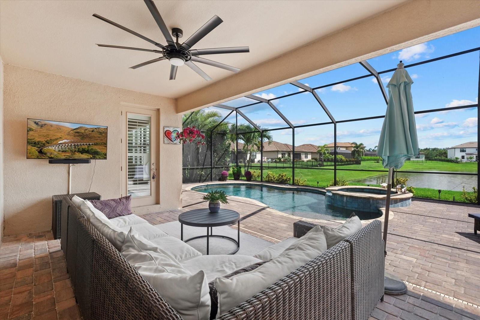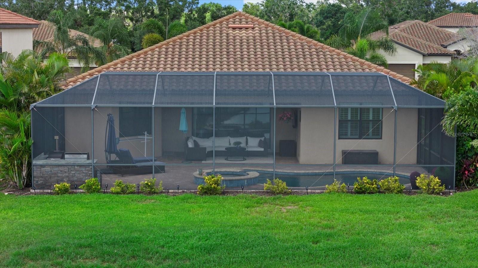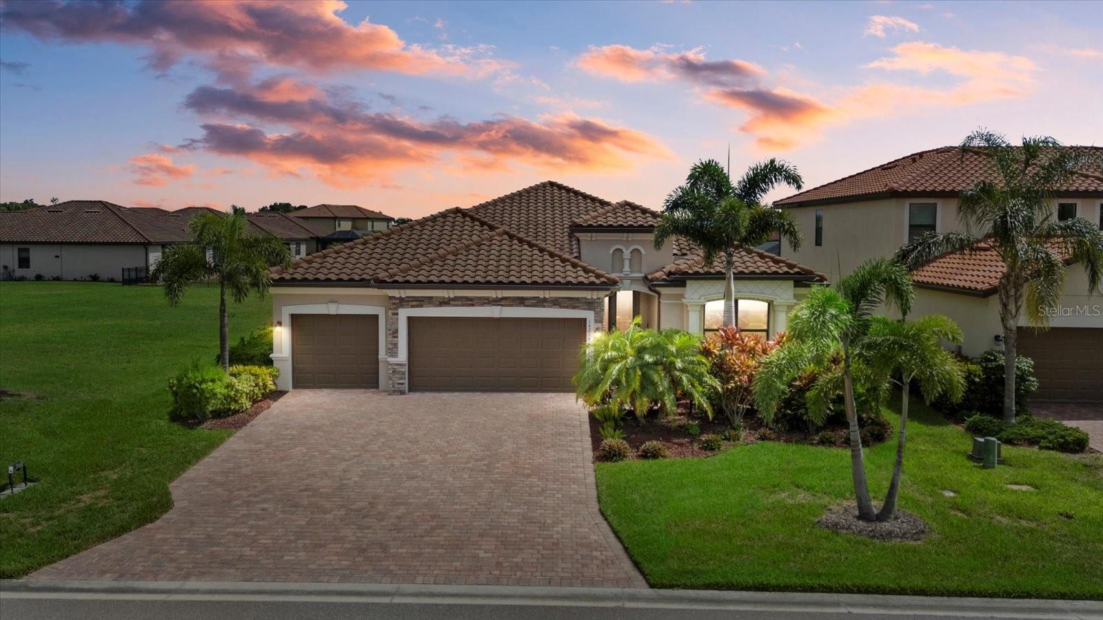 Welcome to the Beautifully Appointed Lennar Princeton II in Savanna at Lakewood Ranch. This highly desirable model offers the perfect blend of comfort, design, and functionality. With 4 bedrooms and 2 baths arranged as a split floor plan, you'll enjoy privacy and quiet separation between the primary suite and guest rooms, ideal for families or hosting visitors. The modern kitchen features solid wood cabinetry, granite countertops, and a layout that's perfect for preparing meals or entertaining guests. Elegant design details throughout the home include tray ceilings in the living room, architectural niches, and a formal dining space enhanced by classic columns, creating a comfortable and inviting atmosphere. From the kitchen and breakfast nook, your view opens up to the sparkling pool, large paver patio, and screened lanai, all set against a backdrop of gleaming lake views and breathtaking tropical sunsets. As you arrive, the stacked stone accents on the upgraded front elevation, along with the three-car garage, immediately make a strong impression. The approach to the home is equally appealing, with lush landscaping and a perfectly manicured lawn--all maintained by the community for low-maintenance living. Located in the gated neighborhood of Savanna at Lakewood Ranch, you'll be just minutes from everything this vibrant master-planned community has to offer--including Waterside, Lakewood Ranch Country Club, top-rated schools, and everyday conveniences. This newer construction home provides added peace of mind, knowing the structural and mechanical components are in excellent condition. Don't miss this opportunity to own a piece of paradise in one of the most sought-after neighborhoods in Lakewood Ranch. Schedule your private showing today.