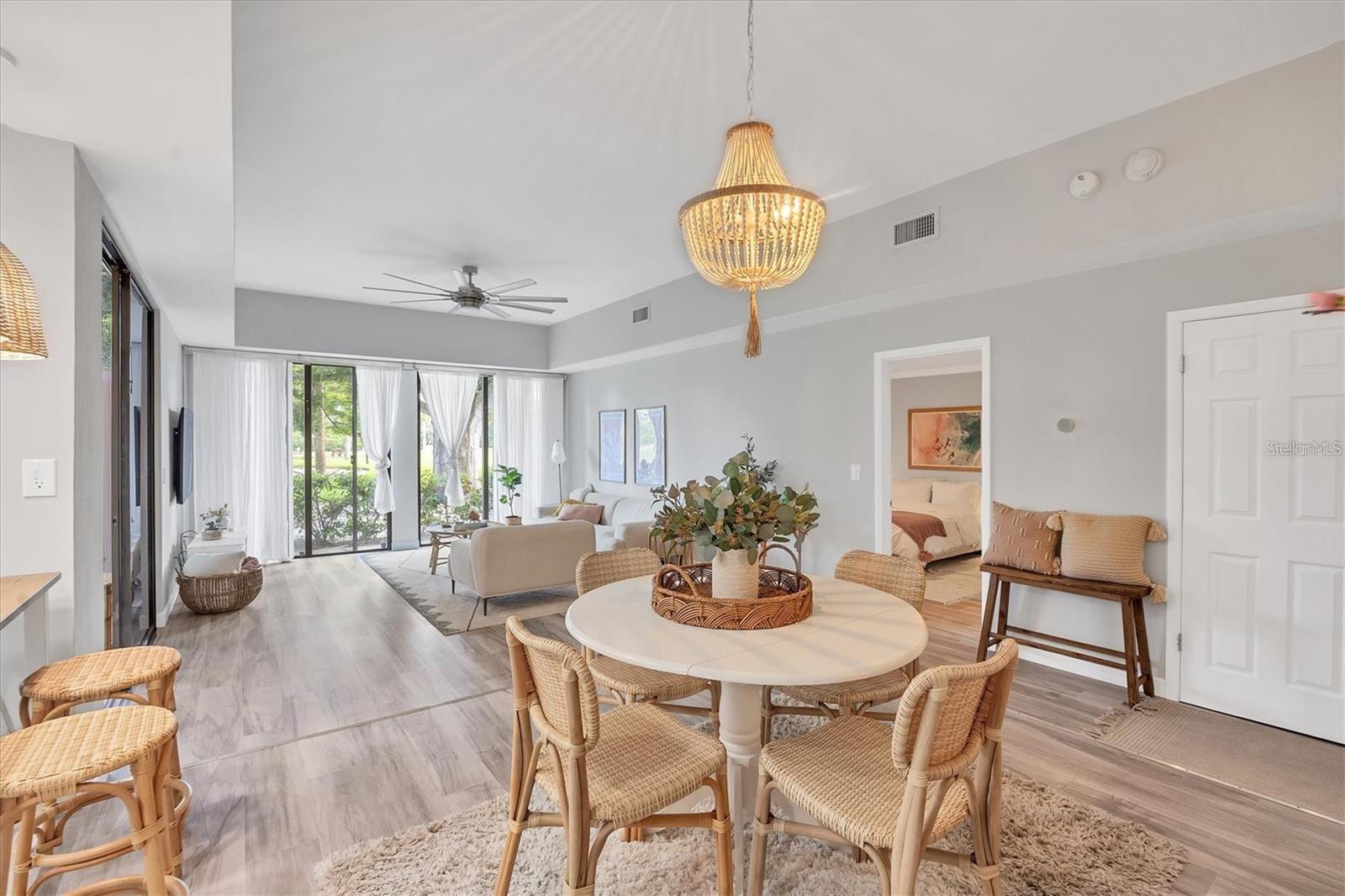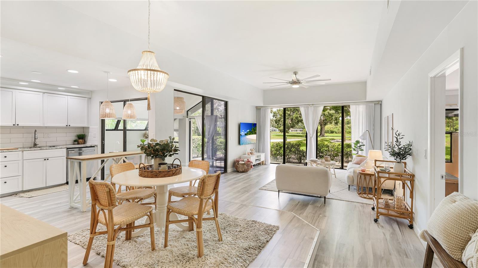 Step into a space that feels like you've left Sarasota behind and entered a private Mediterranean retreat. Welcome to 2383 Lakeside Mews #D3, a rare courtyard villa in The Meadows that blends timeless charm with modern ease -- fully renovated and move-in ready.As you pass through the lush, gated entry, a serene courtyard welcomes you with soft landscaping, dappled sunlight, and the unmistakable sense of escape. The architecture is open yet private, with clean stucco lines, vaulted ceilings, and oversized sliders that blur the line between indoor and out. It feels like a home, not a villa.Inside, you're greeted by natural light streaming through floor-to-ceiling windows, reflecting off neutral wood-look flooring and highlighting a curated, coastal-Mediterranean design. The open-concept living and dining area offers panoramic views of the golf green and garden hedges -- perfectly framed for entertaining or simply breathing in the calm.The kitchen is fully updated, featuring sleek cabinetry, quartz countertops, modern appliances, and thoughtful details like open shelving and under-cabinet lighting. Both bathrooms have been completely renovated with spa-like finishes, floating vanities, and subtle tile textures. The primary suite includes custom closets, a private lanai, and the kind of soft morning light that makes every day feel like vacation.Three separate outdoor living spaces invite you to slow down and connect: sip your coffee in the courtyard, read on the side patio, or wind down with a glass of wine as the sun sets over the golf course. Every corner of this home has been carefully considered for comfort, beauty, and ease.Additional features include:Vaulted ceilings that expand the feel of every roomCustom closet systems for smart, efficient storageCovered carport + ample guest parkingPrivate community pool located just across the streetHOA includes exterior maintenance, cable, insurance, and moreLocated in one of Sarasota's most established and walkable communities, The Meadows offers over 14 miles of trails, optional golf and tennis memberships, a fitness center, and lush, mature landscaping that feels worlds away from city life -- yet you're just minutes to UTC, Whole Foods, Benderson Park, SRQ Airport, and the world-famous Gulf beaches.This home is ideal for someone seeking style, serenity, and simplicity -- whether you're relocating, retiring, or looking for a seasonal escape with zero renovation needs.The rarest luxury isn't square footage -- it's how a home makes you feel. At 2383 Lakeside Mews, it feels like peace, light, and effortless living.