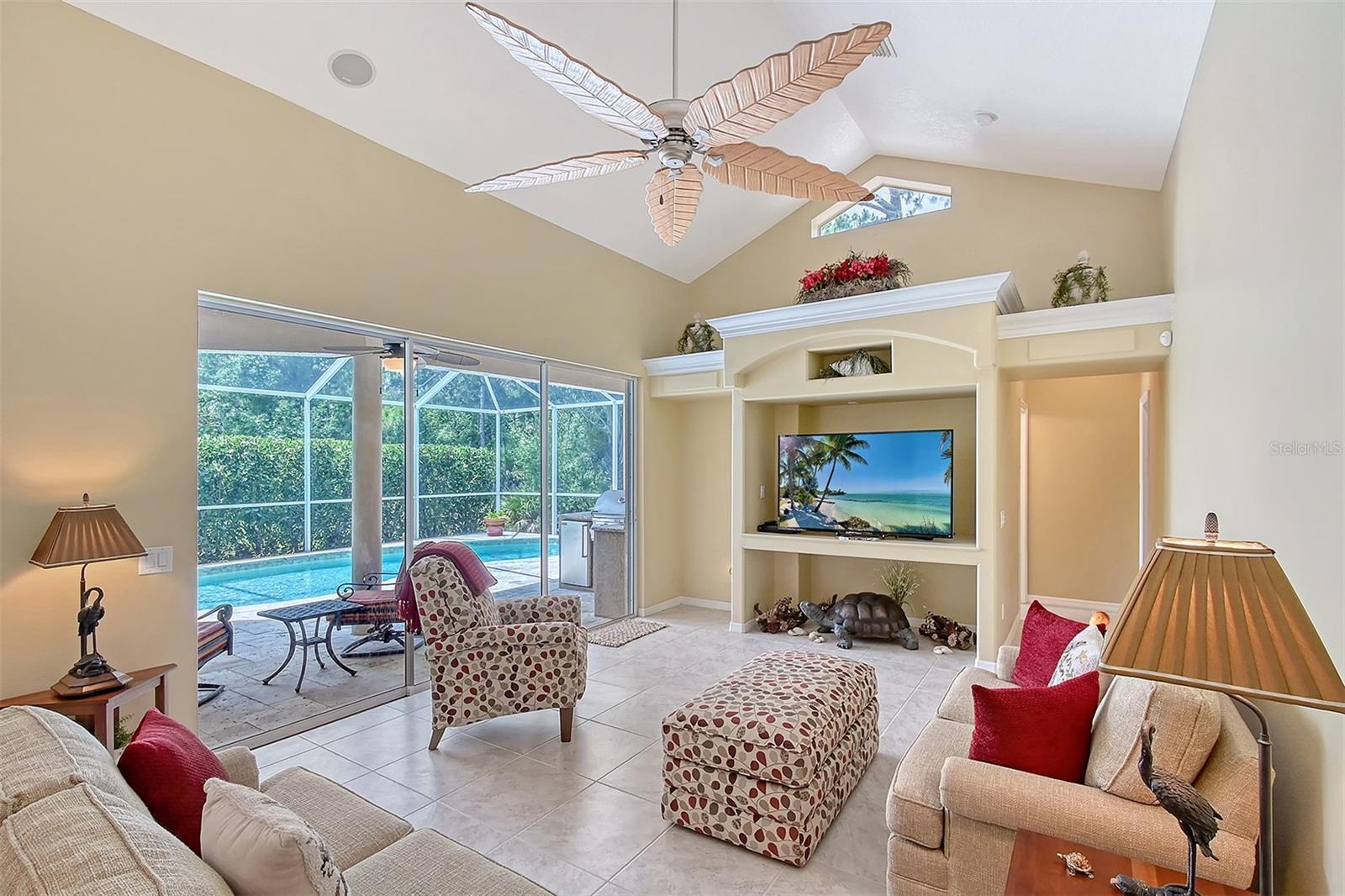 Palmer Ranch w/EXTRA LOW HOA Fees! This Updated Home has it ALL! Features include: 4 Bedrooms, 3 Full Baths, Open Living Room and Dining w/Slider to Pool, Separate Family Room w/Cathedral Ceilings, Built-ins w/TV Niche, Speaker System and Slider to Pool, Fabulous Granite Kitchen w/Bosch Stainless Appliances, Pantry Closet, Under Cabinet Lighting, Eating Bar plus Breakfast Nook w/Aquarium Window; Master Suite w/Double Doors, Wood Flooring, Slider to Pool, Walk-in Closet w/Custom Built-ins, Updated 5-Piece Master Bath w/Soaking Tub, Glass Block Shower and Double Vanity; Split Bedroom Plan w/Wood Flooring and Hall Bath w/Linen Closet, Separate 4th Bedroom/Home Office w/Granite Desk Built-ins, Wood Flooring and Views to Preserve, Pool Bath w/French Door to Lanai; Laundry Room w/Closet, New Impact Rated Front Door, Newer Porcelain Tile and Engineered Wood Flooring, Whole House Water Filter System, Irrigation System, Extended 3 Car Garage w/Extra Long Driveway, Caged Resurfaced Pool w/New Travertine Pool Deck, 2 Covered Lanai Areas (22x8 & 11x7) plus Out-Door Kitchen w/BBQ, Refrigerator, Granite Counters and Sink; NEW ROOF prior to Closing or Buyer Roof Credit, Very Private Corner Location and Peaceful Views to Tropical Jungle Preserve. Community Features: Stonebridge Private Community Pool, Top Rated Schools, Costco, Fine Dining, Fabulous Shopping, Legacy Bike Trail, Golfing, Easy Access to I-75 and Famous Siesta Key Beaches are all Minutes Away! Don't Miss Out on this One!