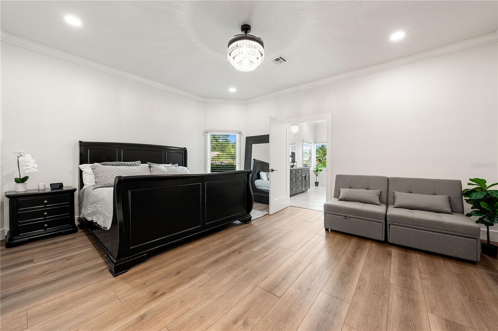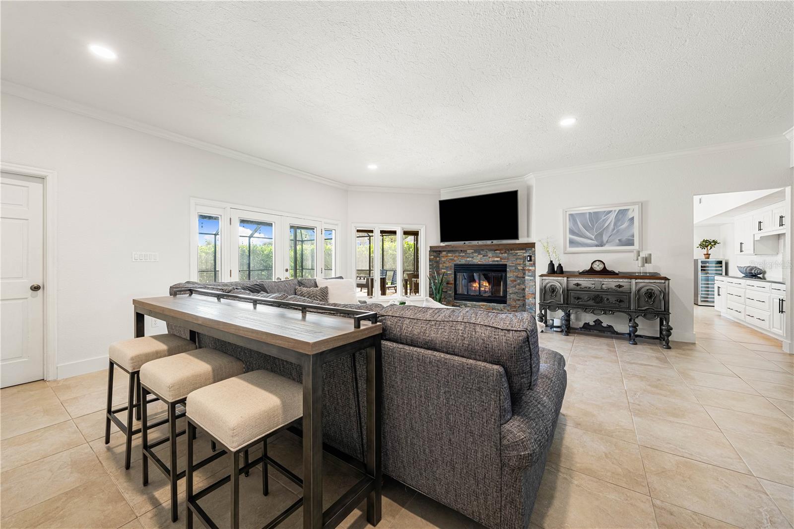 Welcome to Southbay Yacht & Racquet Club, one of the Gulf Coast's most coveted communities--where every day feels like a vacation! Southbay boasts a world-class private marina with 172 deep-water slips, accommodating yachts up to 55 feet, along with personal watercraft and kayaks. Slip rentals are available and offered at a highly competitive rate, making this an exceptional value for boating enthusiasts. This remarkable residence is one of the largest in the community and offers a rare 3-car, side-load garage with a dedicated workshop--perfect for collectors, creatives, or anyone in need of additional space. Step outside to your private oasis: a peaceful lanai overlooking a sparkling, heated pool and spa--ideal for both lavish entertaining and quiet moments of retreat. Inside, every detail has been meticulously curated. A recent, designer-led renovation has transformed the home into a sophisticated showplace. The interiors reflect a timeless elegance, with a high-contrast black and white palette that creates a dramatic yet harmonious flow throughout the home. Clean lines, thoughtful textures, and classic materials elevate each space with effortless style. A reimagined front entrance welcomes you into soaring ceilings and a stunning great room filled with natural light. The gourmet kitchen is equally impressive, featuring white solid wood cabinetry with soft-close drawers, stainless steel appliances, and gleaming granite countertops--all designed with both beauty and functionality in mind. With two expansive living areas, oversized bedrooms, two en-suites, and multiple storage options, this home provides ample space for elegant living and entertaining. Southbay also offers a newly renovated clubhouse, resort style heated community pool, tennis courts, pickleball courts, miles of walking trails & green space, and a full calendar of vibrant social events year-round. The community is warm, welcoming, and lively--perfect for families and those who enjoy an active, coastal lifestyle. Conveniently located next to Publix, shops & restaurants. Across the street from Oscar Scherer State Park, and only 5 minutes to the number 1 school in the state-Pine View. This is not just a home; it is a statement of style, comfort, and grace. Come and experience the elevated lifestyle that only Southbay Yacht & Racquet Club can offer.