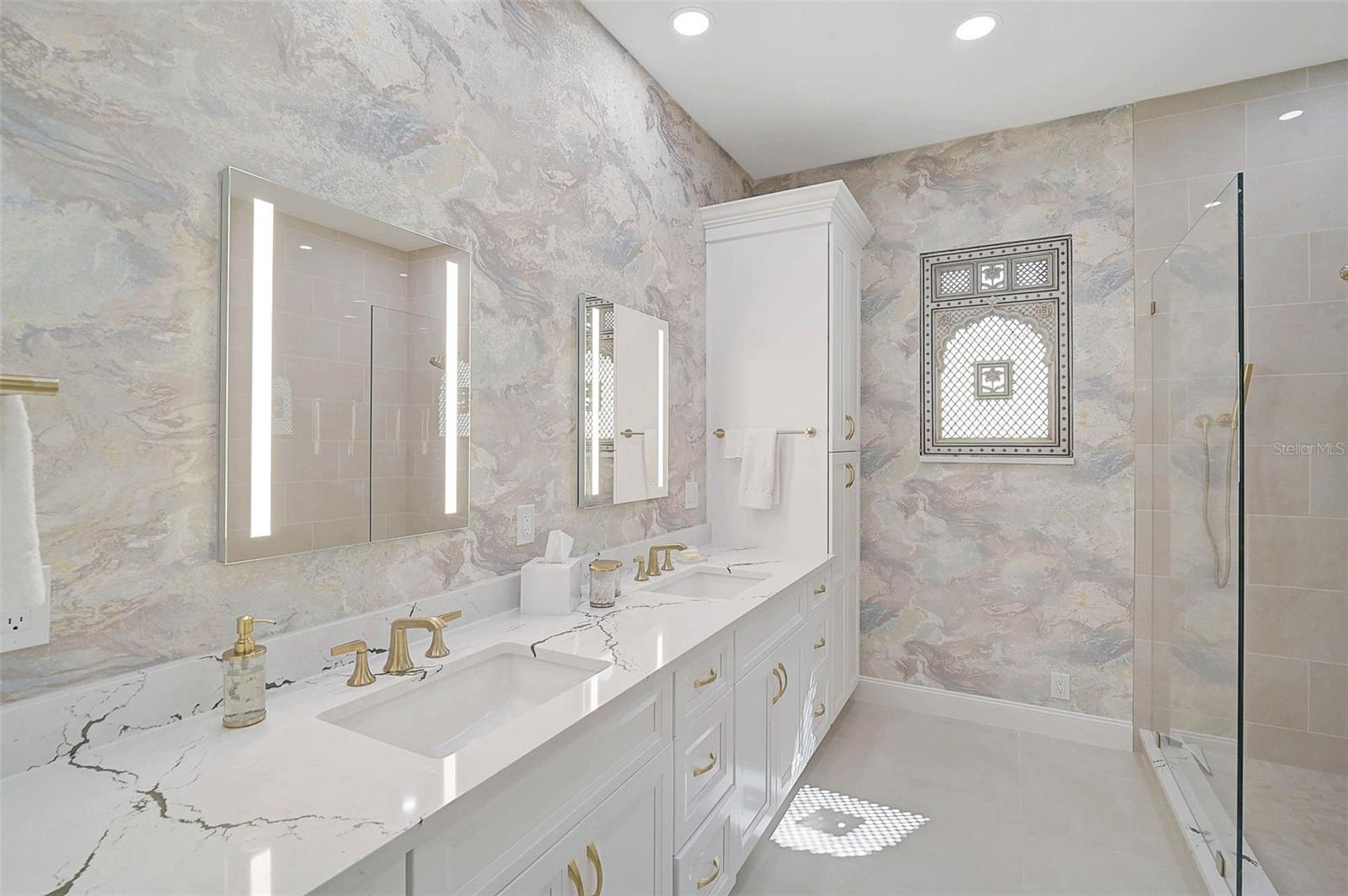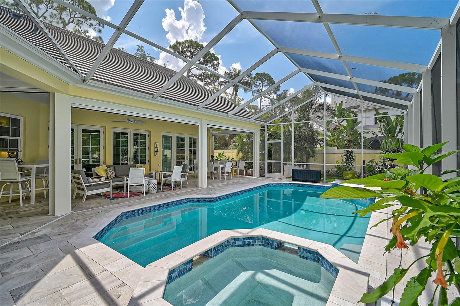 **BRILLIANTY DESIGNED, FULLY RENOVATED, STUNNING and SERENE RESIDENCE with Lush Garden Landscape** is located behind the Secure Gates of The Oaks Bayside, Country Club neighborhood. Featuring 4 BEDROOMS (2 En Suite) and 4 FULL BATHS, this Open Floorplan with Soaring Ceilings, Custom Built-Ins, Crown Moldings and refined details throughout is ideal for entertaining both inside and out! The Impressive Kitchen features Silestone Counters, Premium Appliances including SUBZERO and WOLF, Large Island with sitting area, separate dry bar, etc. The Expansive Primary Bedroom Suite entails a Large Walk-In Closet with custom built-ins and spacious bath with dual vanities, quartz counters, seamless glass shower, etc. Stunning Outdoor Entertaining area features an expansive, screened lanai with Heated Pool and Spa, travertine pool deck, and NEW Remote-Controlled Hurricane Screens (2025) surrounded by a tranquil and impressive garden landscape with desirable privacy wall. A Comprehensive List of Improvements is available upon request and includes NEW ROOF (2021), 2 NEW HVAC UNITS w/UV PURIFICATION (2021), NEW HURRICANE IMPACT WINDOWS and DOORS (2021), 500-GAL PROPANE TANK (2022), FRESHLY PAINTED INTERIOR & EXTERIOR, NEW ELECTRICAL SERVICE PANEL, AIR-CONDITIONED GARAGE with NEW, HURRICANE-RATED GARAGE DOORS, and MUCH MORE! NO FLOODING (Flood Zone "X"). The nearby Private Day Dock on Little Sarasota Bay is a valued amenity for Oaks-Bayside residents. THE OAKS is a distinguished, 24hr Guarded, Country Club Community which boasts many accolades including: Platinum Club of America, Emerald Club of the World, Elite Distinguished Club of the World and One of America's Healthiest Clubs - where amenities include Three Restaurants, Ballroom, Two 18-hole championship GOLF courses, award-winning RACQUETS program with 12 Har-Tru Hydro-Grid TENNIS courts, 4 PICKLEBALL Courts, wonderful CROQUET facility, state-of-the-art FITNESS center and junior Olympic, heated community SWIMMING POOL, Bocce, Basketball Court, Playground and more! The Oaks is just minutes from nationally ranked Pine View School, the Legacy Bike Trail, area Beaches and all that Gulf Coast living has to offer. Membership is required and there is NO WAITLIST for GOLF or SOCIAL Membership. **Please Enjoy Viewing the 3D VIRTUAL TOUR and AERIAL VIDEO**