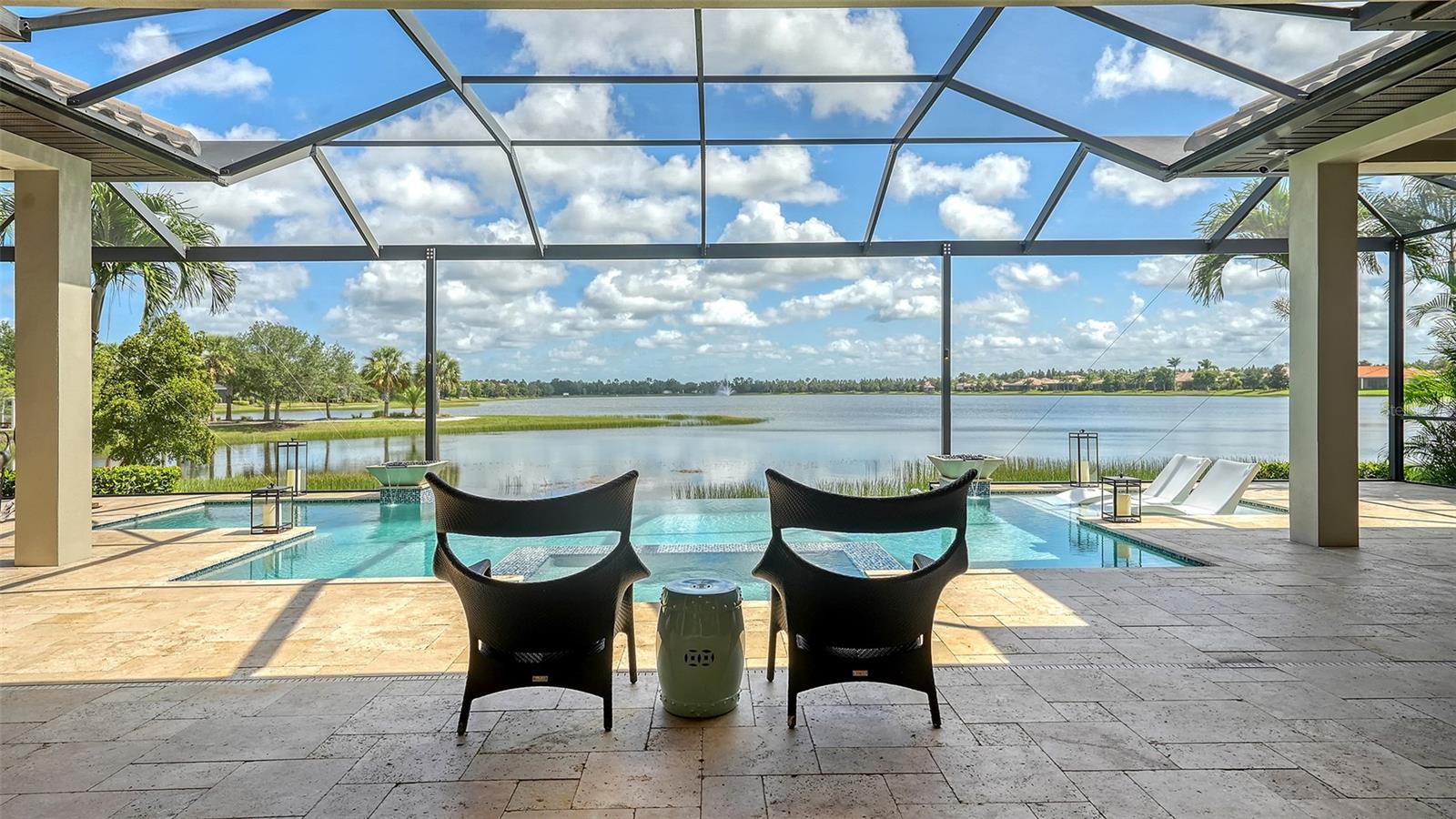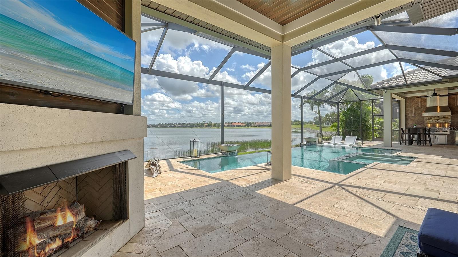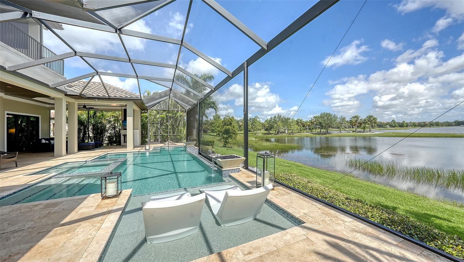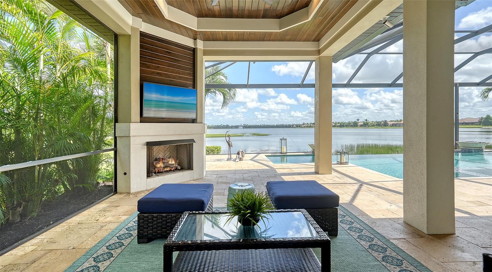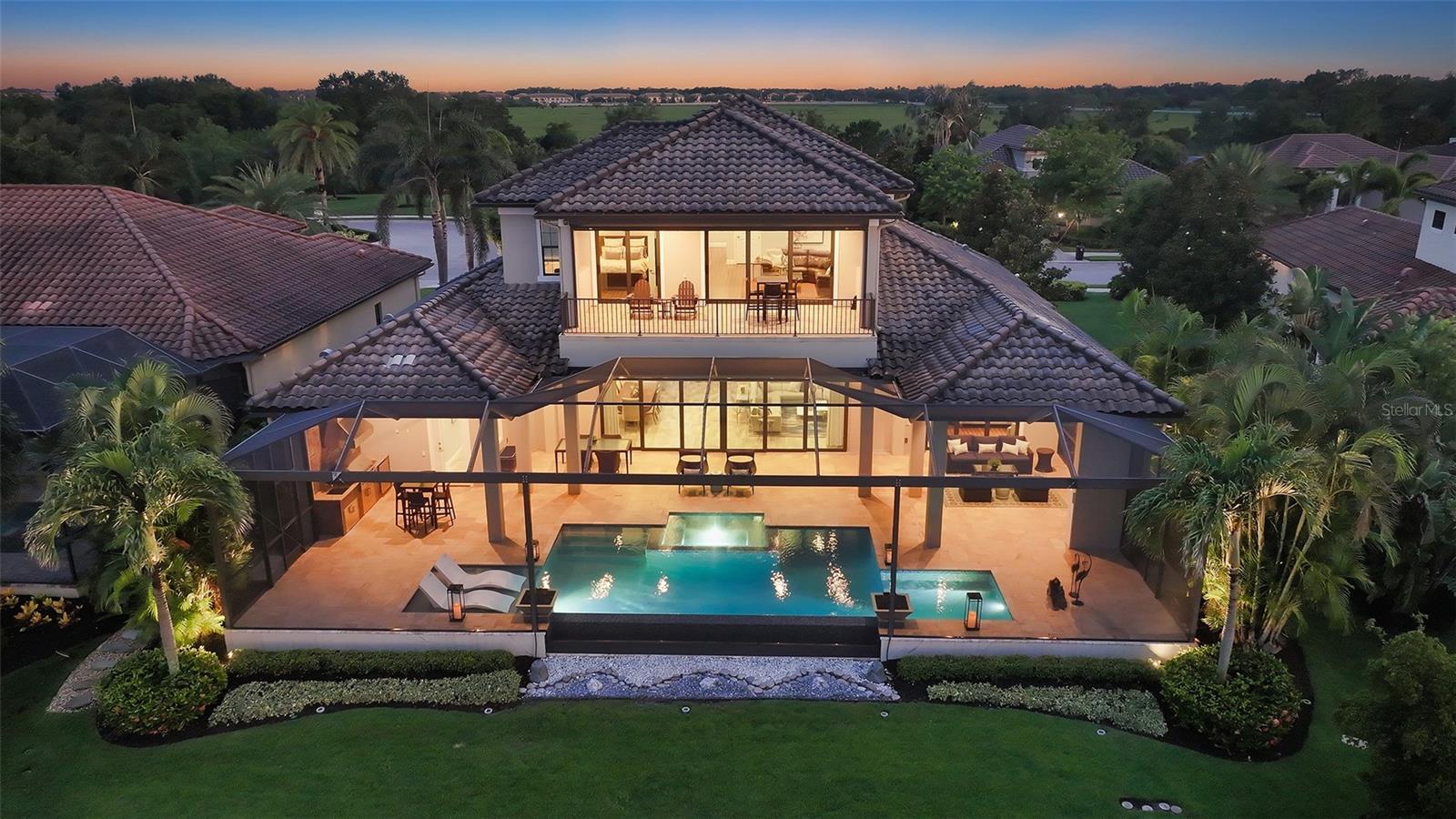 Unparalleled luxury and privacy await in this custom-designed Arthur Rutenberg home, perfectly situated in the gated community of Country Club East in Lakewood Ranch. From the moment you arrive, you'll be captivated by the stunning curb appeal, with impeccably upgraded landscaping, exterior lighting, and a stately presence that sets this home apart. Positioned on a premium homesite with unobstructed, panoramic long lake views, this residence offers a rare combination of elegance and seclusion.Step inside to a sophisticated interior where thoughtful design meets modern convenience. The open living space is anchored by pocketing sliders that lead to an exceptional outdoor oasis featuring a resort-style infinity-edge pool and spa with fire bowls and water feature, wood-paneled ceilings, a covered lanai with a cozy outdoor fireplace seating area, an outdoor kitchen, and convenient access to a cabana bath--ideal for both relaxing and entertaining year-round. Inside, the gourmet kitchen is a dream for any chef, complete with granite countertops, a marble stone backsplash, built-in oven, cooktop, large island with seating and storage, and a walk-in pantry.The main floor features a luxurious primary suite overlooking the lake, as well as a private guest suite and a dedicated office. Upstairs, two additional guest suites and a spacious bonus room with a wet bar open to a rear balcony, creating the perfect retreat for family or guests. Throughout the home, you'll find high-end finishes including porcelain tile and engineered hardwood floors, solid wood interior core doors, as well as advanced features such as whole-house Control4 smart home technology, whole-house audio, central vacuum, and a dedicated wine area for entertaining.Built for comfort and efficiency, the home includes a whole-house generator, impact glass windows and doors, energy-efficient Icynene insulation, and ample storage throughout. The garage is equally impressive with split AC, an EV charger, and extensive built-in storage solutions.This is a rare opportunity to own one of the most thoughtfully designed and immaculately maintained homes in Country Club East, where luxury meets lifestyle in the heart of Lakewood Ranch. Schedule your private showing today and experience the serenity, sophistication, and smart living this exceptional property offers.