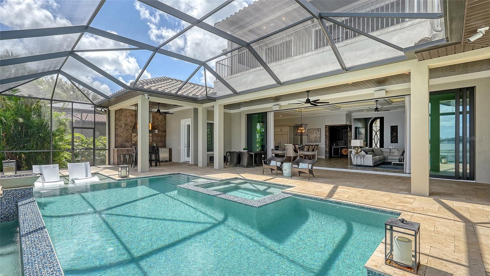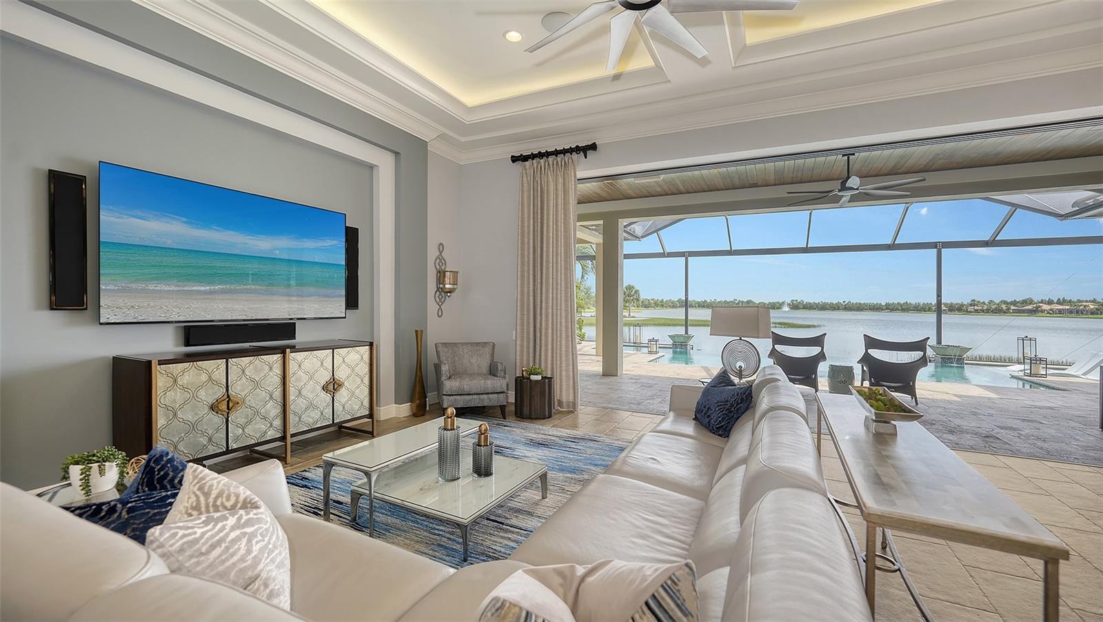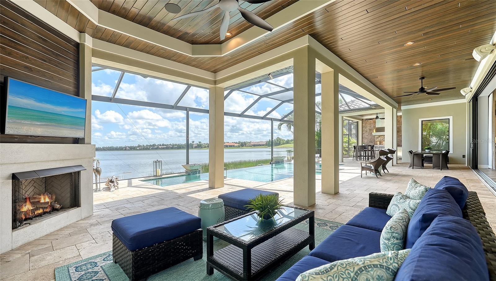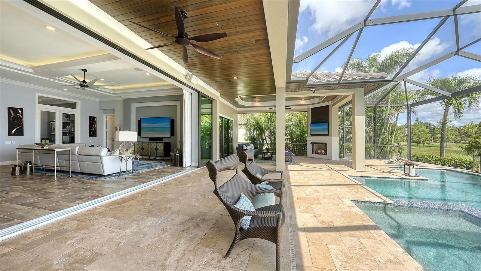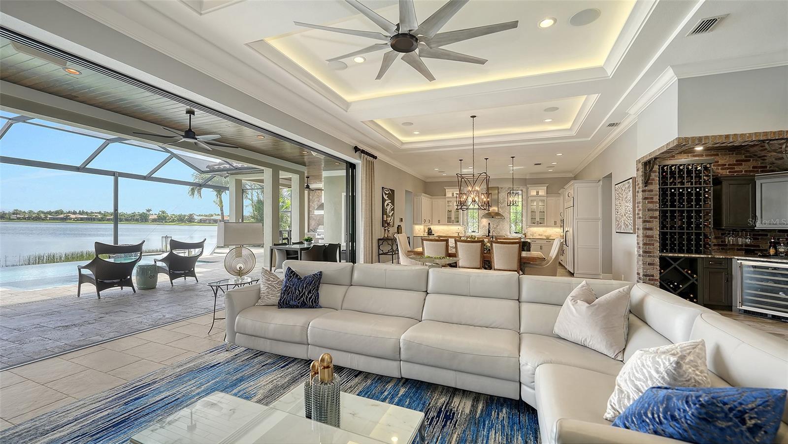 Unparalleled luxury and privacy await in this custom-designed Arthur Rutenberg home, perfectly situated in the gated community of Country Club East in Lakewood Ranch. From the moment you arrive, you'll be captivated by the stunning curb appeal, with impeccably upgraded landscaping, exterior lighting, and a stately presence that sets this home apart. Positioned on a premium homesite with unobstructed, panoramic long lake views, this residence offers a rare combination of elegance and seclusion.Step inside to a sophisticated interior where thoughtful design meets modern convenience. The open living space is anchored by pocketing sliders that lead to an exceptional outdoor oasis featuring a resort-style infinity-edge pool and spa with fire bowls and water feature, wood-paneled ceilings, a covered lanai with a cozy outdoor fireplace seating area, an outdoor kitchen, and convenient access to a cabana bath--ideal for both relaxing and entertaining year-round. Inside, the gourmet kitchen is a dream for any chef, complete with granite countertops, a marble stone backsplash, built-in oven, cooktop, large island with seating and storage, and a walk-in pantry.The main floor features a luxurious primary suite overlooking the lake, as well as a private guest suite and a dedicated office. Upstairs, two additional guest suites and a spacious bonus room with a wet bar open to a rear balcony, creating the perfect retreat for family or guests. Throughout the home, you'll find high-end finishes including porcelain tile and engineered hardwood floors, solid wood interior core doors, as well as advanced features such as whole-house Control4 smart home technology, whole-house audio, central vacuum, and a dedicated wine area for entertaining.Built for comfort and efficiency, the home includes a whole-house generator, impact glass windows and doors, energy-efficient Icynene insulation, and ample storage throughout. The garage is equally impressive with split AC, an EV charger, and extensive built-in storage solutions.This is a rare opportunity to own one of the most thoughtfully designed and immaculately maintained homes in Country Club East, where luxury meets lifestyle in the heart of Lakewood Ranch. Schedule your private showing today and experience the serenity, sophistication, and smart living this exceptional property offers.