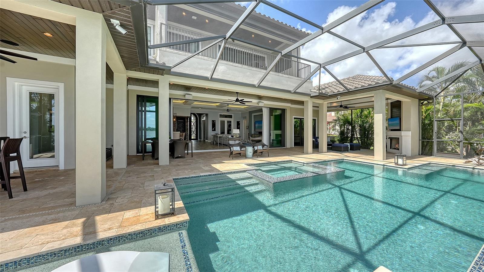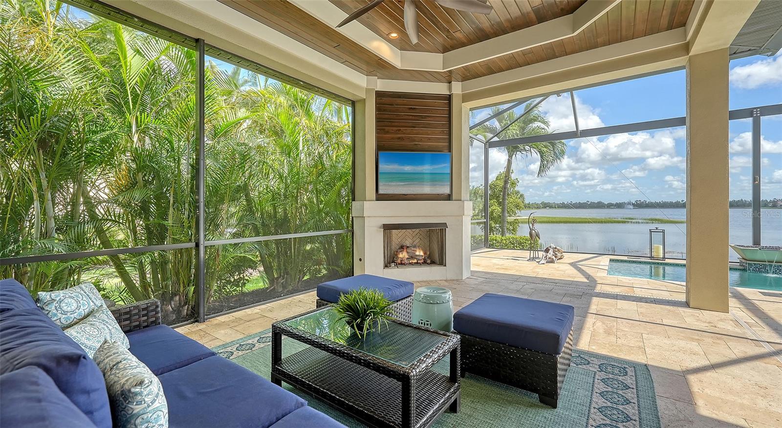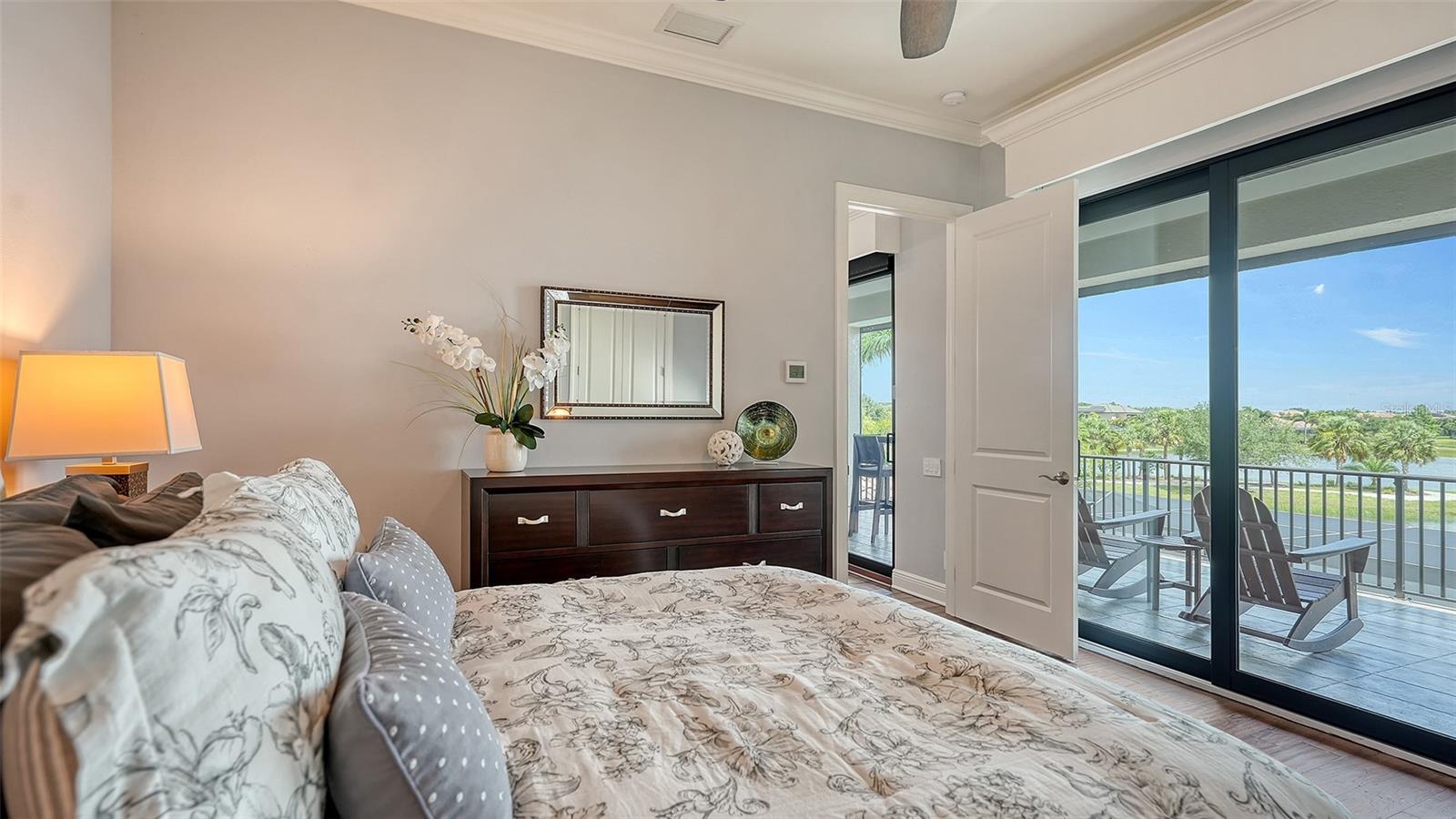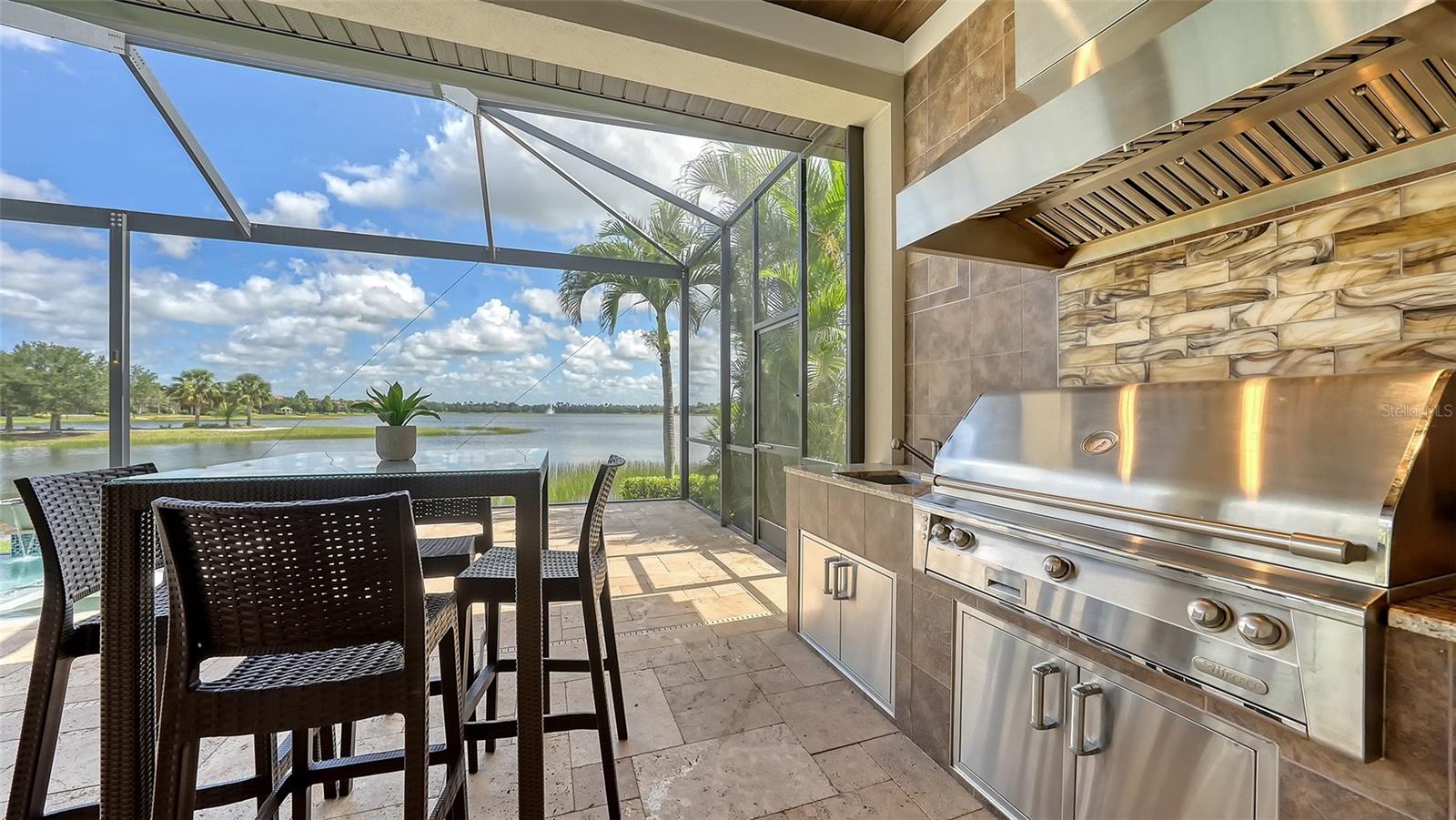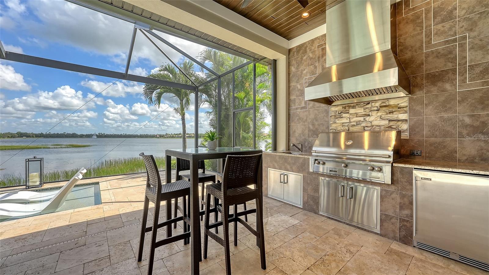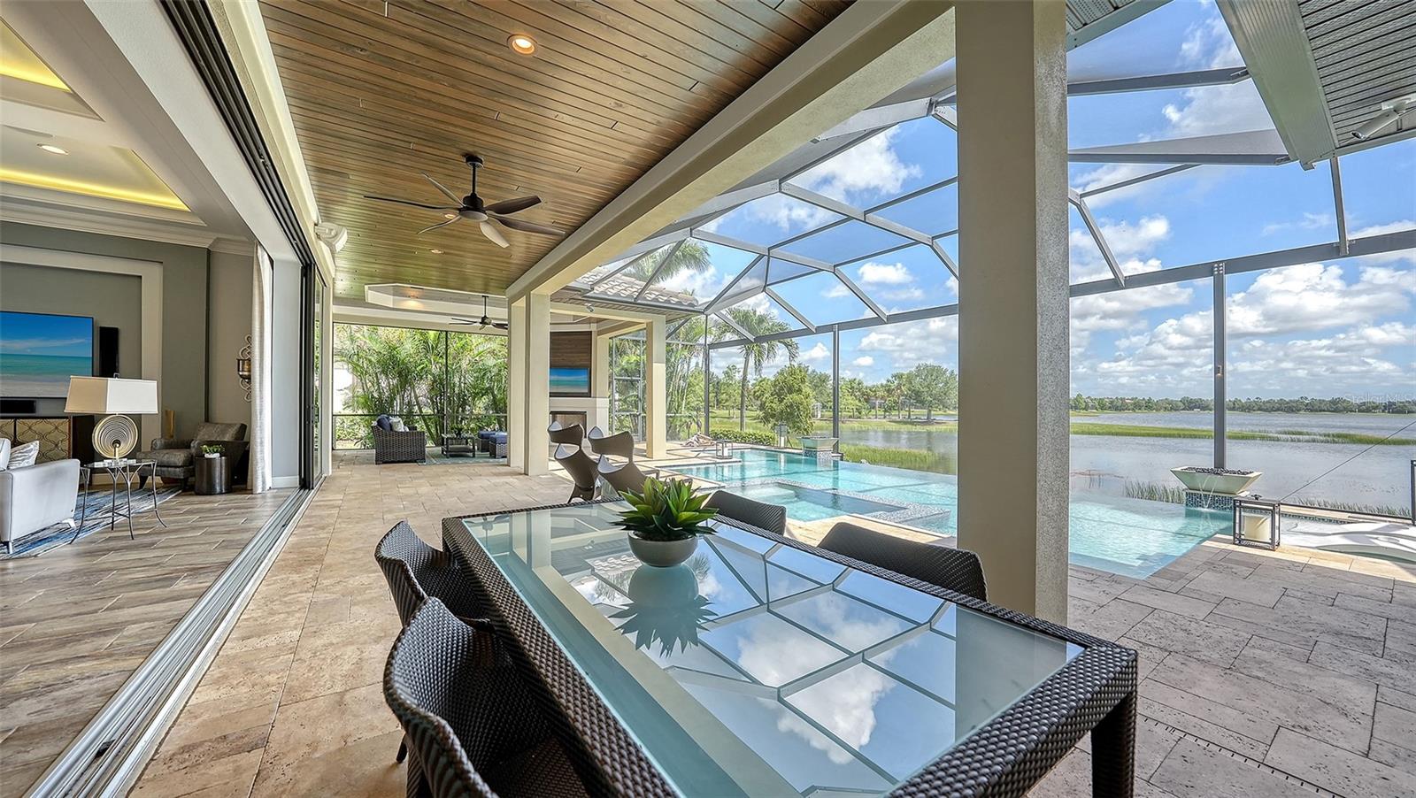 Unparalleled luxury and privacy await in this custom-designed Arthur Rutenberg home, perfectly situated in the gated community of Country Club East in Lakewood Ranch. From the moment you arrive, you'll be captivated by the stunning curb appeal, with impeccably upgraded landscaping, exterior lighting, and a stately presence that sets this home apart. Positioned on a premium homesite with unobstructed, panoramic long lake views, this residence offers a rare combination of elegance and seclusion.Step inside to a sophisticated interior where thoughtful design meets modern convenience. The open living space is anchored by pocketing sliders that lead to an exceptional outdoor oasis featuring a resort-style infinity-edge pool and spa with fire bowls and water feature, wood-paneled ceilings, a covered lanai with a cozy outdoor fireplace seating area, an outdoor kitchen, and convenient access to a cabana bath--ideal for both relaxing and entertaining year-round. Inside, the gourmet kitchen is a dream for any chef, complete with granite countertops, a marble stone backsplash, built-in oven, cooktop, large island with seating and storage, and a walk-in pantry.The main floor features a luxurious primary suite overlooking the lake, as well as a private guest suite and a dedicated office. Upstairs, two additional guest suites and a spacious bonus room with a wet bar open to a rear balcony, creating the perfect retreat for family or guests. Throughout the home, you'll find high-end finishes including porcelain tile and engineered hardwood floors, solid wood interior core doors, as well as advanced features such as whole-house Control4 smart home technology, whole-house audio, central vacuum, and a dedicated wine area for entertaining.Built for comfort and efficiency, the home includes a whole-house generator, impact glass windows and doors, energy-efficient Icynene insulation, and ample storage throughout. The garage is equally impressive with split AC, an EV charger, and extensive built-in storage solutions.This is a rare opportunity to own one of the most thoughtfully designed and immaculately maintained homes in Country Club East, where luxury meets lifestyle in the heart of Lakewood Ranch. Schedule your private showing today and experience the serenity, sophistication, and smart living this exceptional property offers.