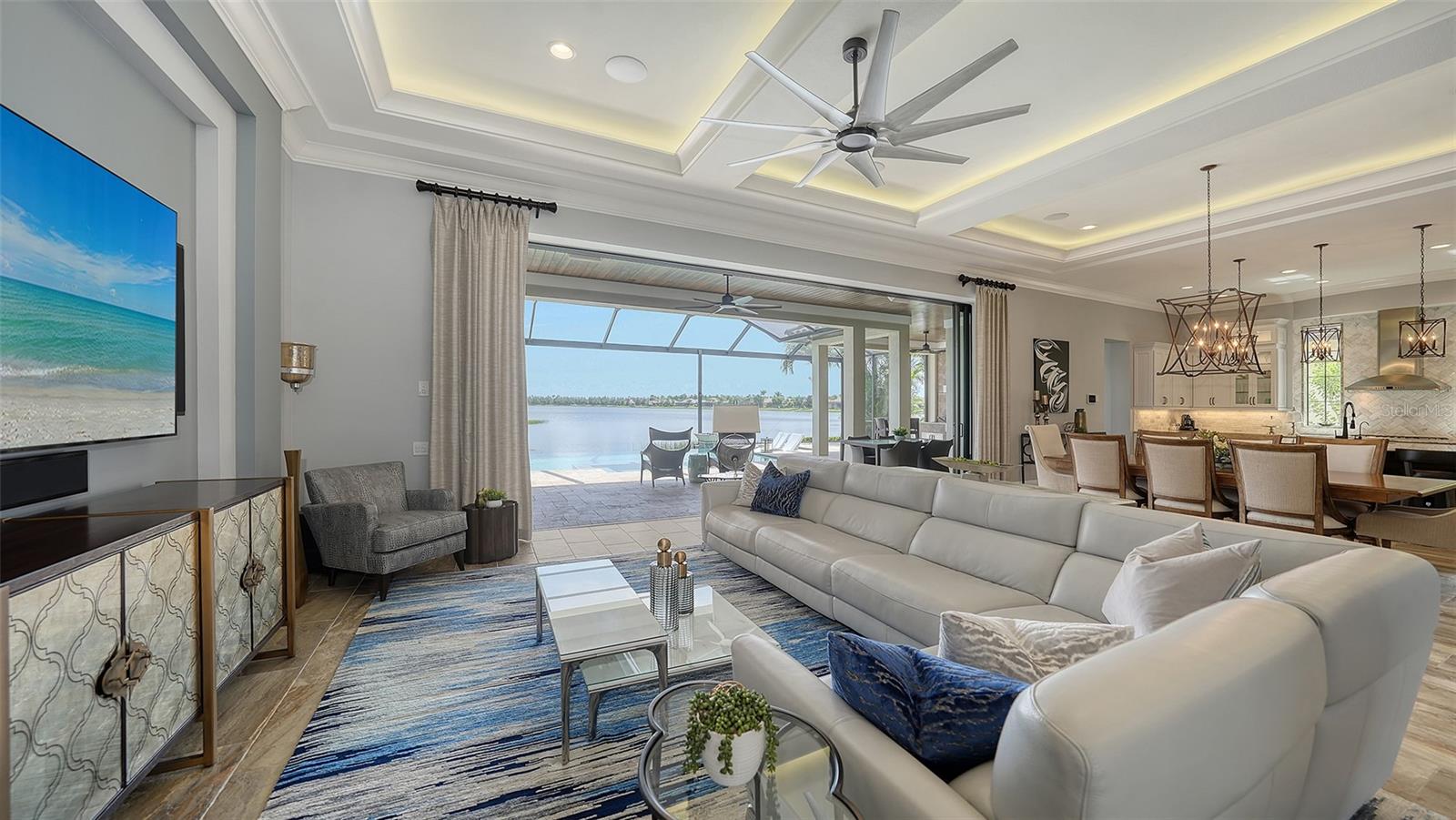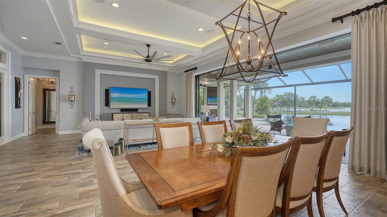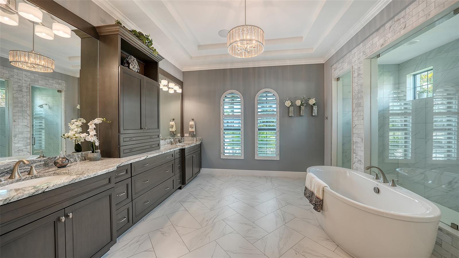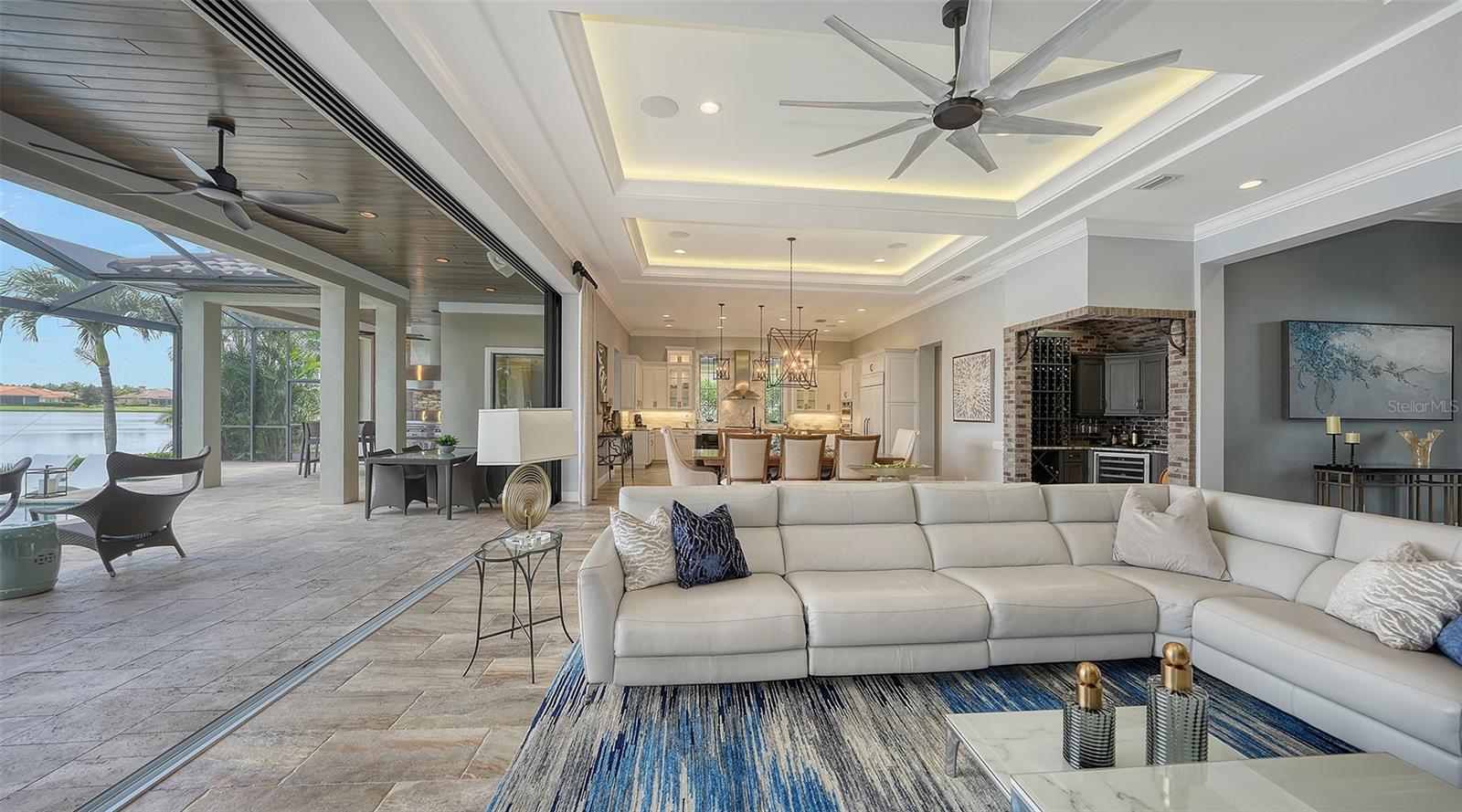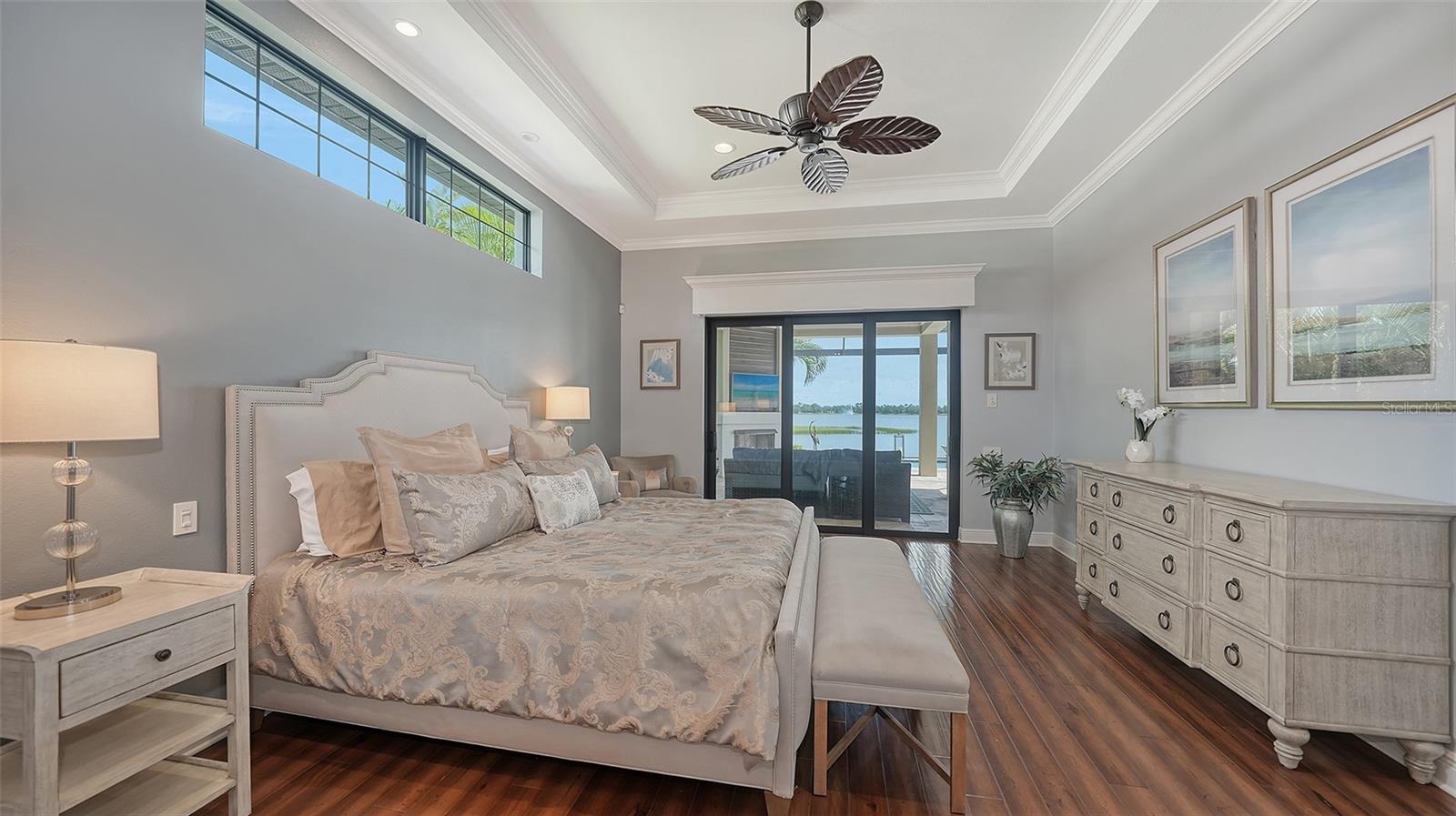 Unparalleled luxury and privacy await in this custom-designed Arthur Rutenberg home, perfectly situated in the gated community of Country Club East in Lakewood Ranch. From the moment you arrive, you'll be captivated by the stunning curb appeal, with impeccably upgraded landscaping, exterior lighting, and a stately presence that sets this home apart. Positioned on a premium homesite with unobstructed, panoramic long lake views, this residence offers a rare combination of elegance and seclusion.Step inside to a sophisticated interior where thoughtful design meets modern convenience. The open living space is anchored by pocketing sliders that lead to an exceptional outdoor oasis featuring a resort-style infinity-edge pool and spa with fire bowls and water feature, wood-paneled ceilings, a covered lanai with a cozy outdoor fireplace seating area, an outdoor kitchen, and convenient access to a cabana bath--ideal for both relaxing and entertaining year-round. Inside, the gourmet kitchen is a dream for any chef, complete with granite countertops, a marble stone backsplash, built-in oven, cooktop, large island with seating and storage, and a walk-in pantry.The main floor features a luxurious primary suite overlooking the lake, as well as a private guest suite and a dedicated office. Upstairs, two additional guest suites and a spacious bonus room with a wet bar open to a rear balcony, creating the perfect retreat for family or guests. Throughout the home, you'll find high-end finishes including porcelain tile and engineered hardwood floors, solid wood interior core doors, as well as advanced features such as whole-house Control4 smart home technology, whole-house audio, central vacuum, and a dedicated wine area for entertaining.Built for comfort and efficiency, the home includes a whole-house generator, impact glass windows and doors, energy-efficient Icynene insulation, and ample storage throughout. The garage is equally impressive with split AC, an EV charger, and extensive built-in storage solutions.This is a rare opportunity to own one of the most thoughtfully designed and immaculately maintained homes in Country Club East, where luxury meets lifestyle in the heart of Lakewood Ranch. Schedule your private showing today and experience the serenity, sophistication, and smart living this exceptional property offers.