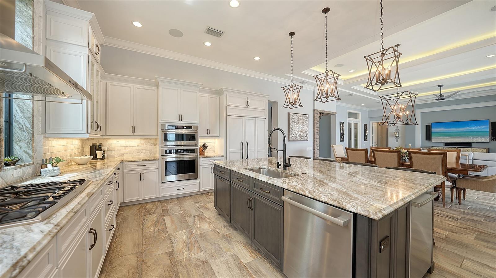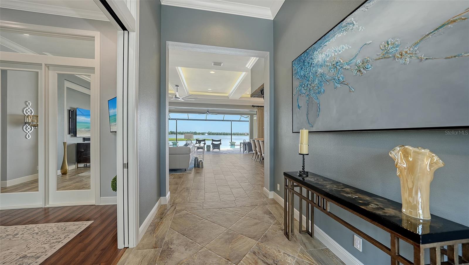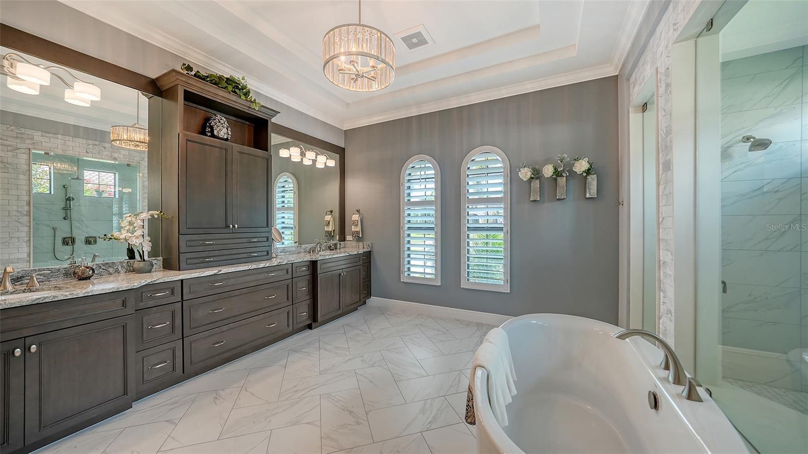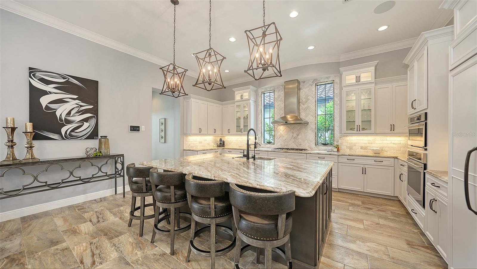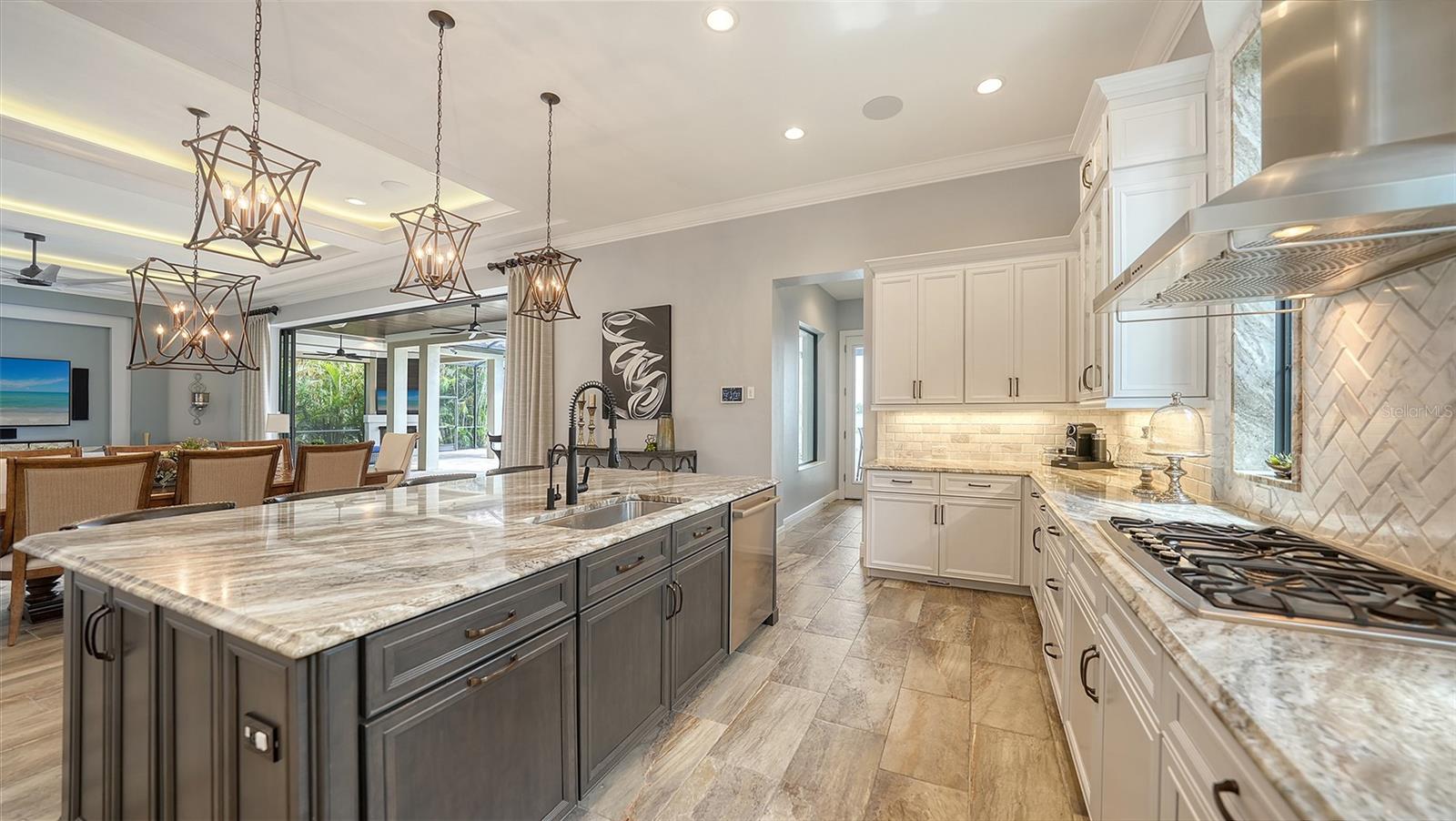 Unparalleled luxury and privacy await in this custom-designed Arthur Rutenberg home, perfectly situated in the gated community of Country Club East in Lakewood Ranch. From the moment you arrive, you'll be captivated by the stunning curb appeal, with impeccably upgraded landscaping, exterior lighting, and a stately presence that sets this home apart. Positioned on a premium homesite with unobstructed, panoramic long lake views, this residence offers a rare combination of elegance and seclusion.Step inside to a sophisticated interior where thoughtful design meets modern convenience. The open living space is anchored by pocketing sliders that lead to an exceptional outdoor oasis featuring a resort-style infinity-edge pool and spa with fire bowls and water feature, wood-paneled ceilings, a covered lanai with a cozy outdoor fireplace seating area, an outdoor kitchen, and convenient access to a cabana bath--ideal for both relaxing and entertaining year-round. Inside, the gourmet kitchen is a dream for any chef, complete with granite countertops, a marble stone backsplash, built-in oven, cooktop, large island with seating and storage, and a walk-in pantry.The main floor features a luxurious primary suite overlooking the lake, as well as a private guest suite and a dedicated office. Upstairs, two additional guest suites and a spacious bonus room with a wet bar open to a rear balcony, creating the perfect retreat for family or guests. Throughout the home, you'll find high-end finishes including porcelain tile and engineered hardwood floors, solid wood interior core doors, as well as advanced features such as whole-house Control4 smart home technology, whole-house audio, central vacuum, and a dedicated wine area for entertaining.Built for comfort and efficiency, the home includes a whole-house generator, impact glass windows and doors, energy-efficient Icynene insulation, and ample storage throughout. The garage is equally impressive with split AC, an EV charger, and extensive built-in storage solutions.This is a rare opportunity to own one of the most thoughtfully designed and immaculately maintained homes in Country Club East, where luxury meets lifestyle in the heart of Lakewood Ranch. Schedule your private showing today and experience the serenity, sophistication, and smart living this exceptional property offers.