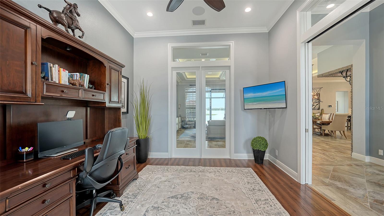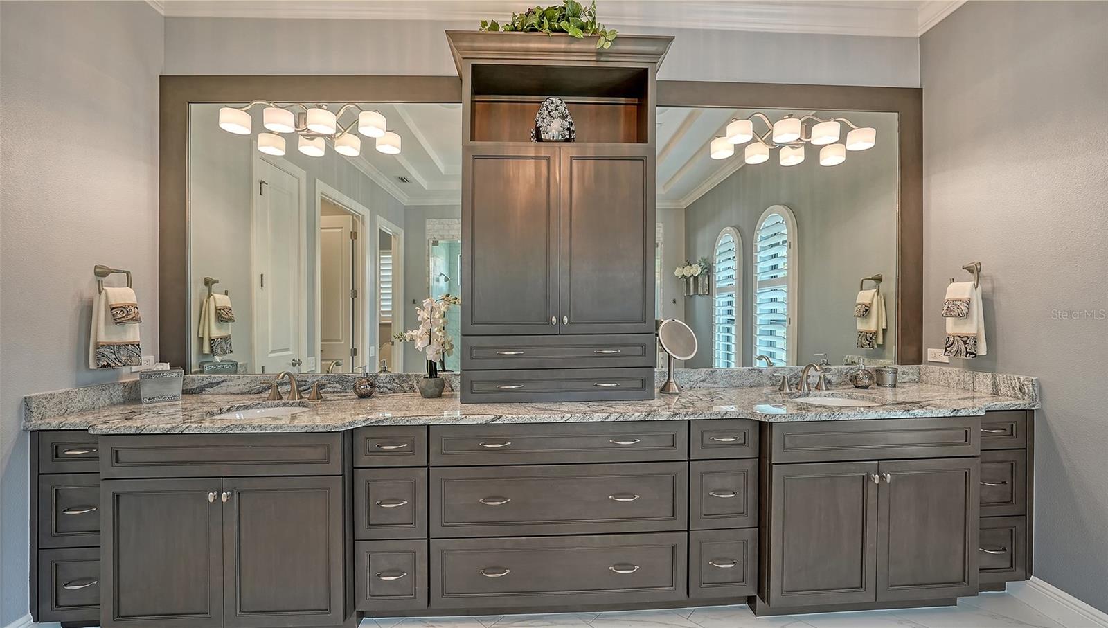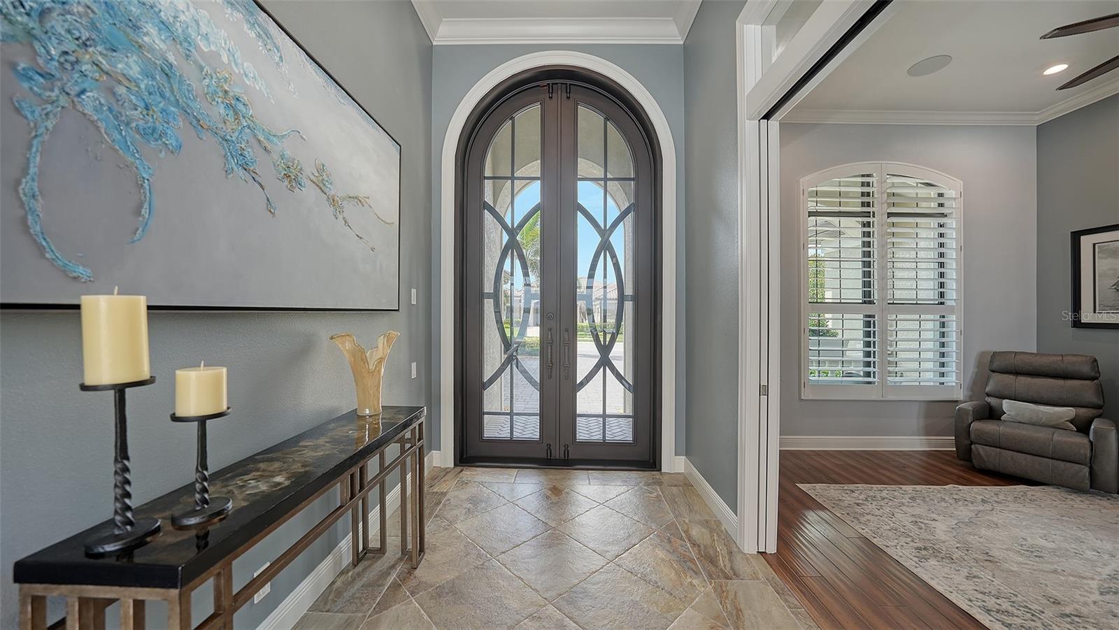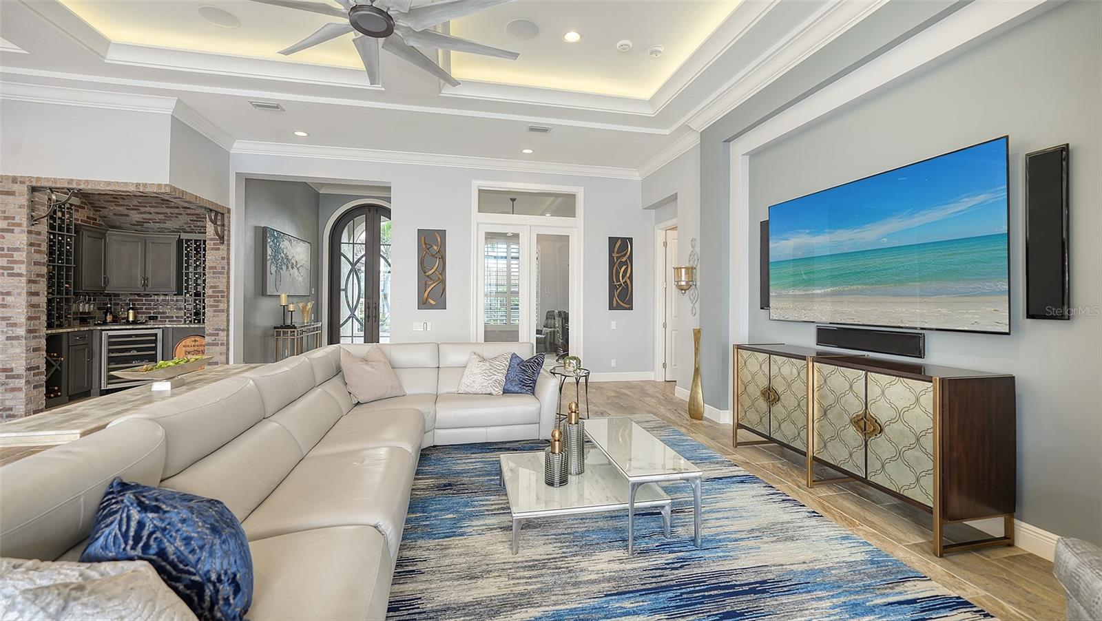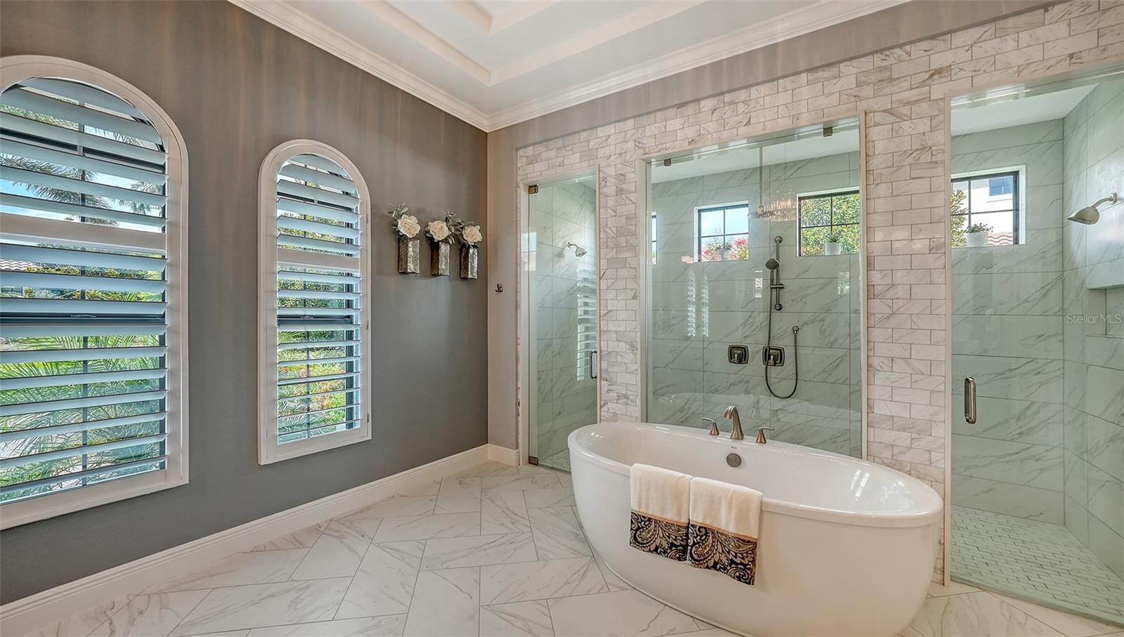 Unparalleled luxury and privacy await in this custom-designed Arthur Rutenberg home, perfectly situated in the gated community of Country Club East in Lakewood Ranch. From the moment you arrive, you'll be captivated by the stunning curb appeal, with impeccably upgraded landscaping, exterior lighting, and a stately presence that sets this home apart. Positioned on a premium homesite with unobstructed, panoramic long lake views, this residence offers a rare combination of elegance and seclusion.Step inside to a sophisticated interior where thoughtful design meets modern convenience. The open living space is anchored by pocketing sliders that lead to an exceptional outdoor oasis featuring a resort-style infinity-edge pool and spa with fire bowls and water feature, wood-paneled ceilings, a covered lanai with a cozy outdoor fireplace seating area, an outdoor kitchen, and convenient access to a cabana bath--ideal for both relaxing and entertaining year-round. Inside, the gourmet kitchen is a dream for any chef, complete with granite countertops, a marble stone backsplash, built-in oven, cooktop, large island with seating and storage, and a walk-in pantry.The main floor features a luxurious primary suite overlooking the lake, as well as a private guest suite and a dedicated office. Upstairs, two additional guest suites and a spacious bonus room with a wet bar open to a rear balcony, creating the perfect retreat for family or guests. Throughout the home, you'll find high-end finishes including porcelain tile and engineered hardwood floors, solid wood interior core doors, as well as advanced features such as whole-house Control4 smart home technology, whole-house audio, central vacuum, and a dedicated wine area for entertaining.Built for comfort and efficiency, the home includes a whole-house generator, impact glass windows and doors, energy-efficient Icynene insulation, and ample storage throughout. The garage is equally impressive with split AC, an EV charger, and extensive built-in storage solutions.This is a rare opportunity to own one of the most thoughtfully designed and immaculately maintained homes in Country Club East, where luxury meets lifestyle in the heart of Lakewood Ranch. Schedule your private showing today and experience the serenity, sophistication, and smart living this exceptional property offers.