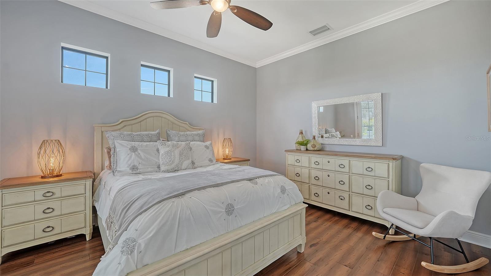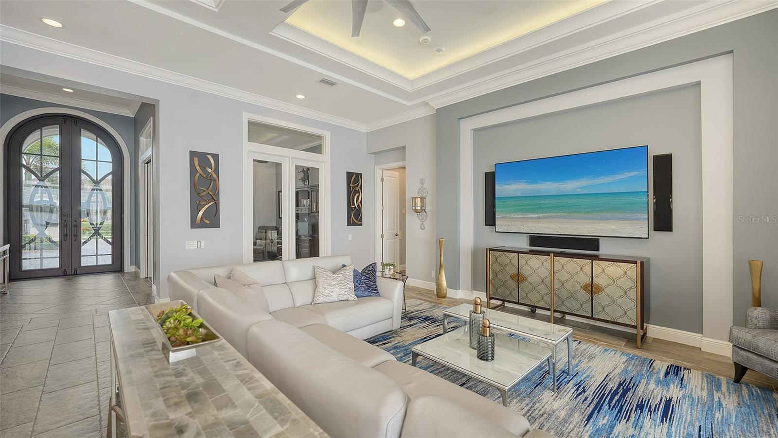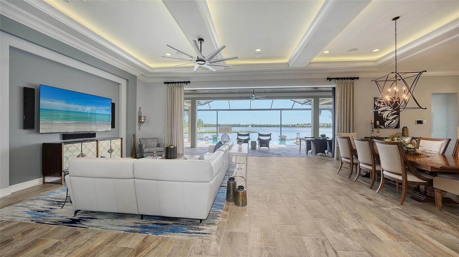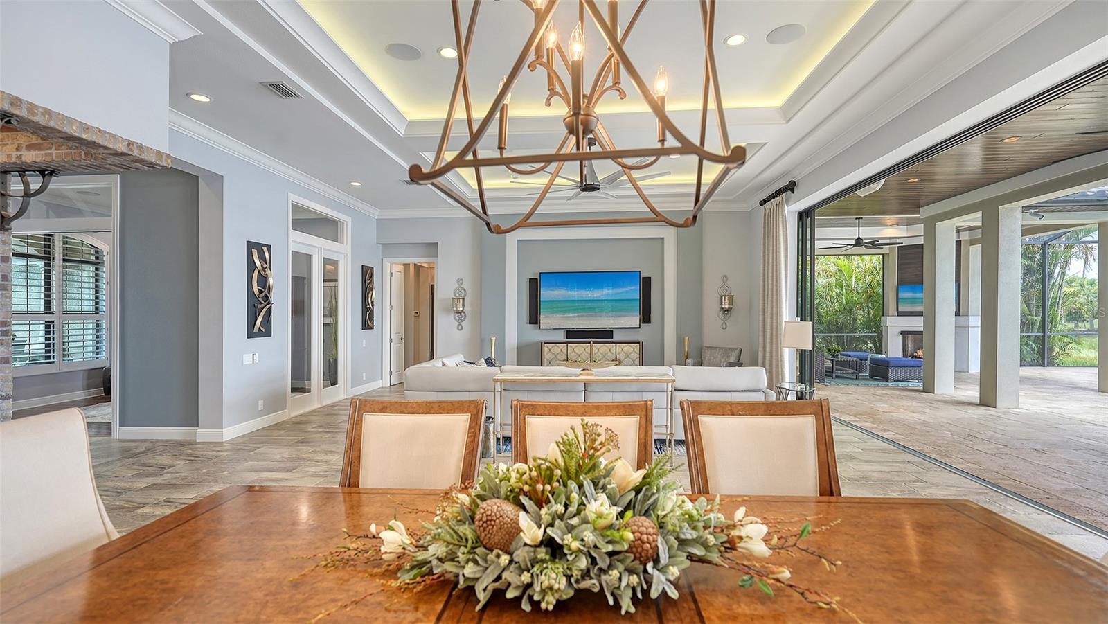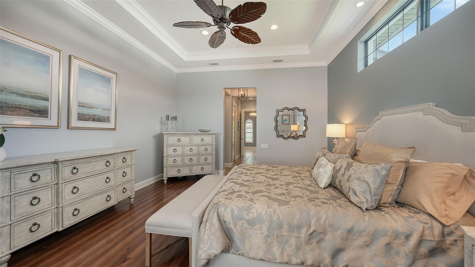 Unparalleled luxury and privacy await in this custom-designed Arthur Rutenberg home, perfectly situated in the gated community of Country Club East in Lakewood Ranch. From the moment you arrive, you'll be captivated by the stunning curb appeal, with impeccably upgraded landscaping, exterior lighting, and a stately presence that sets this home apart. Positioned on a premium homesite with unobstructed, panoramic long lake views, this residence offers a rare combination of elegance and seclusion.Step inside to a sophisticated interior where thoughtful design meets modern convenience. The open living space is anchored by pocketing sliders that lead to an exceptional outdoor oasis featuring a resort-style infinity-edge pool and spa with fire bowls and water feature, wood-paneled ceilings, a covered lanai with a cozy outdoor fireplace seating area, an outdoor kitchen, and convenient access to a cabana bath--ideal for both relaxing and entertaining year-round. Inside, the gourmet kitchen is a dream for any chef, complete with granite countertops, a marble stone backsplash, built-in oven, cooktop, large island with seating and storage, and a walk-in pantry.The main floor features a luxurious primary suite overlooking the lake, as well as a private guest suite and a dedicated office. Upstairs, two additional guest suites and a spacious bonus room with a wet bar open to a rear balcony, creating the perfect retreat for family or guests. Throughout the home, you'll find high-end finishes including porcelain tile and engineered hardwood floors, solid wood interior core doors, as well as advanced features such as whole-house Control4 smart home technology, whole-house audio, central vacuum, and a dedicated wine area for entertaining.Built for comfort and efficiency, the home includes a whole-house generator, impact glass windows and doors, energy-efficient Icynene insulation, and ample storage throughout. The garage is equally impressive with split AC, an EV charger, and extensive built-in storage solutions.This is a rare opportunity to own one of the most thoughtfully designed and immaculately maintained homes in Country Club East, where luxury meets lifestyle in the heart of Lakewood Ranch. Schedule your private showing today and experience the serenity, sophistication, and smart living this exceptional property offers.