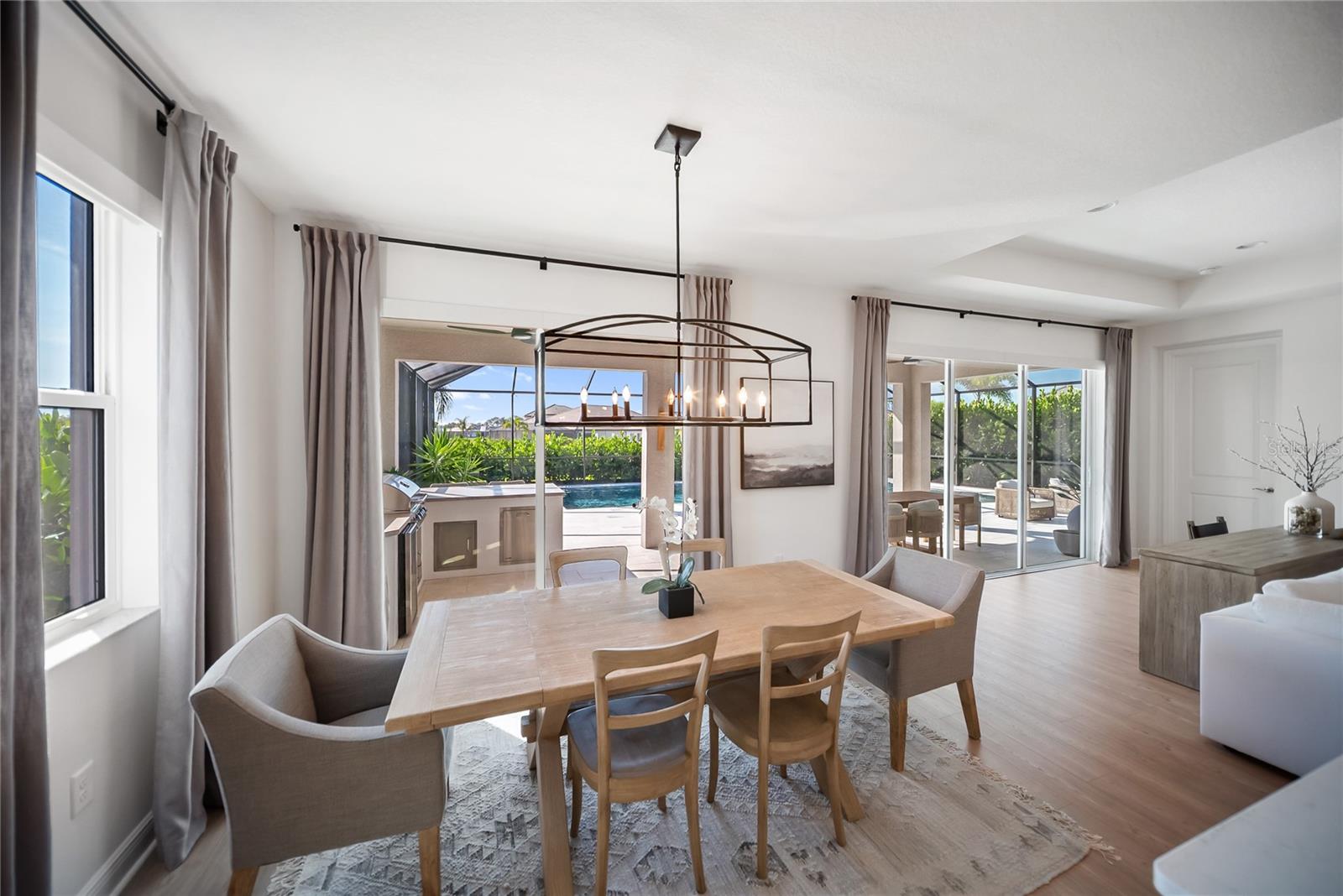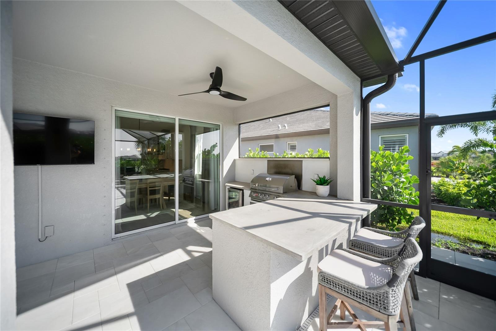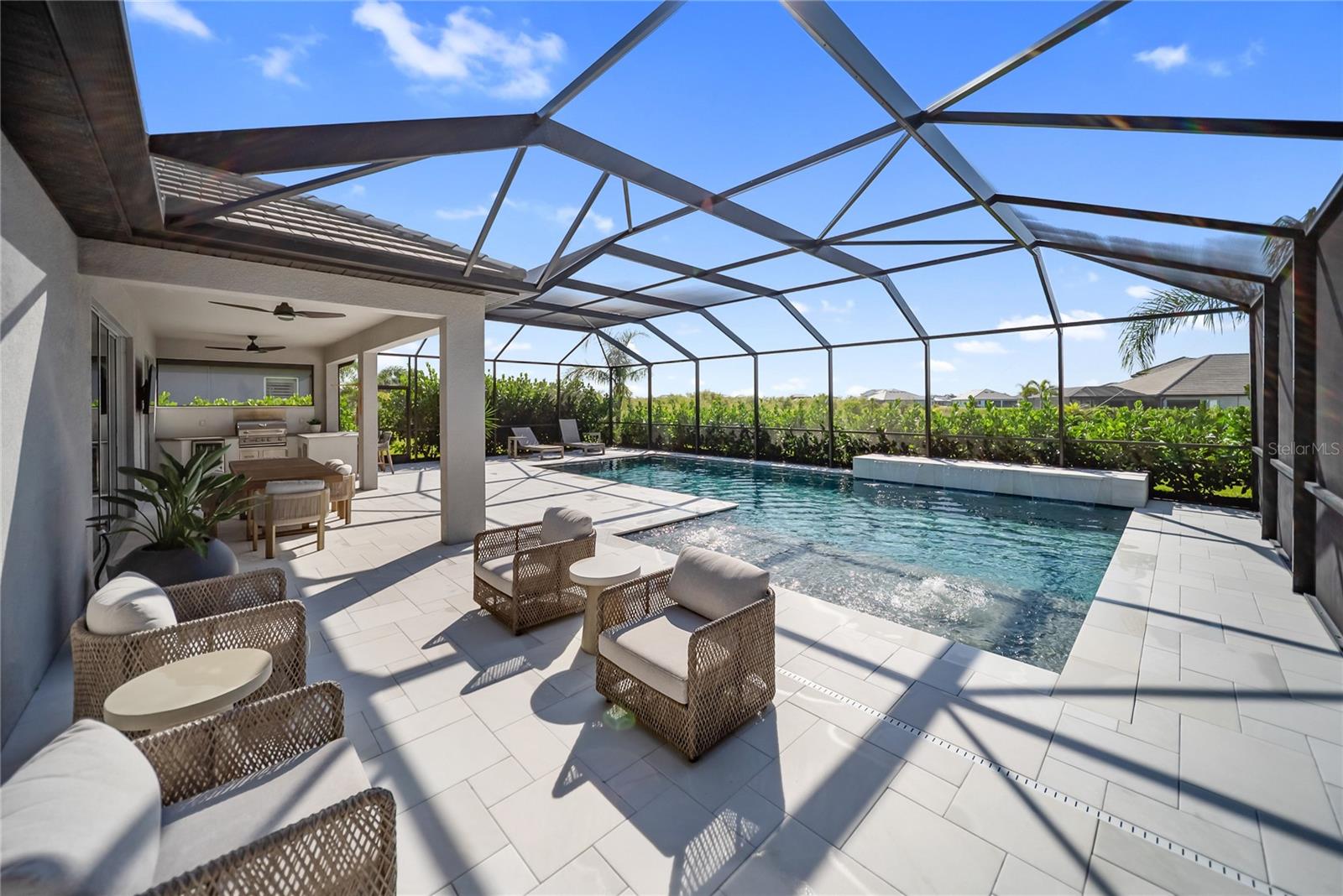 Seller now offering a $15,000 credit to the buyer at closing--flexible to use toward a rate buydown, closing costs, or to help reduce your monthly payment. This incentive adds value and affordability to an already beautifully upgraded home. A great opportunity for buyers looking to maximize their purchasing power! Welcome to your dream home in the highly sought-after Sweetwater community inLakewood Ranch--a beautifully upgraded 4-bedroom, 3- bathroom residence offeringmodern luxury, spacious comfort, and the laid-back Florida lifestyle. Nestled on a privatelot backing to open space and a lush preserve, this home offers the perfect backdrop forserene living and effortless entertaining. Step inside to a large open-concept kitchen,dining, and great room filled with natural light, enhanced by 9-foot ceilings, elegant trayceilings, and 8-foot doors. Design touches include an extended center island, ceiling-mounted window treatments, luxury Roman shades, and motorized premium fabricroller shades on the sliders. The living area flows through 8-foot and 12-foot sliders to1,900 SF of resort-style outdoor living, featuring a covered lanai, outdoor kitchen islandwith a natural gas grill and mini-fridge, and a large L-shaped, gas-heated saltwater poolwith three tranquil fountains--all anchored by glacier Italian marble tile and fullyenclosed for year-round entertaining and comfort. The kitchen offers ample cabinetspace, stainless steel appliances, modern hardware, and a fireclay farmhouse apronsink. A whole-house water filtration system and reverse osmosis system at the kitchensink provide added peace of mind. Finishes are modern and refined--laminate woodflooring throughout, Pottery Barn mirrors and fixtures in all bathrooms, and new lightingthroughout. The owner suite is filled with natural light, features a tray ceiling, spaciouswalk-in closet, and an en-suite bath with dual sinks, oversized glass shower, and privatewater closet. The second bath has a glass shower with floor-to-ceiling tile; the thirdincludes a tub/shower combo with tiled walls. Additional upgrades include an insulated,air-conditioned three-car garage perfect for a gym, golf simulator, or teen hangout.Professionally designed landscaping enhances curb appeal and provides privacy in theoutdoor spaces. The home is pre-wired for a security system and features front guttersfor water management. Enjoy Sweetwater's exceptional amenities: clubhouse, fitnesscenter, resort- style heated pool, pickleball courts, and playground--bringingconvenience and community to one of Lakewood Ranch's top neighborhoods. Thishome is fresh, move-in ready, and offers modern comfort in a beautiful natural setting.With no rear neighbors and peaceful preserve views, enjoy quiet mornings and stunningsunrises from your private lanai. If you're ready to entertain family and friends by thepool this summer, this is the home for you!