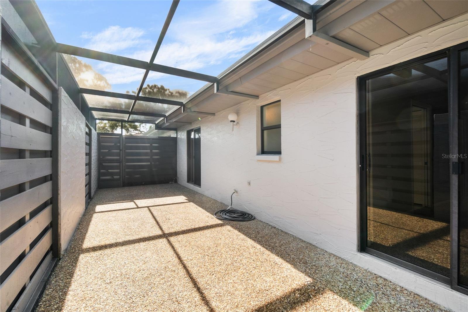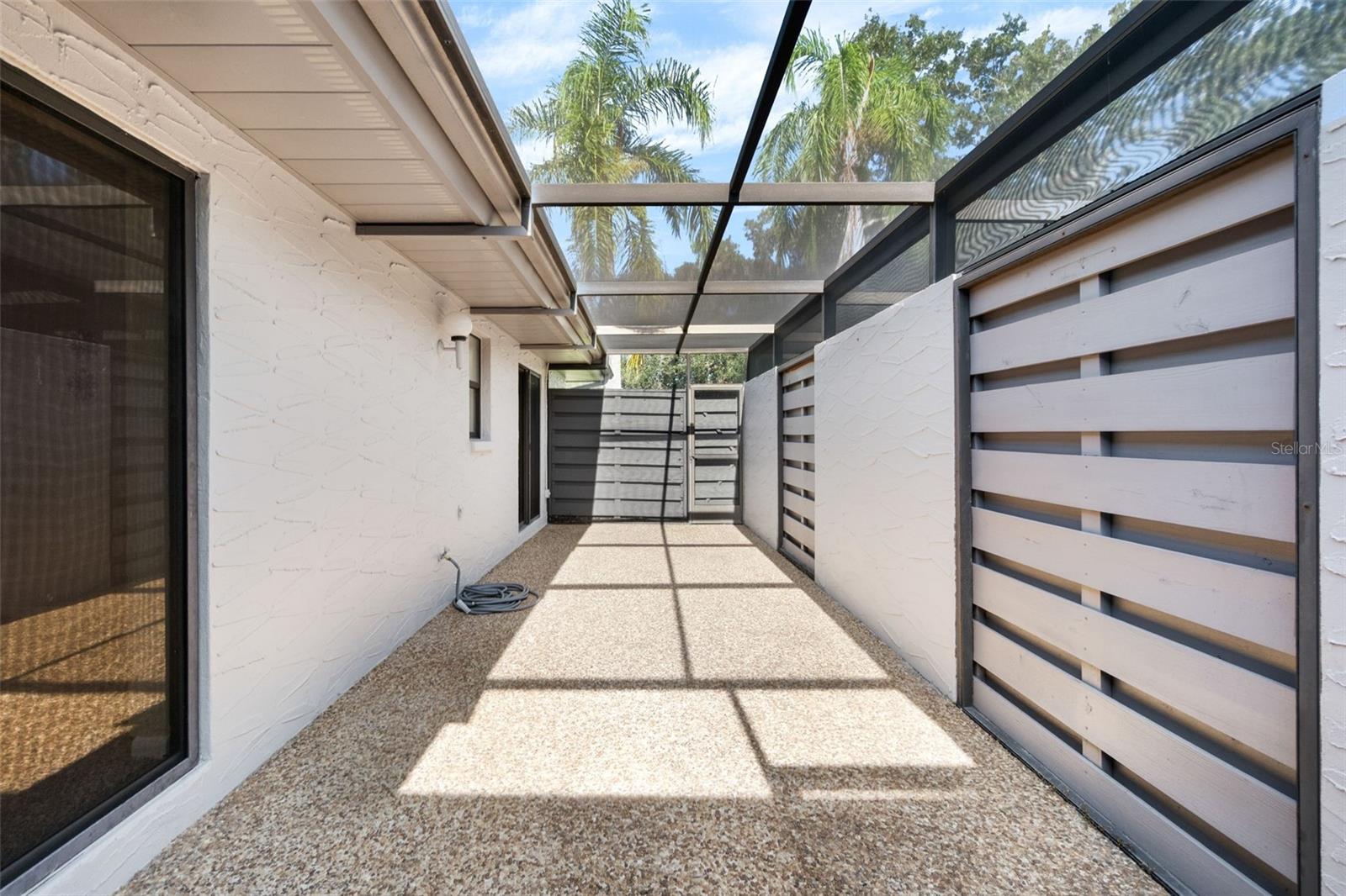 Rarely available 2100 sq ft, 3-bedroom, 3-bath villa with a 2-car garage and new 2025 roof in the sought-after, pet-friendly community of Center Gate Estates. This spacious and thoughtfully designed home features a split floor plan with soaring cathedral ceilings, formal living and dining areas, and a generously sized family room perfect for entertaining. The large kitchen includes a breakfast bar and pantry. A rare third full bathroom adds exceptional value and flexibility, makes all bedrooms en-suites, and is ideal for multigenerational living or guests. The oversized primary suite offers comfort and privacy, step through sliding glass doors to a 32?x10? fenced and screened lanai, perfect for morning coffee, reading, relaxing, or dining al fresco. Additional features include an interior laundry room with washer and dryer, and direct access to the community pool and cabana just steps from your back door. This centrally located community allows up to two small pets (under 30 lbs), has no age restrictions, and is close to I-75, Doctors Hospital, shopping, parks, golf, dining, top-rated schools, downtown Sarasota, and the world-famous Siesta Key Beach.