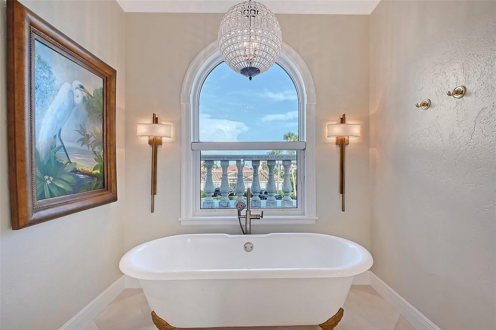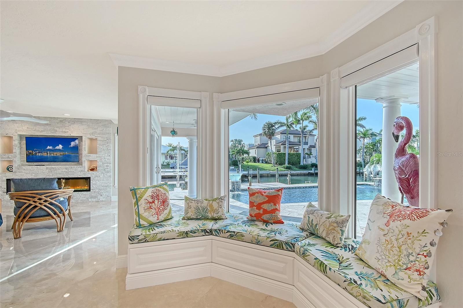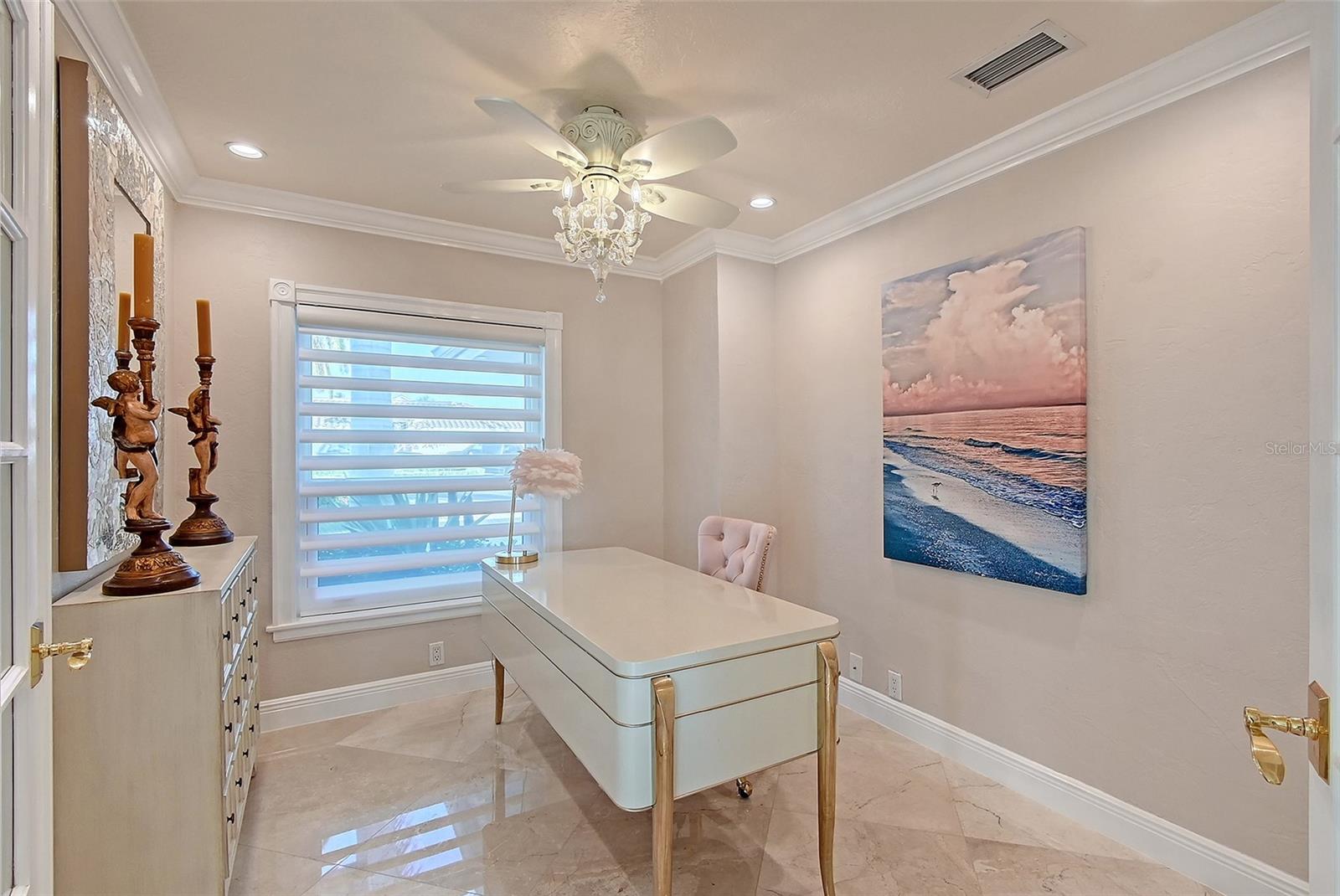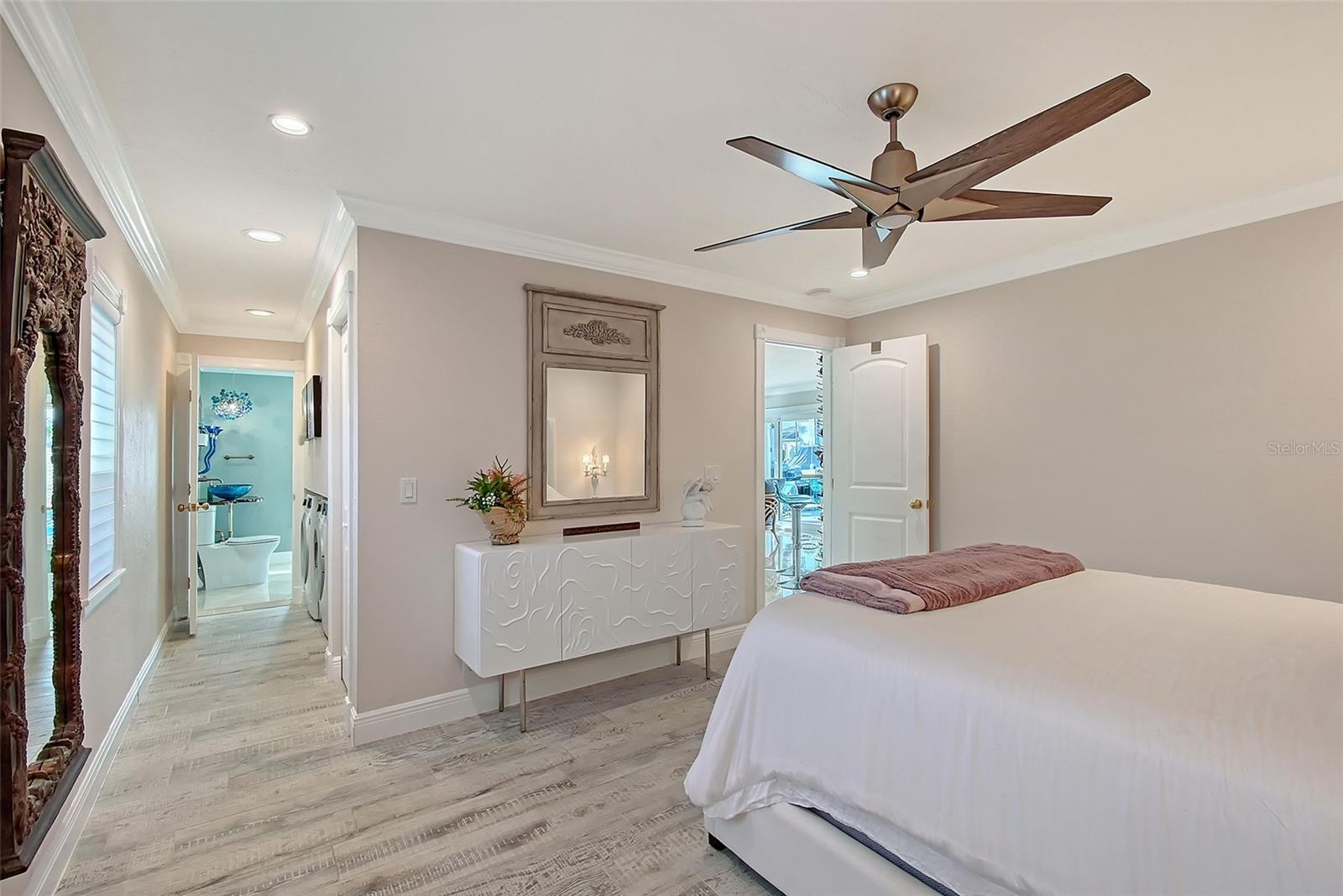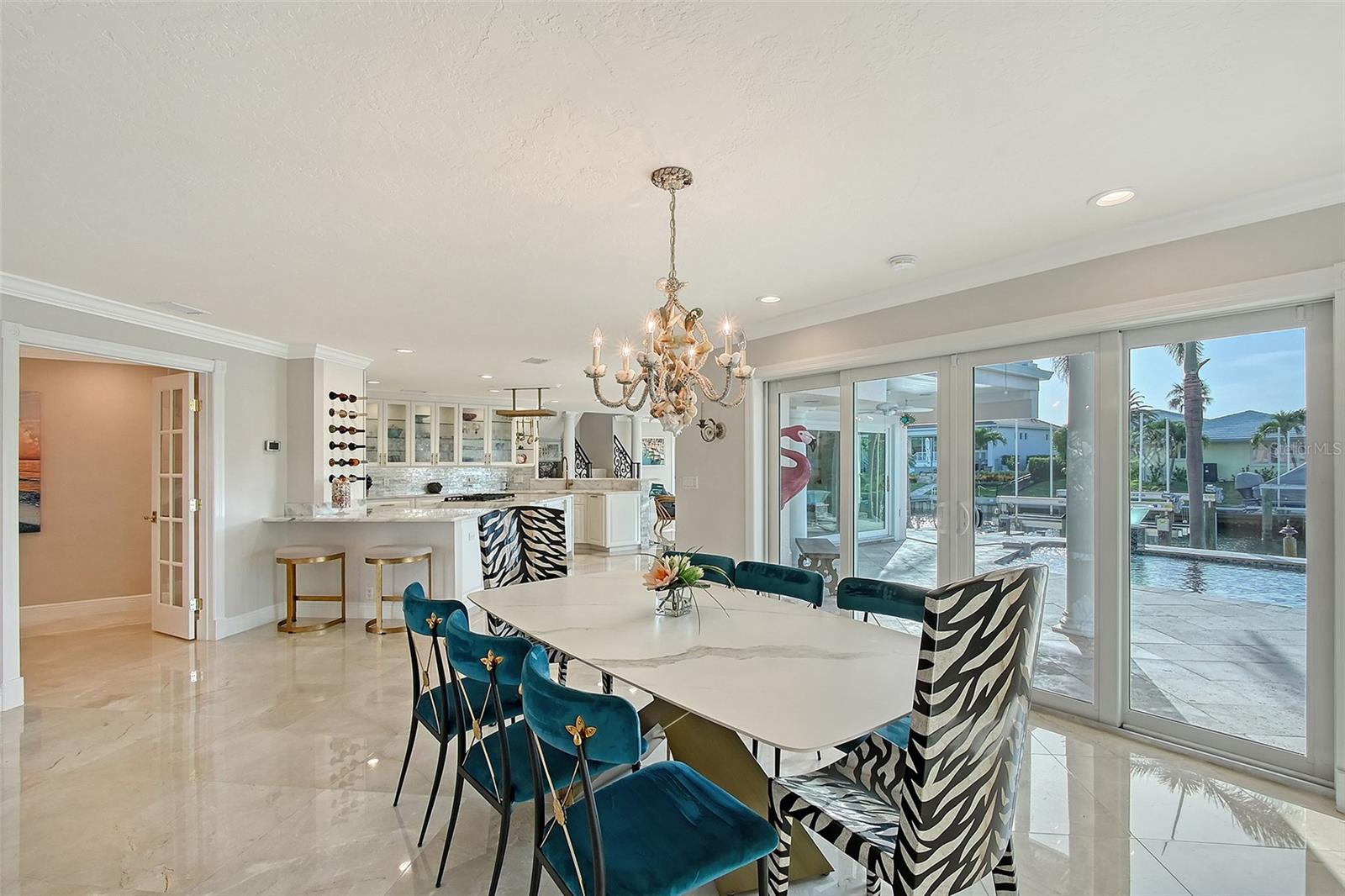 Country Club Shores at its finest. Three homes in from the bay. Attention to detail has created a spectacular updated home, featuring a newer kitchen and appliances, porcelain tile in two bedrooms, newly refinished marble flooring in common areas and baths, custom light fixtures, doors, and trim, along with crown molding. The home is finished with updated high-impact windows and sliders. The details have been extended to the finely appointed, updated baths, featuring marble counters throughout. A wet bar with an ice maker, conveniently just off the family room, makes an excellent feature for you and your guests. A main floor office in addition to two guest bedrooms, one with an en-suite bath, with an abundance of built-ins, with access to the pool and spa, and the other with private access to the full guest bath. The second level features a private primary suite oasis, complete with a balcony and a rooftop terrace, accessed by a spiral staircase offering views of the canal, spectacular sunrises, sunsets, and the Intracoastal Waterway. The primary bath comes complete with double sinks imported from Italy, a claw tub, and a separate shower. If you're looking for a custom walk-in closet, look no further - this home features one. The home features an additional fuel source, a 250-gallon propane tank, which provides gas cooking on the five-burner countertop kitchen range, heating for the hot water tank and spa, and is also roughed in for use on the rooftop terrace. Both the saltwater pool and spa underwent remodeling, featuring the added luxury of shallow pool lounging and flowing water fountains. The garage features its mini-split air conditioning unit, enabling you to work extended hours on projects. The dock comes complete with a 20,000-pound boat lift, a jet ski lift, electricity, and a jet ski port. The inspiring exterior custom lighting transforms the day into an evening of soft flickering glows with accents of palm trees, landscaping, and architectural splendor. Luxury has no boundaries in this renovated, finely appointed canal-front home, with deeded beach access just across the Gulf of Mexico Drive at the crosswalk. South of Publix, CVS, banks, places of worship, public tennis, and a short drive to St. Armands Circle, along with Sarasota and all it offers.