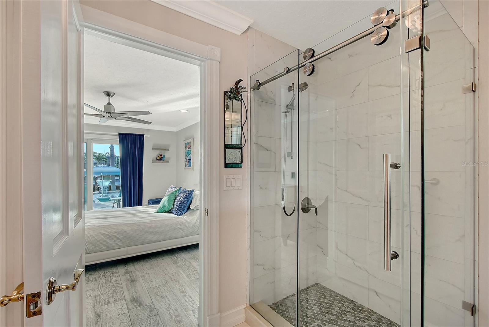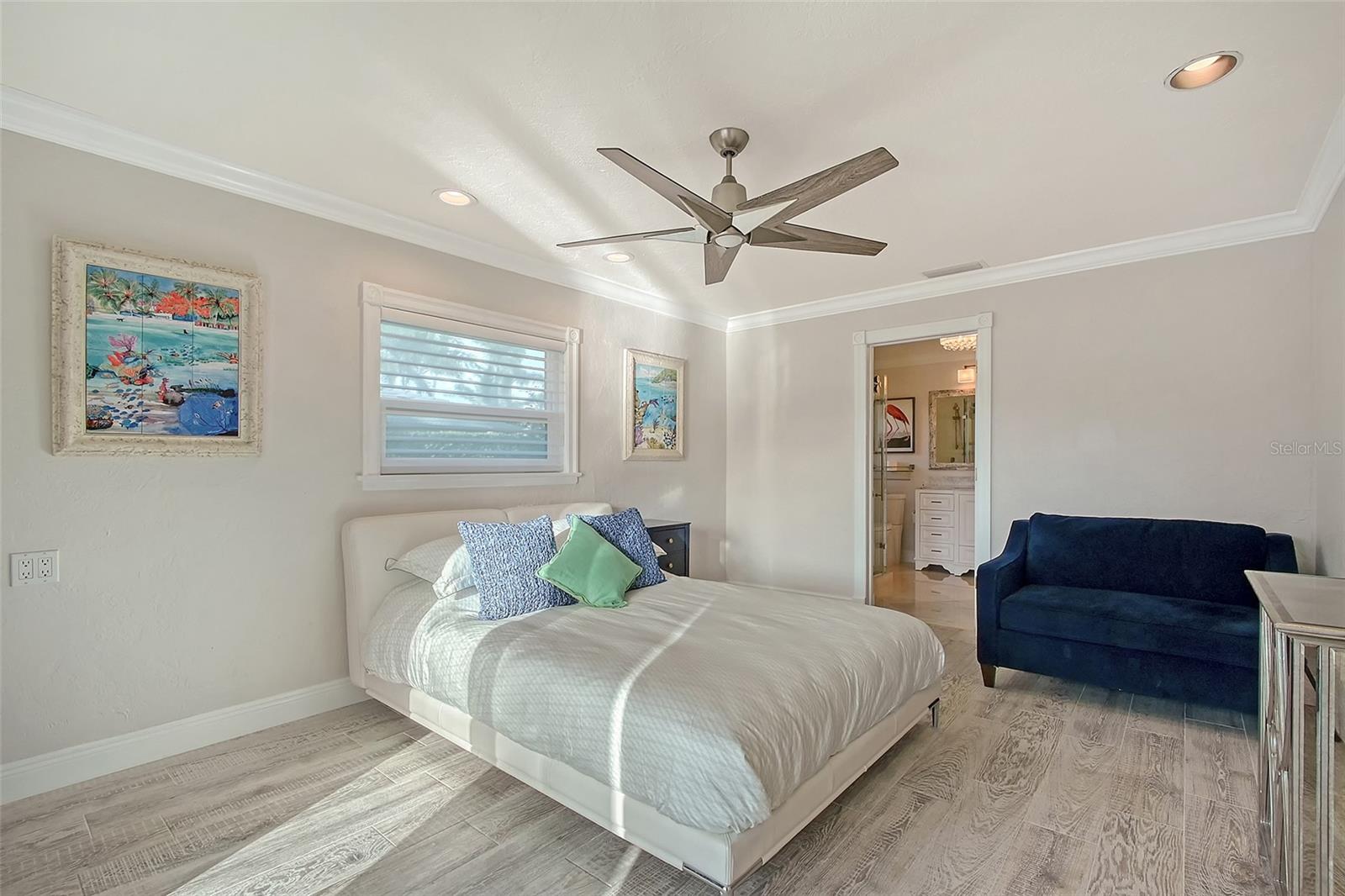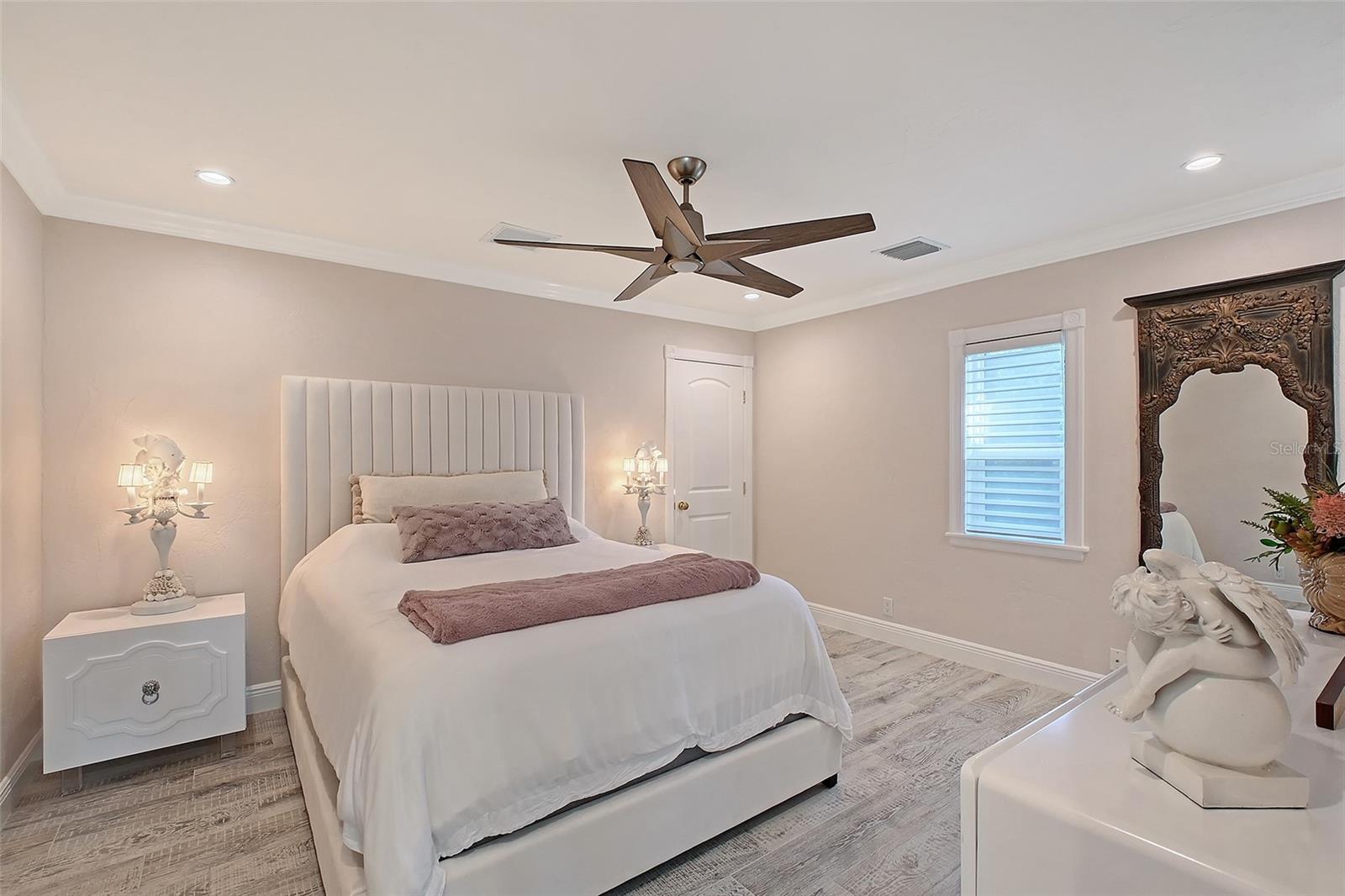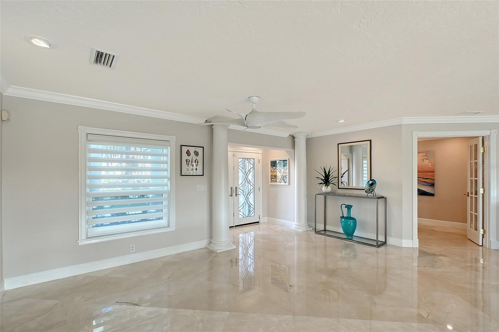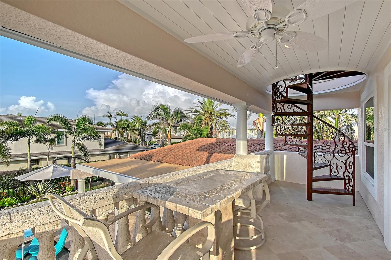 Country Club Shores at its finest. Three homes in from the bay. Attention to detail has created a spectacular updated home, featuring a newer kitchen and appliances, porcelain tile in two bedrooms, newly refinished marble flooring in common areas and baths, custom light fixtures, doors, and trim, along with crown molding. The home is finished with updated high-impact windows and sliders. The details have been extended to the finely appointed, updated baths, featuring marble counters throughout. A wet bar with an ice maker, conveniently just off the family room, makes an excellent feature for you and your guests. A main floor office in addition to two guest bedrooms, one with an en-suite bath, with an abundance of built-ins, with access to the pool and spa, and the other with private access to the full guest bath. The second level features a private primary suite oasis, complete with a balcony and a rooftop terrace, accessed by a spiral staircase offering views of the canal, spectacular sunrises, sunsets, and the Intracoastal Waterway. The primary bath comes complete with double sinks imported from Italy, a claw tub, and a separate shower. If you're looking for a custom walk-in closet, look no further - this home features one. The home features an additional fuel source, a 250-gallon propane tank, which provides gas cooking on the five-burner countertop kitchen range, heating for the hot water tank and spa, and is also roughed in for use on the rooftop terrace. Both the saltwater pool and spa underwent remodeling, featuring the added luxury of shallow pool lounging and flowing water fountains. The garage features its mini-split air conditioning unit, enabling you to work extended hours on projects. The dock comes complete with a 20,000-pound boat lift, a jet ski lift, electricity, and a jet ski port. The inspiring exterior custom lighting transforms the day into an evening of soft flickering glows with accents of palm trees, landscaping, and architectural splendor. Luxury has no boundaries in this renovated, finely appointed canal-front home, with deeded beach access just across the Gulf of Mexico Drive at the crosswalk. South of Publix, CVS, banks, places of worship, public tennis, and a short drive to St. Armands Circle, along with Sarasota and all it offers.