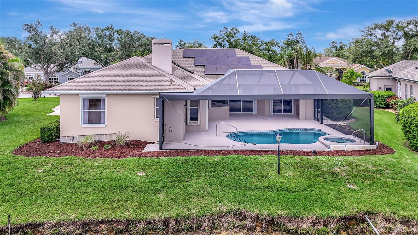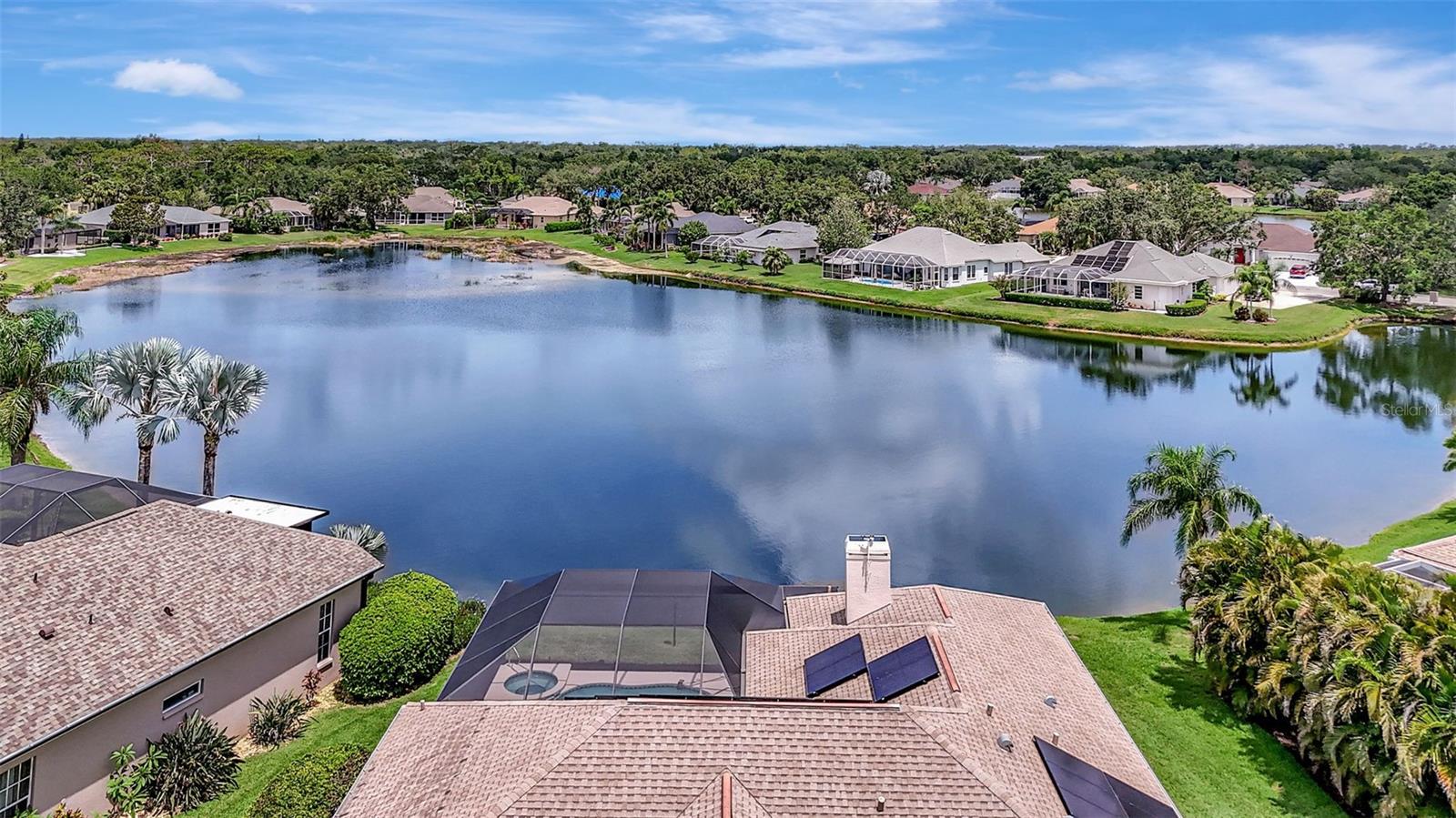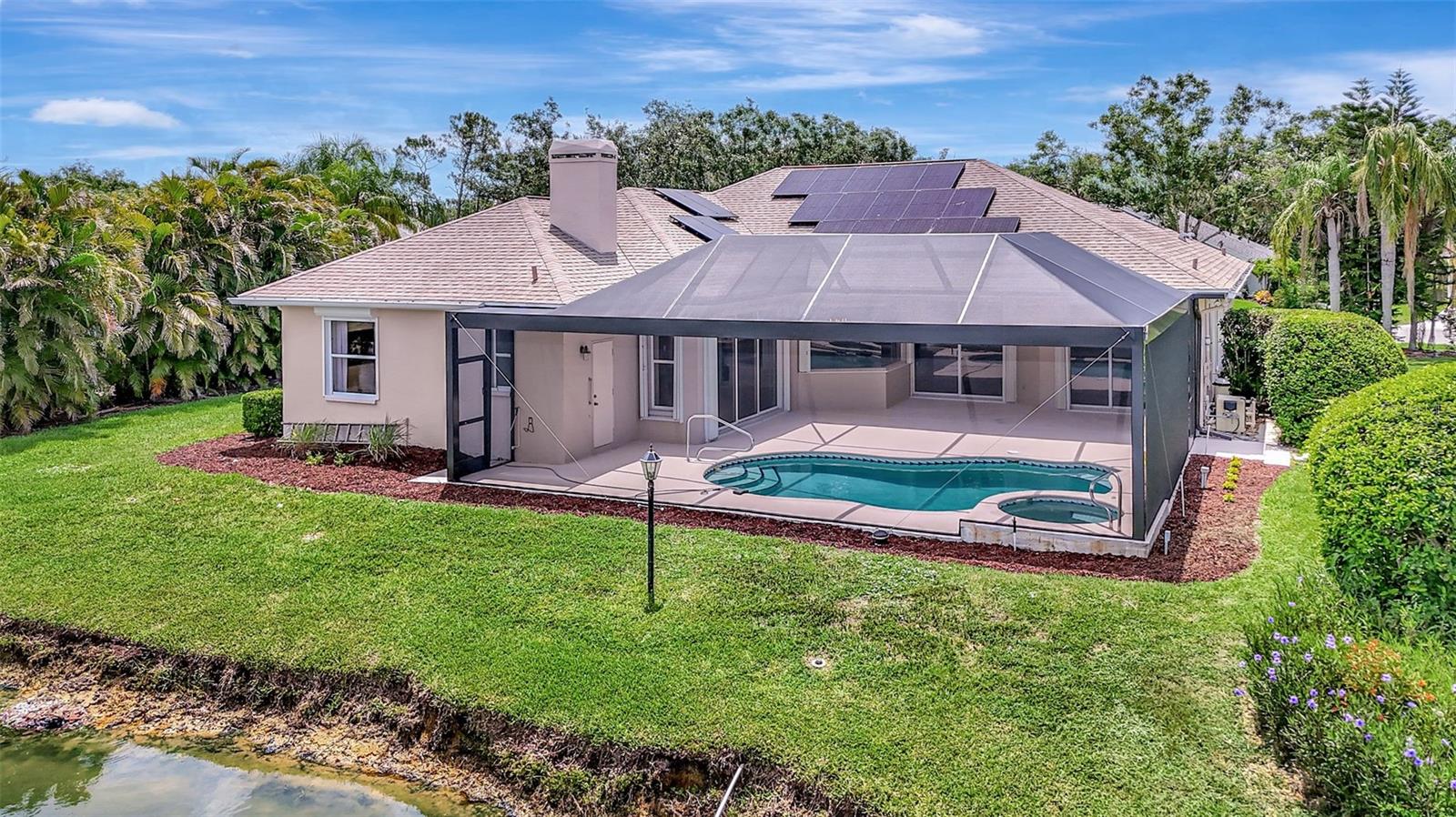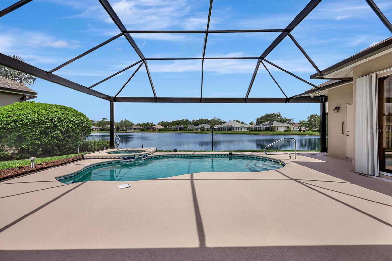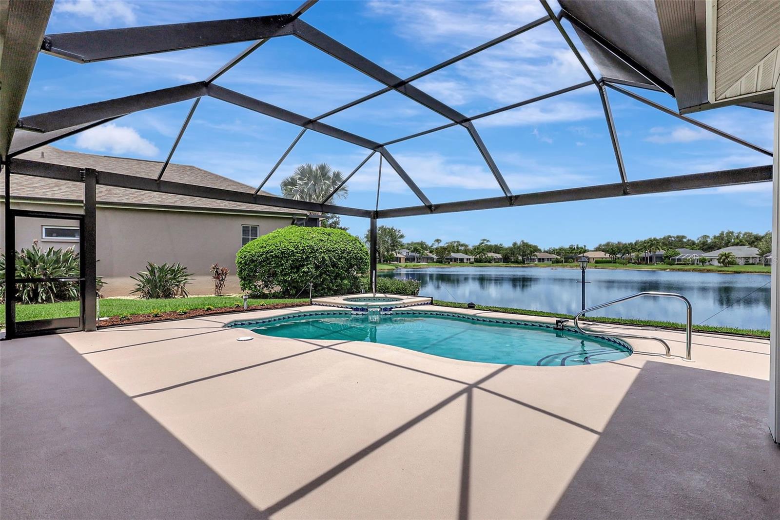 One or more photo(s) has been virtually staged. Welcome to this stunningly updated four-bedroom, three-bathroom, plus a den, home in the highly sought-after and heart of Lakewood Ranch, Summerfield Village. This home blends comfort and elegance in an ideal setting with pool/spa and breathtaking views thru full cage screen of the tranquil lake. From the moment you step inside, you'll be captivated by the elegant new luxury vinyl floors thru out the entire house and abundant natural light. Sliding glass doors connect the spacious living area into the screened-in lanai and pool, providing the perfect space to grill out, relax and enjoy the serene surroundings. Recently replaced pool pump, spa pump, pool filter housing, and gas pool heater. The lanai features a clear-view screen enclosure, offering unobstructed views of the lovely large pond and lush landscape. The beautifully renovated kitchen is designed for both style and functionality, featuring solid wood cabinetry, quartz countertops, a stylish tile backsplash, and stainless-steel appliances. The eat-in area provides a cozy and inviting space for casual dining. Designed with a thoughtful split floor plan, this home ensures privacy with three distinct living areas. The primary suite is a true retreat, offering lanai access, two walk-in closets, and an elegant en-suite bathroom with dual vanities, a garden tub, and a separate tile shower. On the opposite side of the home, the second and third bedrooms are conveniently located next to a full bathroom, the fourth bedroom and bathroom with direct lanai access and use as the pool bath. This home offers a formal dining area, a generous living room, and a dedicated office/den. The laundry room is conveniently located off the garage entrance for easy access. Blink video doorbell and seven outdoor security cameras. Freshly painted 2.5-car garage. Solar panels make it ideal for low electricity consumption. Additionally, Rachio smart irrigation controller (water-conserving.) Including an Ambient Weather WS-2000 roof-mounted weather station with indoor display. Convenient Ecobee smart programmable energy-saving thermostat. The home is situated on the far side of the neighborhood circle with no through traffic, this home offers a peaceful retreat for the owner. Summerfield Village features miles of walking trails, a park with tennis and basketball courts, a playground, soccer fields, beach volleyball, and a spacious pavilion. Just minutes from I-75, equally between St. Pete and Sarasota with Anna Maria Island your direct beach. Bradenton and one hour north, Tampa, local medical facilities, top-rated schools, Main Street, UTC Mall, fine dining, and the other world-famous beaches, this home embodies the best of Florida living.
