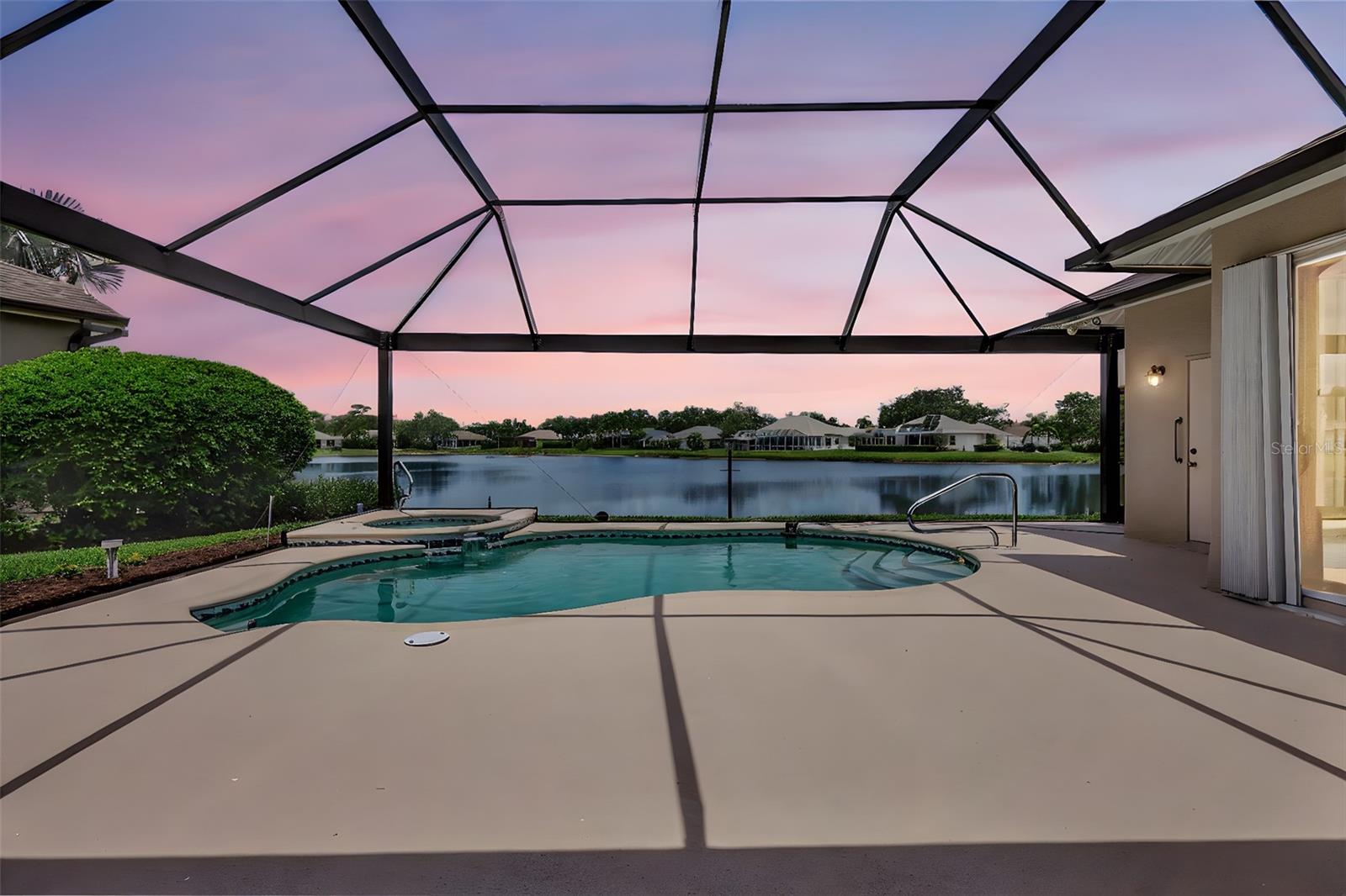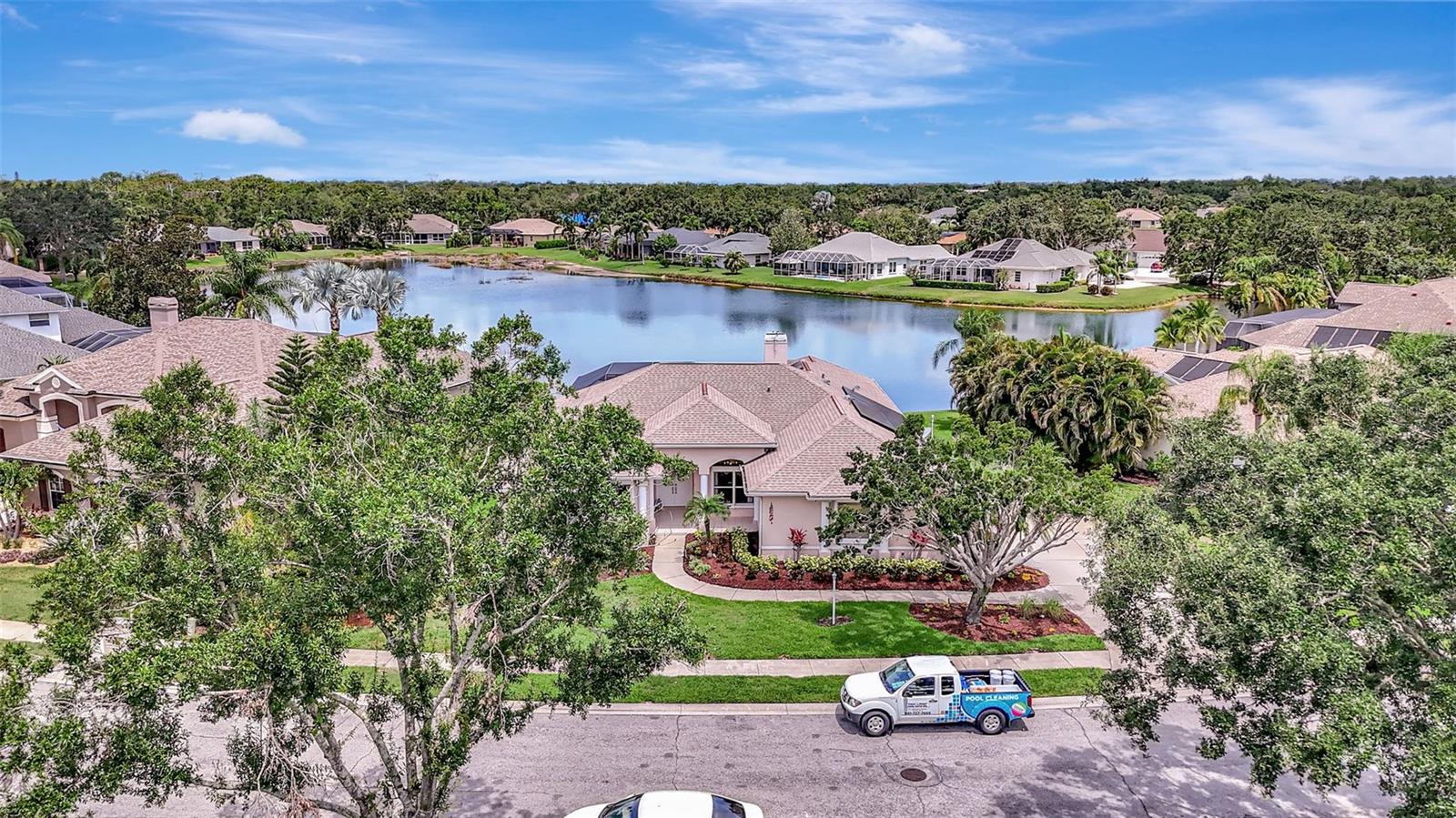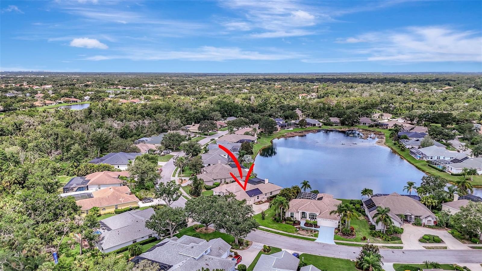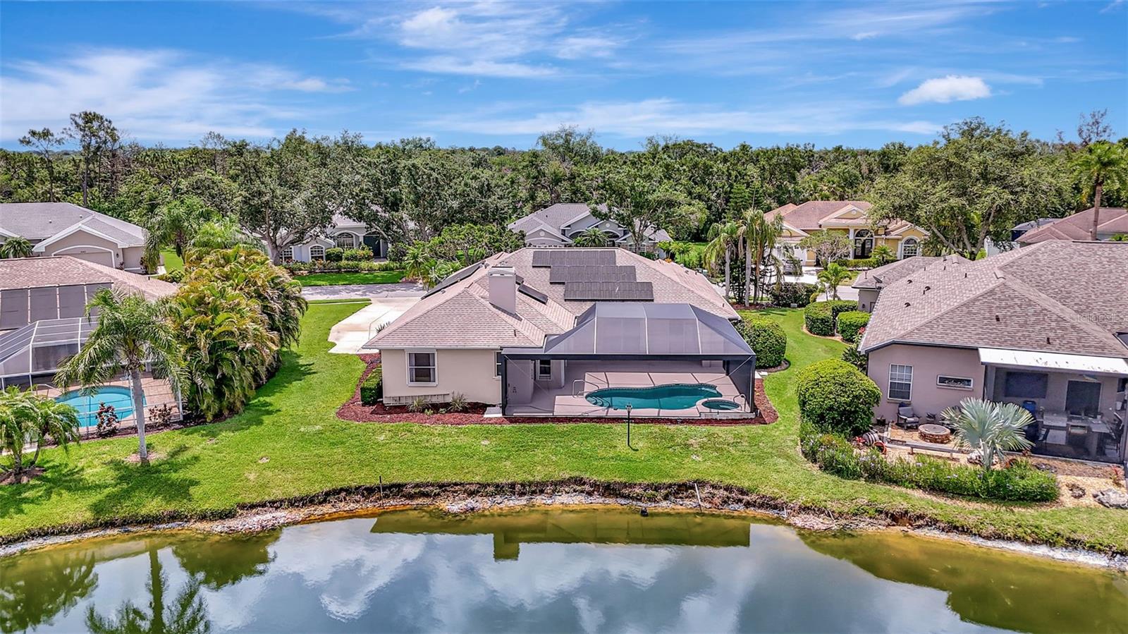 One or more photo(s) has been virtually staged. Welcome to this stunningly updated four-bedroom, three-bathroom, plus a den, home in the highly sought-after and heart of Lakewood Ranch, Summerfield Village. This home blends comfort and elegance in an ideal setting with pool/spa and breathtaking views thru full cage screen of the tranquil lake. From the moment you step inside, you'll be captivated by the elegant new luxury vinyl floors thru out the entire house and abundant natural light. Sliding glass doors connect the spacious living area into the screened-in lanai and pool, providing the perfect space to grill out, relax and enjoy the serene surroundings. Recently replaced pool pump, spa pump, pool filter housing, and gas pool heater. The lanai features a clear-view screen enclosure, offering unobstructed views of the lovely large pond and lush landscape. The beautifully renovated kitchen is designed for both style and functionality, featuring solid wood cabinetry, quartz countertops, a stylish tile backsplash, and stainless-steel appliances. The eat-in area provides a cozy and inviting space for casual dining. Designed with a thoughtful split floor plan, this home ensures privacy with three distinct living areas. The primary suite is a true retreat, offering lanai access, two walk-in closets, and an elegant en-suite bathroom with dual vanities, a garden tub, and a separate tile shower. On the opposite side of the home, the second and third bedrooms are conveniently located next to a full bathroom, the fourth bedroom and bathroom with direct lanai access and use as the pool bath. This home offers a formal dining area, a generous living room, and a dedicated office/den. The laundry room is conveniently located off the garage entrance for easy access. Blink video doorbell and seven outdoor security cameras. Freshly painted 2.5-car garage. Solar panels make it ideal for low electricity consumption. Additionally, Rachio smart irrigation controller (water-conserving.) Including an Ambient Weather WS-2000 roof-mounted weather station with indoor display. Convenient Ecobee smart programmable energy-saving thermostat. The home is situated on the far side of the neighborhood circle with no through traffic, this home offers a peaceful retreat for the owner. Summerfield Village features miles of walking trails, a park with tennis and basketball courts, a playground, soccer fields, beach volleyball, and a spacious pavilion. Just minutes from I-75, equally between St. Pete and Sarasota with Anna Maria Island your direct beach. Bradenton and one hour north, Tampa, local medical facilities, top-rated schools, Main Street, UTC Mall, fine dining, and the other world-famous beaches, this home embodies the best of Florida living.