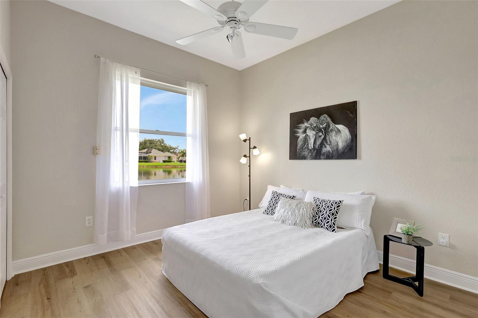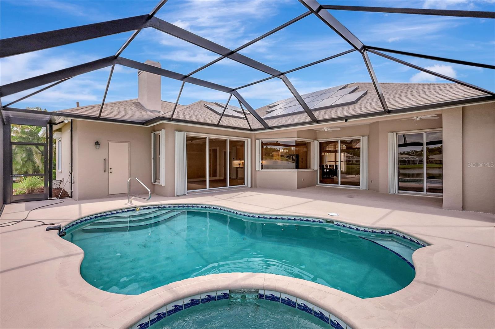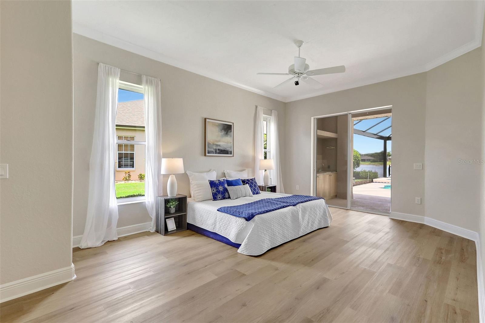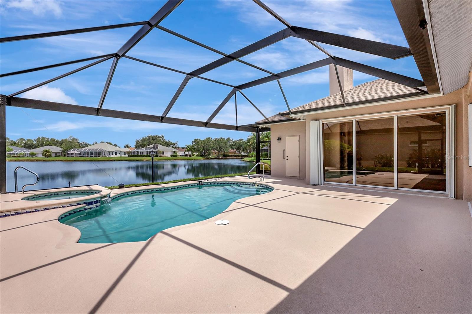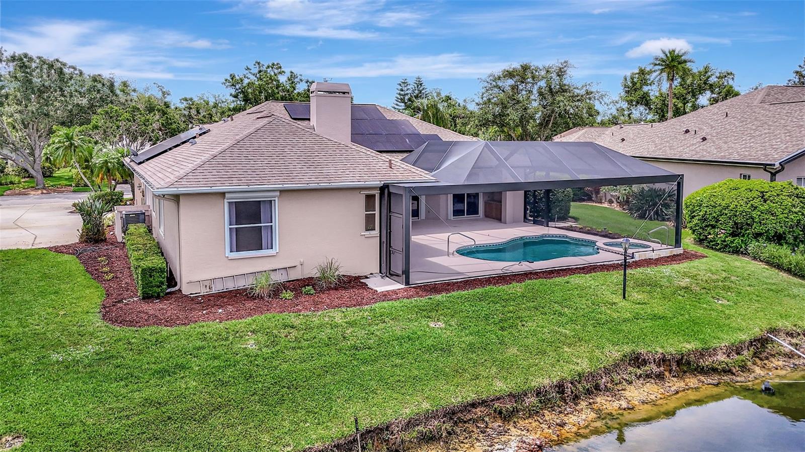 One or more photo(s) has been virtually staged. Welcome to this stunningly updated four-bedroom, three-bathroom, plus a den, home in the highly sought-after and heart of Lakewood Ranch, Summerfield Village. This home blends comfort and elegance in an ideal setting with pool/spa and breathtaking views thru full cage screen of the tranquil lake. From the moment you step inside, you'll be captivated by the elegant new luxury vinyl floors thru out the entire house and abundant natural light. Sliding glass doors connect the spacious living area into the screened-in lanai and pool, providing the perfect space to grill out, relax and enjoy the serene surroundings. Recently replaced pool pump, spa pump, pool filter housing, and gas pool heater. The lanai features a clear-view screen enclosure, offering unobstructed views of the lovely large pond and lush landscape. The beautifully renovated kitchen is designed for both style and functionality, featuring solid wood cabinetry, quartz countertops, a stylish tile backsplash, and stainless-steel appliances. The eat-in area provides a cozy and inviting space for casual dining. Designed with a thoughtful split floor plan, this home ensures privacy with three distinct living areas. The primary suite is a true retreat, offering lanai access, two walk-in closets, and an elegant en-suite bathroom with dual vanities, a garden tub, and a separate tile shower. On the opposite side of the home, the second and third bedrooms are conveniently located next to a full bathroom, the fourth bedroom and bathroom with direct lanai access and use as the pool bath. This home offers a formal dining area, a generous living room, and a dedicated office/den. The laundry room is conveniently located off the garage entrance for easy access. Blink video doorbell and seven outdoor security cameras. Freshly painted 2.5-car garage. Solar panels make it ideal for low electricity consumption. Additionally, Rachio smart irrigation controller (water-conserving.) Including an Ambient Weather WS-2000 roof-mounted weather station with indoor display. Convenient Ecobee smart programmable energy-saving thermostat. The home is situated on the far side of the neighborhood circle with no through traffic, this home offers a peaceful retreat for the owner. Summerfield Village features miles of walking trails, a park with tennis and basketball courts, a playground, soccer fields, beach volleyball, and a spacious pavilion. Just minutes from I-75, equally between St. Pete and Sarasota with Anna Maria Island your direct beach. Bradenton and one hour north, Tampa, local medical facilities, top-rated schools, Main Street, UTC Mall, fine dining, and the other world-famous beaches, this home embodies the best of Florida living.