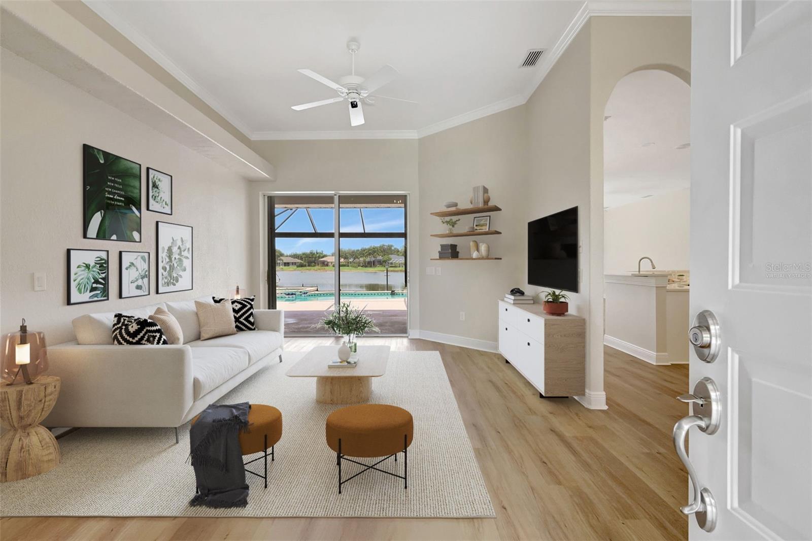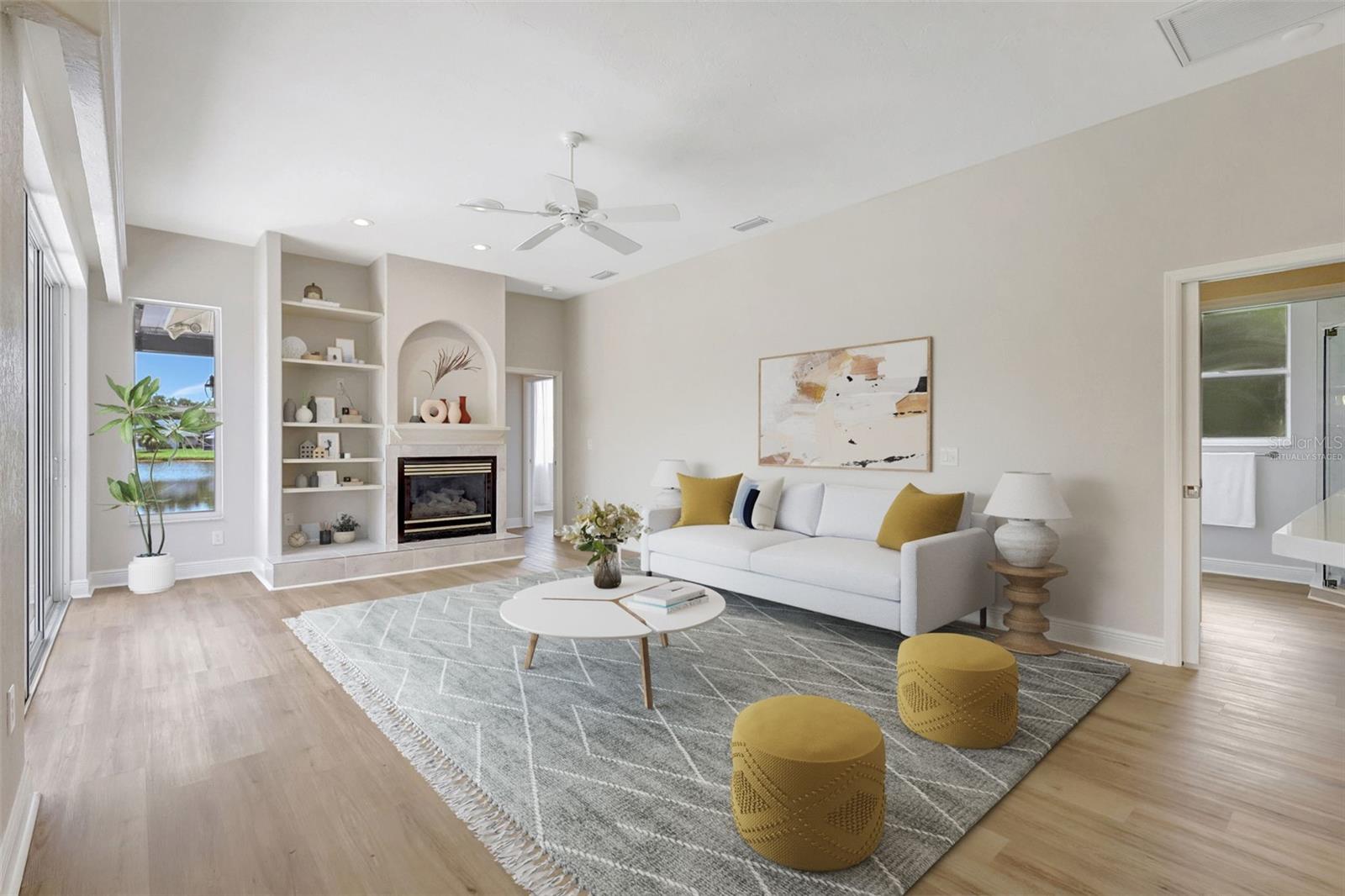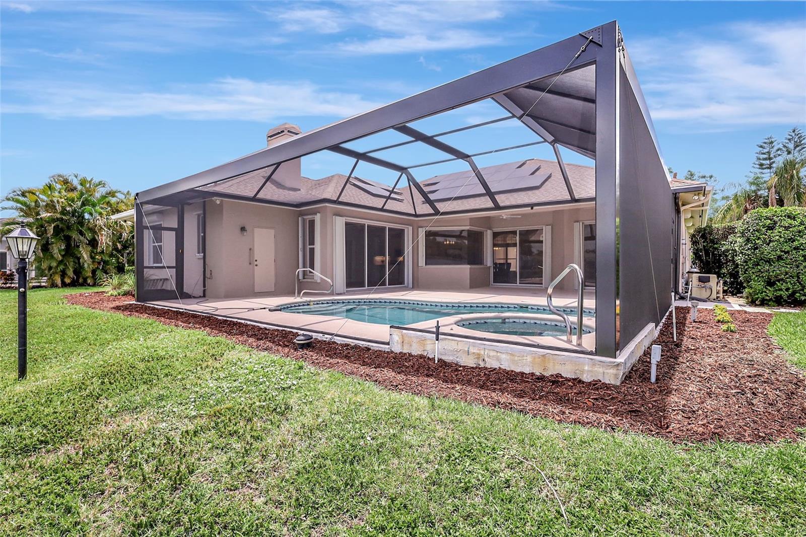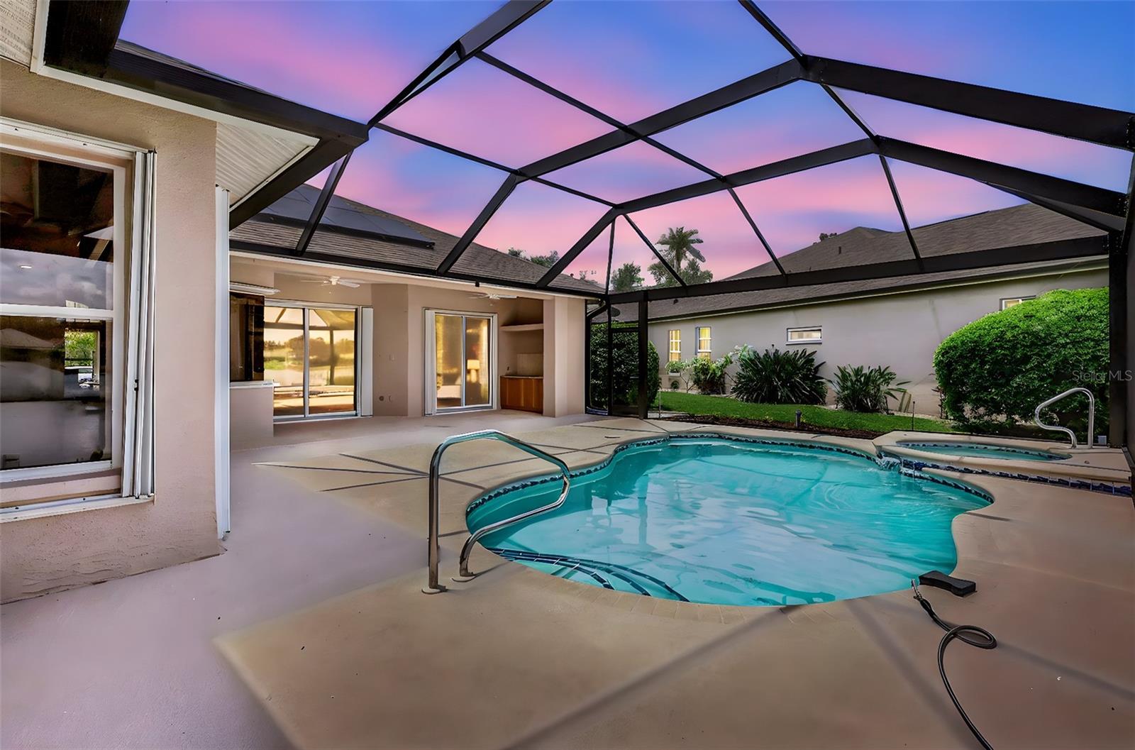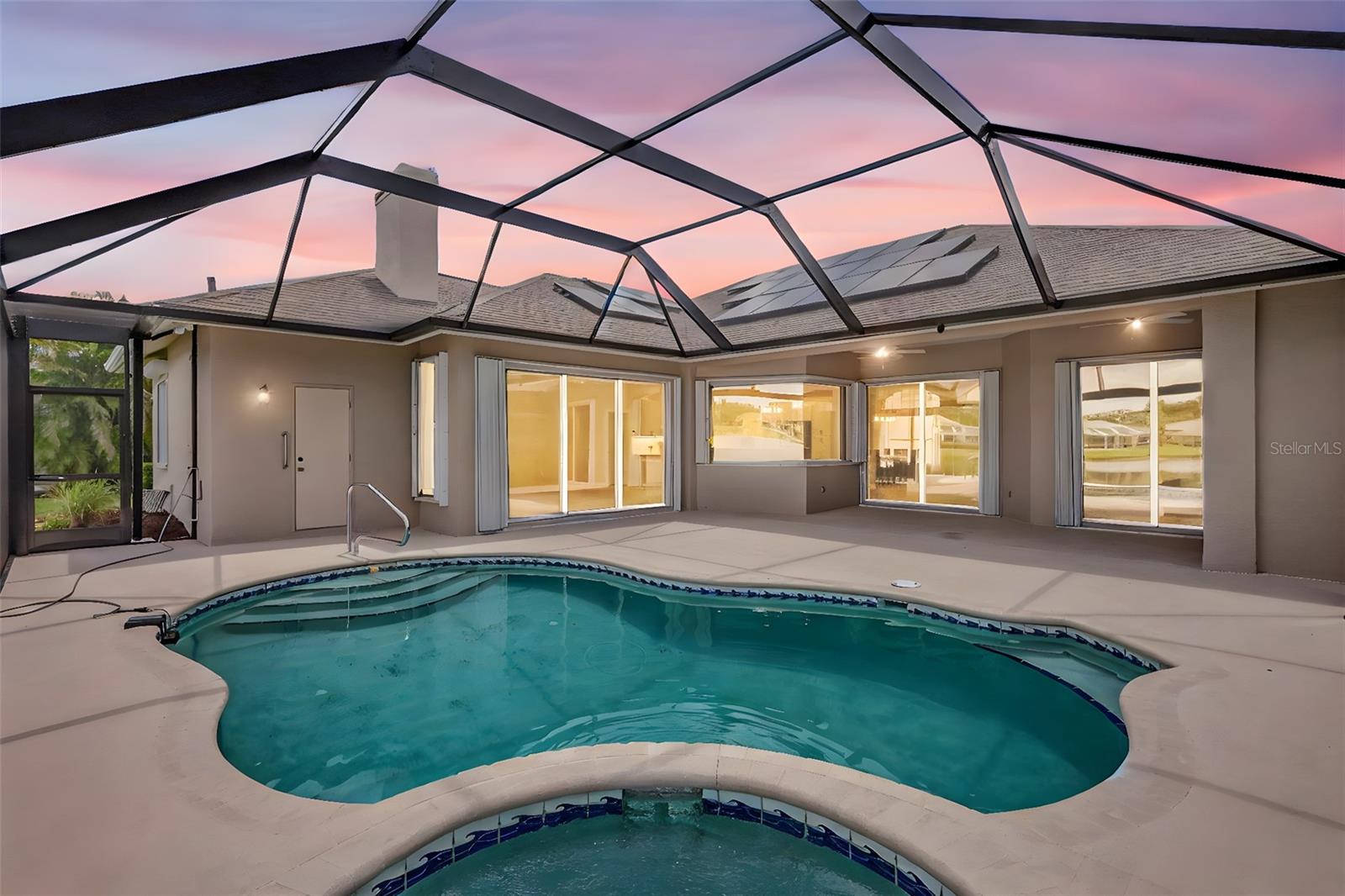 One or more photo(s) has been virtually staged. Welcome to this stunningly updated four-bedroom, three-bathroom, plus a den, home in the highly sought-after and heart of Lakewood Ranch, Summerfield Village. This home blends comfort and elegance in an ideal setting with pool/spa and breathtaking views thru full cage screen of the tranquil lake. From the moment you step inside, you'll be captivated by the elegant new luxury vinyl floors thru out the entire house and abundant natural light. Sliding glass doors connect the spacious living area into the screened-in lanai and pool, providing the perfect space to grill out, relax and enjoy the serene surroundings. Recently replaced pool pump, spa pump, pool filter housing, and gas pool heater. The lanai features a clear-view screen enclosure, offering unobstructed views of the lovely large pond and lush landscape. The beautifully renovated kitchen is designed for both style and functionality, featuring solid wood cabinetry, quartz countertops, a stylish tile backsplash, and stainless-steel appliances. The eat-in area provides a cozy and inviting space for casual dining. Designed with a thoughtful split floor plan, this home ensures privacy with three distinct living areas. The primary suite is a true retreat, offering lanai access, two walk-in closets, and an elegant en-suite bathroom with dual vanities, a garden tub, and a separate tile shower. On the opposite side of the home, the second and third bedrooms are conveniently located next to a full bathroom, the fourth bedroom and bathroom with direct lanai access and use as the pool bath. This home offers a formal dining area, a generous living room, and a dedicated office/den. The laundry room is conveniently located off the garage entrance for easy access. Blink video doorbell and seven outdoor security cameras. Freshly painted 2.5-car garage. Solar panels make it ideal for low electricity consumption. Additionally, Rachio smart irrigation controller (water-conserving.) Including an Ambient Weather WS-2000 roof-mounted weather station with indoor display. Convenient Ecobee smart programmable energy-saving thermostat. The home is situated on the far side of the neighborhood circle with no through traffic, this home offers a peaceful retreat for the owner. Summerfield Village features miles of walking trails, a park with tennis and basketball courts, a playground, soccer fields, beach volleyball, and a spacious pavilion. Just minutes from I-75, equally between St. Pete and Sarasota with Anna Maria Island your direct beach. Bradenton and one hour north, Tampa, local medical facilities, top-rated schools, Main Street, UTC Mall, fine dining, and the other world-famous beaches, this home embodies the best of Florida living.
