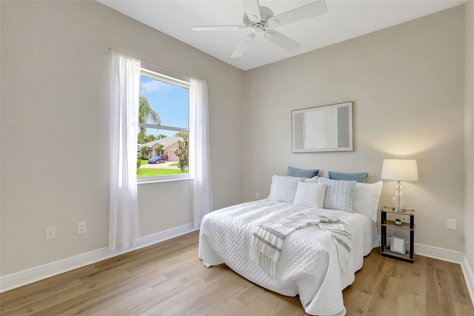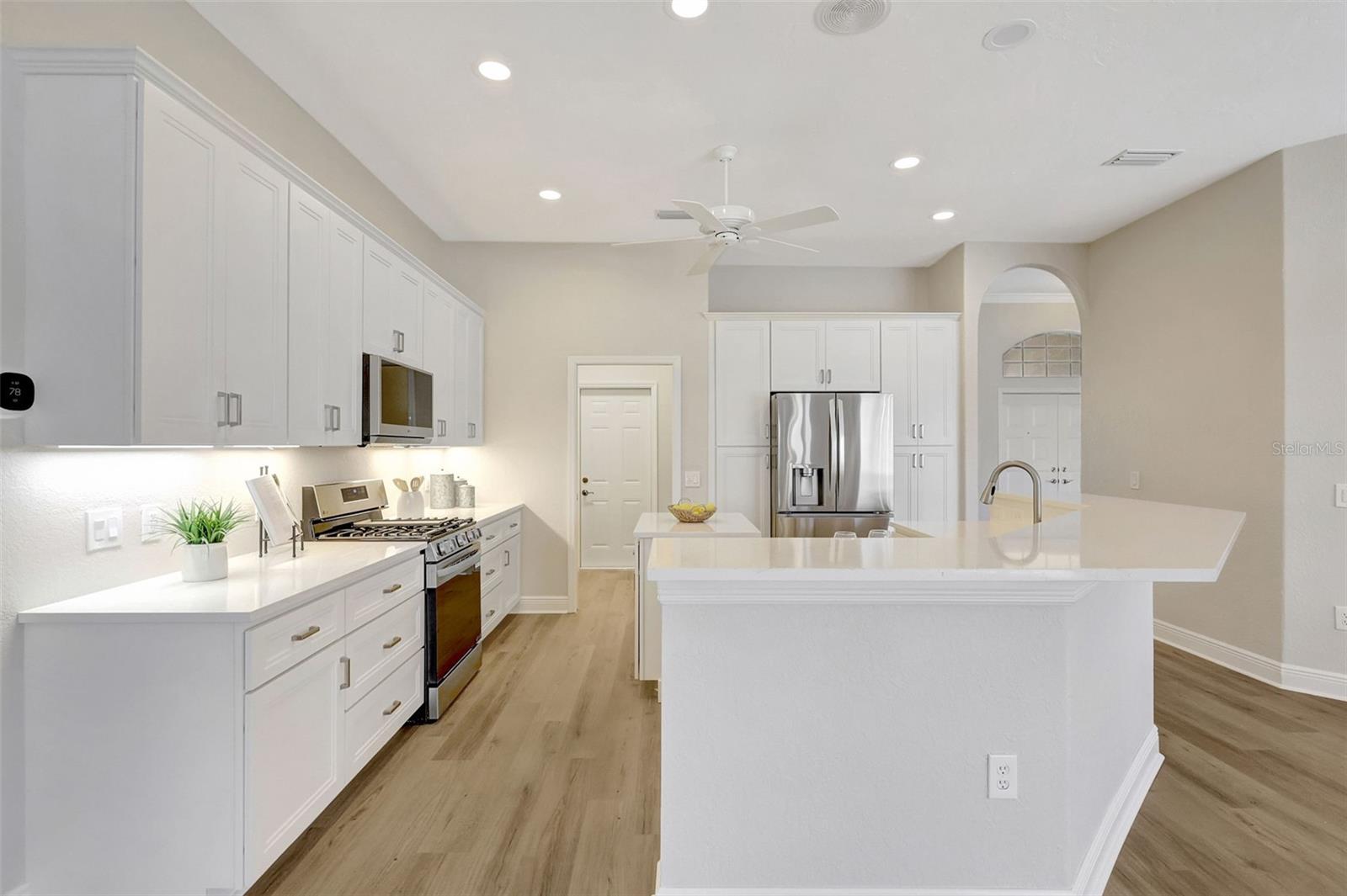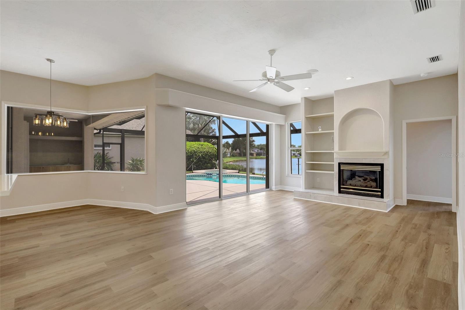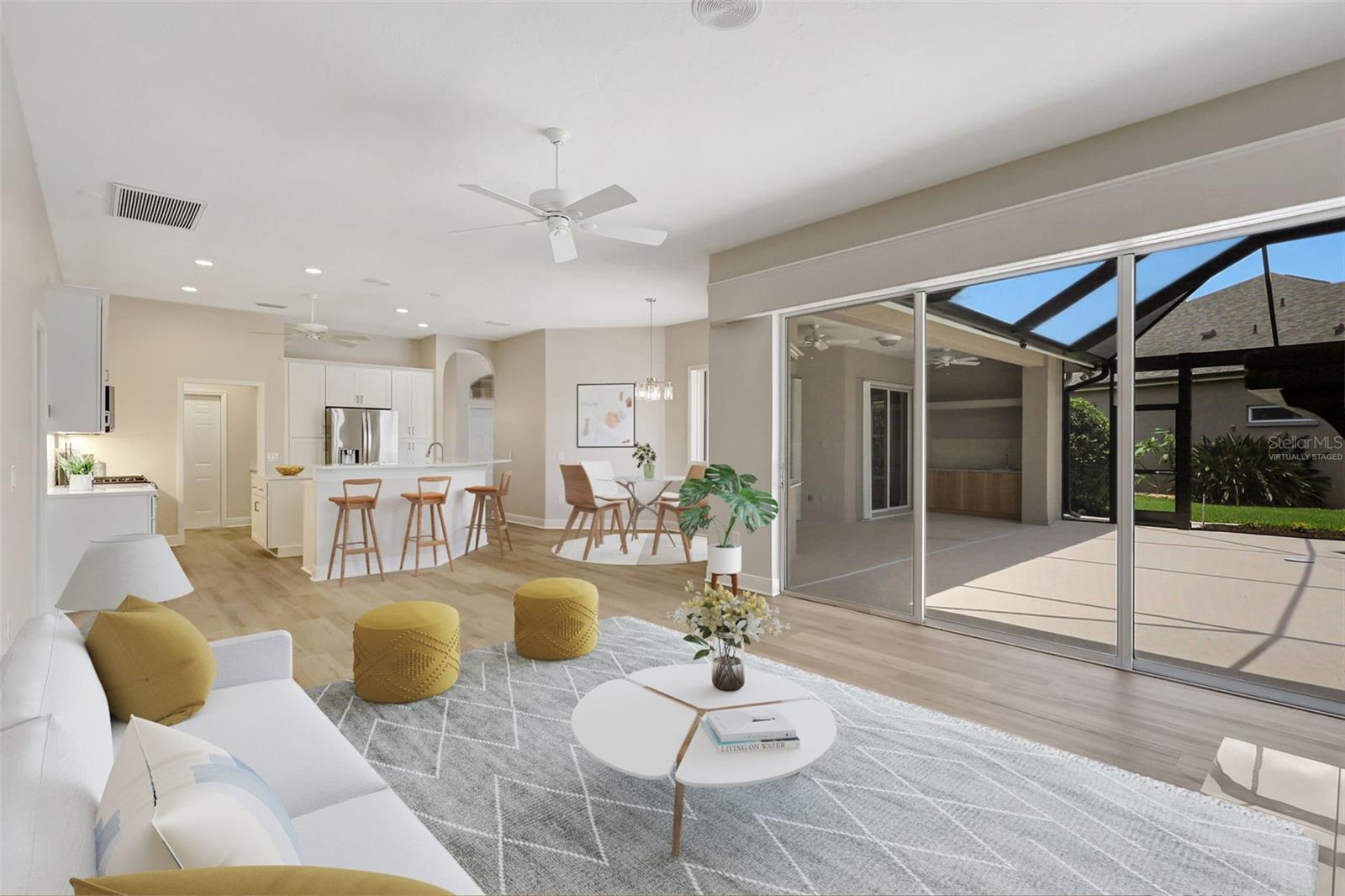 One or more photo(s) has been virtually staged. Welcome to this stunningly updated four-bedroom, three-bathroom, plus a den, home in the highly sought-after and heart of Lakewood Ranch, Summerfield Village. This home blends comfort and elegance in an ideal setting with pool/spa and breathtaking views thru full cage screen of the tranquil lake. From the moment you step inside, you'll be captivated by the elegant new luxury vinyl floors thru out the entire house and abundant natural light. Sliding glass doors connect the spacious living area into the screened-in lanai and pool, providing the perfect space to grill out, relax and enjoy the serene surroundings. Recently replaced pool pump, spa pump, pool filter housing, and gas pool heater. The lanai features a clear-view screen enclosure, offering unobstructed views of the lovely large pond and lush landscape. The beautifully renovated kitchen is designed for both style and functionality, featuring solid wood cabinetry, quartz countertops, a stylish tile backsplash, and stainless-steel appliances. The eat-in area provides a cozy and inviting space for casual dining. Designed with a thoughtful split floor plan, this home ensures privacy with three distinct living areas. The primary suite is a true retreat, offering lanai access, two walk-in closets, and an elegant en-suite bathroom with dual vanities, a garden tub, and a separate tile shower. On the opposite side of the home, the second and third bedrooms are conveniently located next to a full bathroom, the fourth bedroom and bathroom with direct lanai access and use as the pool bath. This home offers a formal dining area, a generous living room, and a dedicated office/den. The laundry room is conveniently located off the garage entrance for easy access. Blink video doorbell and seven outdoor security cameras. Freshly painted 2.5-car garage. Solar panels make it ideal for low electricity consumption. Additionally, Rachio smart irrigation controller (water-conserving.) Including an Ambient Weather WS-2000 roof-mounted weather station with indoor display. Convenient Ecobee smart programmable energy-saving thermostat. The home is situated on the far side of the neighborhood circle with no through traffic, this home offers a peaceful retreat for the owner. Summerfield Village features miles of walking trails, a park with tennis and basketball courts, a playground, soccer fields, beach volleyball, and a spacious pavilion. Just minutes from I-75, equally between St. Pete and Sarasota with Anna Maria Island your direct beach. Bradenton and one hour north, Tampa, local medical facilities, top-rated schools, Main Street, UTC Mall, fine dining, and the other world-famous beaches, this home embodies the best of Florida living.