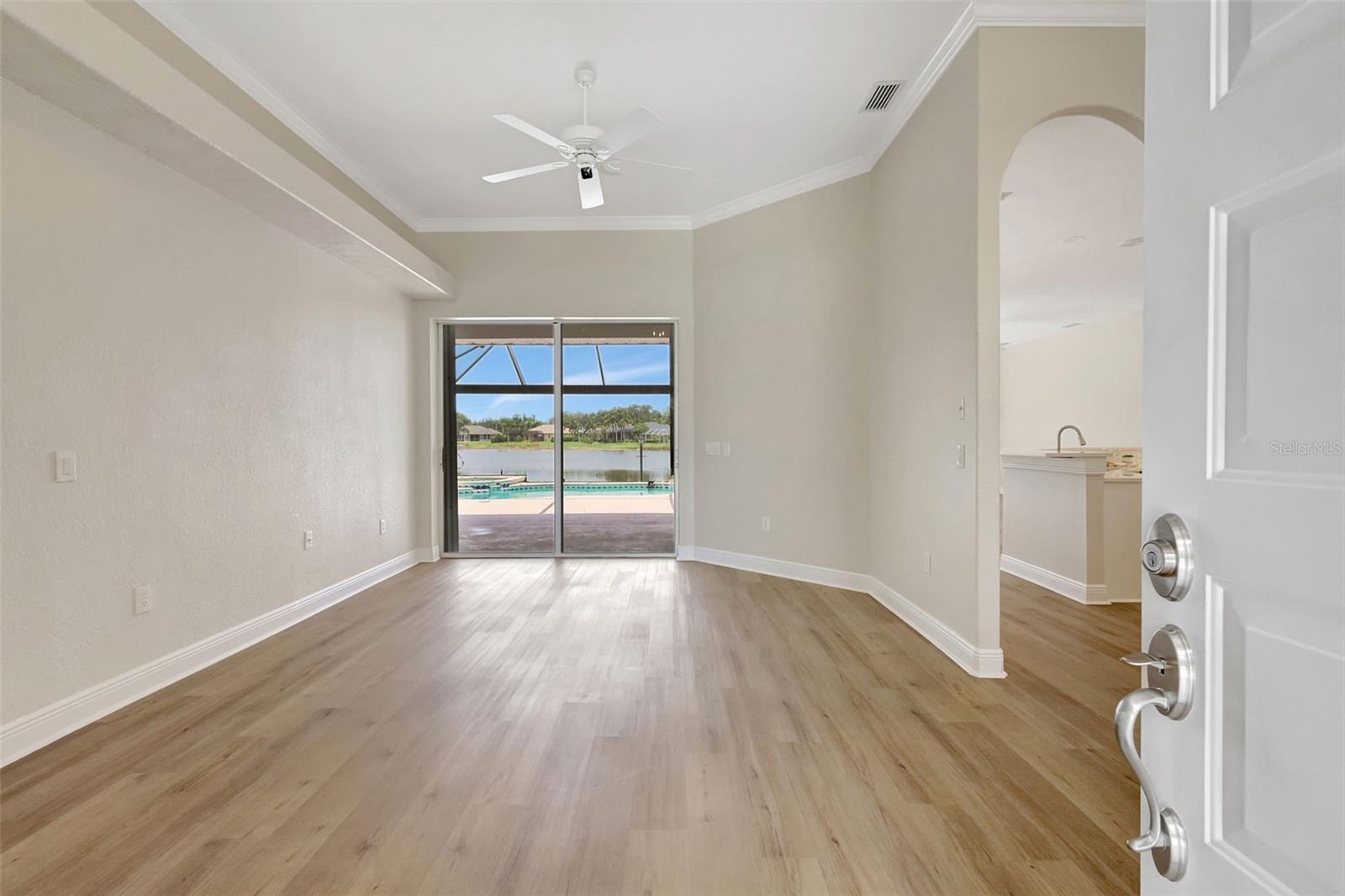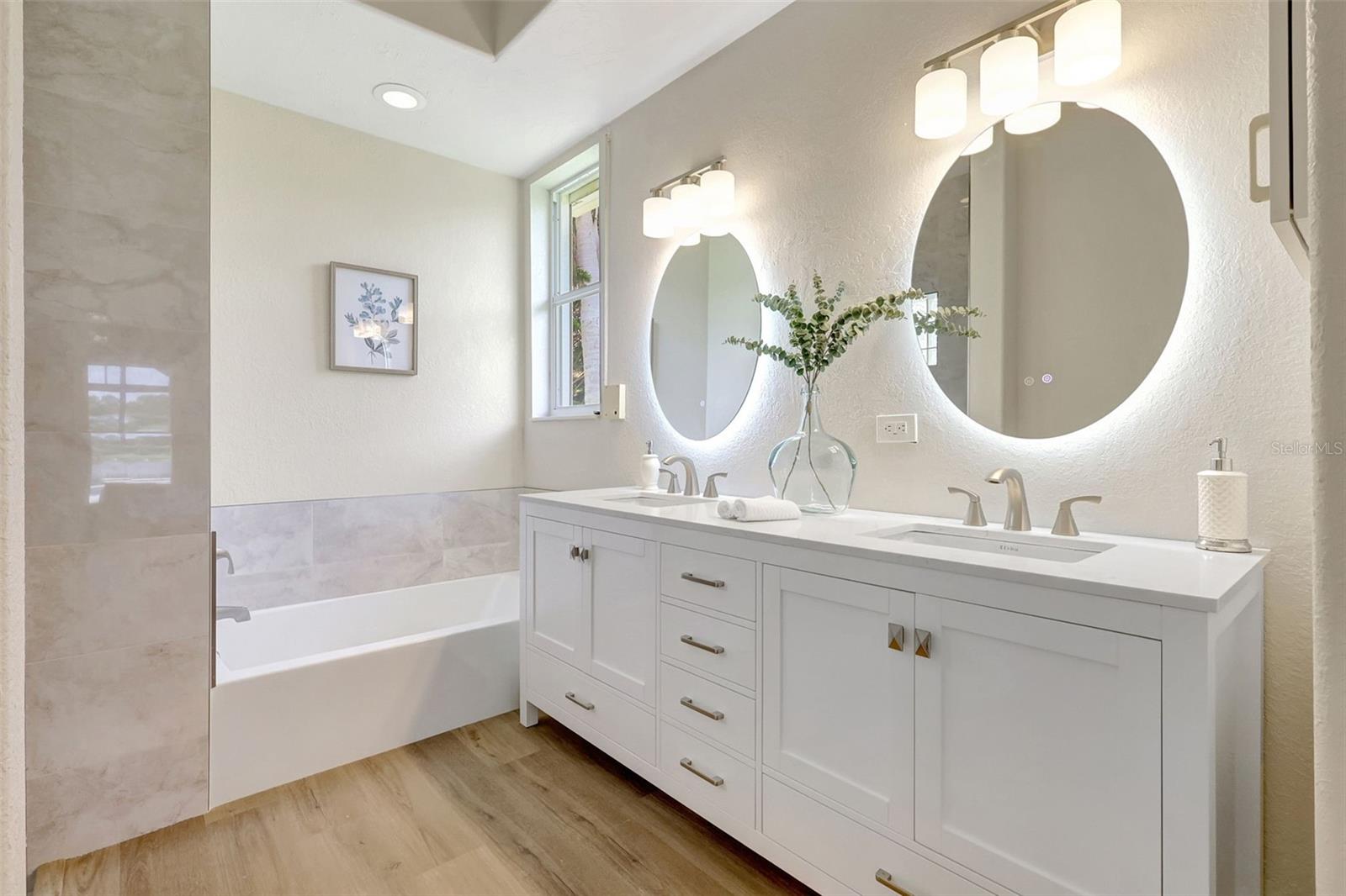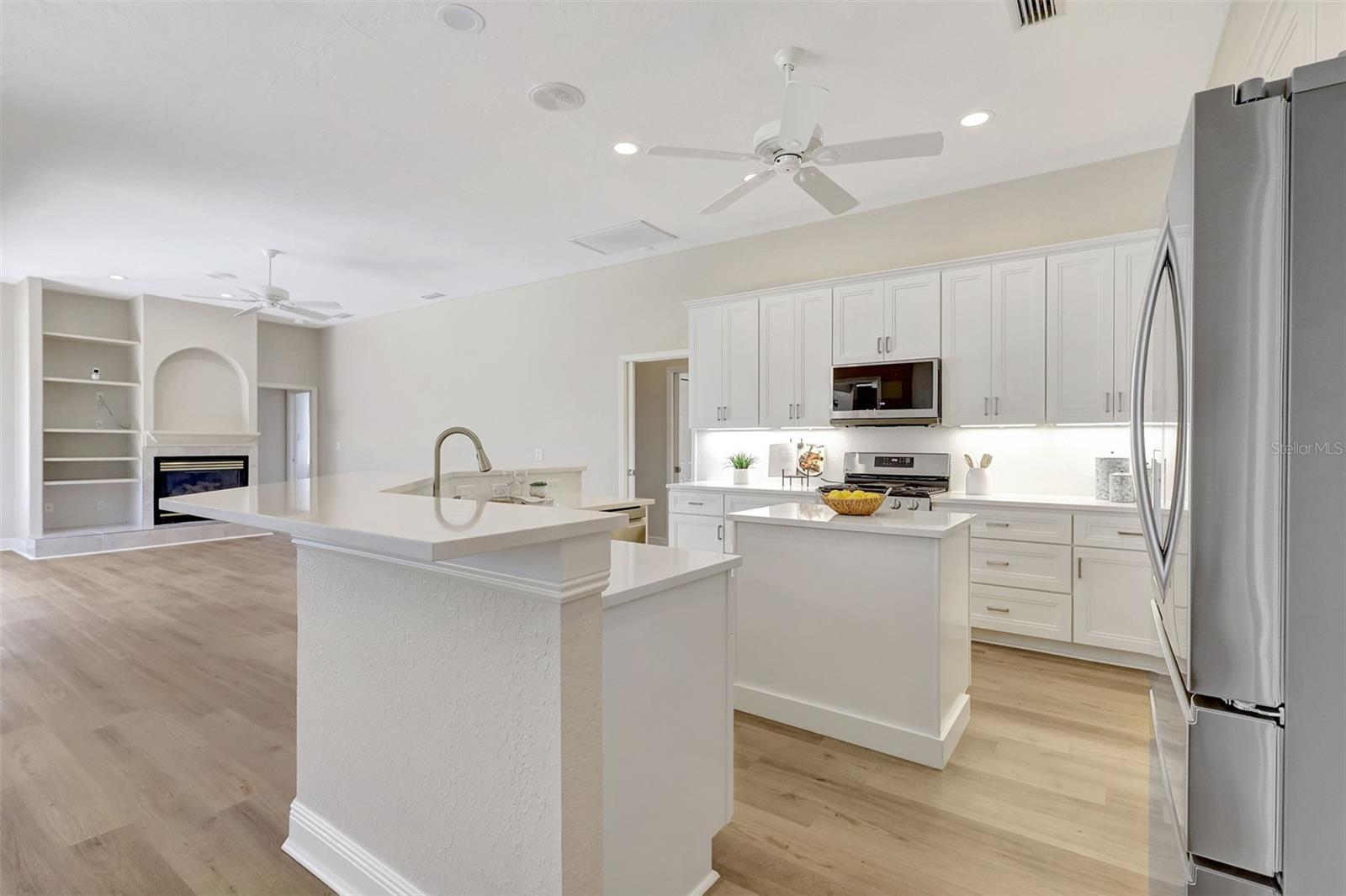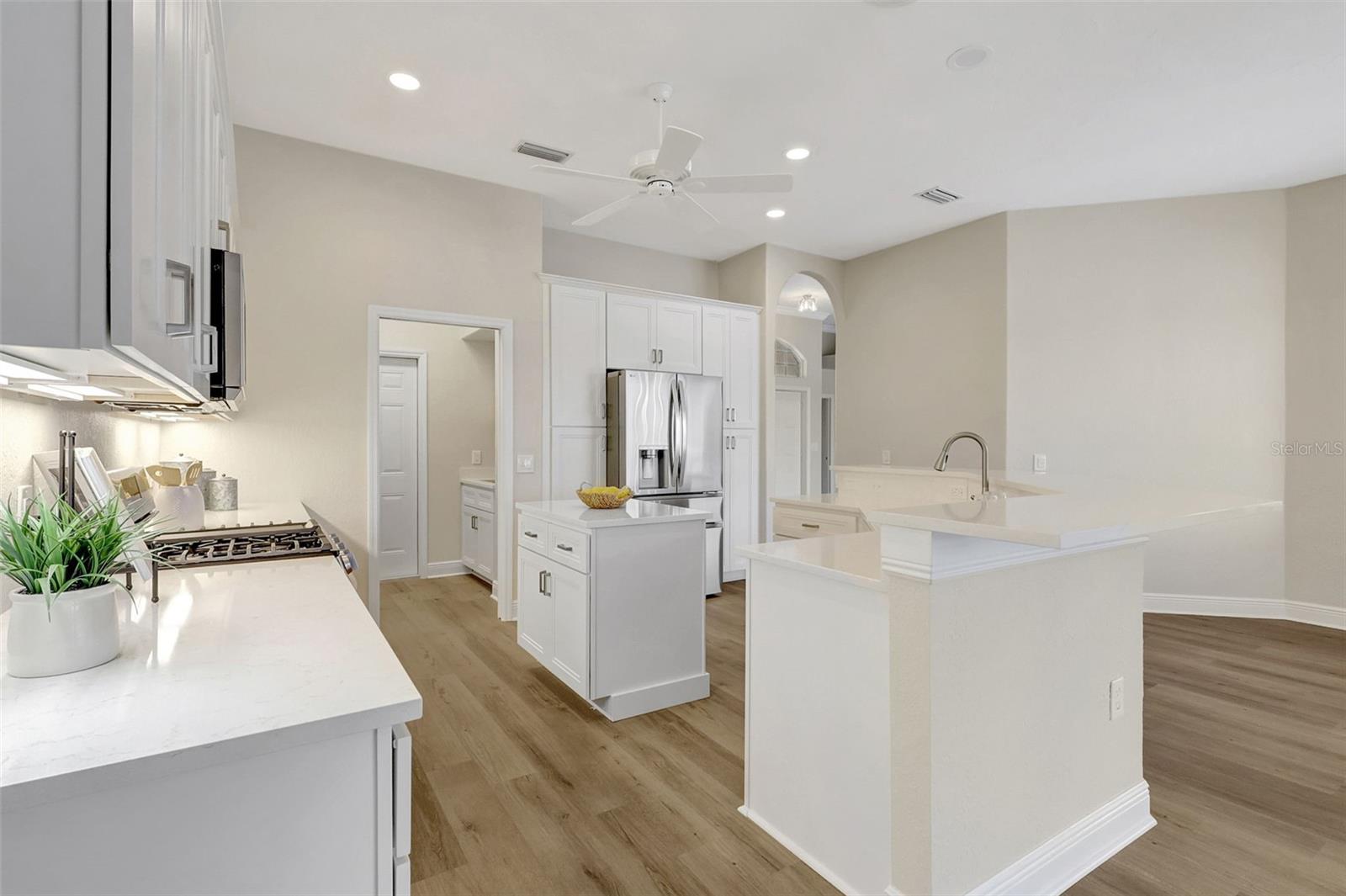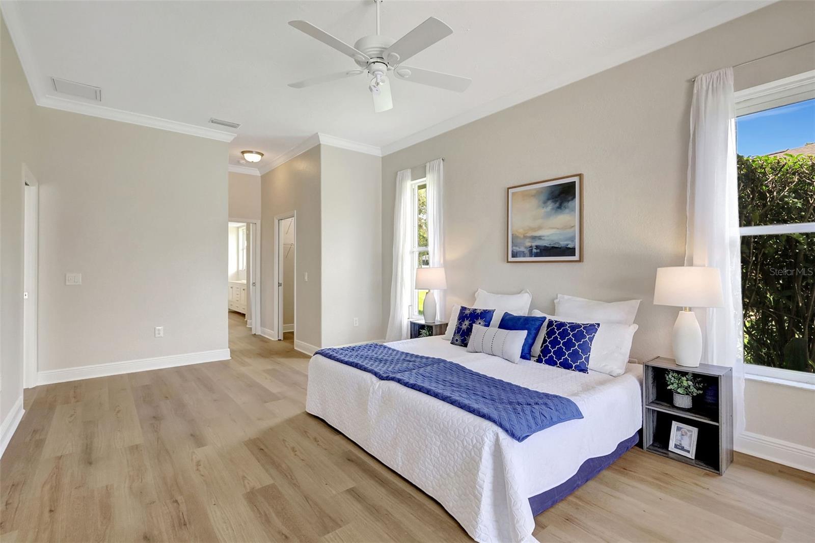 One or more photo(s) has been virtually staged. Welcome to this stunningly updated four-bedroom, three-bathroom, plus a den, home in the highly sought-after and heart of Lakewood Ranch, Summerfield Village. This home blends comfort and elegance in an ideal setting with pool/spa and breathtaking views thru full cage screen of the tranquil lake. From the moment you step inside, you'll be captivated by the elegant new luxury vinyl floors thru out the entire house and abundant natural light. Sliding glass doors connect the spacious living area into the screened-in lanai and pool, providing the perfect space to grill out, relax and enjoy the serene surroundings. Recently replaced pool pump, spa pump, pool filter housing, and gas pool heater. The lanai features a clear-view screen enclosure, offering unobstructed views of the lovely large pond and lush landscape. The beautifully renovated kitchen is designed for both style and functionality, featuring solid wood cabinetry, quartz countertops, a stylish tile backsplash, and stainless-steel appliances. The eat-in area provides a cozy and inviting space for casual dining. Designed with a thoughtful split floor plan, this home ensures privacy with three distinct living areas. The primary suite is a true retreat, offering lanai access, two walk-in closets, and an elegant en-suite bathroom with dual vanities, a garden tub, and a separate tile shower. On the opposite side of the home, the second and third bedrooms are conveniently located next to a full bathroom, the fourth bedroom and bathroom with direct lanai access and use as the pool bath. This home offers a formal dining area, a generous living room, and a dedicated office/den. The laundry room is conveniently located off the garage entrance for easy access. Blink video doorbell and seven outdoor security cameras. Freshly painted 2.5-car garage. Solar panels make it ideal for low electricity consumption. Additionally, Rachio smart irrigation controller (water-conserving.) Including an Ambient Weather WS-2000 roof-mounted weather station with indoor display. Convenient Ecobee smart programmable energy-saving thermostat. The home is situated on the far side of the neighborhood circle with no through traffic, this home offers a peaceful retreat for the owner. Summerfield Village features miles of walking trails, a park with tennis and basketball courts, a playground, soccer fields, beach volleyball, and a spacious pavilion. Just minutes from I-75, equally between St. Pete and Sarasota with Anna Maria Island your direct beach. Bradenton and one hour north, Tampa, local medical facilities, top-rated schools, Main Street, UTC Mall, fine dining, and the other world-famous beaches, this home embodies the best of Florida living.