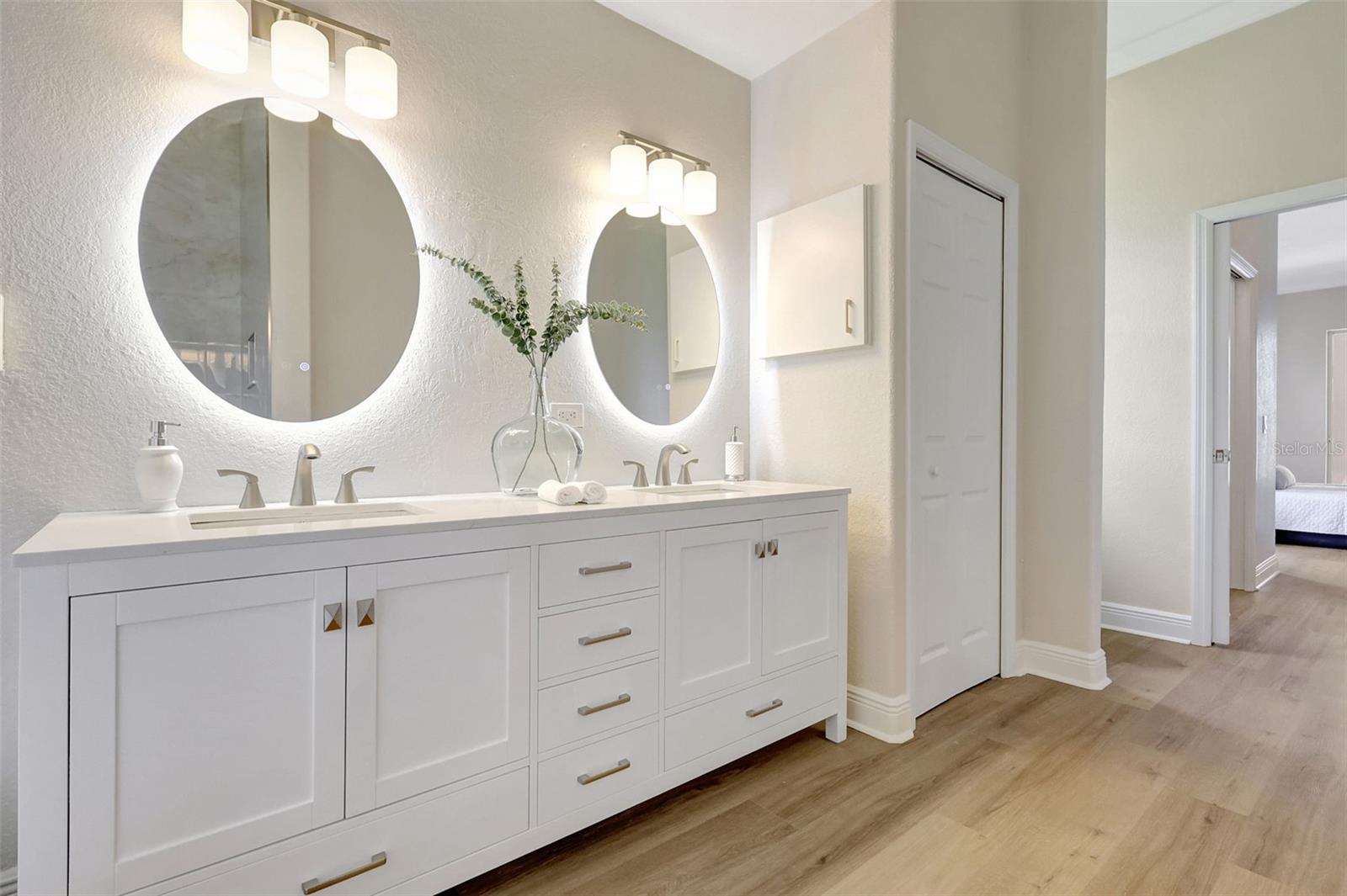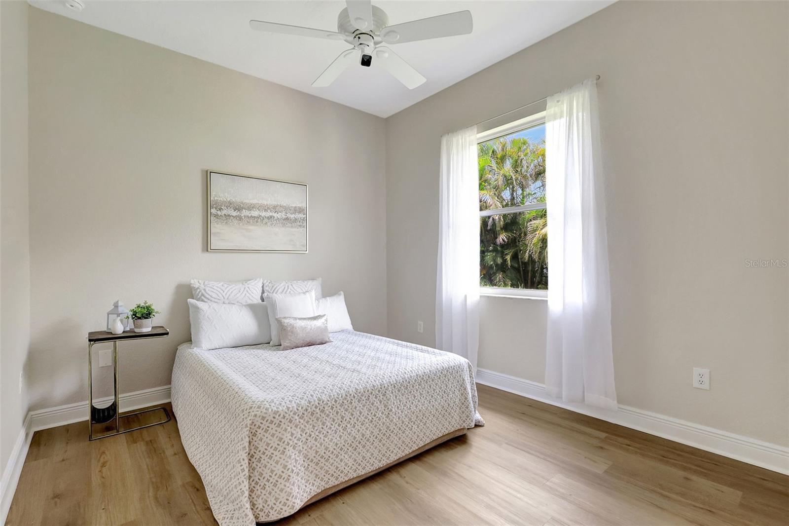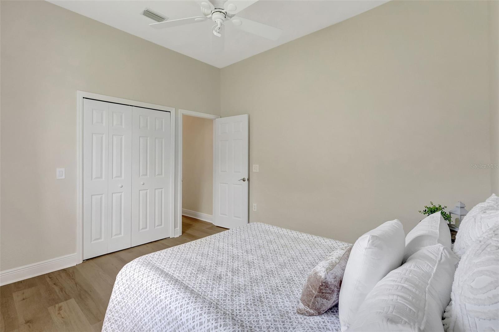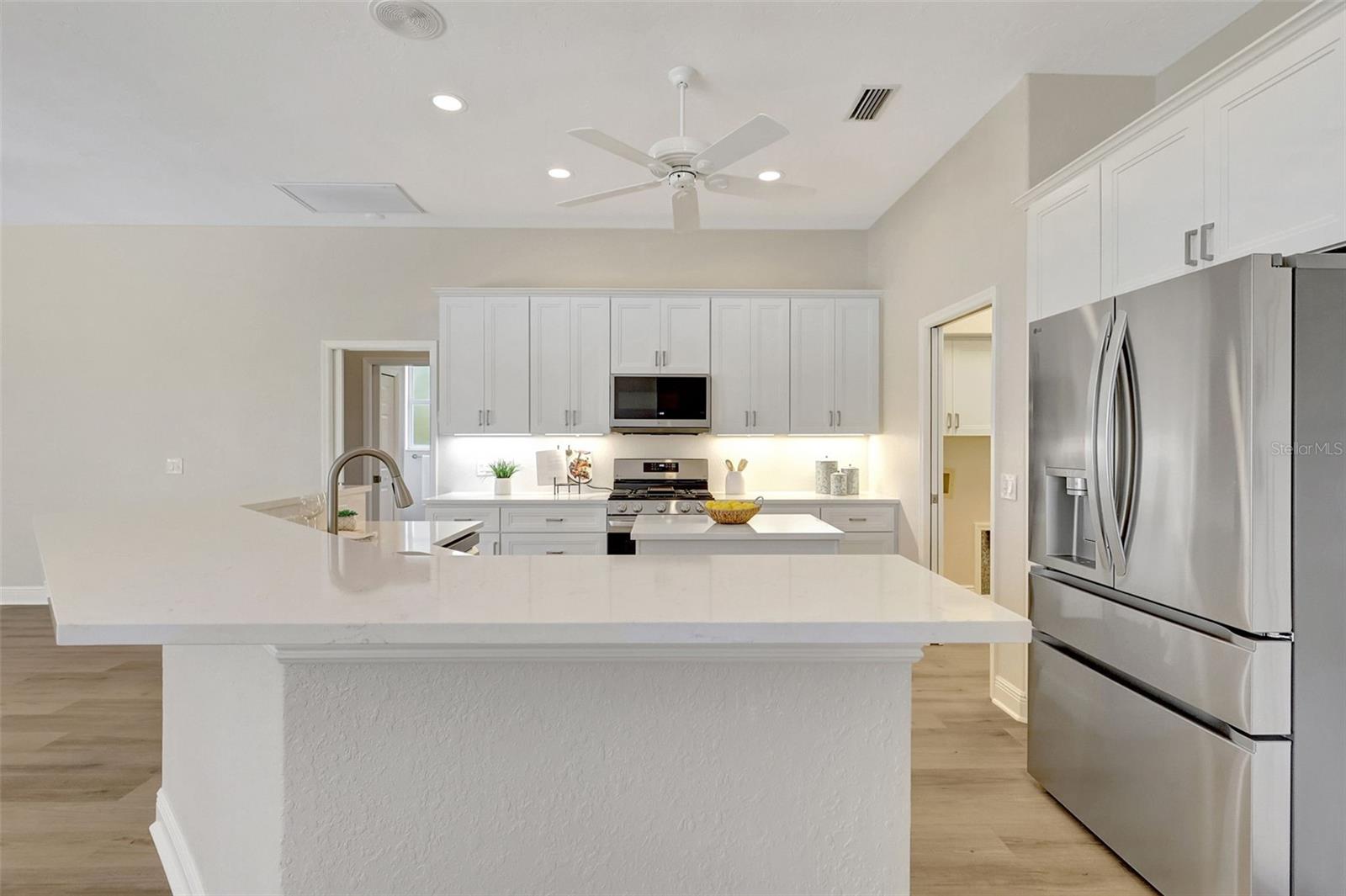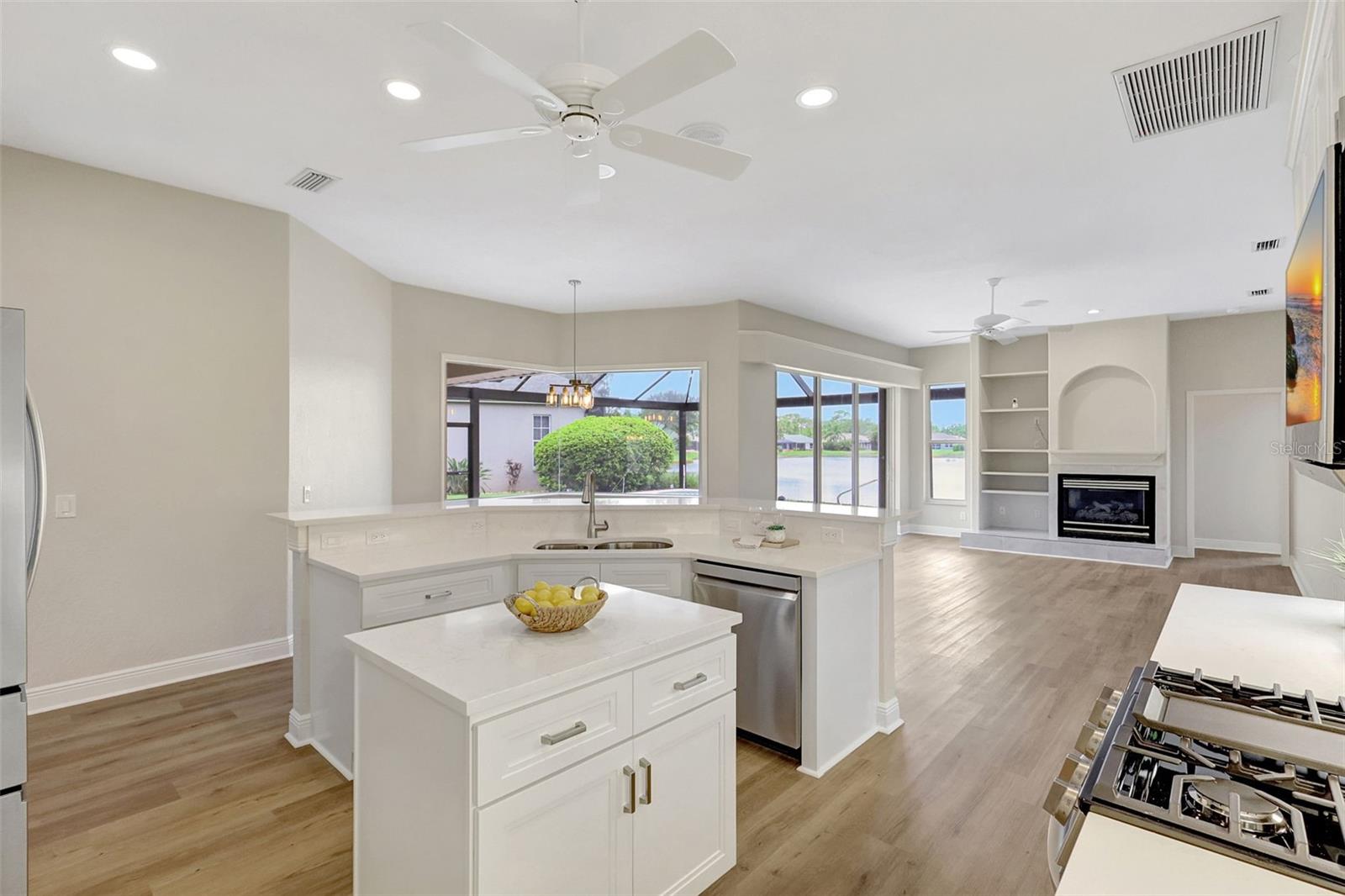 One or more photo(s) has been virtually staged. Welcome to this stunningly updated four-bedroom, three-bathroom, plus a den, home in the highly sought-after and heart of Lakewood Ranch, Summerfield Village. This home blends comfort and elegance in an ideal setting with pool/spa and breathtaking views thru full cage screen of the tranquil lake. From the moment you step inside, you'll be captivated by the elegant new luxury vinyl floors thru out the entire house and abundant natural light. Sliding glass doors connect the spacious living area into the screened-in lanai and pool, providing the perfect space to grill out, relax and enjoy the serene surroundings. Recently replaced pool pump, spa pump, pool filter housing, and gas pool heater. The lanai features a clear-view screen enclosure, offering unobstructed views of the lovely large pond and lush landscape. The beautifully renovated kitchen is designed for both style and functionality, featuring solid wood cabinetry, quartz countertops, a stylish tile backsplash, and stainless-steel appliances. The eat-in area provides a cozy and inviting space for casual dining. Designed with a thoughtful split floor plan, this home ensures privacy with three distinct living areas. The primary suite is a true retreat, offering lanai access, two walk-in closets, and an elegant en-suite bathroom with dual vanities, a garden tub, and a separate tile shower. On the opposite side of the home, the second and third bedrooms are conveniently located next to a full bathroom, the fourth bedroom and bathroom with direct lanai access and use as the pool bath. This home offers a formal dining area, a generous living room, and a dedicated office/den. The laundry room is conveniently located off the garage entrance for easy access. Blink video doorbell and seven outdoor security cameras. Freshly painted 2.5-car garage. Solar panels make it ideal for low electricity consumption. Additionally, Rachio smart irrigation controller (water-conserving.) Including an Ambient Weather WS-2000 roof-mounted weather station with indoor display. Convenient Ecobee smart programmable energy-saving thermostat. The home is situated on the far side of the neighborhood circle with no through traffic, this home offers a peaceful retreat for the owner. Summerfield Village features miles of walking trails, a park with tennis and basketball courts, a playground, soccer fields, beach volleyball, and a spacious pavilion. Just minutes from I-75, equally between St. Pete and Sarasota with Anna Maria Island your direct beach. Bradenton and one hour north, Tampa, local medical facilities, top-rated schools, Main Street, UTC Mall, fine dining, and the other world-famous beaches, this home embodies the best of Florida living.