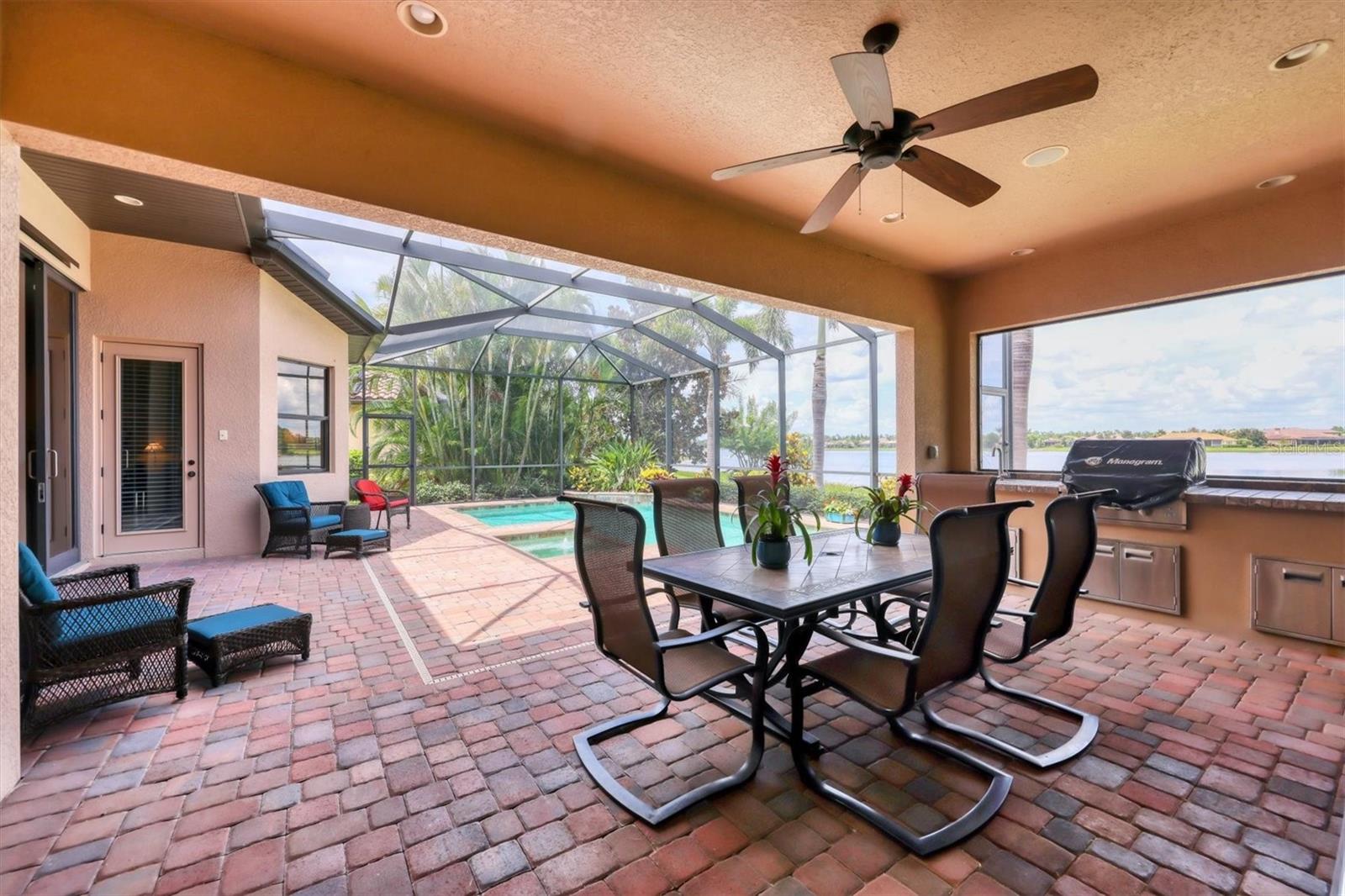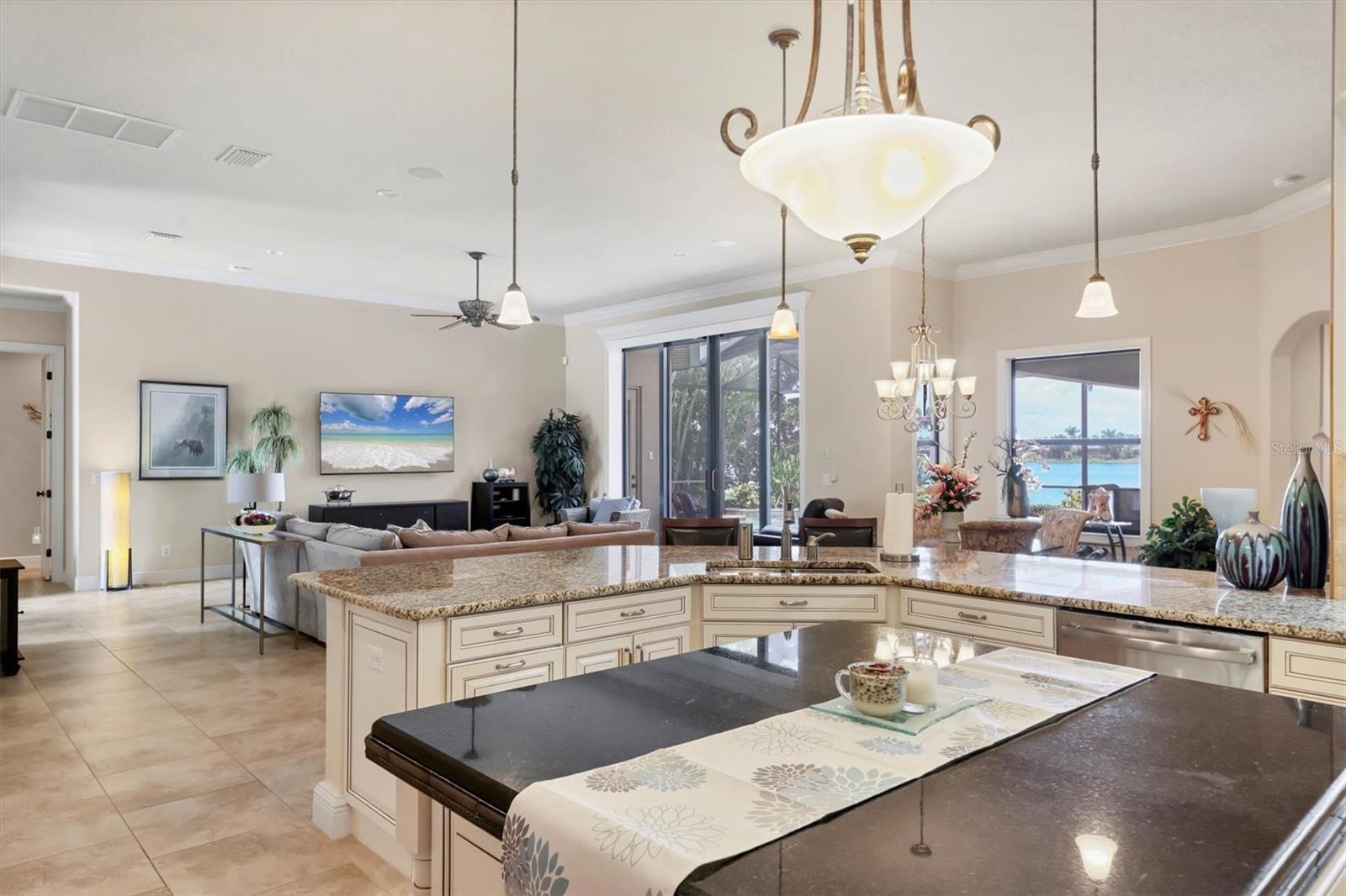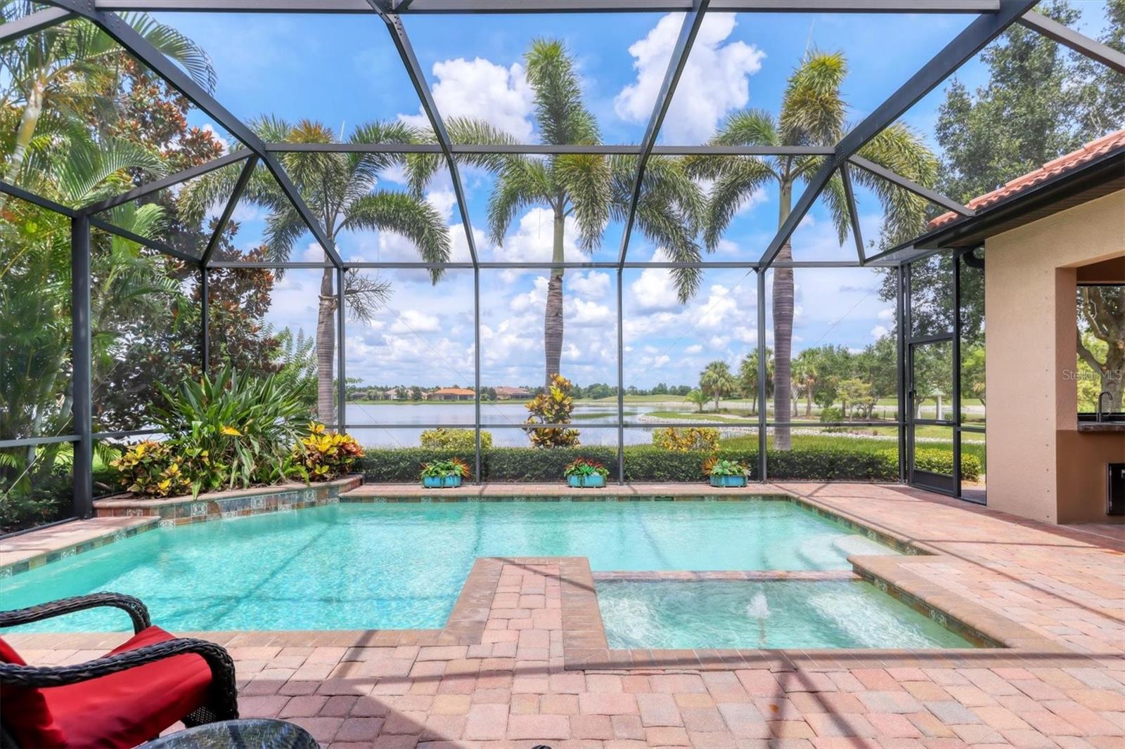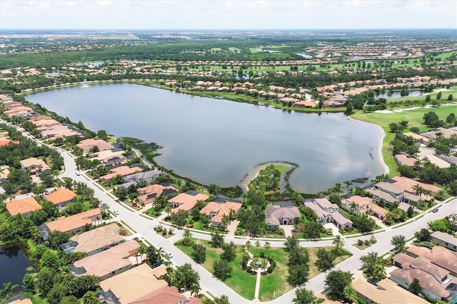 Welcome to your dream home--an elegant three-bedroom, three-bathroom masterpiece in the highly coveted Country Club East neighborhood. This stunning residence harmoniously blends luxury and comfort, offering a spacious open layout and breathtaking views of the serene lake. As you step through the grand double doors, you'll be immediately captivated by the expansive great room, drenched in natural light. The gourmet kitchen is a culinary enthusiast's paradise, featuring elegant granite countertops, double islands, top-of-the-line stainless steel appliances, and under-cabinet lighting that elevates your cooking experience. The inviting den, complete with French doors, provides a quiet sanctuary for relaxation or focused work. Retreat to the primary suite, a true oasis of tranquility that boasts expansive lake views. This serene space features a tray ceiling, crown molding, a spacious double walk-in closet, and a luxurious ensuite bath with double sinks, a soaking tub, and an exquisite walk-in shower. Two additional generously sized bedrooms and bathrooms ensure your guests enjoy privacy and comfort on the opposite side of the home. Step through the pocketing sliders to your large lanai effortlessly merging the indoor and outdoor spaces. This is your outdoor oasis and the perfect place to entertain guests with the well-appointed outdoor kitchen, complete with a grill, sink, and granite countertops, this space is designed for memorable gatherings. Additional amenities, such as remote blinds in the living room, Kevlar hurricane shutters, and a Pelican water system, enhance the ease and comfort of everyday living. Life in this remarkable home provides not just a dwelling but a lifestyle. As a resident of Country Club East, you'll enjoy exclusive access to The Retreat, an upscale amenity center featuring a resort-style pool, a state-of-the-art fitness center, and a billiards room. The Residents Club also offers another pool, a spa, and a volleyball court, ensuring leisure and recreation are just steps away. Plus, the nearby Lakewood Ranch Golf & Country Club features 72 holes of golf, 20 tennis courts, 20 pickleball courts, multiple pools, a grand clubhouse, and The Lodge bar and restaurant--all available through a variety of membership options. Seize the opportunity to call this extraordinary home yours and enjoy life in Lakewood Ranch, America's top-selling planned multigenerational community! Your ideal lifestyle awaits!