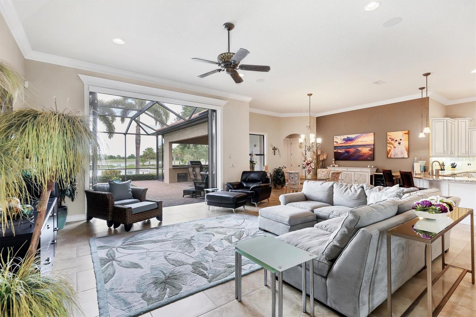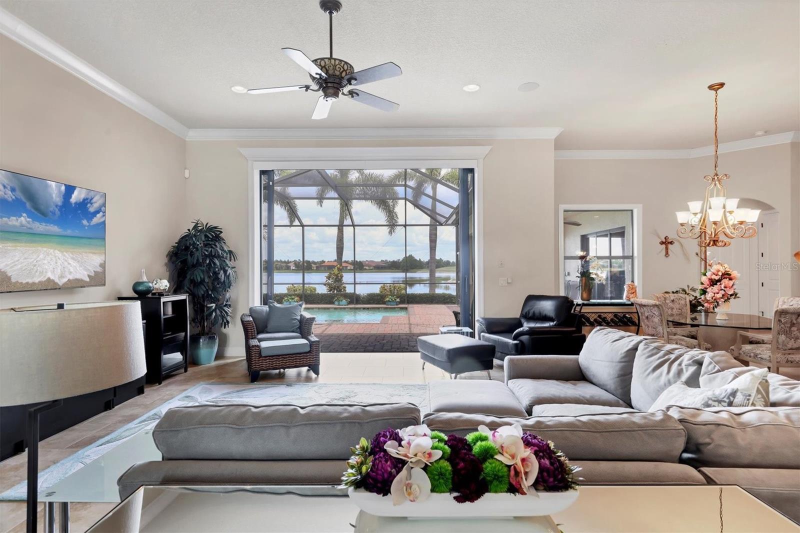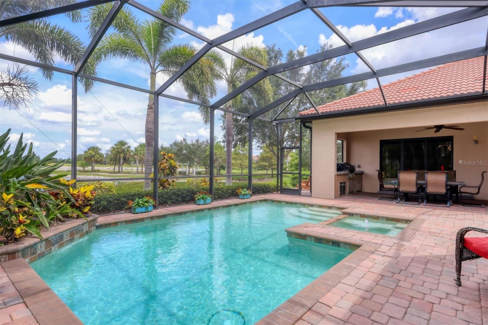 Welcome to your dream home--an elegant three-bedroom, three-bathroom masterpiece in the highly coveted Country Club East neighborhood. This stunning residence harmoniously blends luxury and comfort, offering a spacious open layout and breathtaking views of the serene lake. As you step through the grand double doors, you'll be immediately captivated by the expansive great room, drenched in natural light. The gourmet kitchen is a culinary enthusiast's paradise, featuring elegant granite countertops, double islands, top-of-the-line stainless steel appliances, and under-cabinet lighting that elevates your cooking experience. The inviting den, complete with French doors, provides a quiet sanctuary for relaxation or focused work. Retreat to the primary suite, a true oasis of tranquility that boasts expansive lake views. This serene space features a tray ceiling, crown molding, a spacious double walk-in closet, and a luxurious ensuite bath with double sinks, a soaking tub, and an exquisite walk-in shower. Two additional generously sized bedrooms and bathrooms ensure your guests enjoy privacy and comfort on the opposite side of the home. Step through the pocketing sliders to your large lanai effortlessly merging the indoor and outdoor spaces. This is your outdoor oasis and the perfect place to entertain guests with the well-appointed outdoor kitchen, complete with a grill, sink, and granite countertops, this space is designed for memorable gatherings. Additional amenities, such as remote blinds in the living room, Kevlar hurricane shutters, and a Pelican water system, enhance the ease and comfort of everyday living. Life in this remarkable home provides not just a dwelling but a lifestyle. As a resident of Country Club East, you'll enjoy exclusive access to The Retreat, an upscale amenity center featuring a resort-style pool, a state-of-the-art fitness center, and a billiards room. The Residents Club also offers another pool, a spa, and a volleyball court, ensuring leisure and recreation are just steps away. Plus, the nearby Lakewood Ranch Golf & Country Club features 72 holes of golf, 20 tennis courts, 20 pickleball courts, multiple pools, a grand clubhouse, and The Lodge bar and restaurant--all available through a variety of membership options. Seize the opportunity to call this extraordinary home yours and enjoy life in Lakewood Ranch, America's top-selling planned multigenerational community! Your ideal lifestyle awaits!