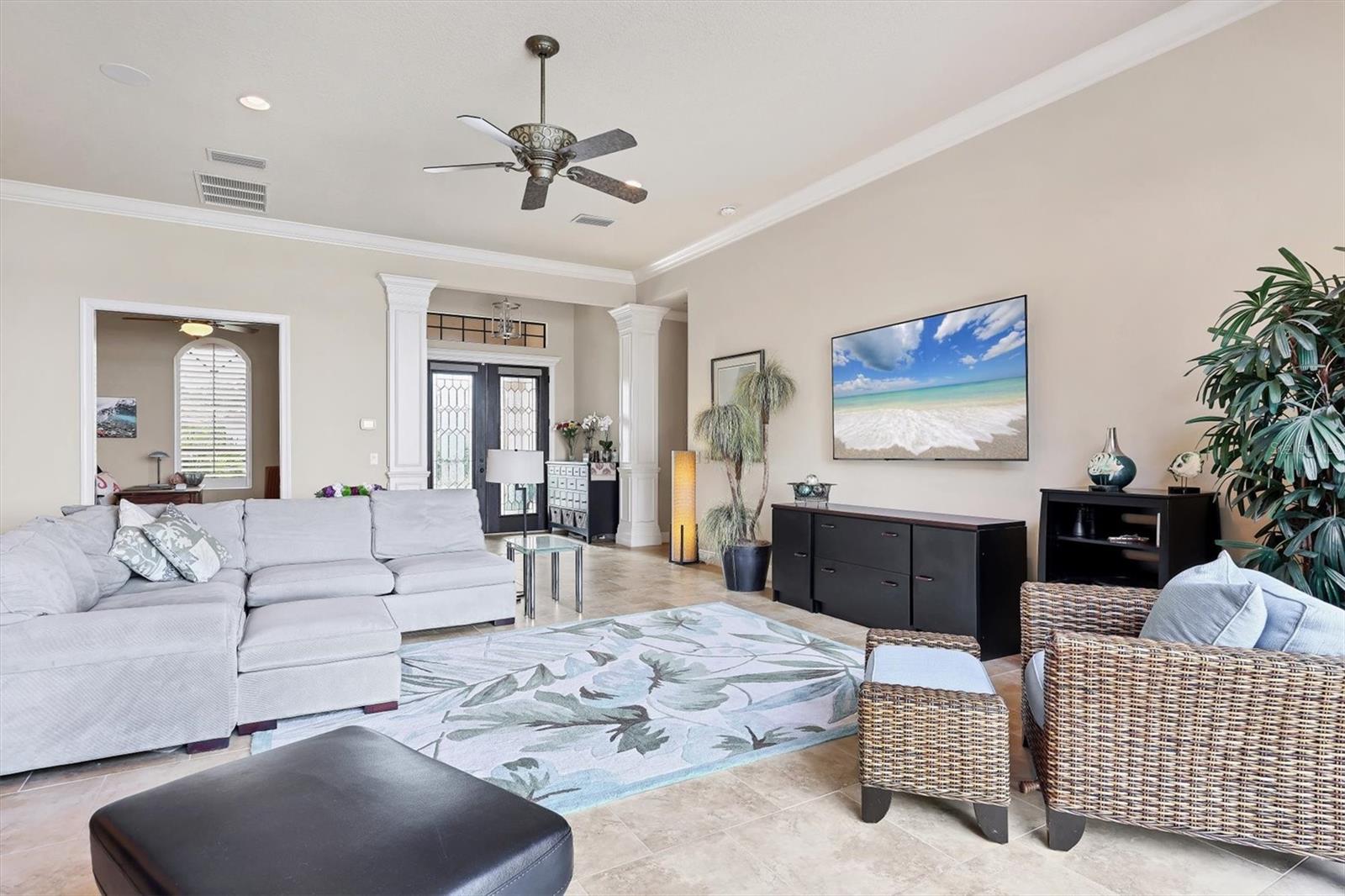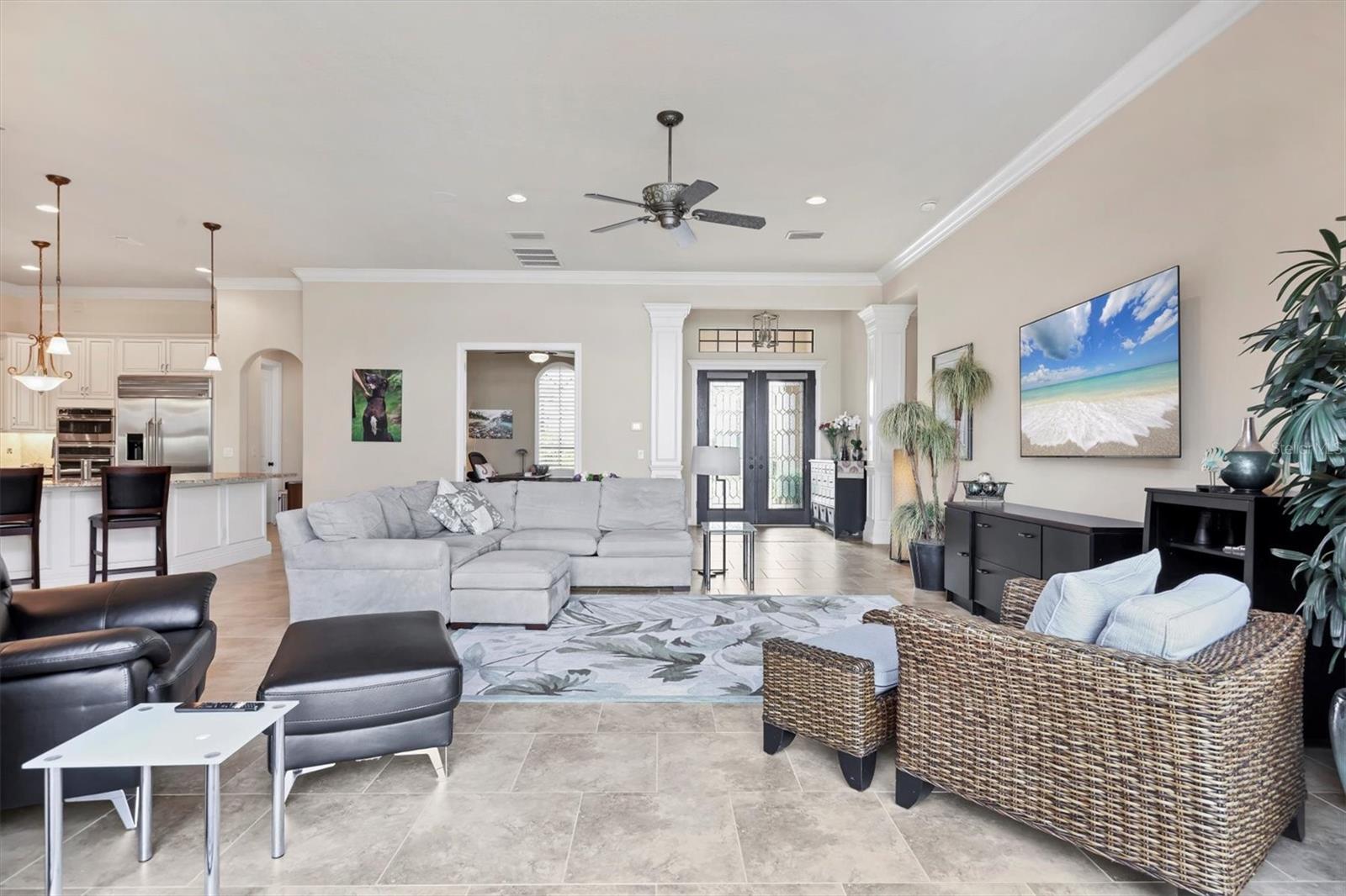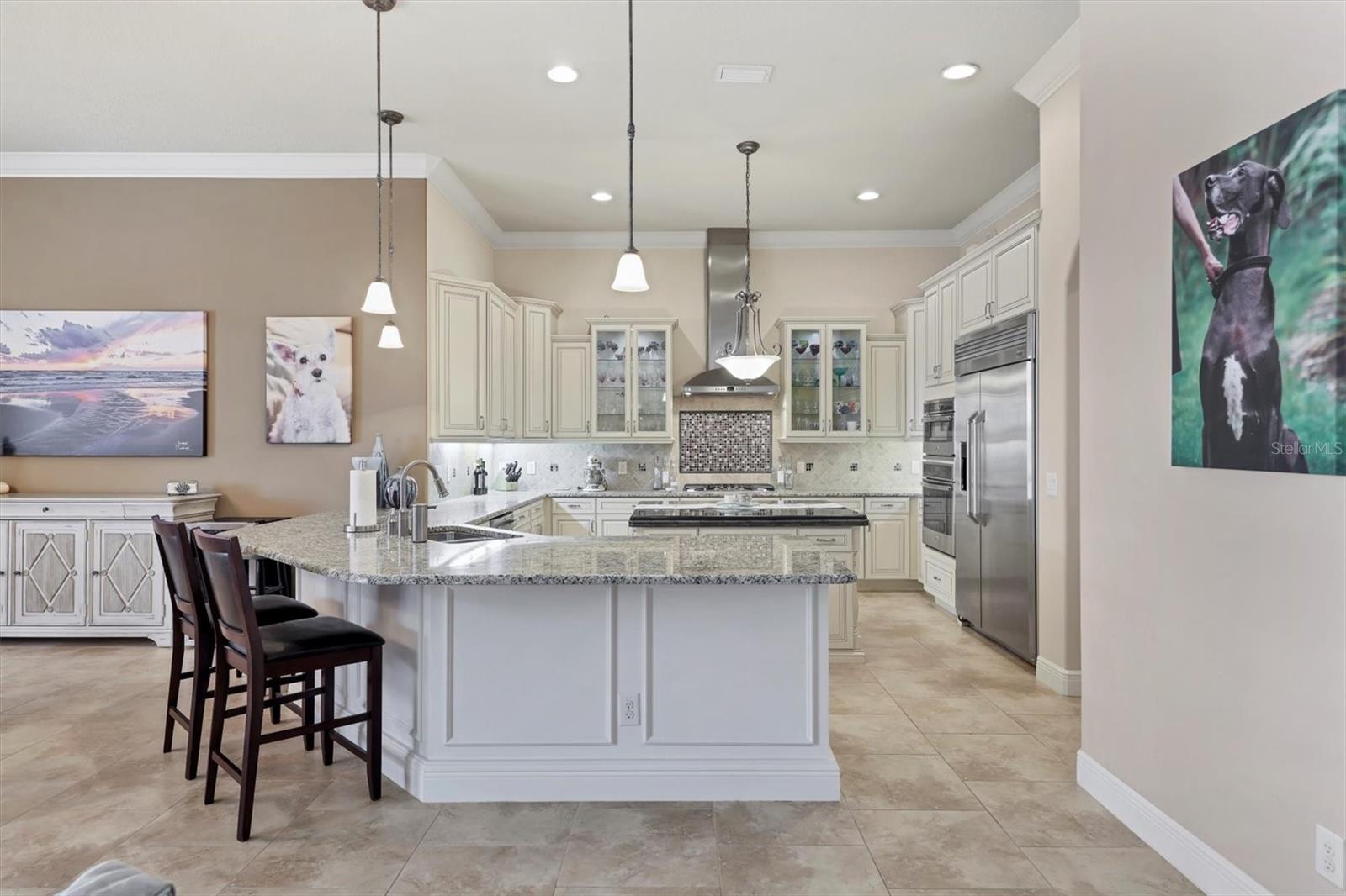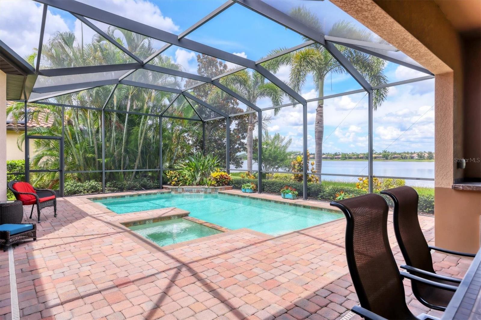 Welcome to your dream home--an elegant three-bedroom, three-bathroom masterpiece in the highly coveted Country Club East neighborhood. This stunning residence harmoniously blends luxury and comfort, offering a spacious open layout and breathtaking views of the serene lake. As you step through the grand double doors, you'll be immediately captivated by the expansive great room, drenched in natural light. The gourmet kitchen is a culinary enthusiast's paradise, featuring elegant granite countertops, double islands, top-of-the-line stainless steel appliances, and under-cabinet lighting that elevates your cooking experience. The inviting den, complete with French doors, provides a quiet sanctuary for relaxation or focused work. Retreat to the primary suite, a true oasis of tranquility that boasts expansive lake views. This serene space features a tray ceiling, crown molding, a spacious double walk-in closet, and a luxurious ensuite bath with double sinks, a soaking tub, and an exquisite walk-in shower. Two additional generously sized bedrooms and bathrooms ensure your guests enjoy privacy and comfort on the opposite side of the home. Step through the pocketing sliders to your large lanai effortlessly merging the indoor and outdoor spaces. This is your outdoor oasis and the perfect place to entertain guests with the well-appointed outdoor kitchen, complete with a grill, sink, and granite countertops, this space is designed for memorable gatherings. Additional amenities, such as remote blinds in the living room, Kevlar hurricane shutters, and a Pelican water system, enhance the ease and comfort of everyday living. Life in this remarkable home provides not just a dwelling but a lifestyle. As a resident of Country Club East, you'll enjoy exclusive access to The Retreat, an upscale amenity center featuring a resort-style pool, a state-of-the-art fitness center, and a billiards room. The Residents Club also offers another pool, a spa, and a volleyball court, ensuring leisure and recreation are just steps away. Plus, the nearby Lakewood Ranch Golf & Country Club features 72 holes of golf, 20 tennis courts, 20 pickleball courts, multiple pools, a grand clubhouse, and The Lodge bar and restaurant--all available through a variety of membership options. Seize the opportunity to call this extraordinary home yours and enjoy life in Lakewood Ranch, America's top-selling planned multigenerational community! Your ideal lifestyle awaits!