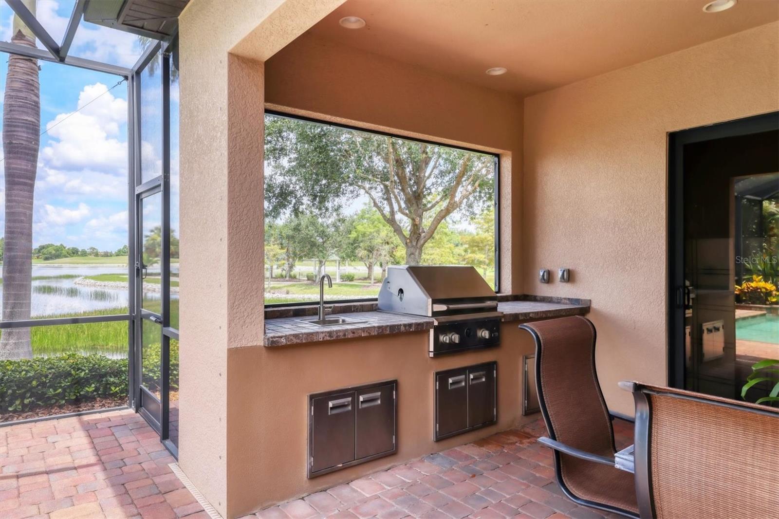 - Exterior: Lighting, Outdoor Grill, Outdoor Kitchen, Rain Gutters, Sliding Doors